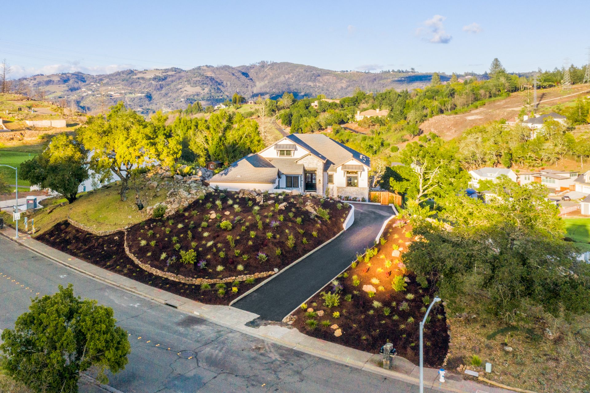 This newly constructed single level home of approximately 3300 square feet, overlooks Fountaingrove Golf Course with ultimate privacy and sweeping second fairway and hillside views. The exceptional designer appeal starts with double entry doors, extensive use of wide plank hardwood flooring and vaulted ceilings. The great room has a dual sided fireplace and stacking glass doors with transoms that open to the view terrace featuring an outdoor kitchen. An open concept kitchen and dining area has all the amenities any chef would desire, including a quartz center island, Monogram 6 burner gas range with double ovens and griddle, Monogram microwave drawer, built-in refrigerator and a walk-in pantry. Enter the primary suite through a library style hallway to discover direct access through sliding glass doors to the view terrace. There are 2 additional bedrooms and an office which could be a 4th bedroom with attached bath. The covered terrace includes an outdoor kitchen complete with a built-in Blaze grill, refrigerator, sink and dining area. Enjoy breathtaking sunrises from the great room, kitchen, primary bedroom and extensive covered terrace. The lawn and low maintenance landscaping bring a serene garden ambience. This distinctive custom home is in the heart of wine country with close proximity to wineries, fine dining and the Sonoma County Airport.