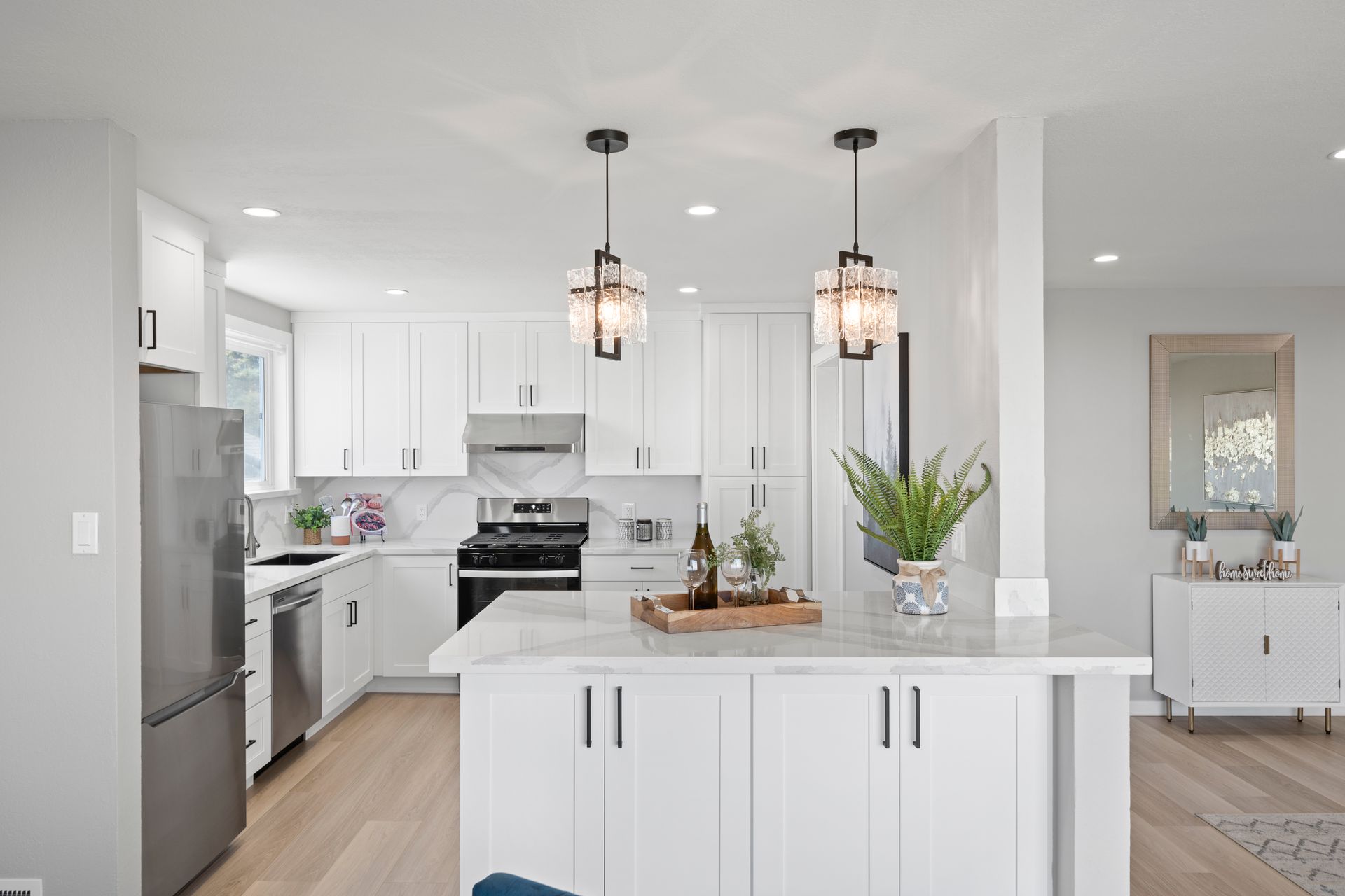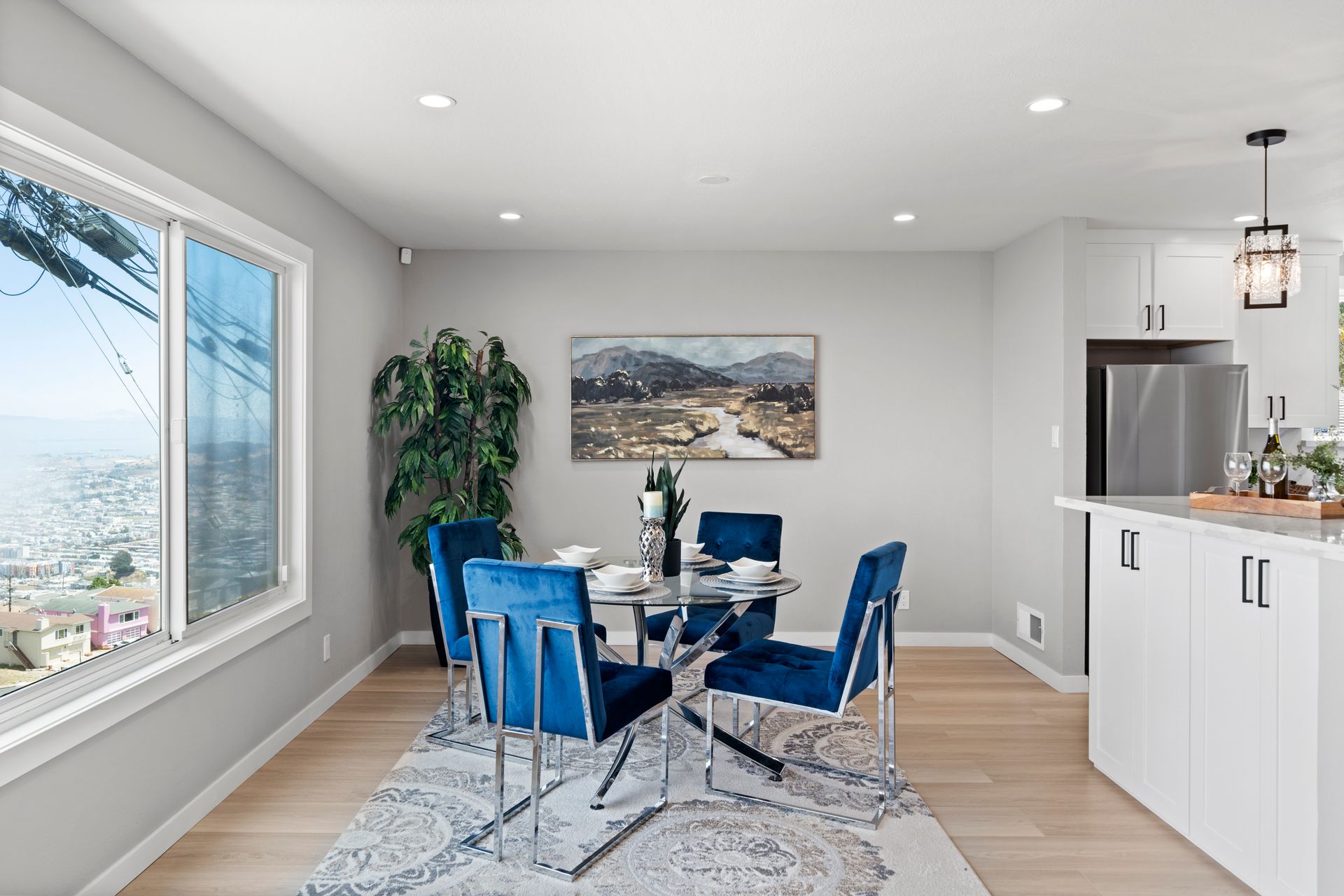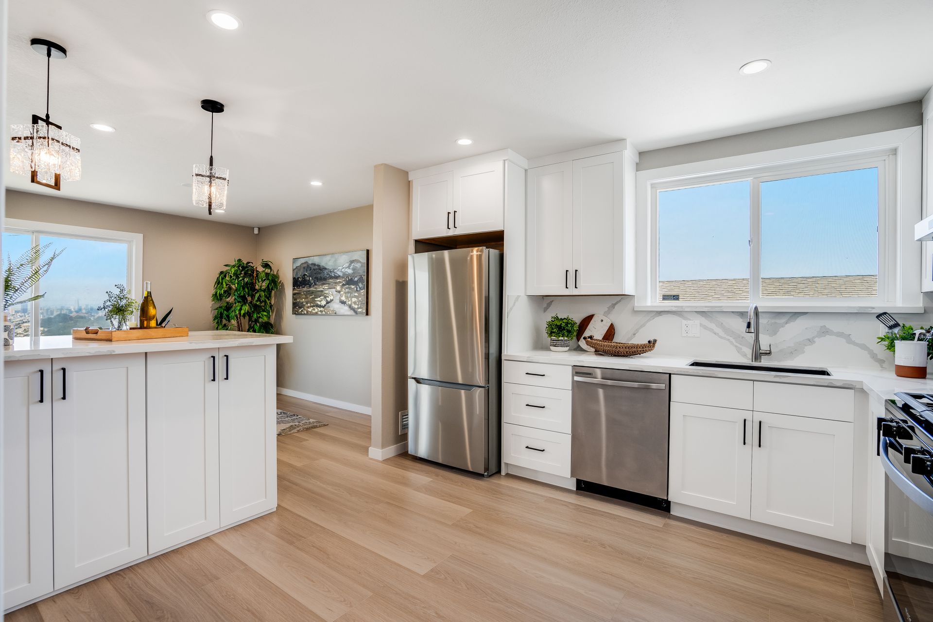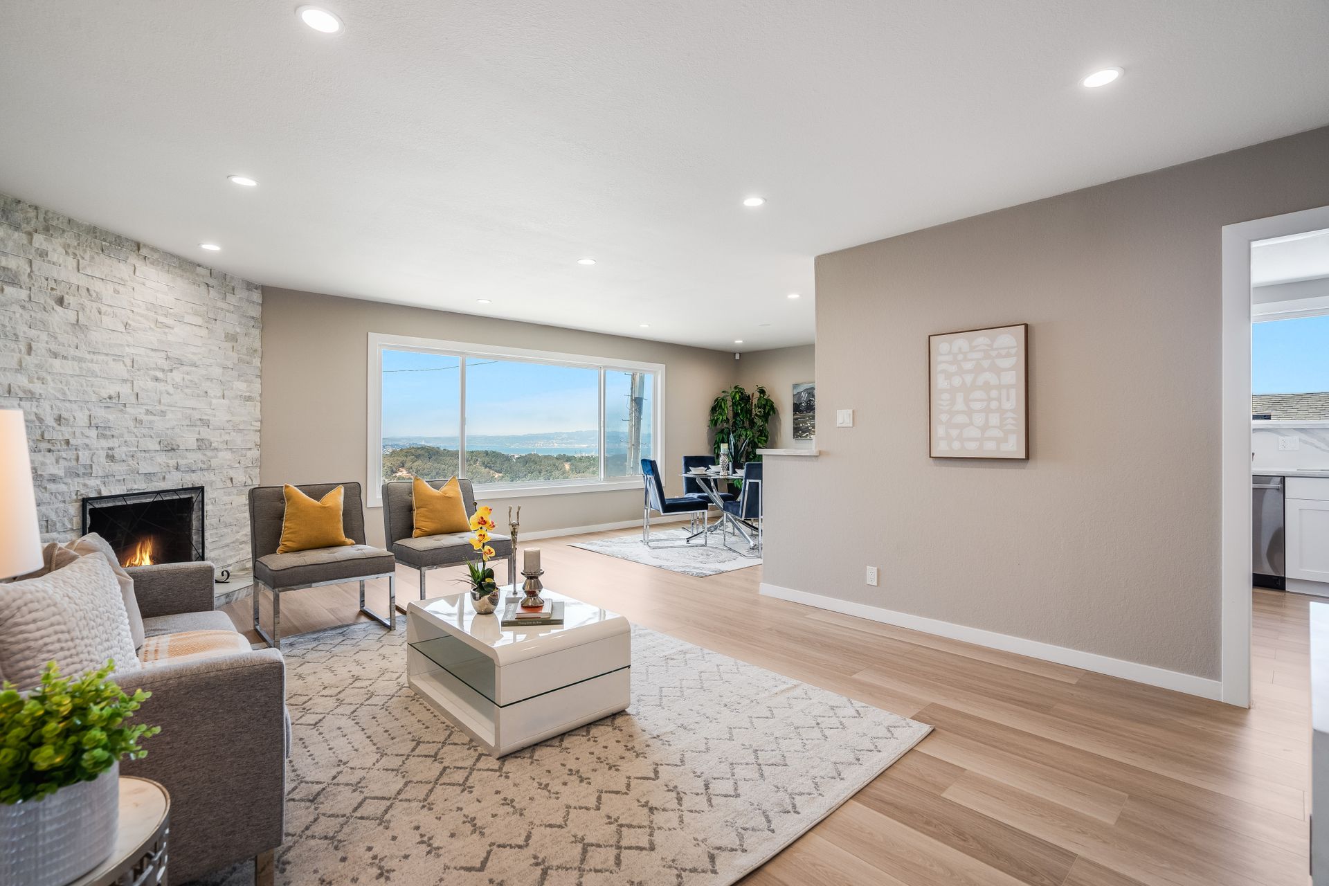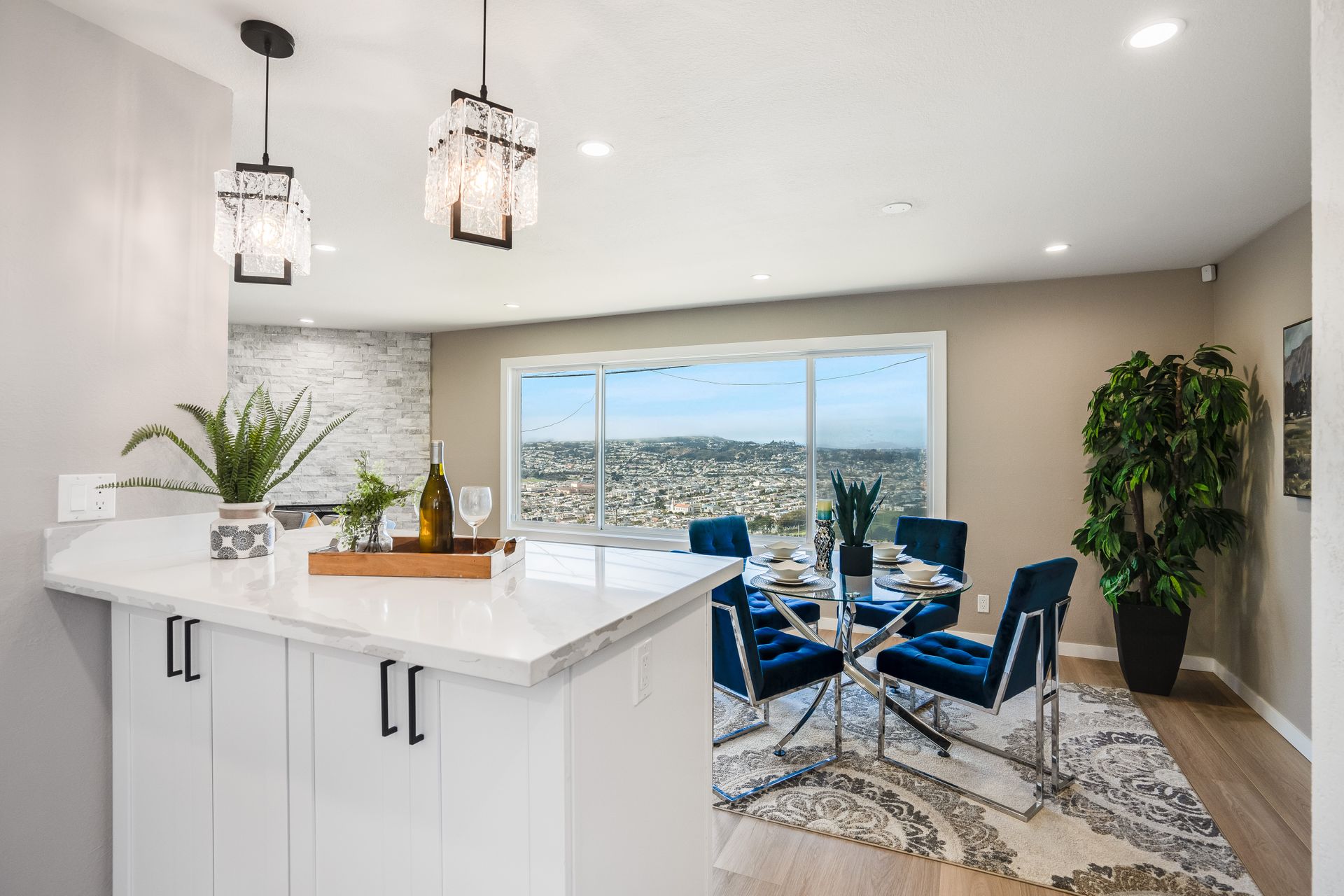 Perched atop tranquil Southern Hills neighborhood, this fully remodeled 3-bedroom, 2-bathroom detached single-family home offers a harmonious living experience, complete with spectacular city and bay views. The main level showcases a coveted floor plan 3 bedrooms and 2 bathrooms with one bedroom as primary suite. The living room impresses with breathtaking views of the bay, San Francisco skyline and the Bay Bridge, soaking in a warm and inviting ambiance. The dining room seamlessly transitions into the bright kitchen with newly updated countertops, backsplash, faucet, sink, appliances, and flooring, providing a harmonious flow for effortless living. Lower level offers a flexible space to suit your needs, whether it's a bedroom suite, a family room, or a media room, this versatile area opens up to the backyard where you can enjoy some sun. Abundant storage, laundry area, 2 car side-by-side garage with additional parking on the driveway completes the home. Enjoy close proximity to parks, playgrounds, schools, cafes, fine dining, and shopping. Easy commute to San Francisco International Airport, Caltrain, Daly City BART, Hwy 101 & I-280. Welcome to your dream home!