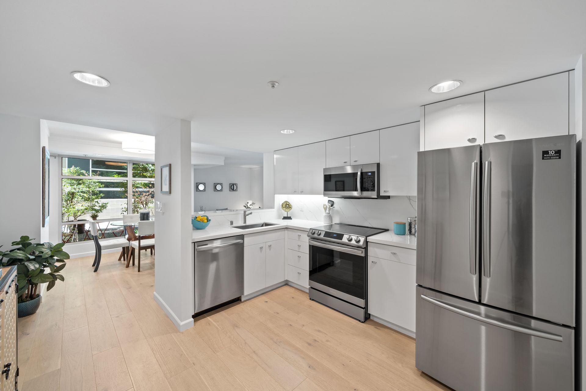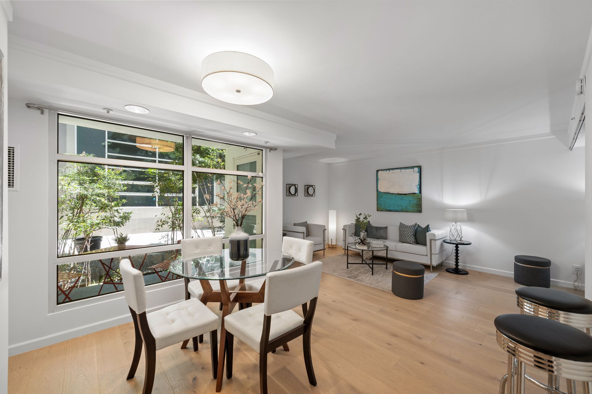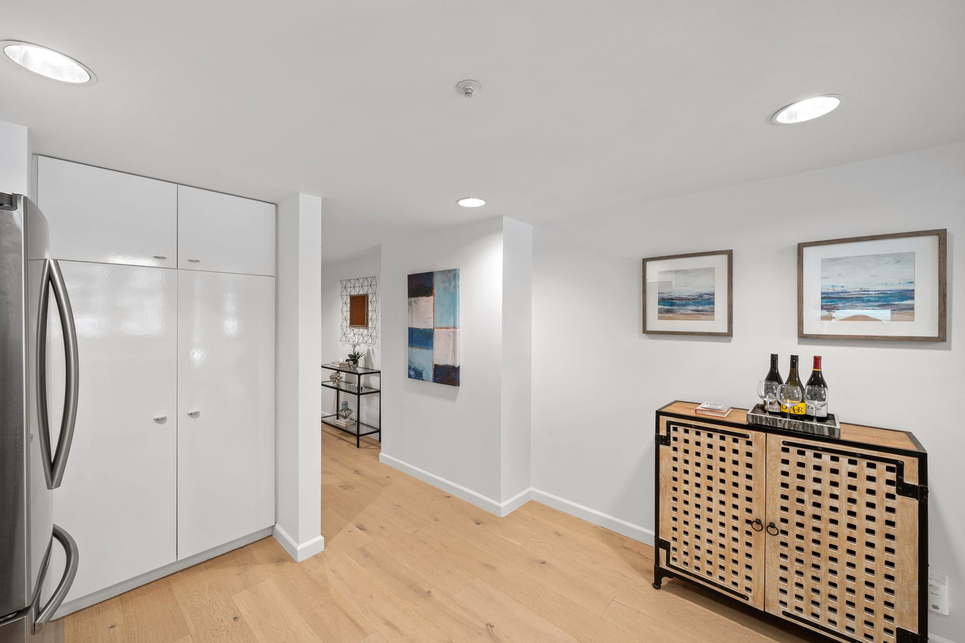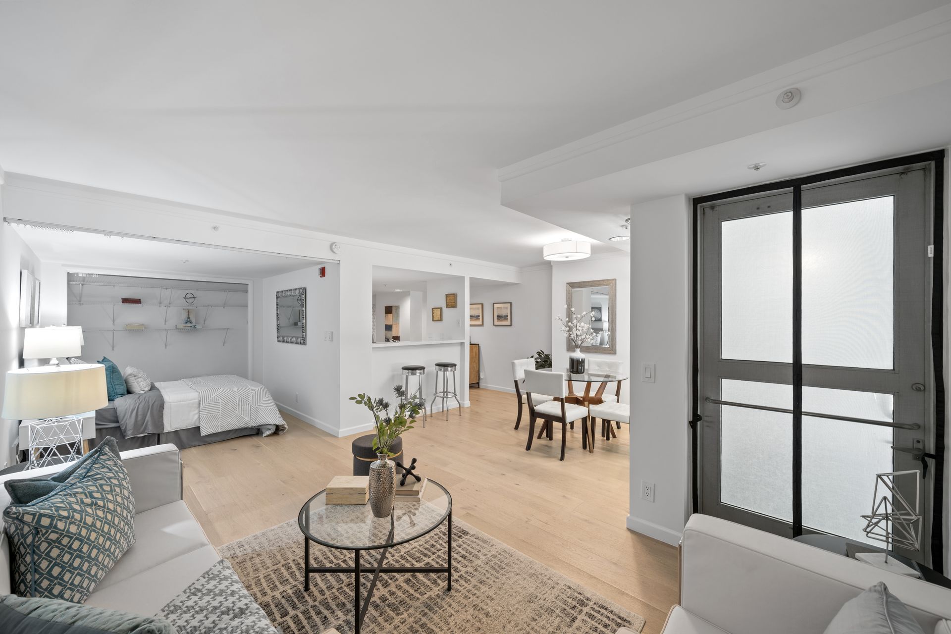 Welcome to a truly unique, junior one-bedroom condominium in the iconic Portside. Situated on the ground floor, this unit ensures effortless access without the need for elevators or stairs. With no neighbors on either side or above, you'll relish in a heightened level of privacy rarely found elsewhere. Notably, this unit stands as the sole residence with its very own oasis-like deeded patio. Wide plank, white oak hardwood floors grace the living space. An abundance of natural light and beautiful garden views create a serene backdrop. The kitchen is open and well equipped. In unit washer/dryer, extra storage, and garage parking complete the package. Positioned in the heart of South Beach, between the ballpark and the Ferry Building, the Portside offers unrivaled proximity to some of San Francisco's finest restaurants and shops. Within the Portside, residents enjoy exclusive access to two gyms, a beautiful pool, and front door host. The low HOA fee includes earthquake insurance, a rare and valuable inclusion. Seize this exceptional opportunity that truly stands as one of a kind.