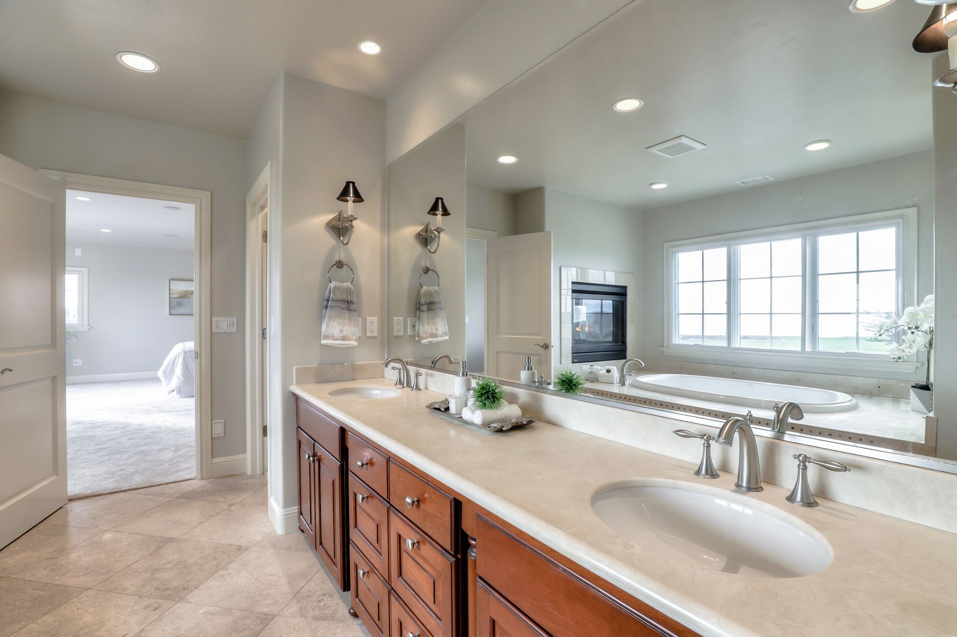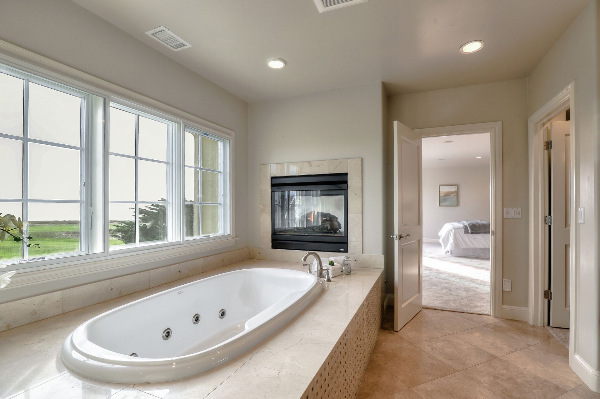 Formal living room with vaulted ceiling & fireplace. Spacious dining room with a view of the Ritz. High-end kitchen for entertaining & daily use - opening to the family room with fireplace. Lovely master with stunning views, two-way fireplace and a huge walk-in closet. Downstairs office/en-suite bedroom with walk-in closet.
