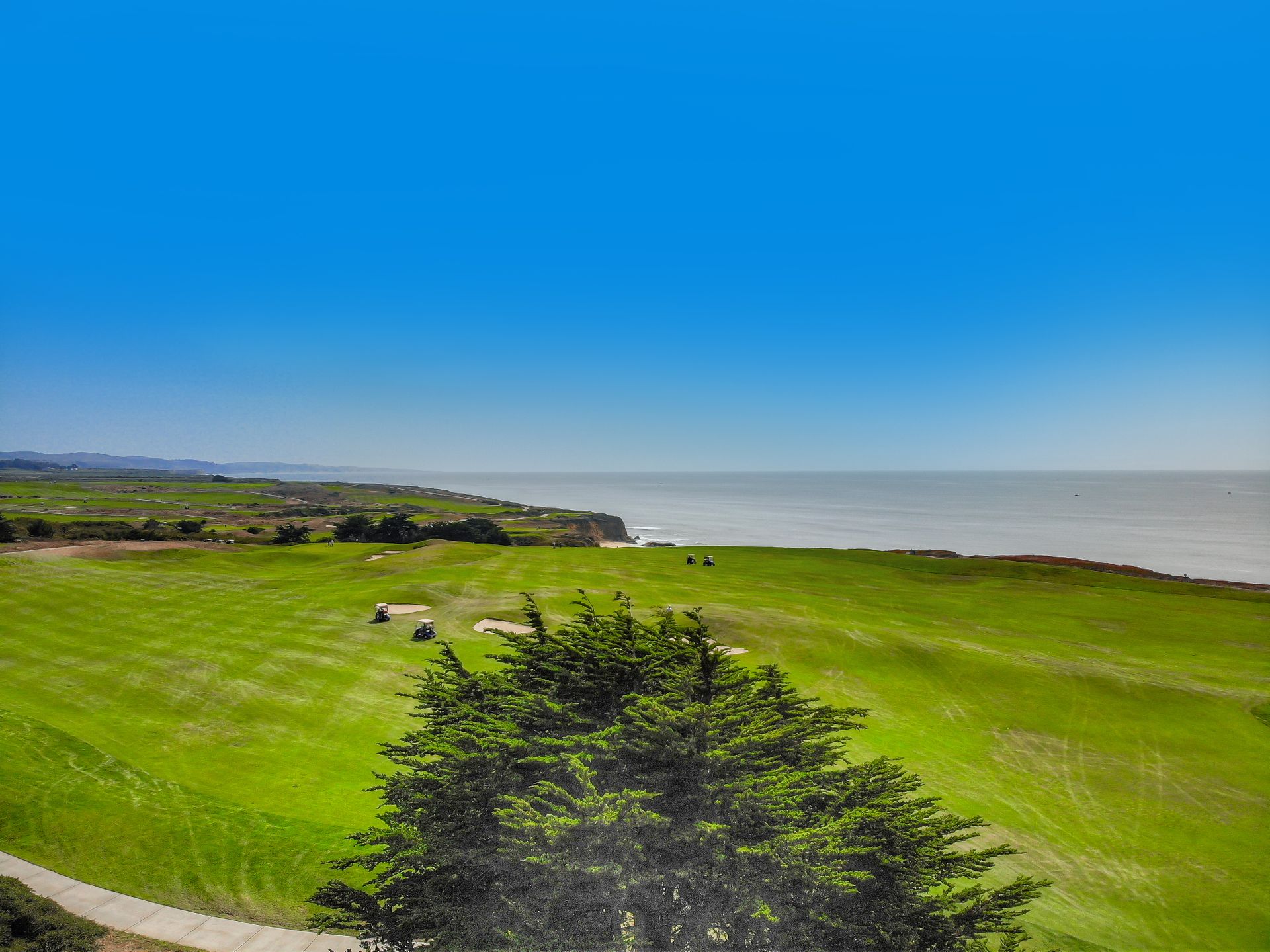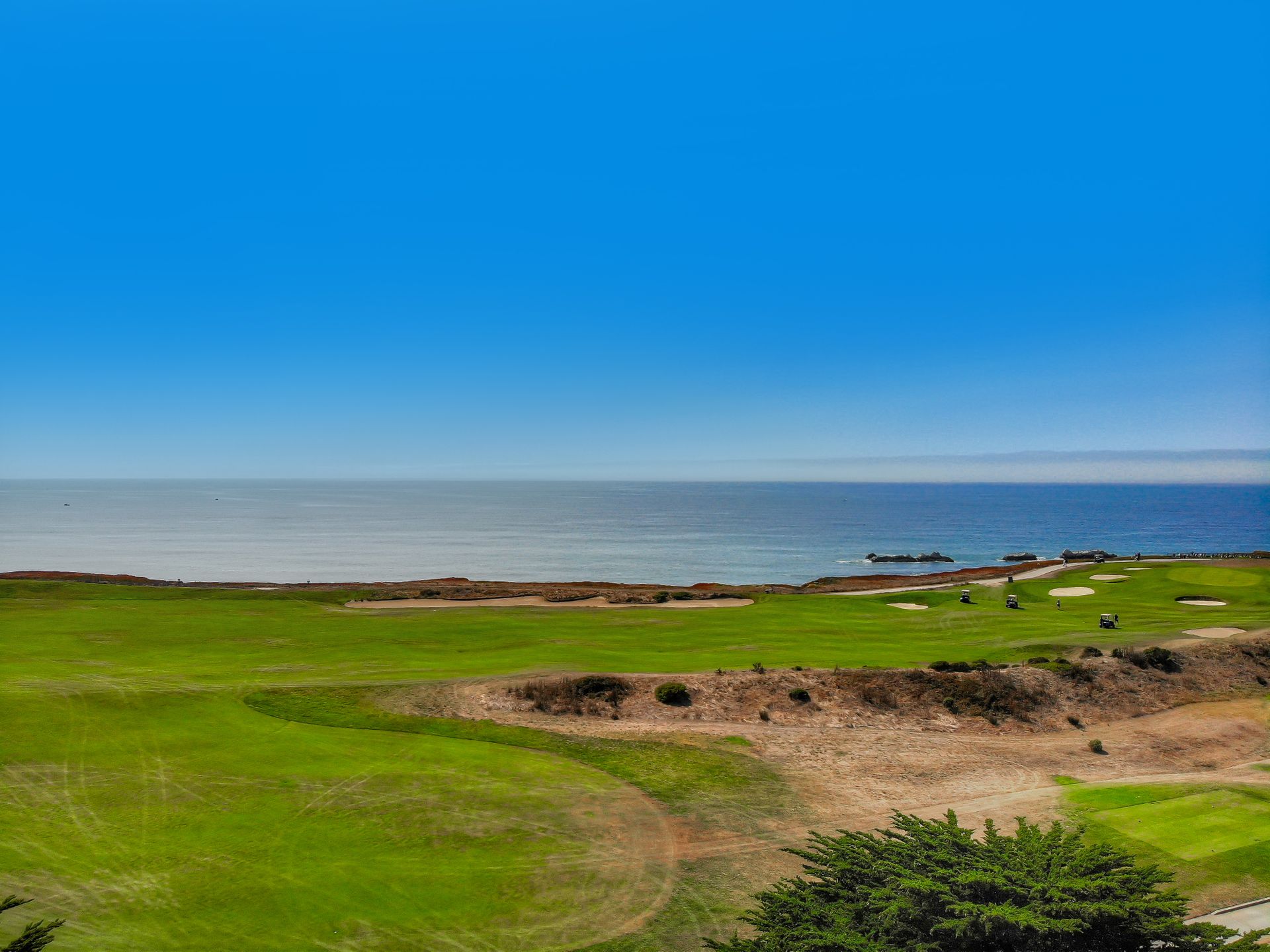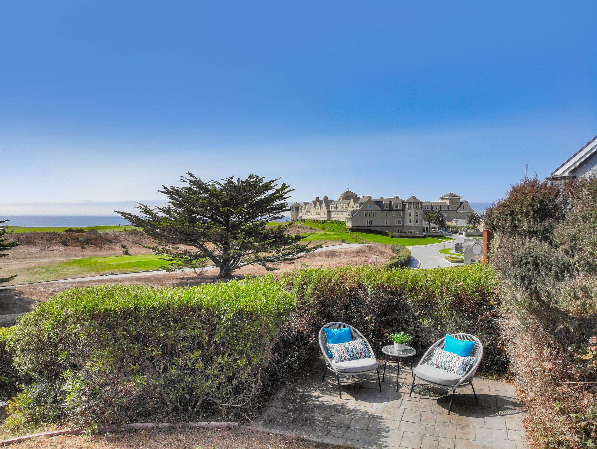 Enjoy dramatic, unobstructed views of the Pacific Ocean, Ritz-Carlton, and the 1st and 18th holes on the Ocean Course at the Half Moon Bay Golf Links.