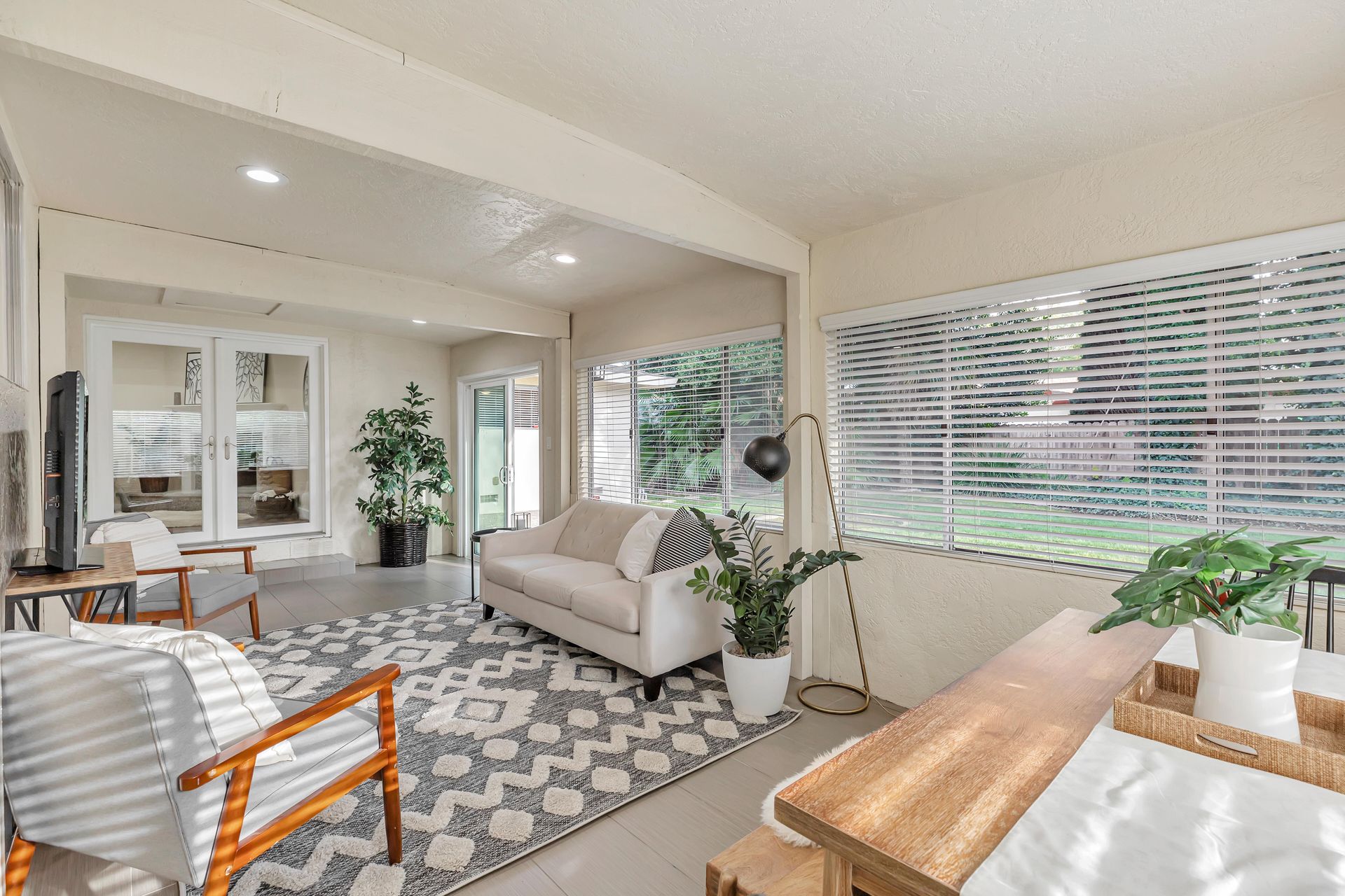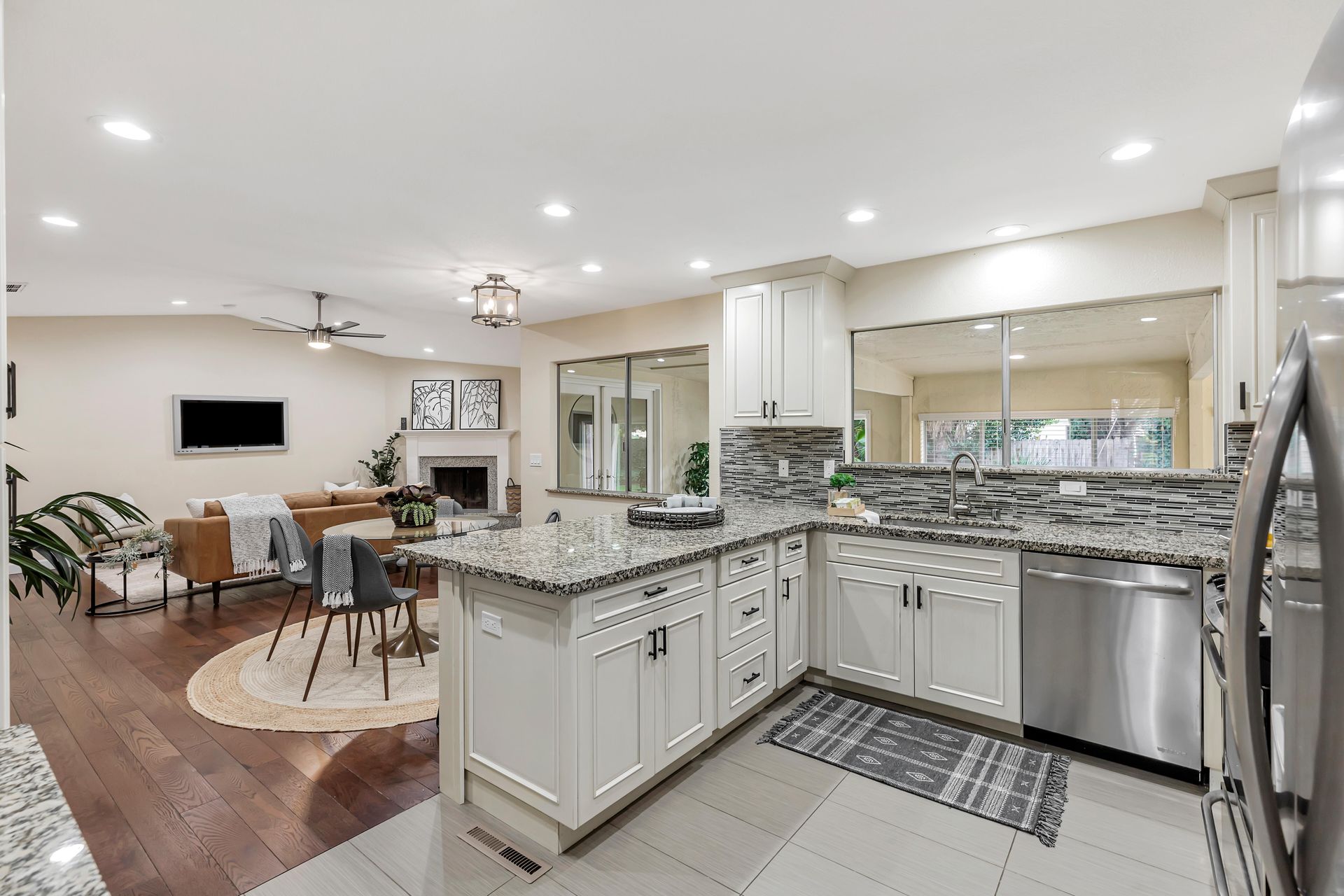 Welcome to the Greenhaven Pocket neighborhood. This well-maintained single-story home is move-in ready! It is located on a peaceful residential street across from Frank Seymour Park. The home has four bedrooms, two and one-half bathrooms and approximately 2,318 square feet on an approximately .21-acre lot. The updated kitchen has granite counters and stainless-steel appliances. The family room has a fireplace with a granite surround and raised hearth and opens to the attached sunroom with French doors. The sunroom has sliding glass doors to the patio and backyard and provides extra space for an office or exercise room. There is a separate dining space and formal living room. The large primary bedroom and bathroom have lots of closet space. Inside laundry room includes washer and dryer. Beautiful hardwood floors in main living areas. The huge backyard has plenty of space for entertaining. Attached two-car garage.