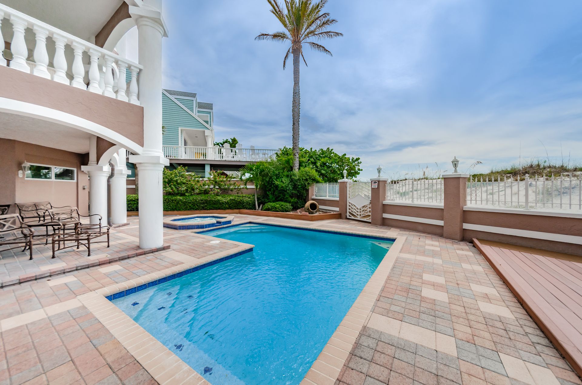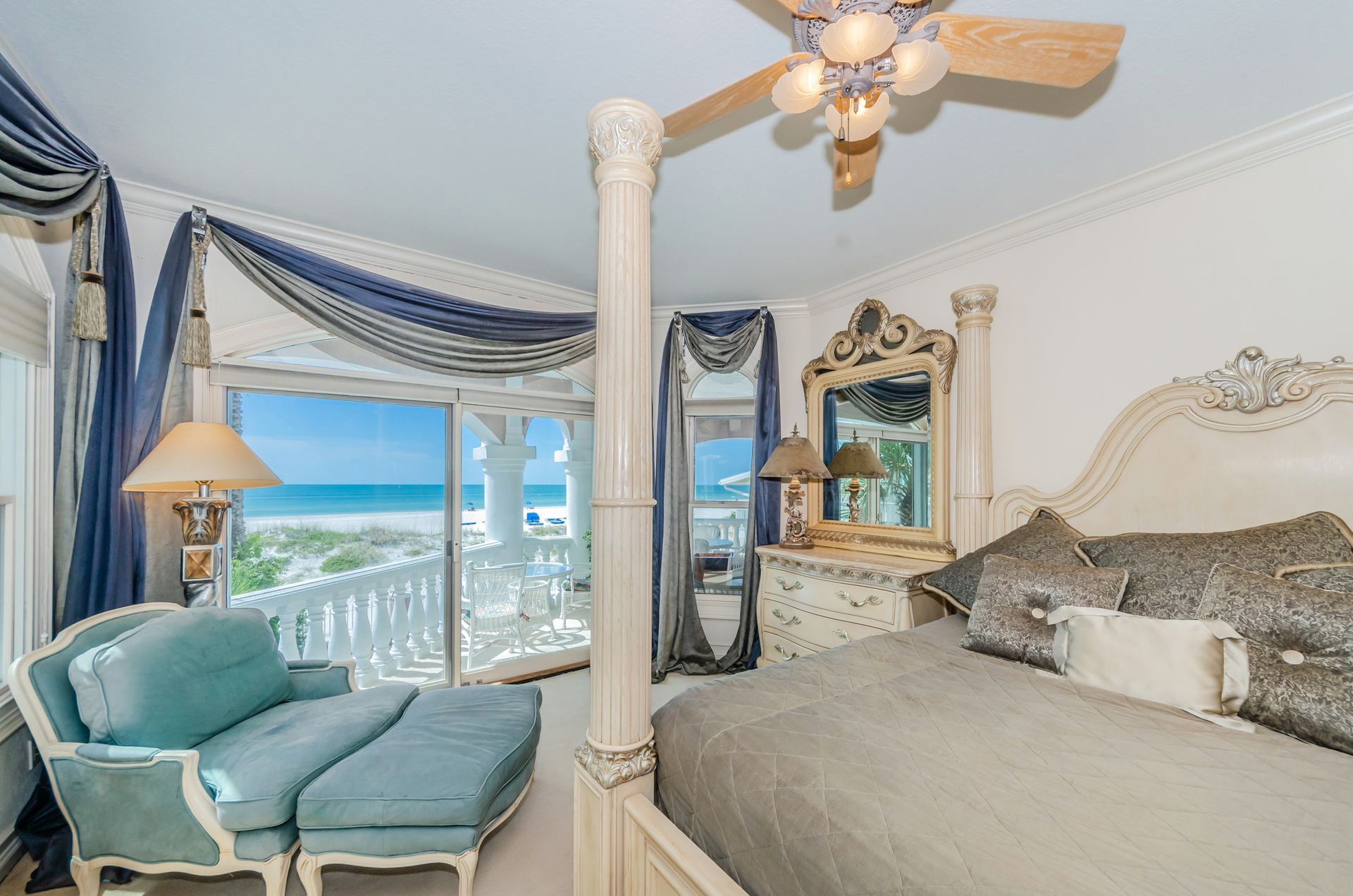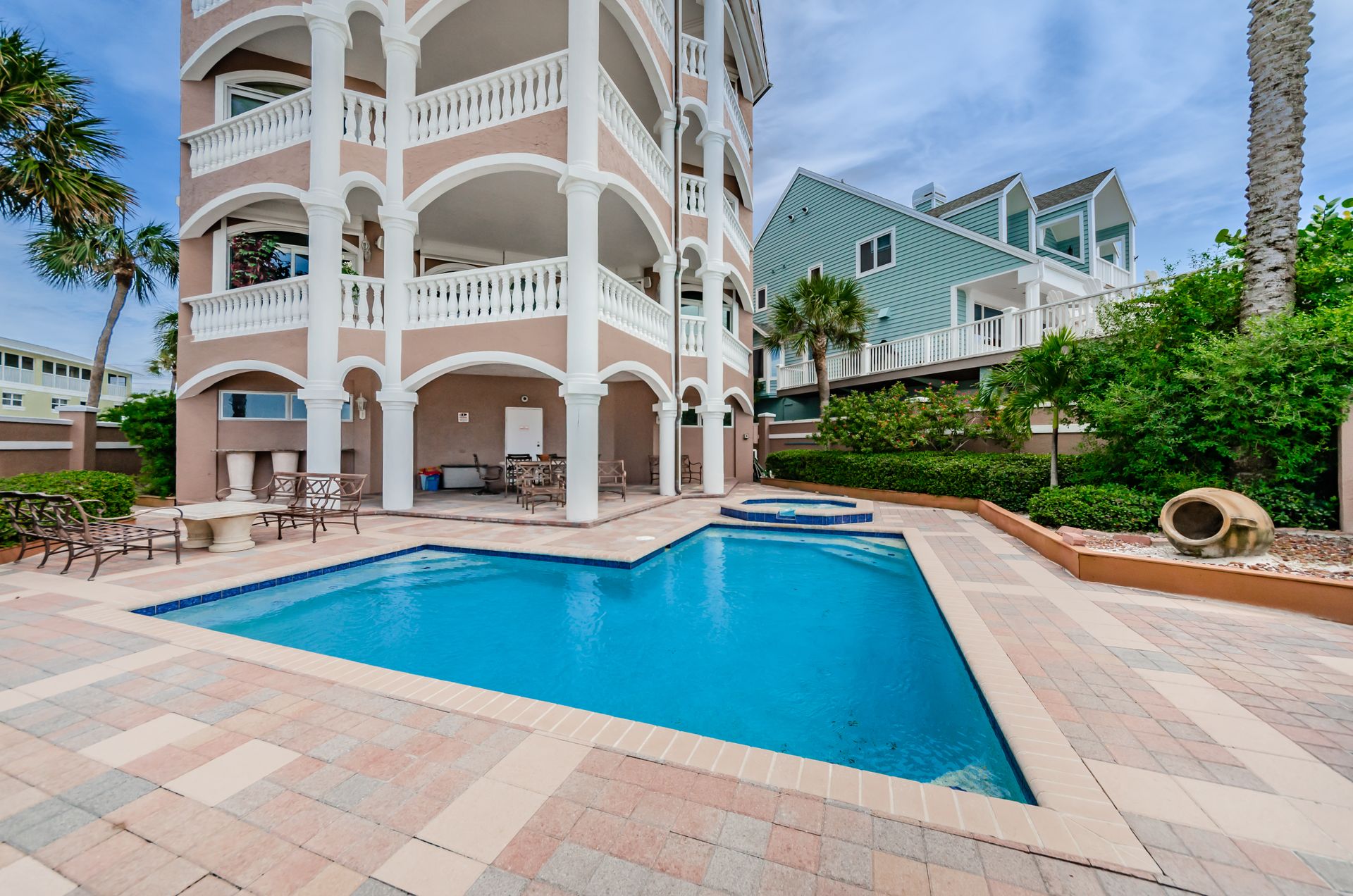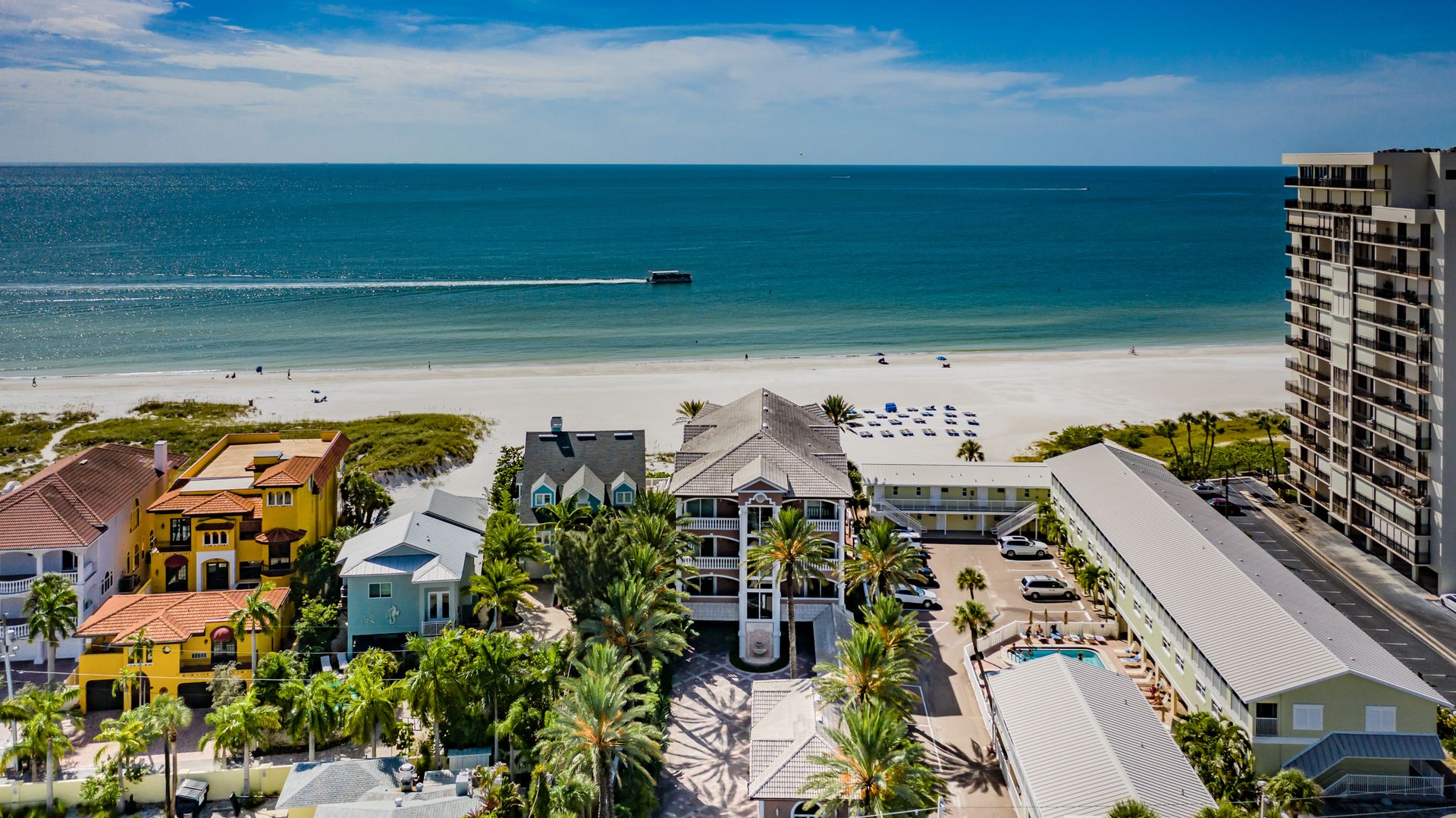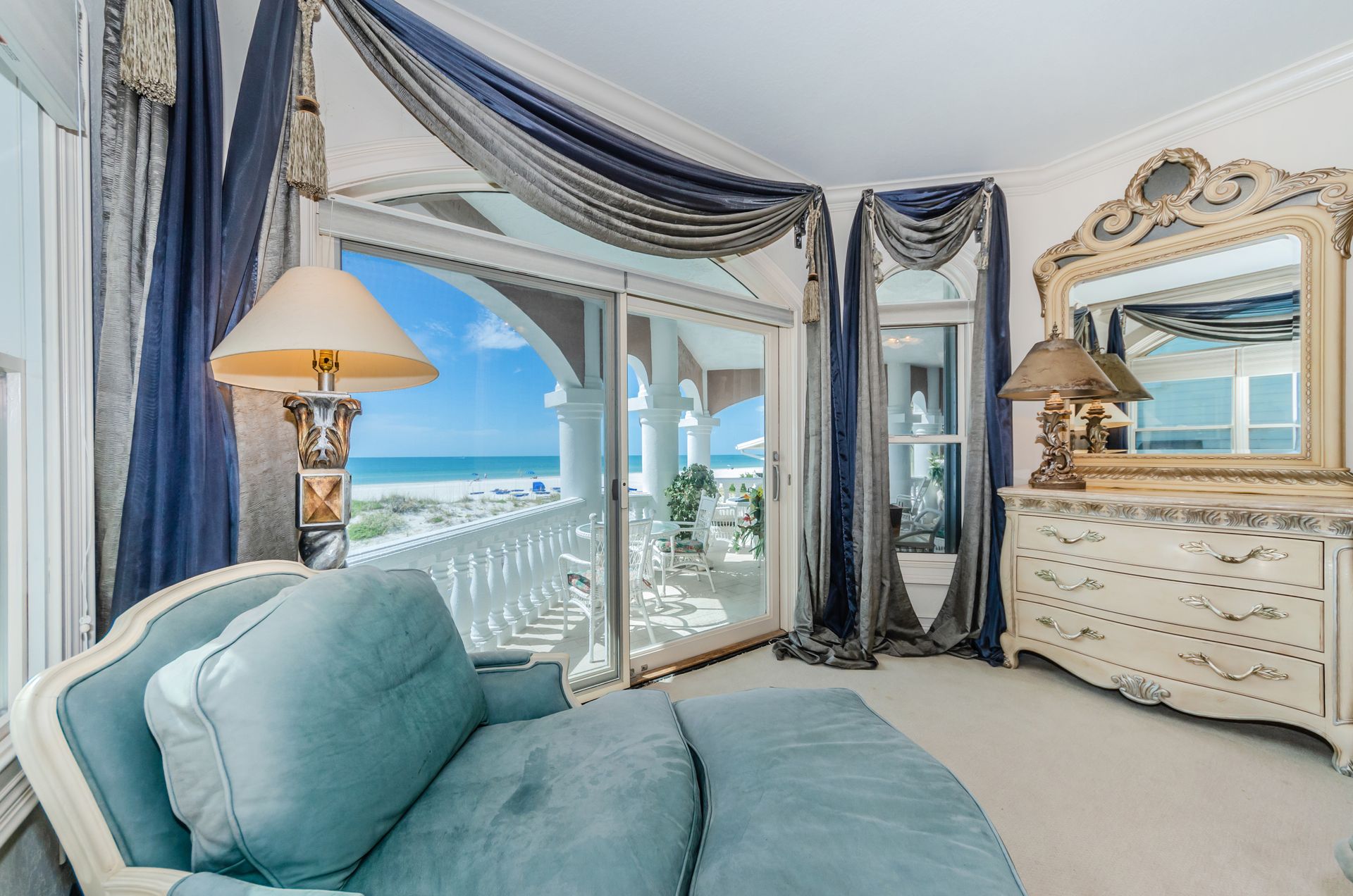Welcome home to an exclusive waterfront condo which maintains the appearance of a mansion featuring one of the largest prime Gulf of Mexico lots, with endless water views that St Pete Beach has to offer. A home like no other! The exclusive condo is located directly on the sandy white beaches with spectacular views of the azure water. Where luxury meets privacy & serenity. Custom details throughout this one-level beauty will impress even the most elusive buyer from double paned windows & doors, granite counter tops in all bathrooms, kitchen and wet bar, imported Italian tile flooring, custom handcrafted crown molding and cabinets, chef’s kitchen and plenty of storage in this beach gem. Two Master suites with unspoiled water views split with ensuite bathrooms, large walk-in closets and balcony for spectacular sunsets over the Gulf of Mexico add to the luxury of this unit. Two additional guest bedrooms split from the masters at the front of the home. Enter through ornate iron electronic gates to this compound with a surveillance system & elevator for your privacy & security. The grounds offer imported palms and tropical landscaping and custom paver driveway & walkways. This luxurious home provides large living areas with amenities not found in most condos on the beach; private beach access, private Gulf pool, spa, double garages and plenty of outdoor patios for entertaining. Built next to other single-family homes this luxury home has stunning views of the Gulf from a generous balcony and most rooms. There’s a private elevator foyer for each of the 3 residences. Casablanca on the Beach lifts you to the pinnacle of living. Be prepared to check everything off your dream home wish-list.