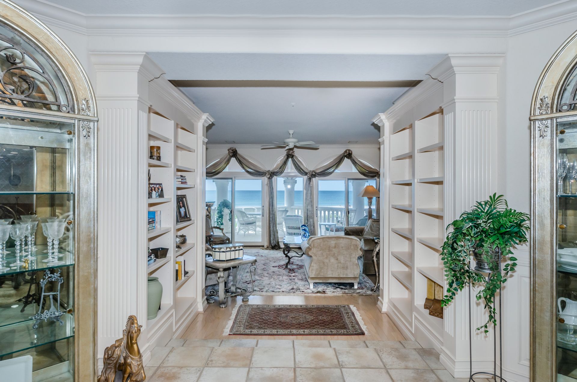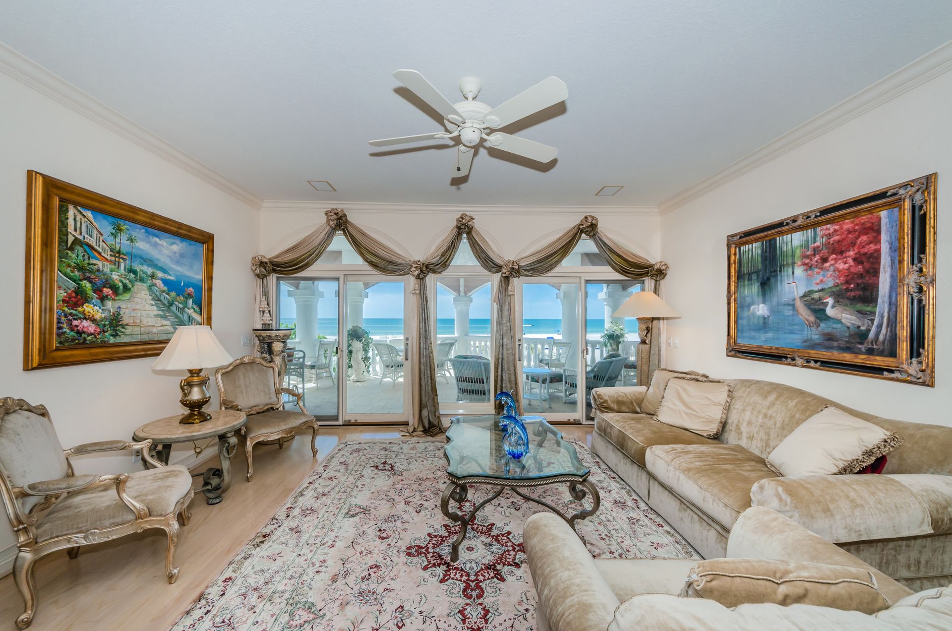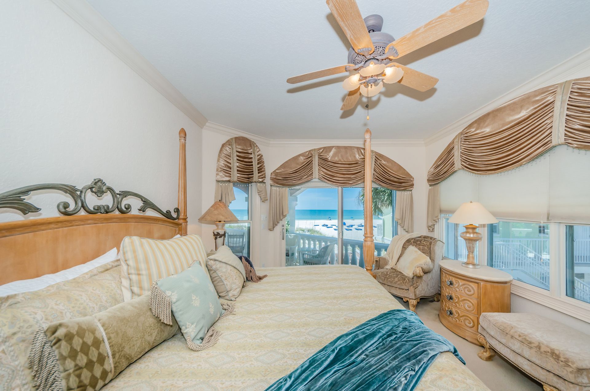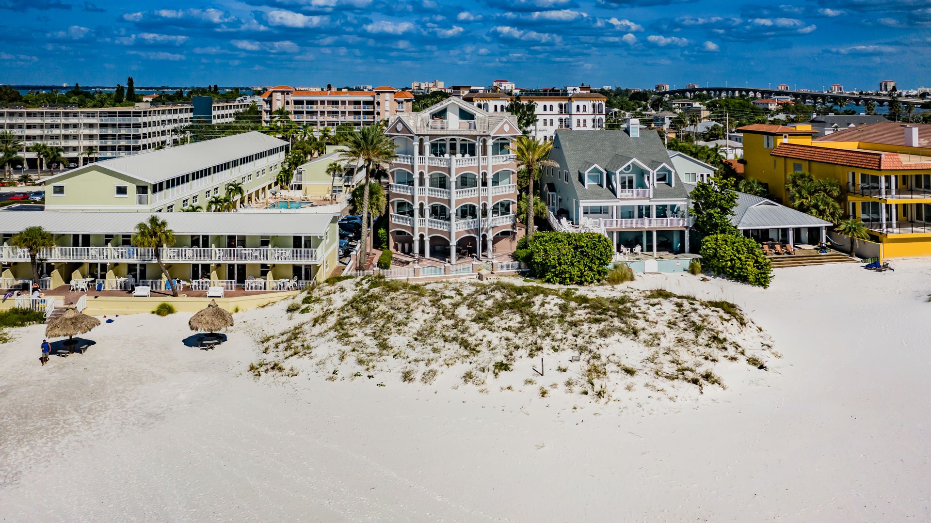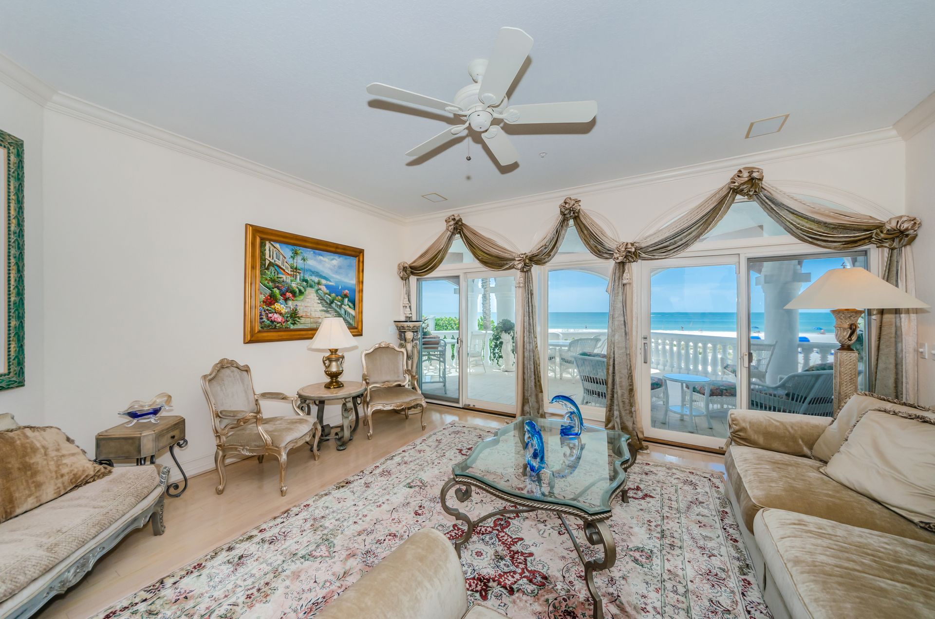 Welcome home to an exclusive waterfront condo which maintains the appearance of a mansion featuring one of the largest prime Gulf of Mexico lots, with endless water views that St Pete Beach has to offer. A home like no other! The exclusive condo is located directly on the sandy white beaches with spectacular views of the azure water. Where luxury meets privacy & serenity. Custom details throughout this one-level beauty will impress even the most elusive buyer from double paned windows & doors, granite counter tops in all bathrooms, kitchen and wet bar, imported Italian tile flooring, custom handcrafted crown molding and cabinets, chef’s kitchen and plenty of storage in this beach gem. Two Master suites with unspoiled water views split with ensuite bathrooms, large walk-in closets and balcony for spectacular sunsets over the Gulf of Mexico add to the luxury of this unit. Two additional guest bedrooms split from the masters at the front of the home. Enter through ornate iron electronic gates to this compound with a surveillance system & elevator for your privacy & security. The grounds offer imported palms and tropical landscaping and custom paver driveway & walkways. This luxurious home provides large living areas with amenities not found in most condos on the beach; private beach access, private Gulf pool, spa, double garages and plenty of outdoor patios for entertaining. Built next to other single-family homes this luxury home has stunning views of the Gulf from a generous balcony and most rooms. There’s a private elevator foyer for each of the 3 residences. Casablanca on the Beach lifts you to the pinnacle of living. Be prepared to check everything off your dream home wish-list.
