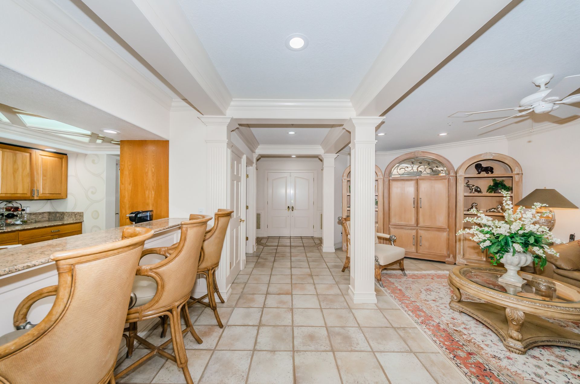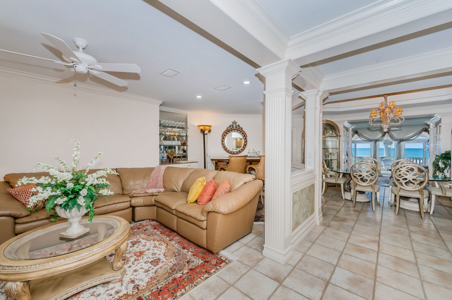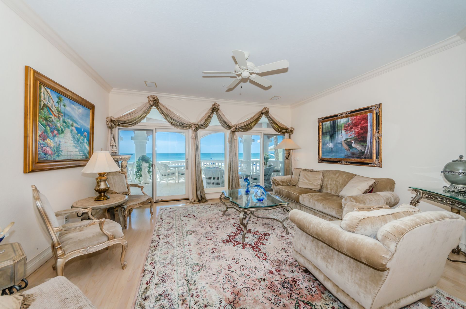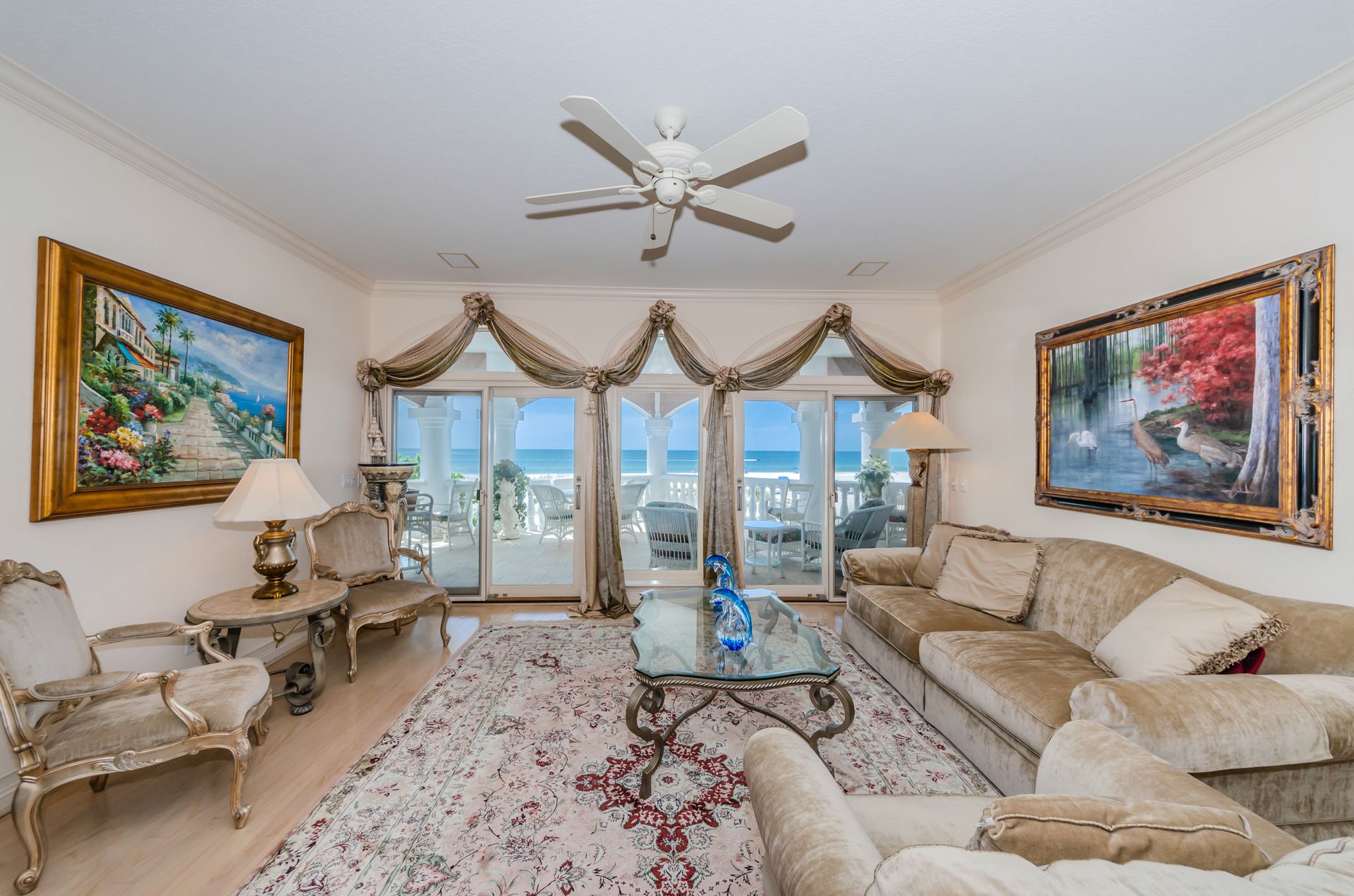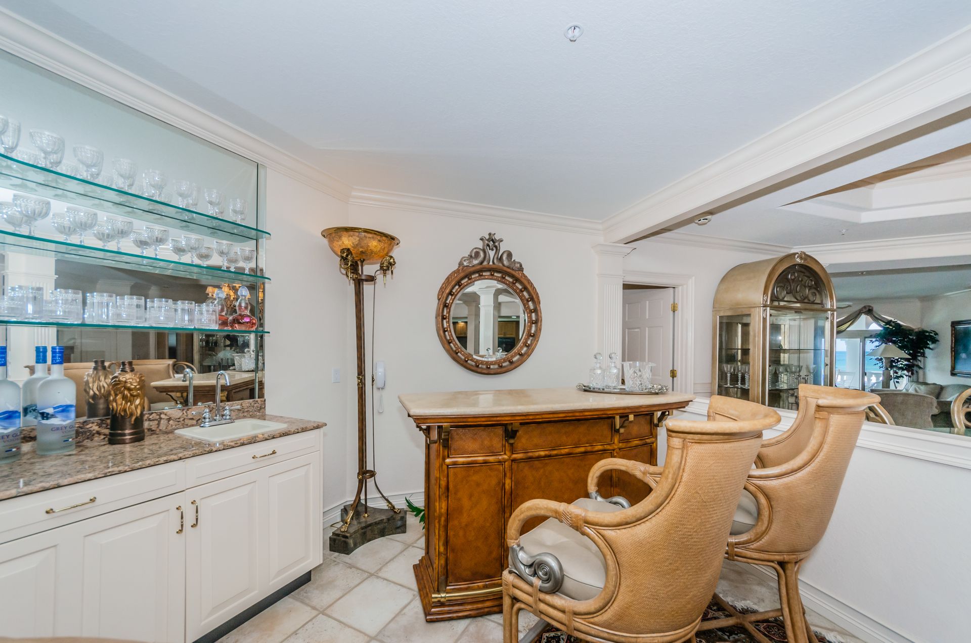Welcome home to an exclusive waterfront condo which maintains the appearance of a mansion featuring one of the largest prime Gulf of Mexico lots, with endless water views that St Pete Beach has to offer. A home like no other! The exclusive condo is located directly on the sandy white beaches with spectacular views of the azure water. Where luxury meets privacy & serenity. Custom details throughout this one-level beauty will impress even the most elusive buyer from double paned windows & doors, granite counter tops in all bathrooms, kitchen and wet bar, imported Italian tile flooring, custom handcrafted crown molding and cabinets, chef’s kitchen and plenty of storage in this beach gem. Two Master suites with unspoiled water views split with ensuite bathrooms, large walk-in closets and balcony for spectacular sunsets over the Gulf of Mexico add to the luxury of this unit. Two additional guest bedrooms split from the masters at the front of the home. Enter through ornate iron electronic gates to this compound with a surveillance system & elevator for your privacy & security. The grounds offer imported palms and tropical landscaping and custom paver driveway & walkways. This luxurious home provides large living areas with amenities not found in most condos on the beach; private beach access, private Gulf pool, spa, double garages and plenty of outdoor patios for entertaining. Built next to other single-family homes this luxury home has stunning views of the Gulf from a generous balcony and most rooms. There’s a private elevator foyer for each of the 3 residences. Casablanca on the Beach lifts you to the pinnacle of living. Be prepared to check everything off your dream home wish-list.