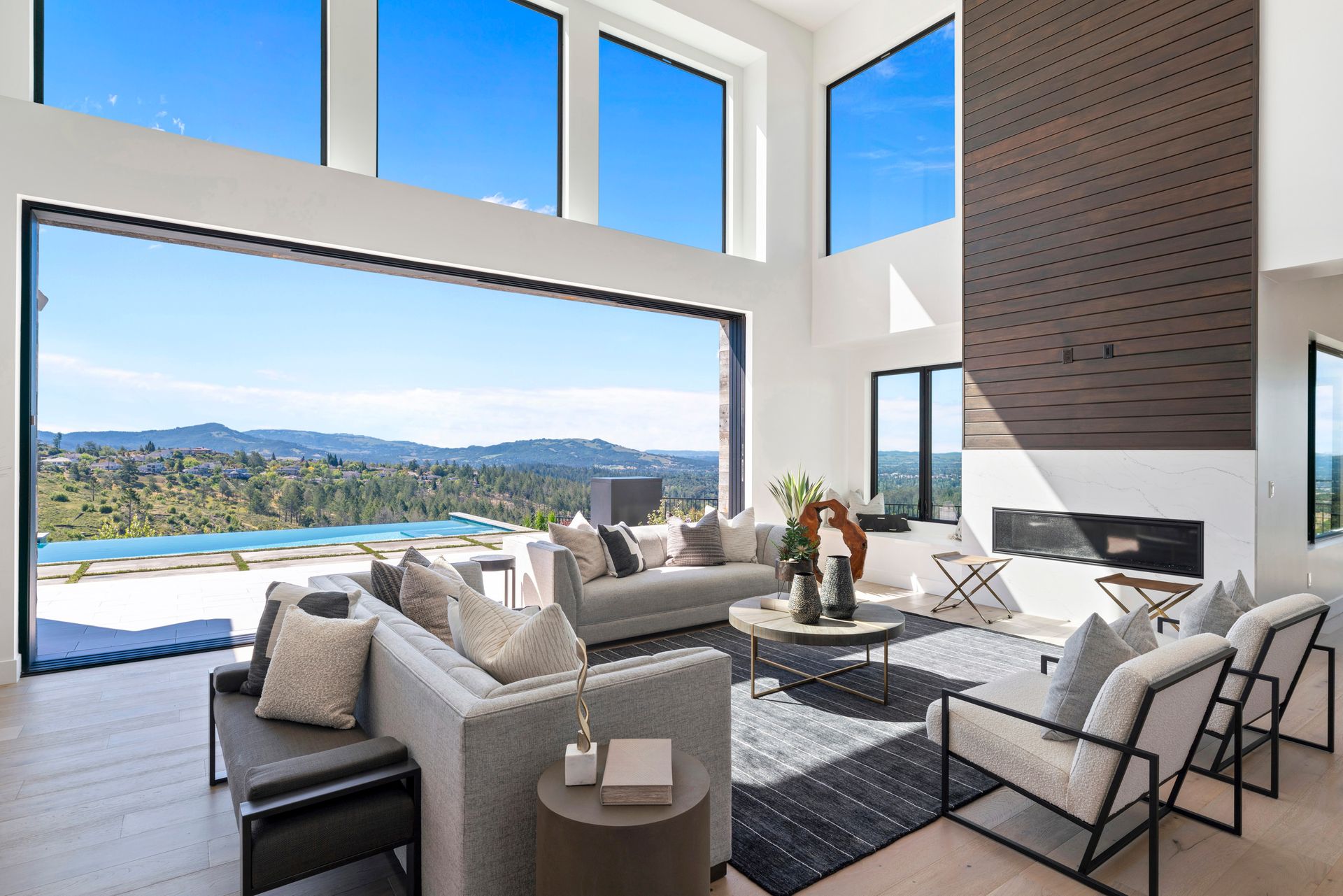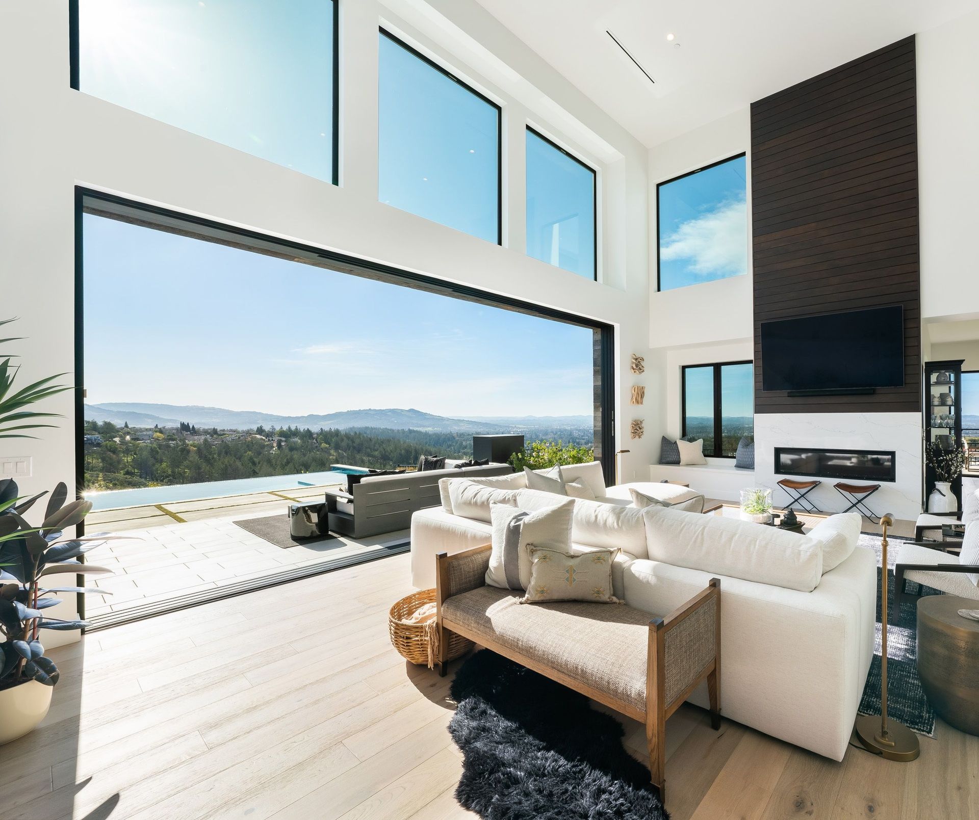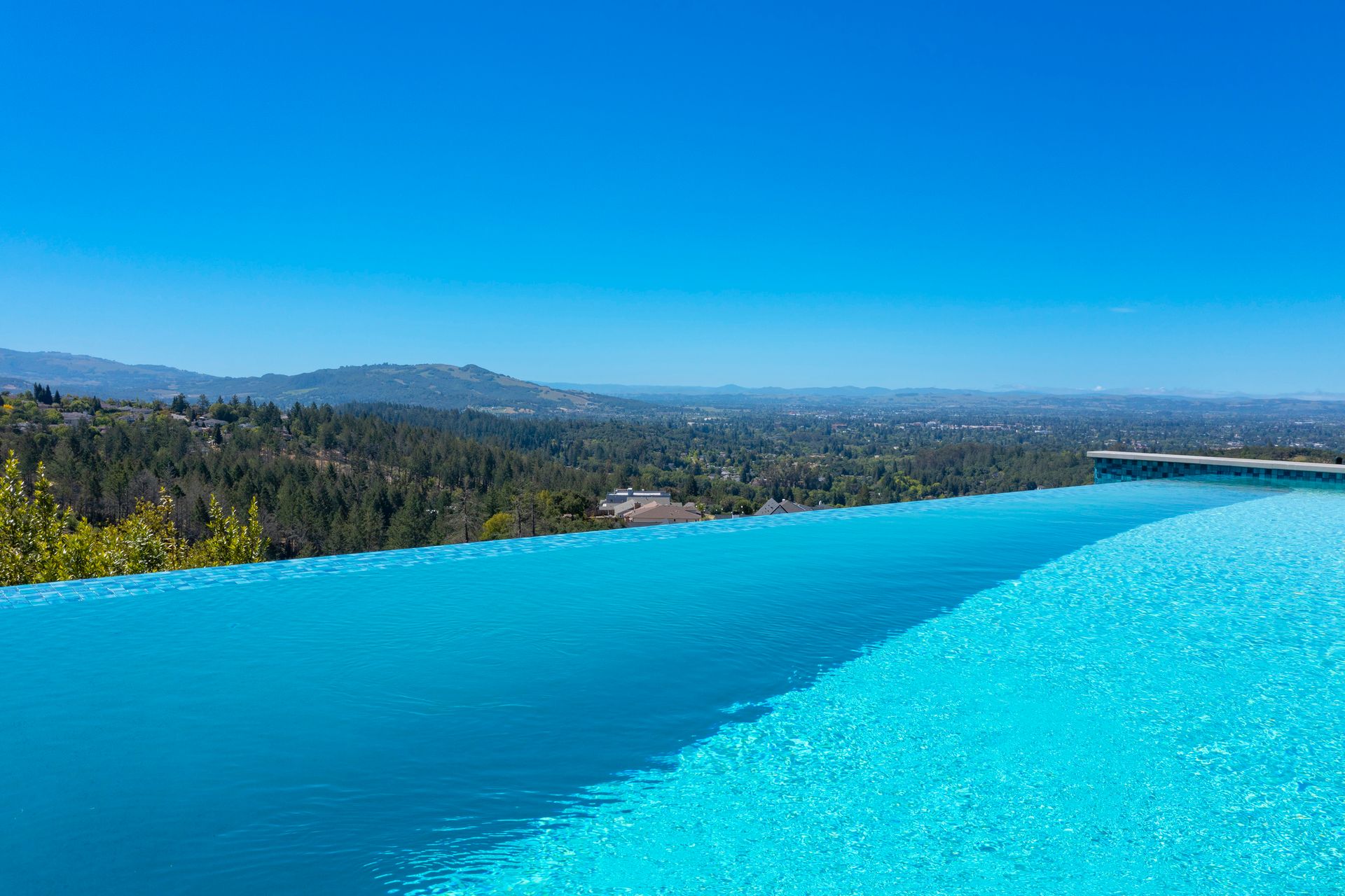 Unbelievable expansive views will greet you upon entering this one of a kind custom designed home. The contemporary style features stucco, metal, and re-claimed barn wood siding with metal roofing. The open-concept interior opens to the rear patio, infinity pool, covered terrace and rear yard areas through 20’ wide LaCantina disappearing moving glass doors from both the great room and the kitchen/dining room. On the main floor resides a stunning great room, kitchen, dining area, butler’s pantry, covered terrace area, primary suite, additional bedroom, laundry room plus a home office. On the upper level you will find the flex/game room, view terrace and 2 additional bedrooms. This fabulous 4 bedroom (plus office), 4.5 bath home has more than 4,500 square feet of interior living space. Enter the home through a grand pivoting glass entry door. It is elegantly appointed with hardwood flooring and cathedral ceilings. Ample parking is provided through double 2-car attached garages with contemporary glass doors. The generous ½ acre lot includes landscaped grounds, a raised redwood planting bed, an infinity edge heated pool with spa and ample outdoor living areas including a covered terrace with outdoor kitchen, taking advantage of the spectacular views. Seamless indoor-outdoor living is the essence of wine country lifestyle. Let the entertaining begin! This distinctive custom home is in the heart of wine country with close proximity to wineries, fine dining and the Sonoma County Airport.
