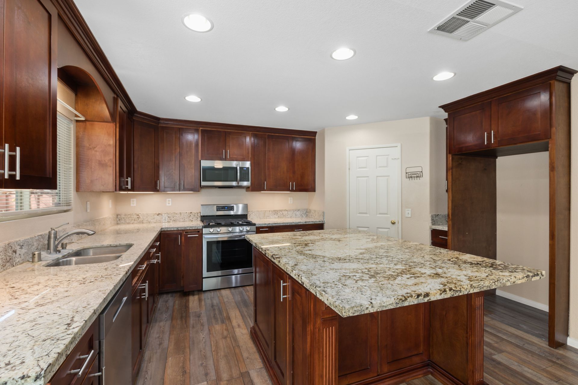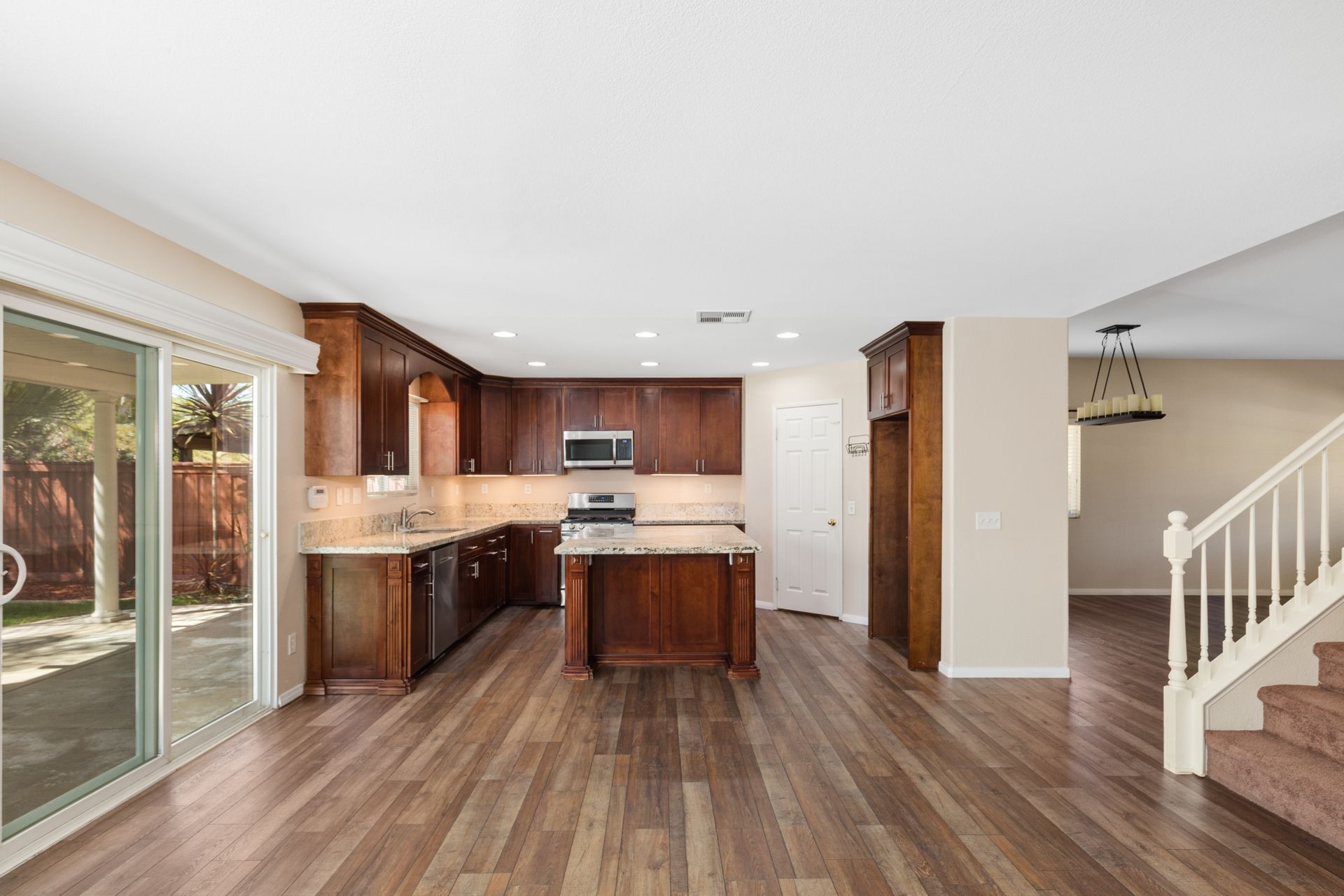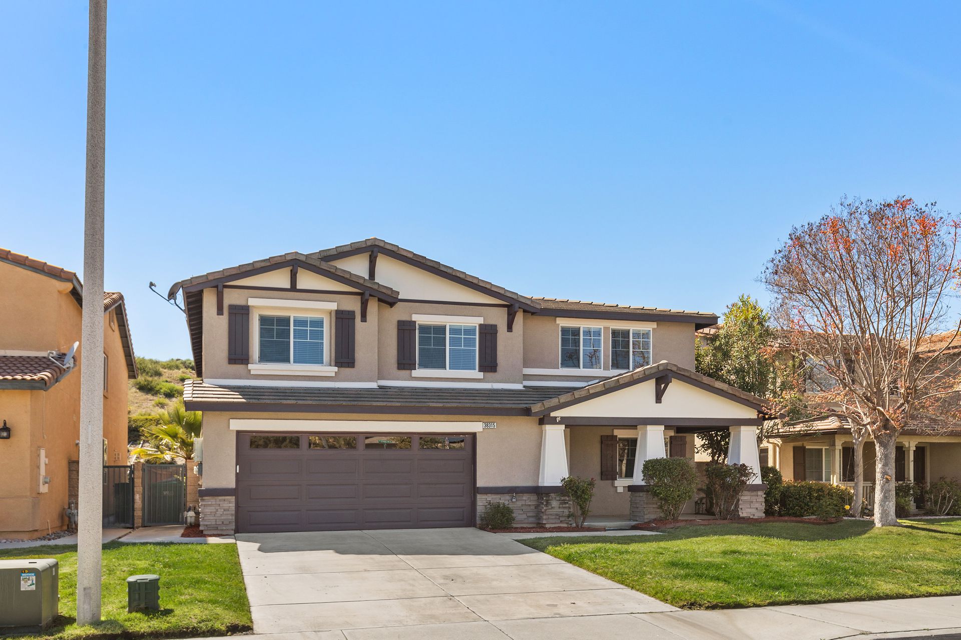 This beautiful home is located in the highly sought after community of Rancho Bella Vista with four spacious bedrooms and two and one-half bathrooms is built by Centex Homes and has an incredible loft on the second floor. The primary bath has been highly upgraded as well as the other two bathrooms. The home chef will love the highly efficient kitchen with granite counters, newer cabinetry with self closing drawers and cabinets, newer stainless appliances and two pull out spice racks on both sides of the range. Another fantastic feature is the large walk-in pantry making those storage a breeze. The kitchen opens up to a spacious family room with lots of natural light. Newer vinyl plank flooring has been installed in the living room, kitchen, laundry room and all bathrooms. The cozy front porch is a great place to sit and sip your morning coffee. A beautifully landscaped rear yard is ideal for evening enjoyment and entertaining with no rear neighbors and mountainside views. You’ll also enjoy the fully covered Alumawood patio cover and low maintenance landscaping. Appreciate being located close to great schools with the high school designated for this home being Chaparral High School. This lovely home is close to shopping, medical facilities, French Valley Airport and Temecula Wine Country. Come take a look, you won’t be disappointed in all this great home has to offer.