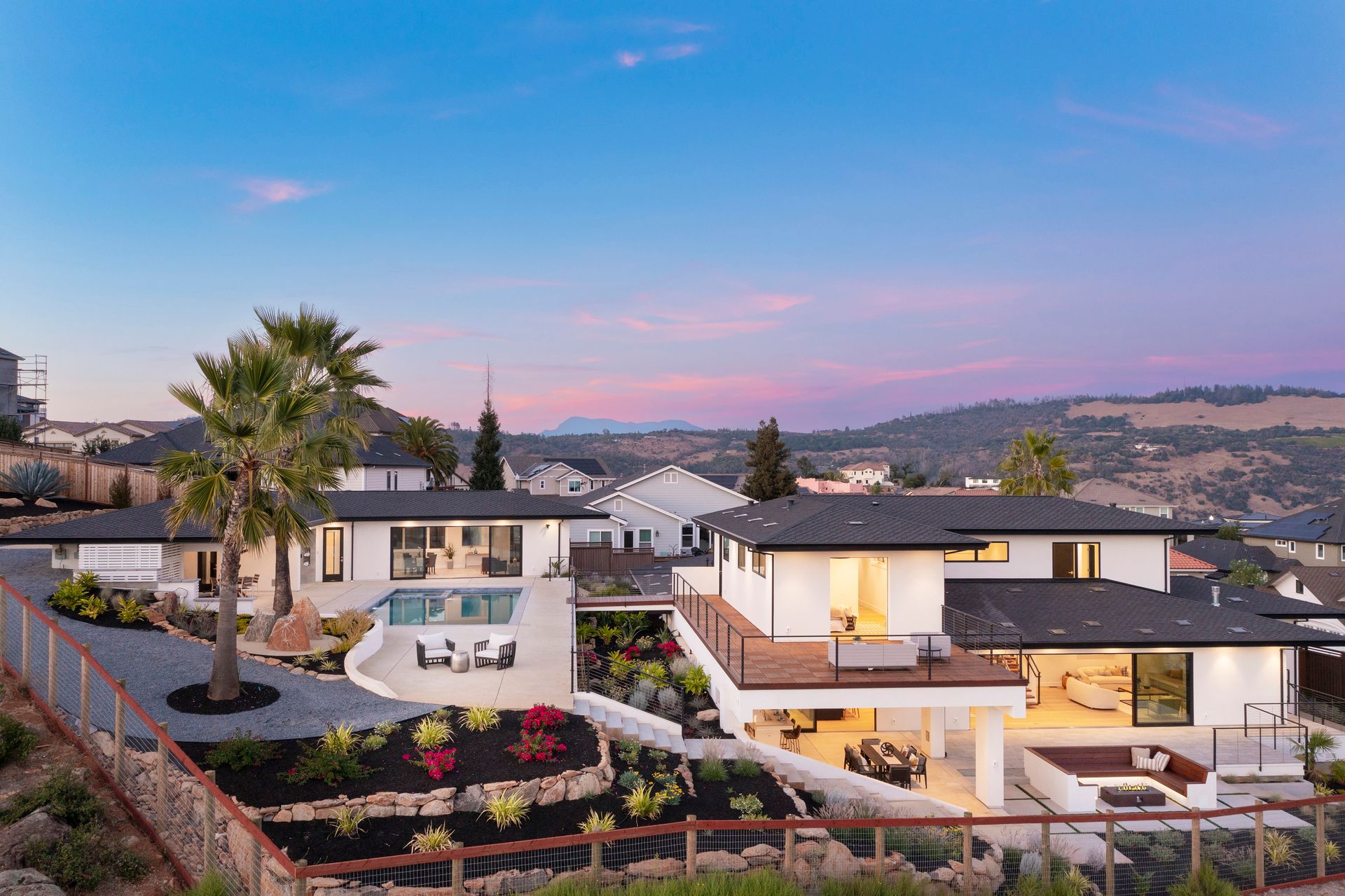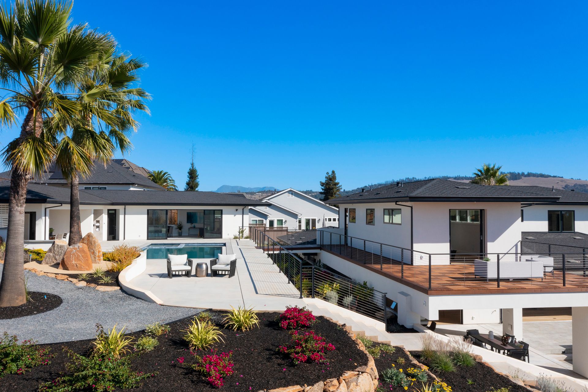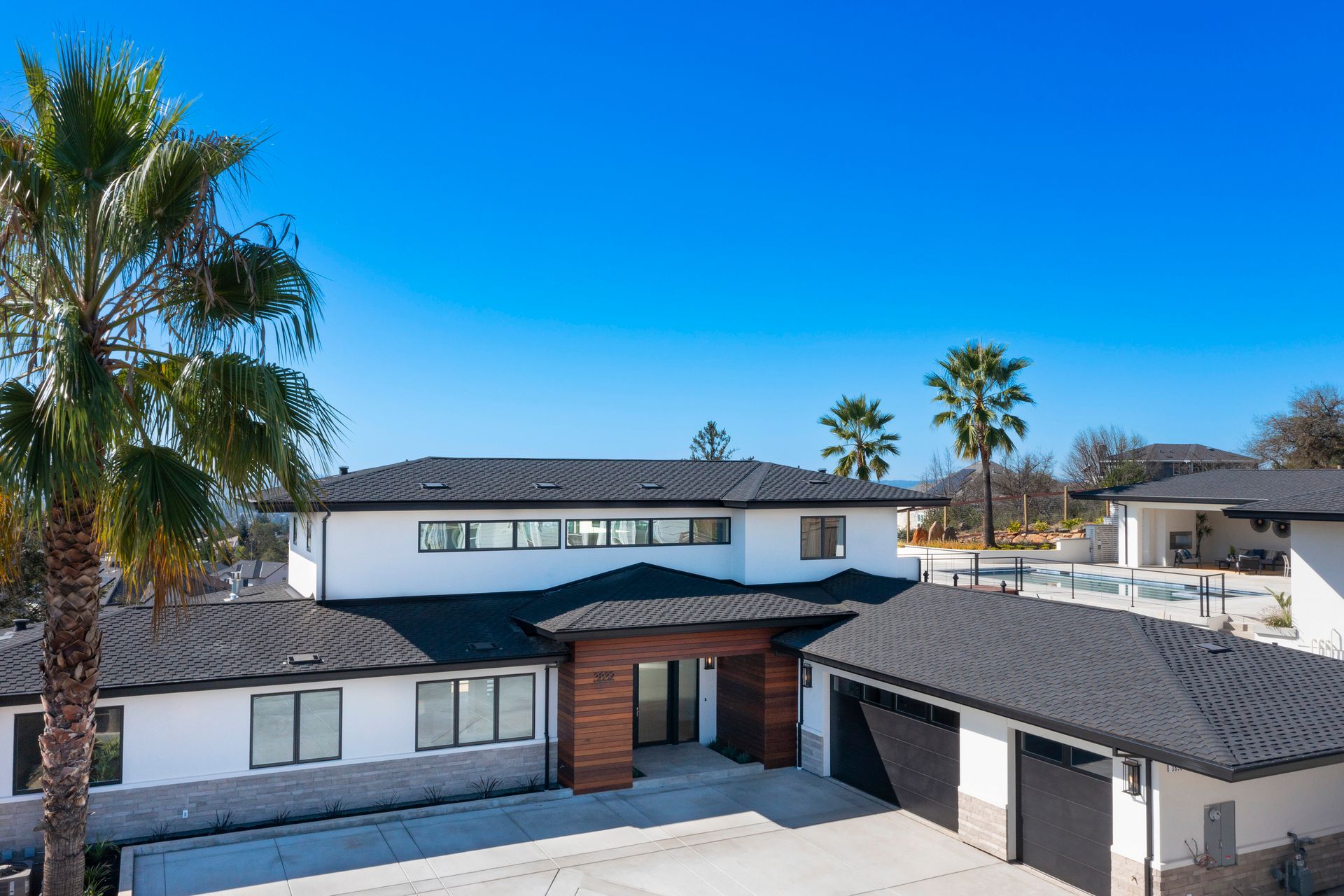 This newly constructed home in Fountaingrove sits on a generous .60 acre lot with views. The main house features 4 bedrooms and 4 full baths. The covered entry leads to a modern glass door taking you to the dramatic great room with vaulted ceiling and a wall of sliders to the rear patio and outdoor kitchen. The open concept floor plan features the great room with a gas fireplace and stone surround, wood flooring, and is open to the dining and kitchen. There is a separate sitting room/den. The chef’s kitchen is accented by a center island, Dacor appliances, wine refrigerator and 2 walk-in pantries. A covered outdoor kitchen includes a built-in Aspire by Hestan grill, bar stool seating, 2 ceiling fans and a fire pit surrounded by bench seating. A primary suite has direct access to a view terrace and the primary bath is highlighted by heated floors and an oversized steam shower. Cross a bridge to the additional dwelling unit with a great room, 1 bedroom, kitchen, and full bath. A pool cabana displays a linear gas fireplace, outdoor shower, bath, beverage refrigerator and 4 outdoor heaters making year-round entertaining a joy. Enjoy resort style living in this tropical setting with an amazing indoor/outdoor lifestyle.