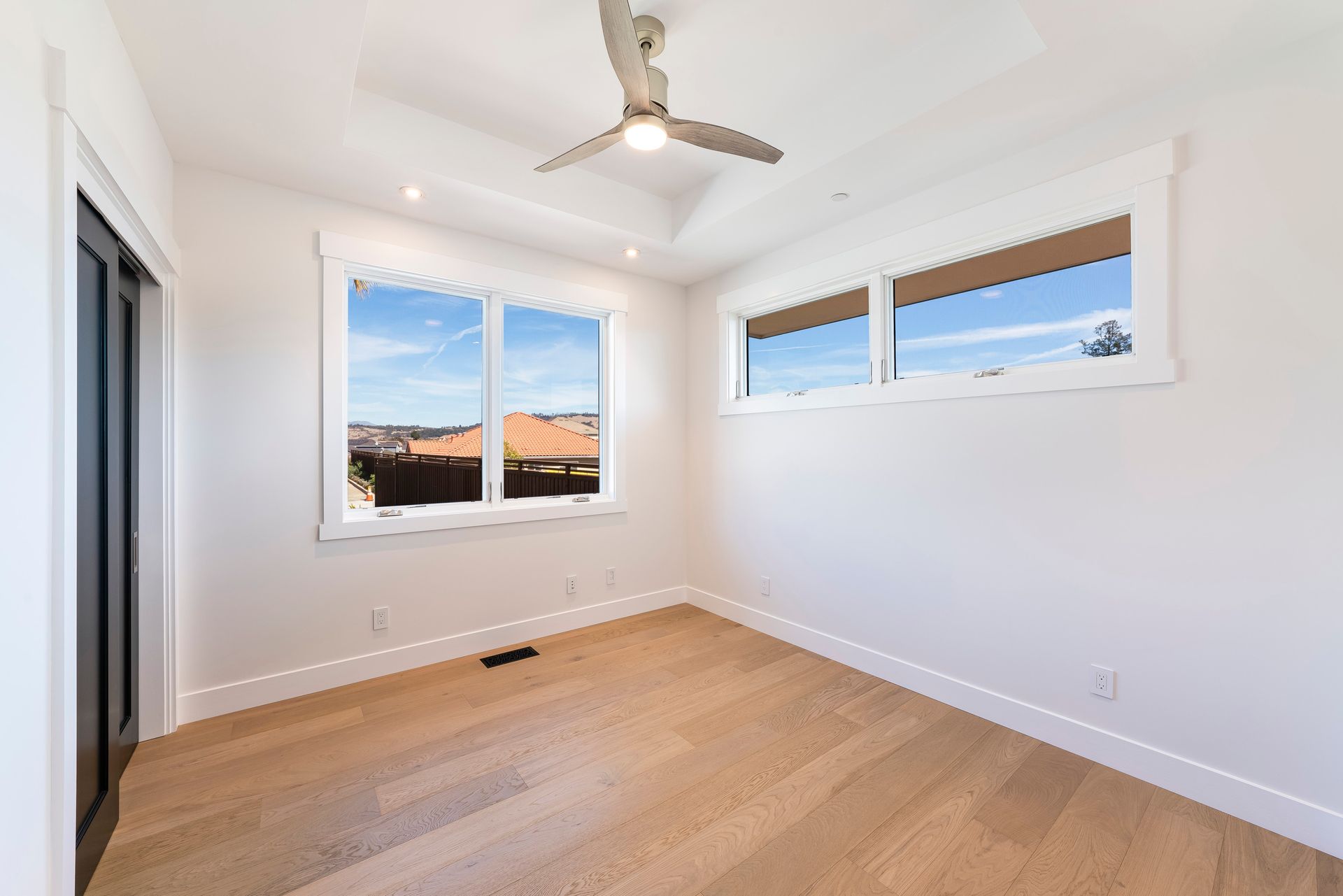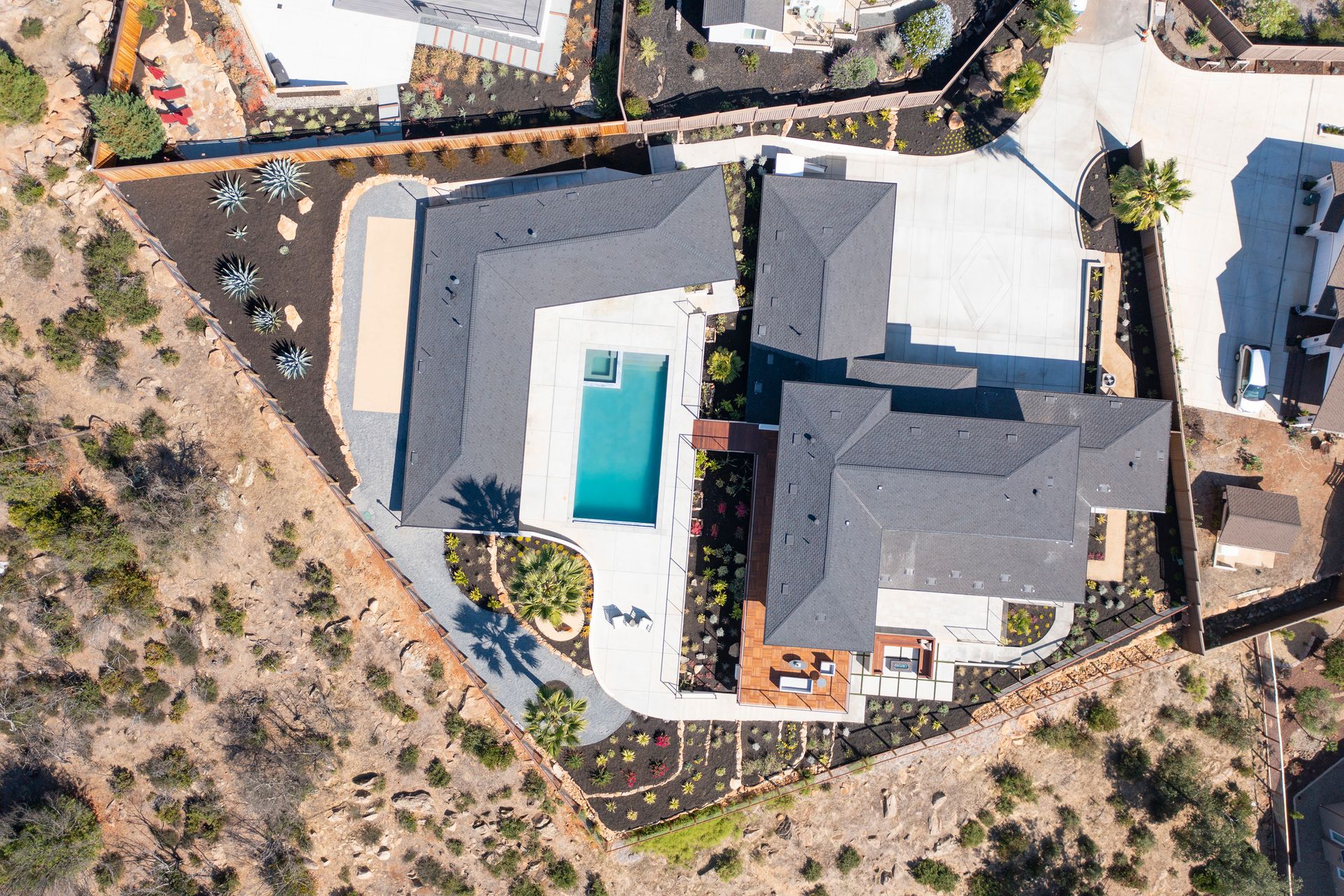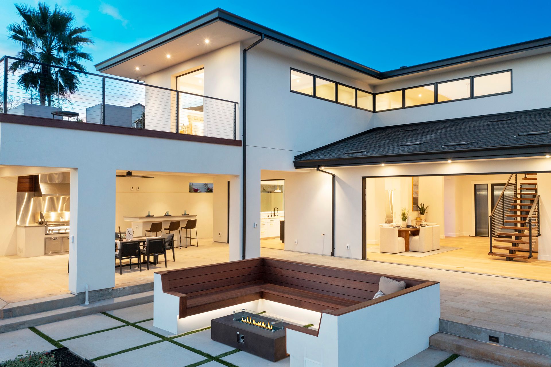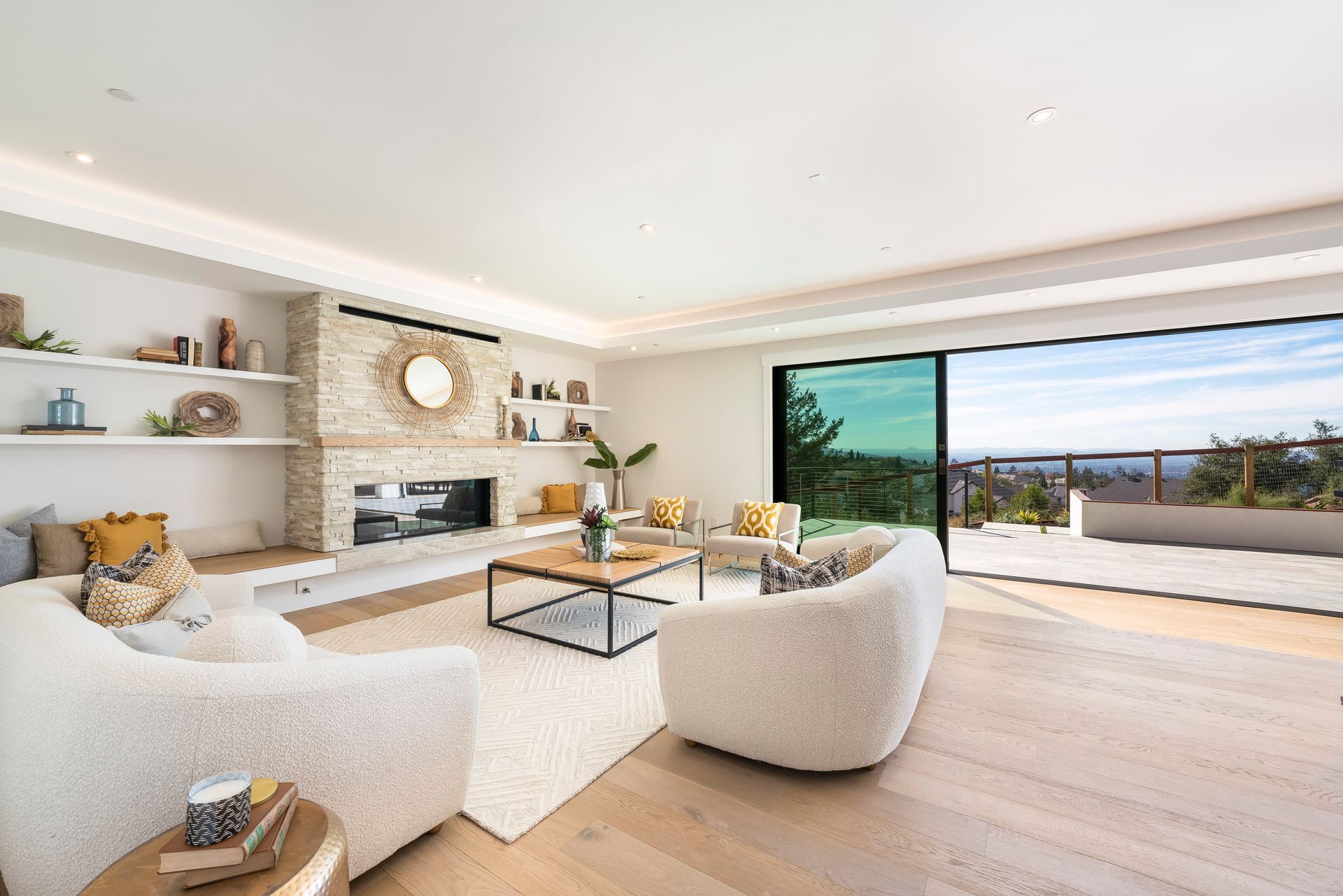 This newly constructed home in Fountaingrove sits on a generous .60 acre lot with views. The main house features 4 bedrooms and 4 full baths. The covered entry leads to a modern glass door taking you to the dramatic great room with vaulted ceiling and a wall of sliders to the rear patio and outdoor kitchen. The open concept floor plan features the great room with a gas fireplace and stone surround, wood flooring, and is open to the dining and kitchen. There is a separate sitting room/den. The chef’s kitchen is accented by a center island, Dacor appliances, wine refrigerator and 2 walk-in pantries. A covered outdoor kitchen includes a built-in Aspire by Hestan grill, bar stool seating, 2 ceiling fans and a fire pit surrounded by bench seating. A primary suite has direct access to a view terrace and the primary bath is highlighted by heated floors and an oversized steam shower. Cross a bridge to the additional dwelling unit with a great room, 1 bedroom, kitchen, and full bath. A pool cabana displays a linear gas fireplace, outdoor shower, bath, beverage refrigerator and 4 outdoor heaters making year-round entertaining a joy. Enjoy resort style living in this tropical setting with an amazing indoor/outdoor lifestyle.
