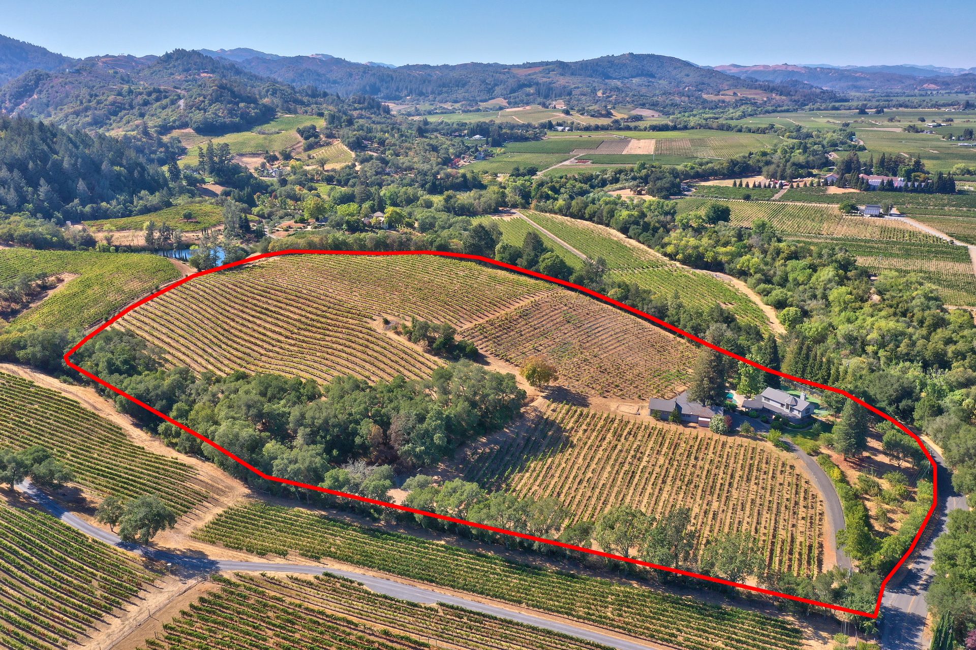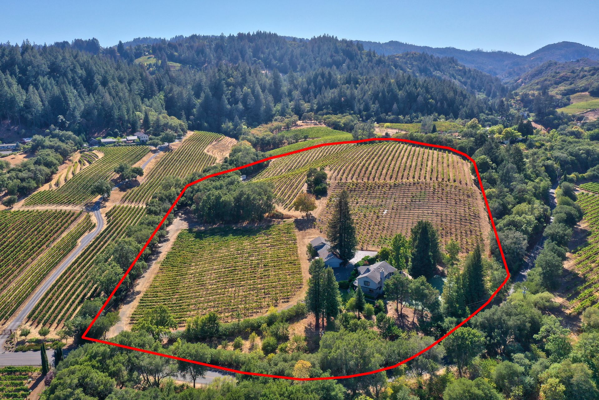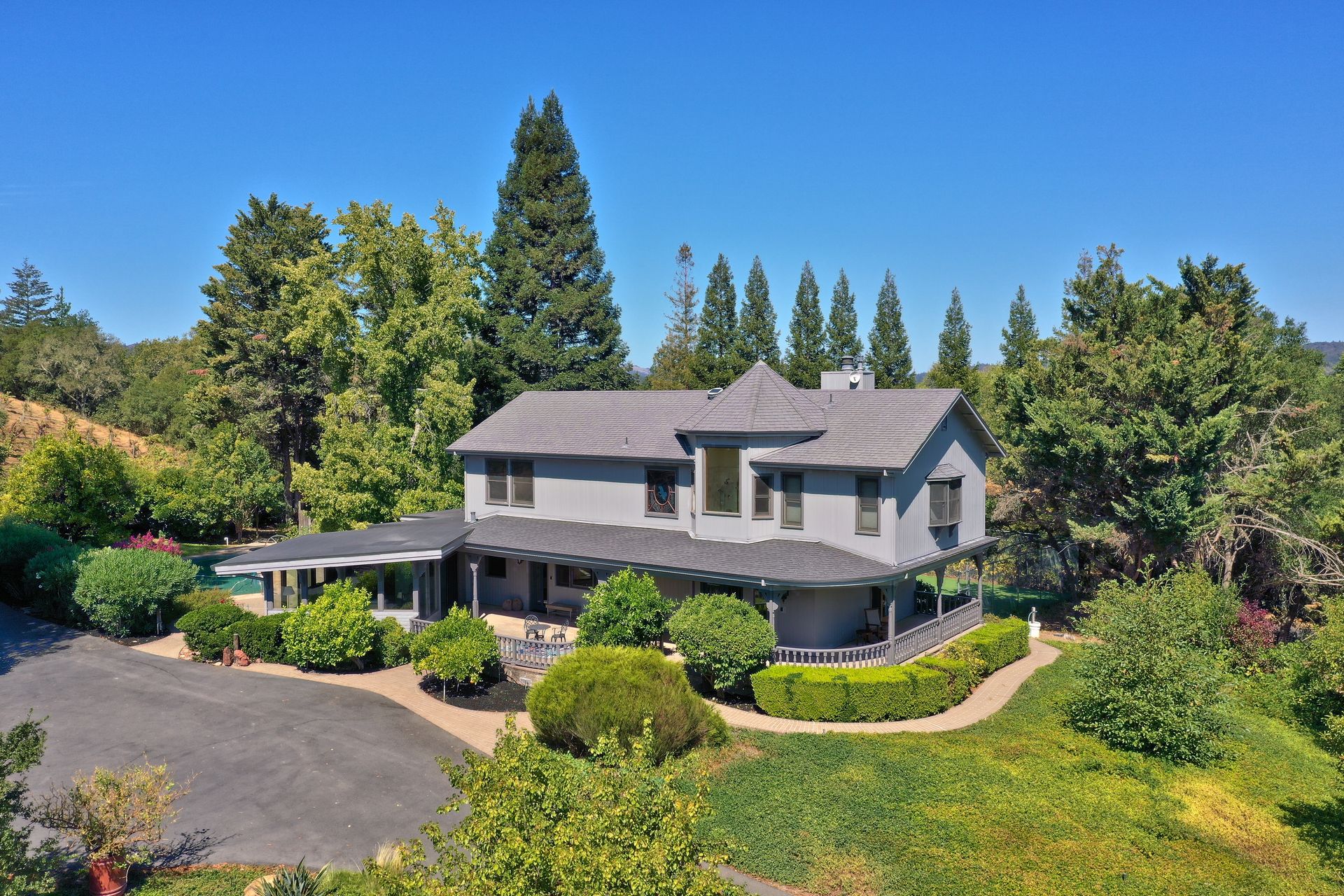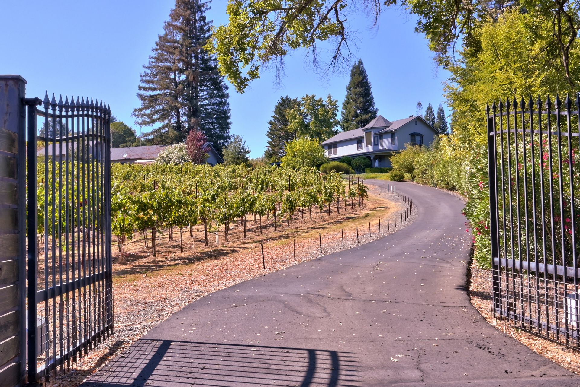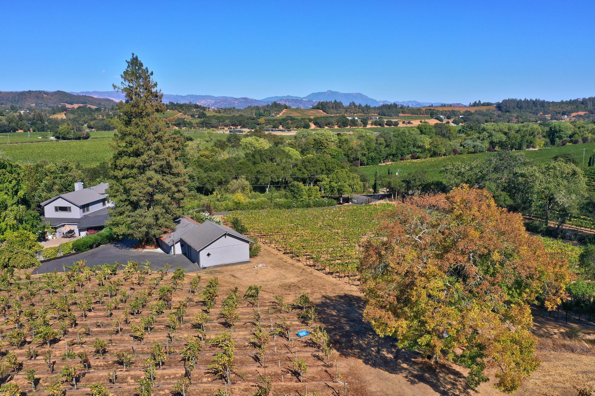 Situated in Sonoma County's picturesque Dry Creek Valley, world famous for its zinfandel, this country farmhouse sits on nearly 18 private acres of peaceful tranquility with spectacular valley and hillside views. The property, located around the corner from Lambert Bridge Winery, is just minutes to the desirable town of Healdsburg with its world class restaurants. The Dry Creek Valley is well known for its zinfandel, and some of the neighboring wineries on West Dry Creek Road have been rated among the world's best. This vineyard estate has 11 acres planted to zinfandel, a 3500 square foot home with 3 bedrooms, 5 full baths, 4-car garage plus a separate 2-car garage that could be used as a shop or wine making facility. Enter through the leaded glass double doors to the living room featuring a stately fireplace accented by a stone surround and mantle. A formal dining room and efficient kitchen will make cooking and serving guests a joy. Adjacent to the family room is an entertainer’s kitchen with easy access to the pool and patio. The curved staircase leads to the master suite and 2 additional bedrooms. Below is a partial basement with a second family room, full bath and abundant storage areas. Landscaping and grounds include a pebble tec pool and spa, a tennis/sport court, beautiful rose garden, citrus, and fruit trees. Enjoy all that the Sonoma County lifestyle has to offer.