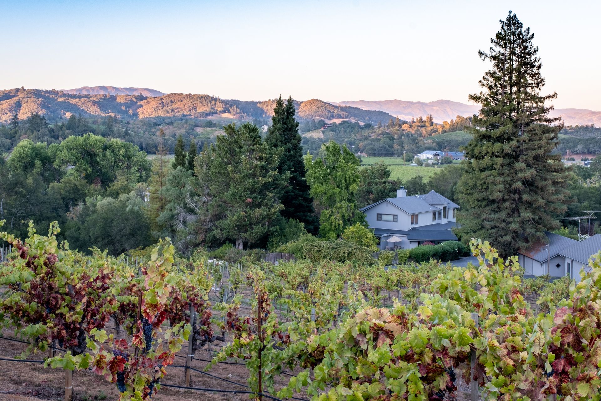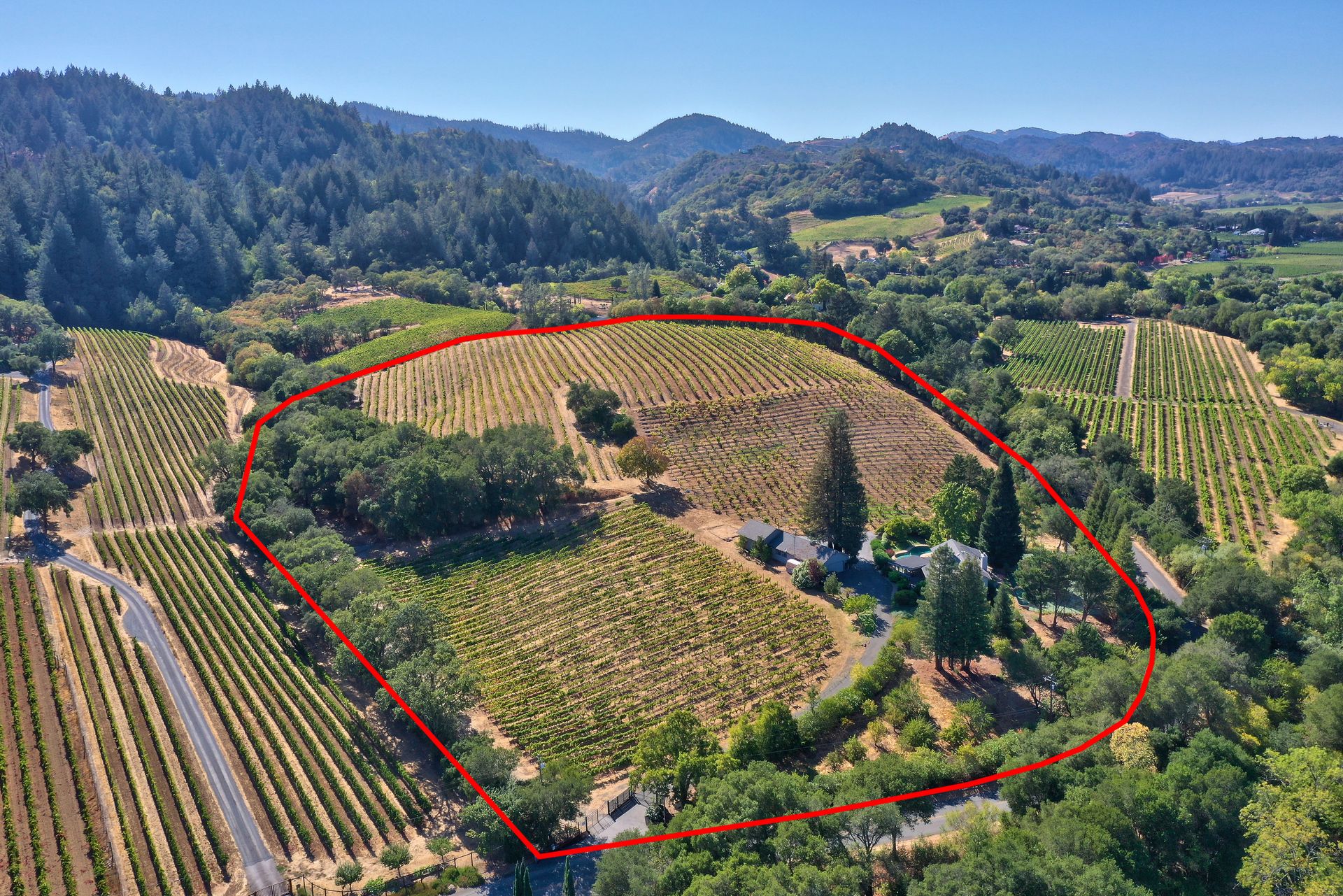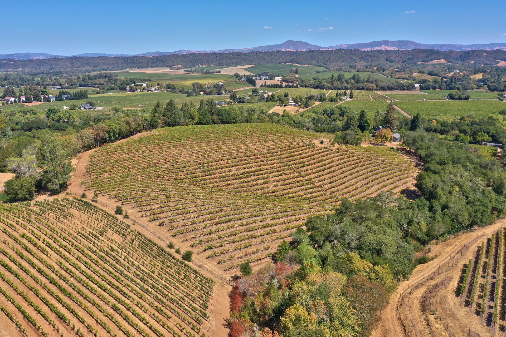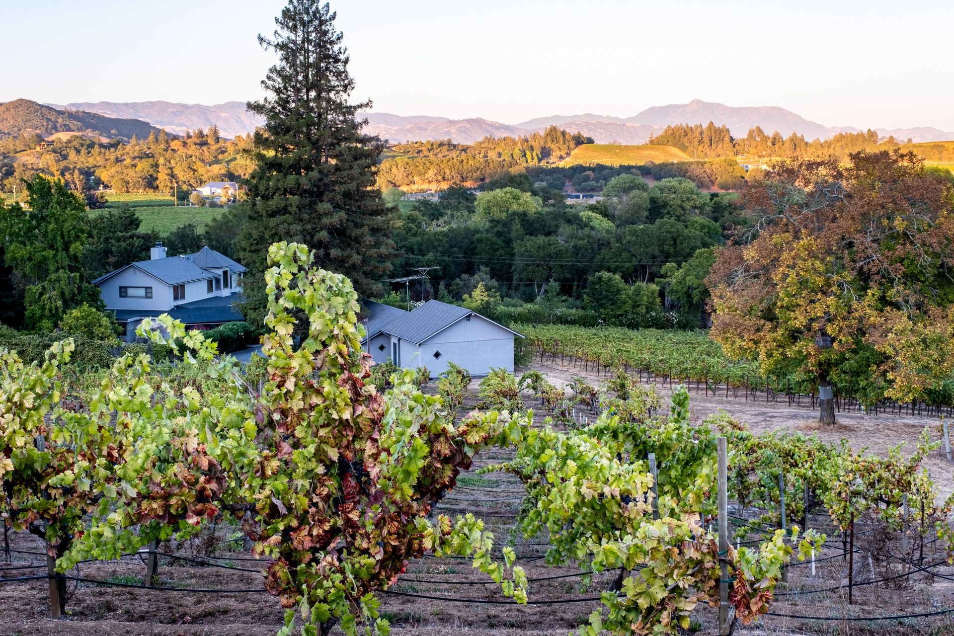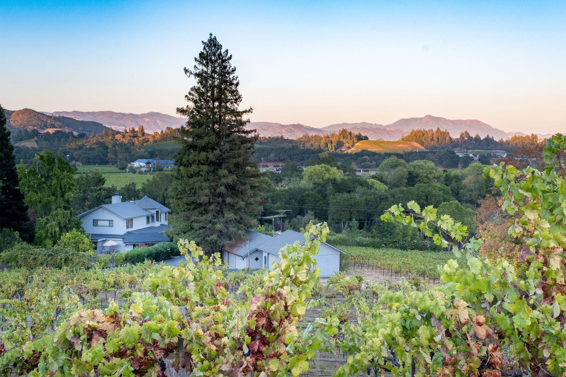 Situated in Sonoma County's picturesque Dry Creek Valley, world famous for its zinfandel, this country farmhouse sits on nearly 18 private acres of peaceful tranquility with spectacular valley and hillside views. The property, located around the corner from Lambert Bridge Winery, is just minutes to the desirable town of Healdsburg with its world class restaurants. The Dry Creek Valley is well known for its zinfandel, and some of the neighboring wineries on West Dry Creek Road have been rated among the world's best. This vineyard estate has 11 acres planted to zinfandel, a 3500 square foot home with 3 bedrooms, 5 full baths, 4-car garage plus a separate 2-car garage that could be used as a shop or wine making facility. Enter through the leaded glass double doors to the living room featuring a stately fireplace accented by a stone surround and mantle. A formal dining room and efficient kitchen will make cooking and serving guests a joy. Adjacent to the family room is an entertainer’s kitchen with easy access to the pool and patio. The curved staircase leads to the master suite and 2 additional bedrooms. Below is a partial basement with a second family room, full bath and abundant storage areas. Landscaping and grounds include a pebble tec pool and spa, a tennis/sport court, beautiful rose garden, citrus, and fruit trees. Enjoy all that the Sonoma County lifestyle has to offer.