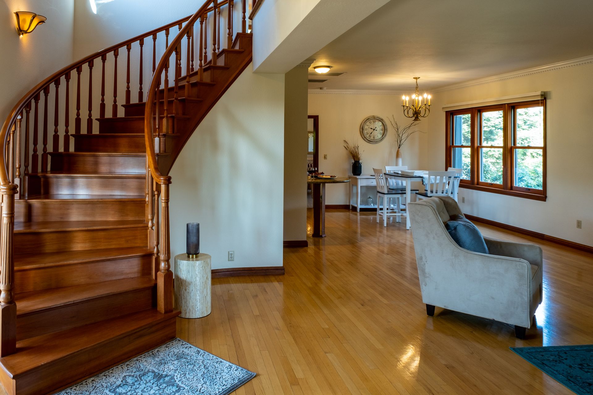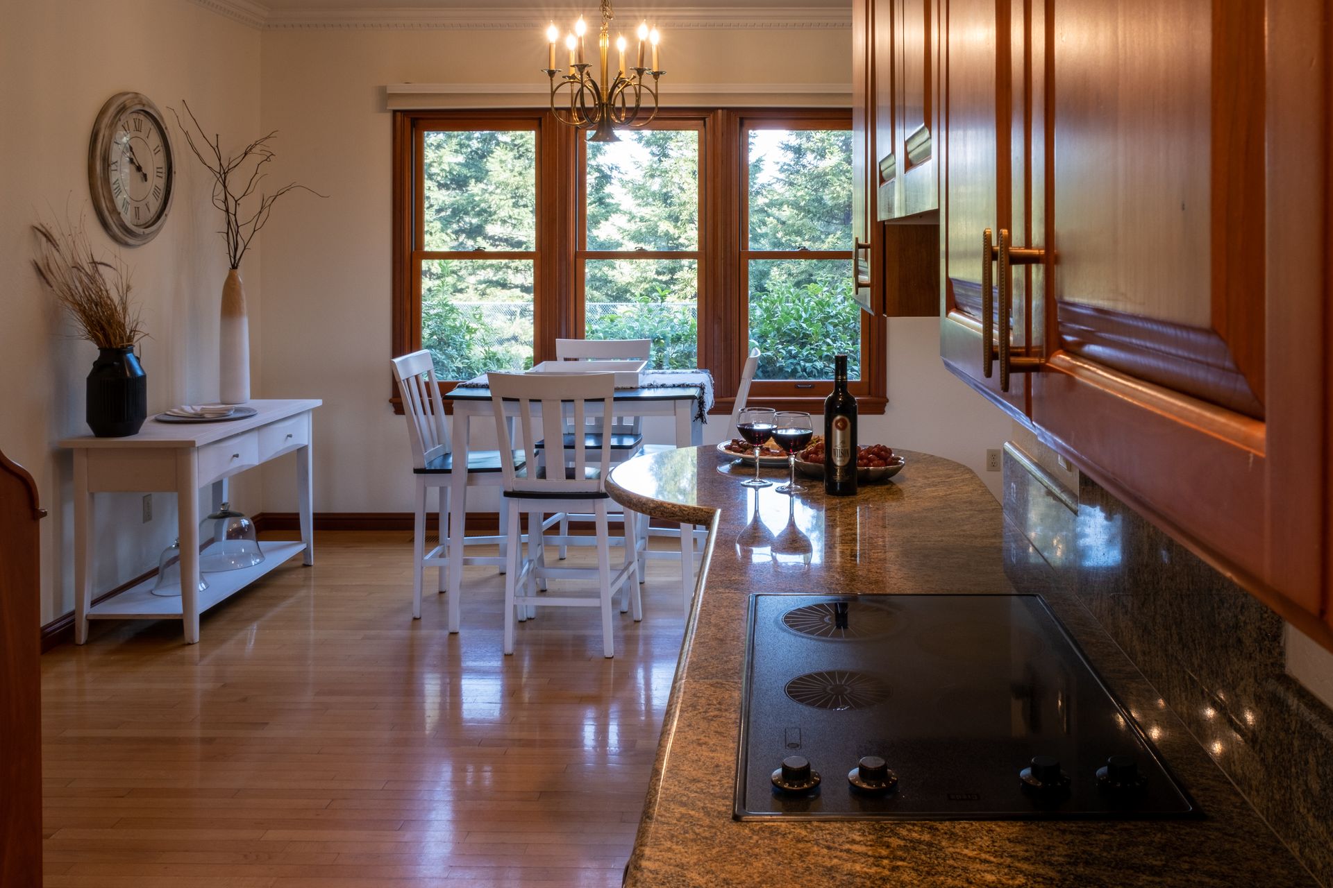 - Formal dining room with built-in hutch and hardwood flooring