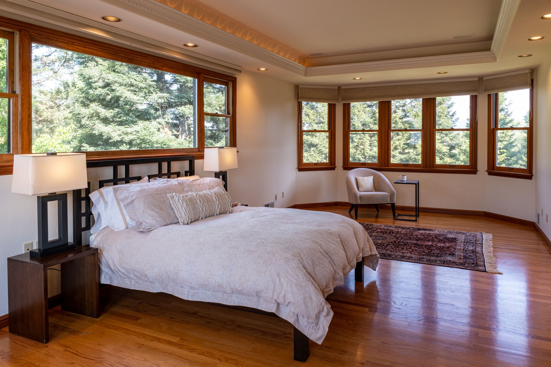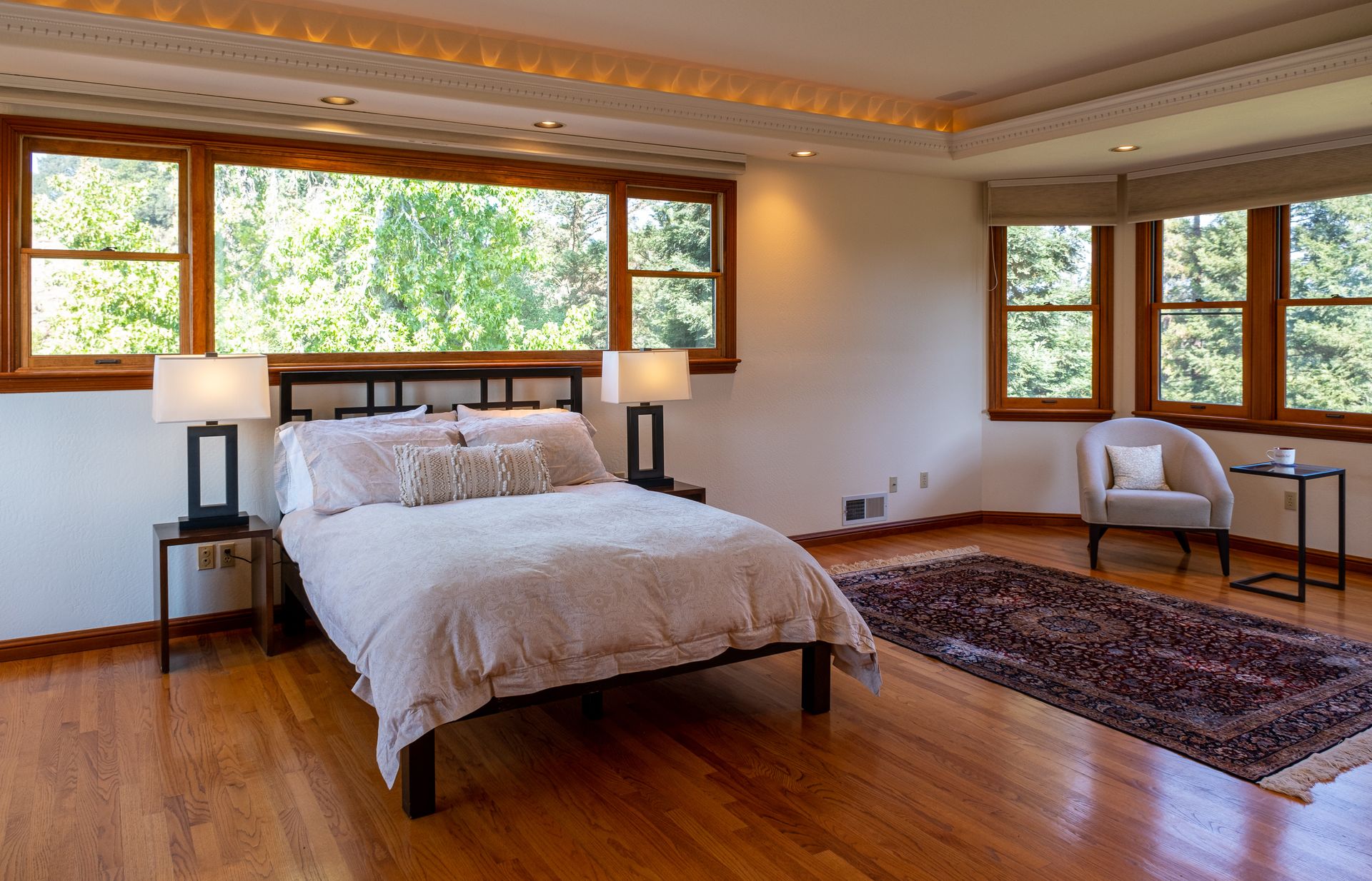 - Master suite features hardwood floors, indirect lighting, cedar lined walk-in closet