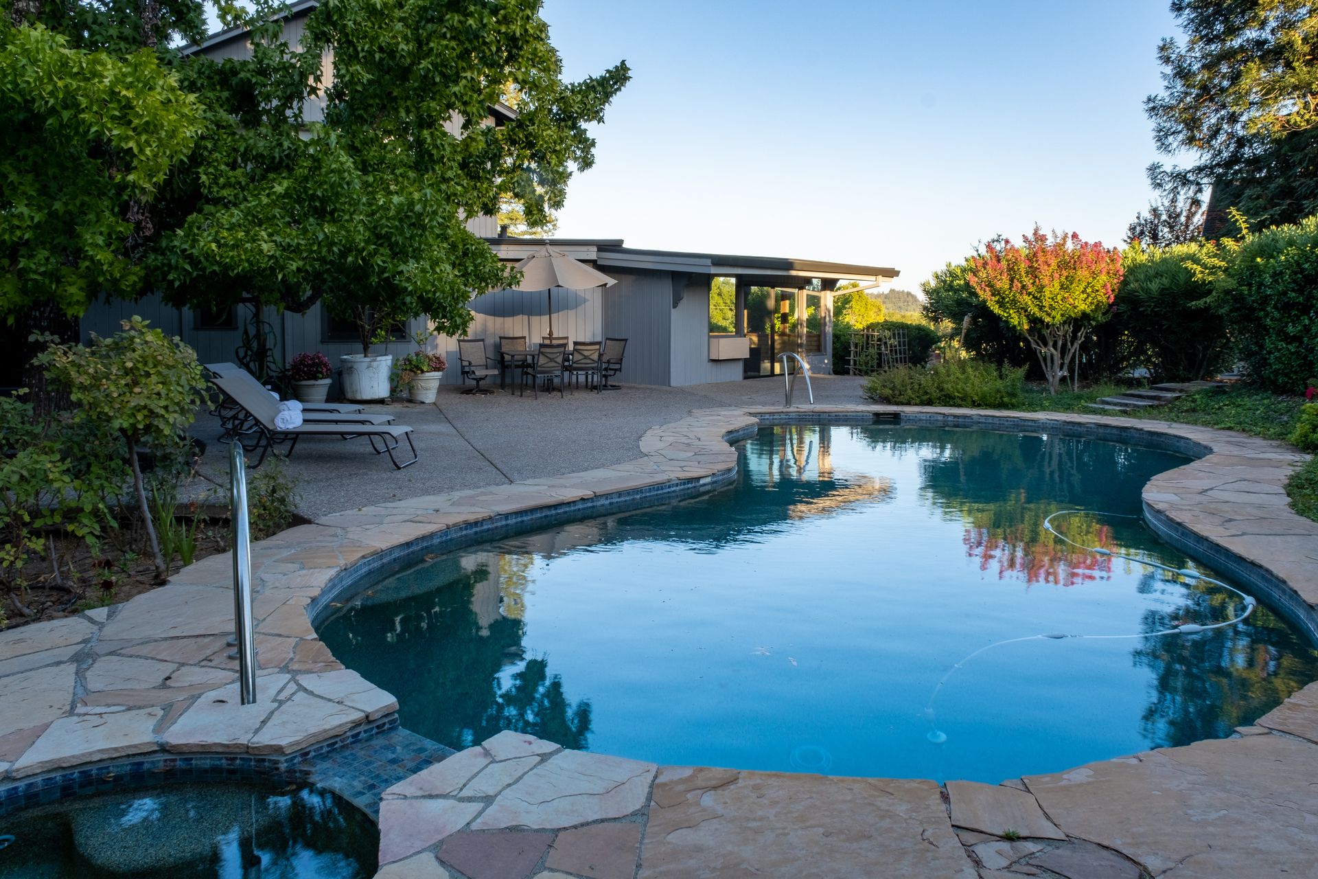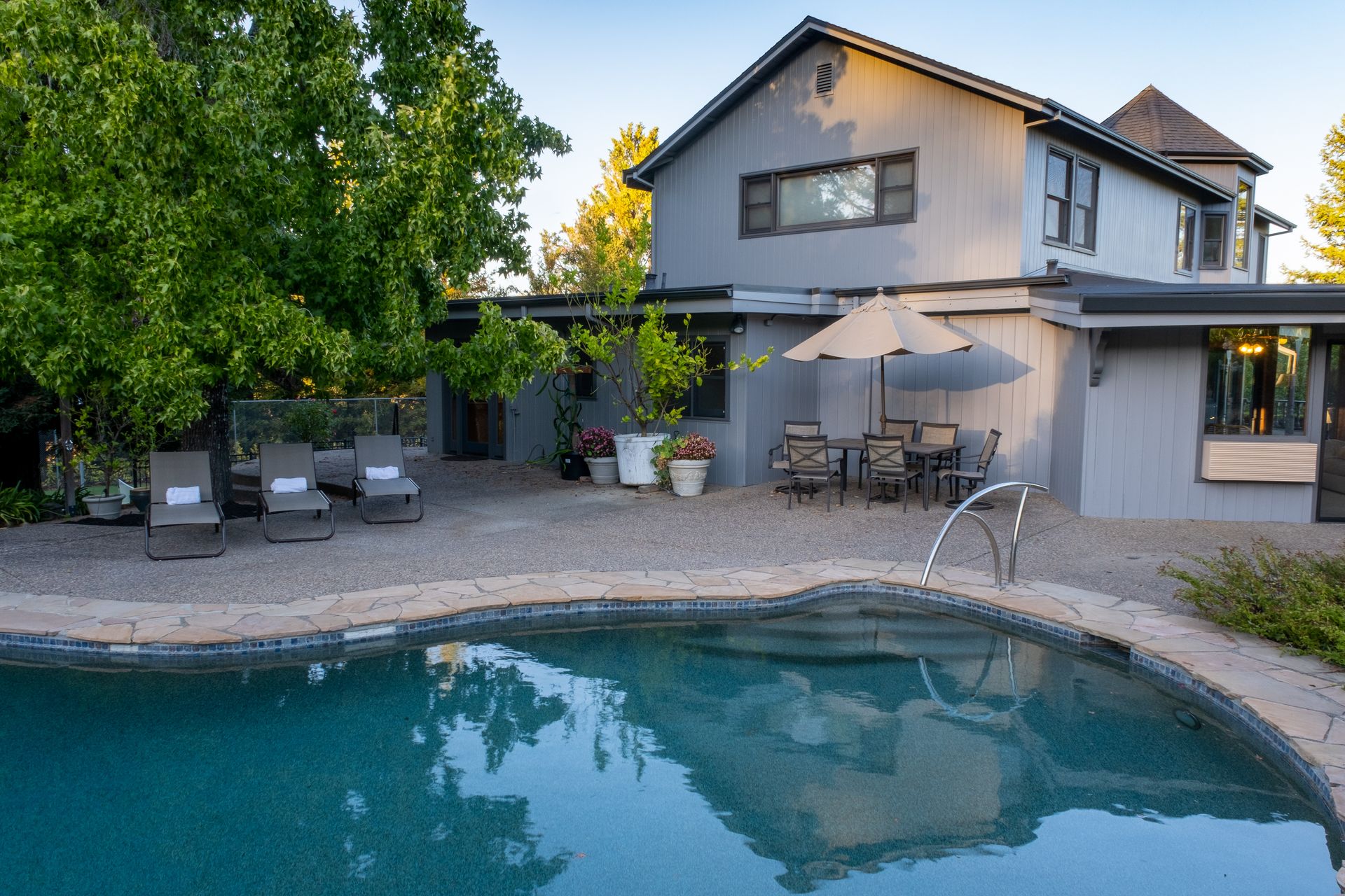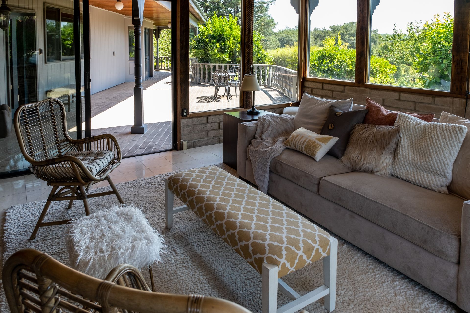 - Family/sunroom includes exposed beam ceiling, sliders to pool and patio area