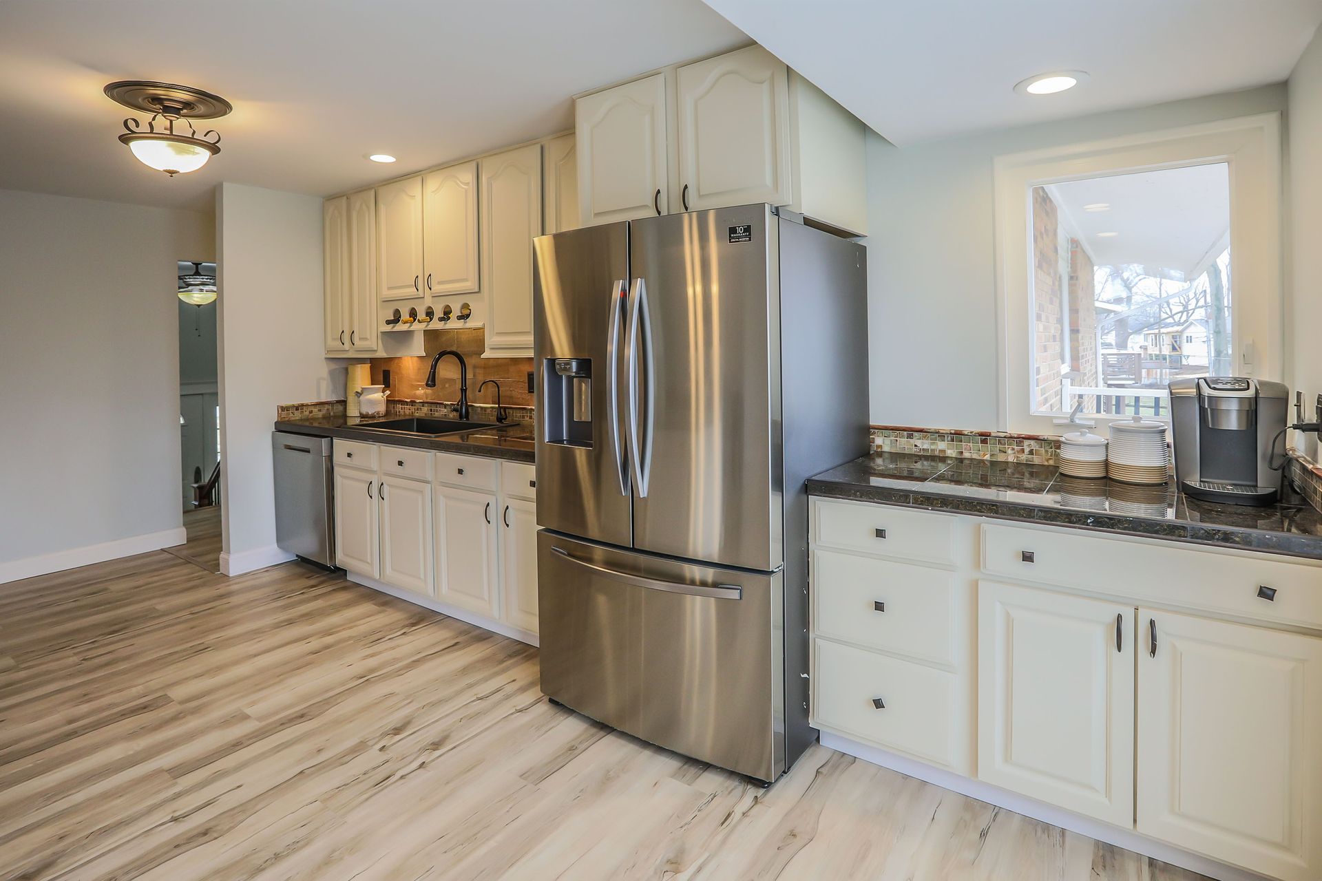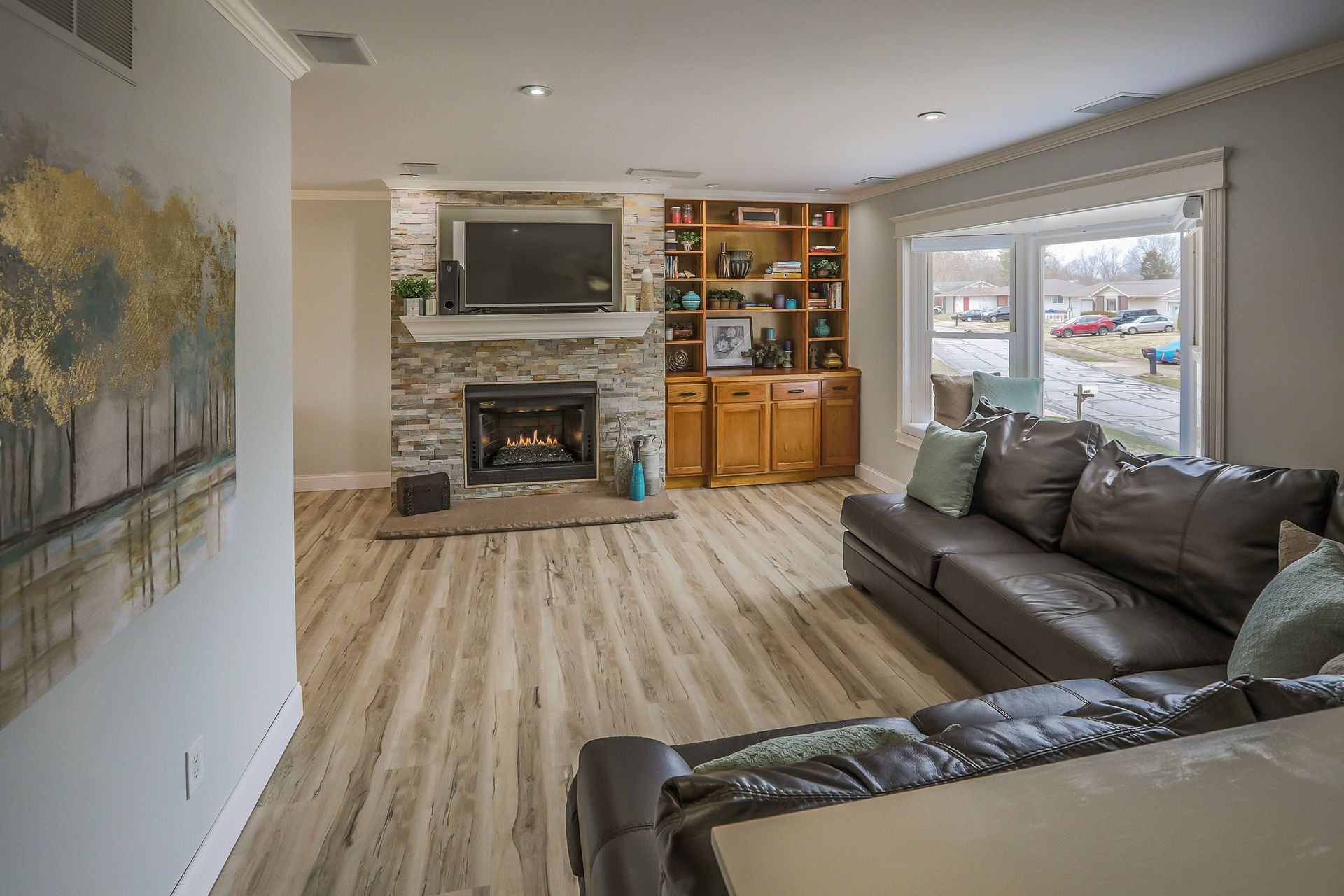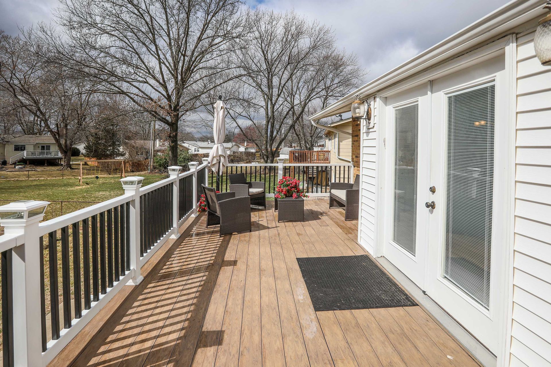 Looking for a charming mid-century home with modern updates, expansive room sizes and abundant windows that bathe each room in natural light? Nestled on a peaceful lot, this home is for you! Lovely curb appeal. Inviting entry foyer. Stylish vinyl plank floors (2022) are predominant on the main. Expansive living room with fireplace with ventless gas insert, seated bay window, built-in bookcase, recessed lighting & more. Stylish and spacious dining room. Gourmet kitchen has abundant cabinetry, stylish granite tile countertops, stainless appliances - gas range, dishwasher, microwave, refrigerator, and atrium doors that lead to the large deck, great for entertaining. Spacious master bedroom with 3 closets and updated bath. Two more bedrooms and updated hall bath complete the main. Lower level has a large open family room with spacious living area, fireplace with infrared insert, large wet bar, full bath, walkout to patio and large backyard. Don’t miss this extraordinary home!
