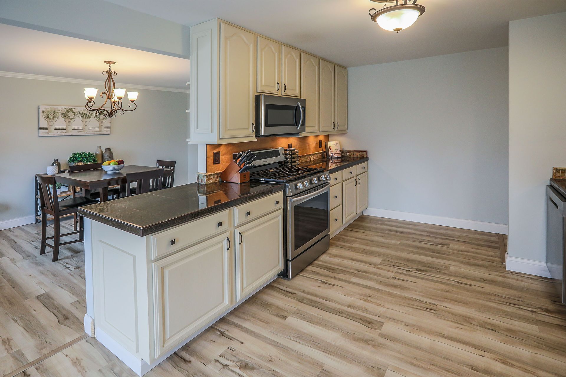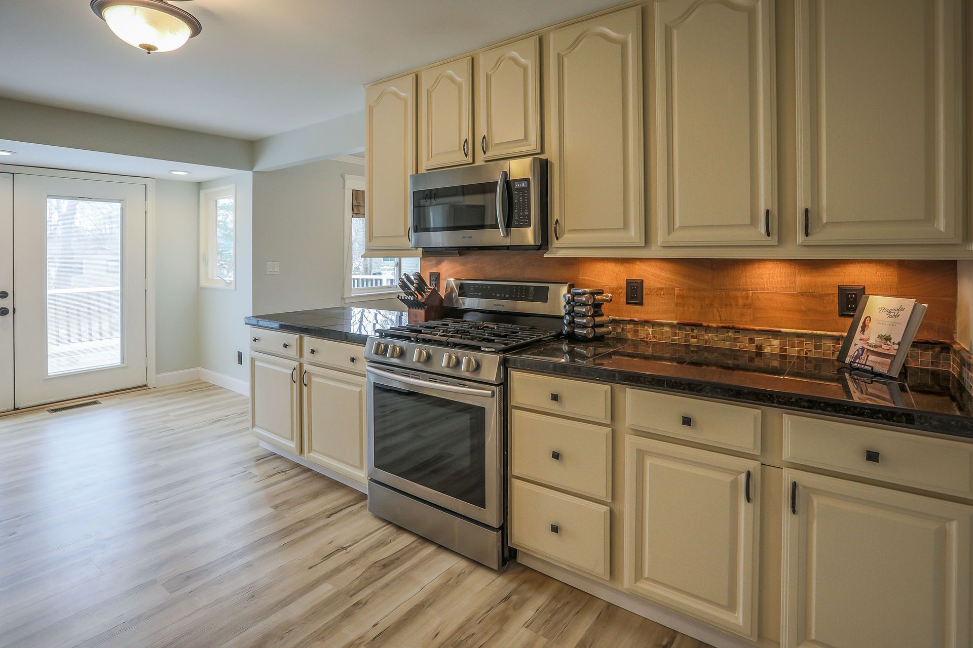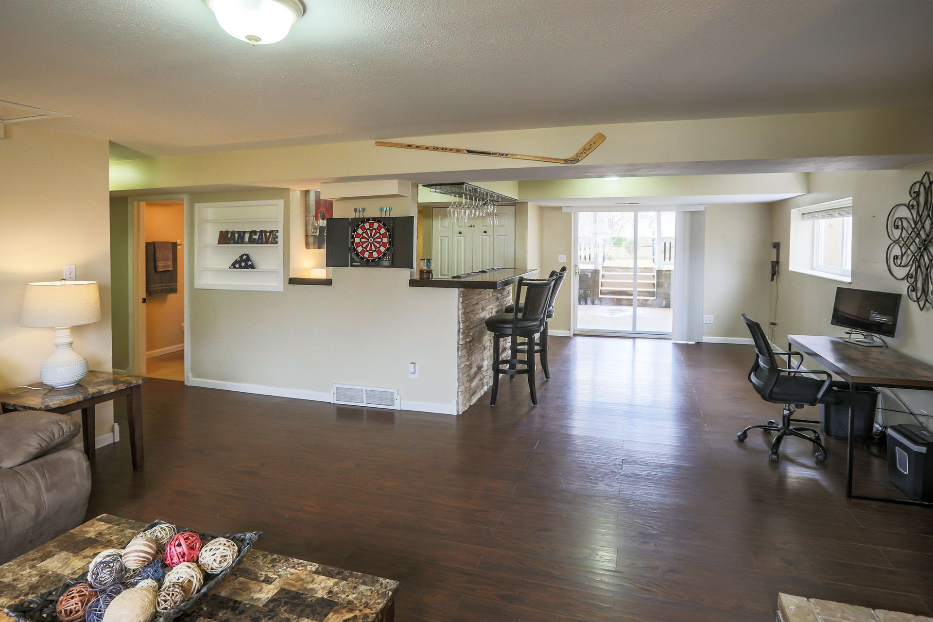 Looking for a charming mid-century home with modern updates, expansive room sizes and abundant windows that bathe each room in natural light? Nestled on a peaceful lot, this home is for you! Lovely curb appeal. Inviting entry foyer. Stylish vinyl plank floors (2022) are predominant on the main. Expansive living room with fireplace with ventless gas insert, seated bay window, built-in bookcase, recessed lighting & more. Stylish and spacious dining room. Gourmet kitchen has abundant cabinetry, stylish granite tile countertops, stainless appliances - gas range, dishwasher, microwave, refrigerator, and atrium doors that lead to the large deck, great for entertaining. Spacious master bedroom with 3 closets and updated bath. Two more bedrooms and updated hall bath complete the main. Lower level has a large open family room with spacious living area, fireplace with infrared insert, large wet bar, full bath, walkout to patio and large backyard. Don’t miss this extraordinary home!