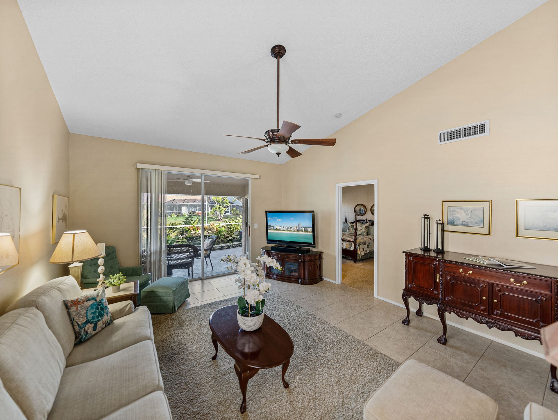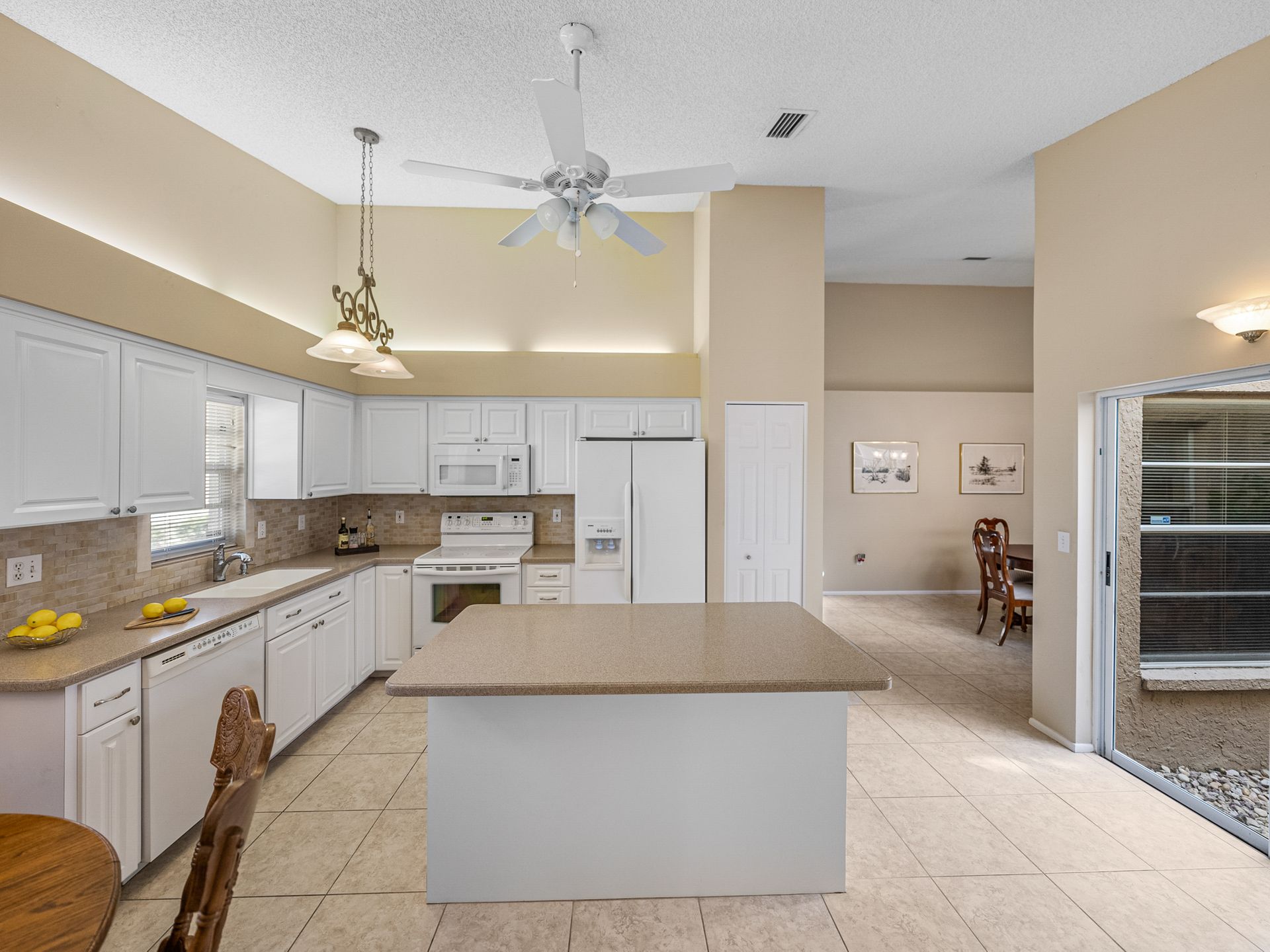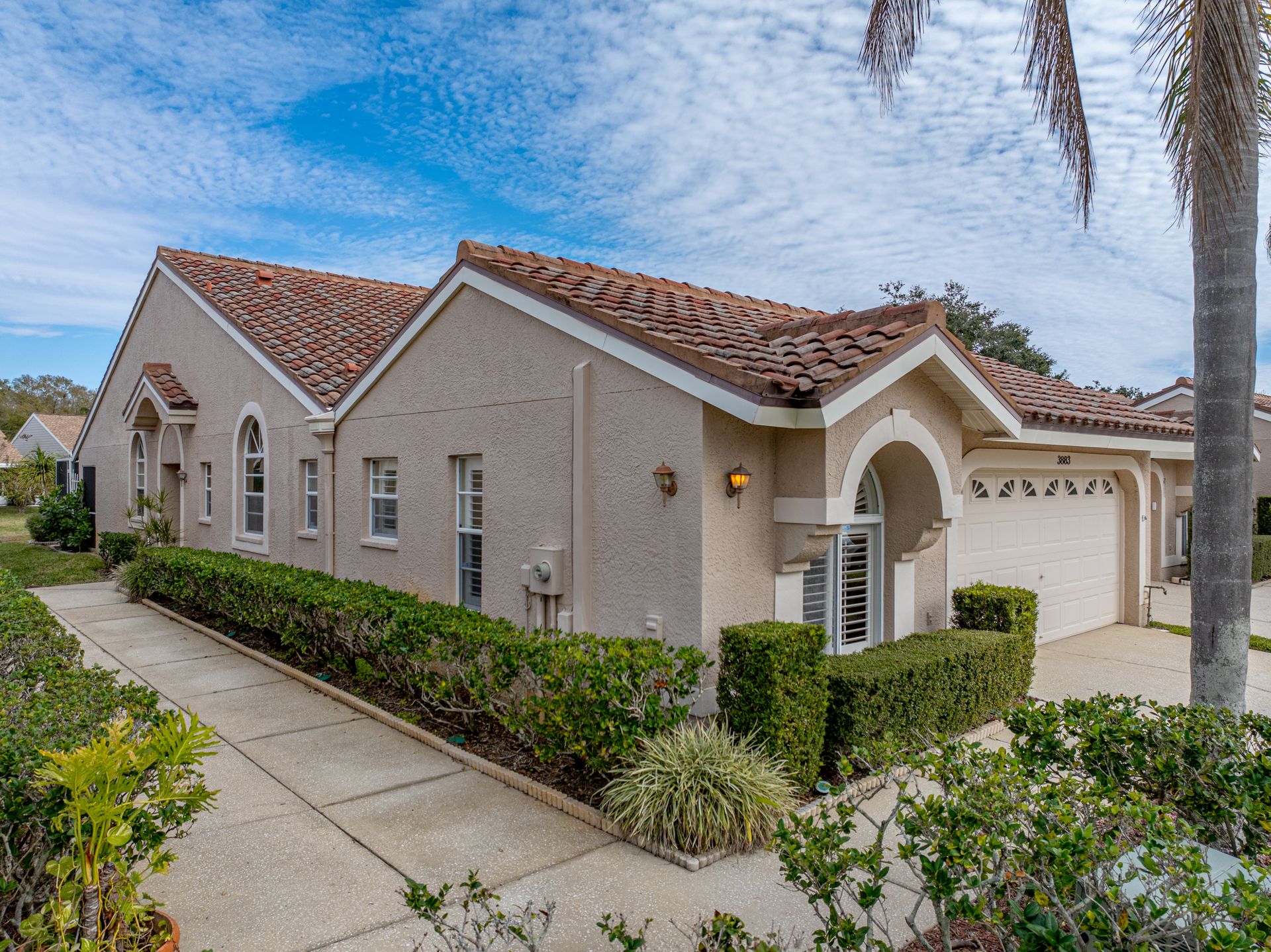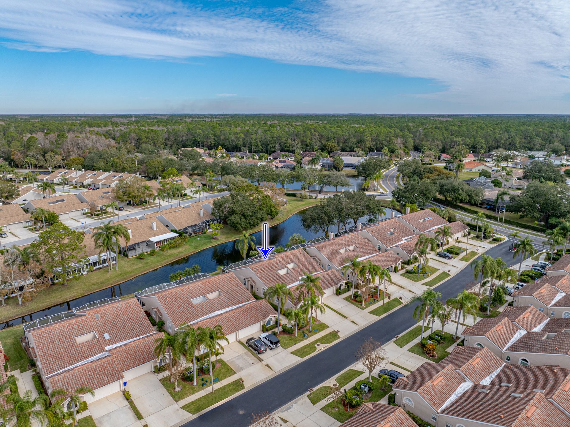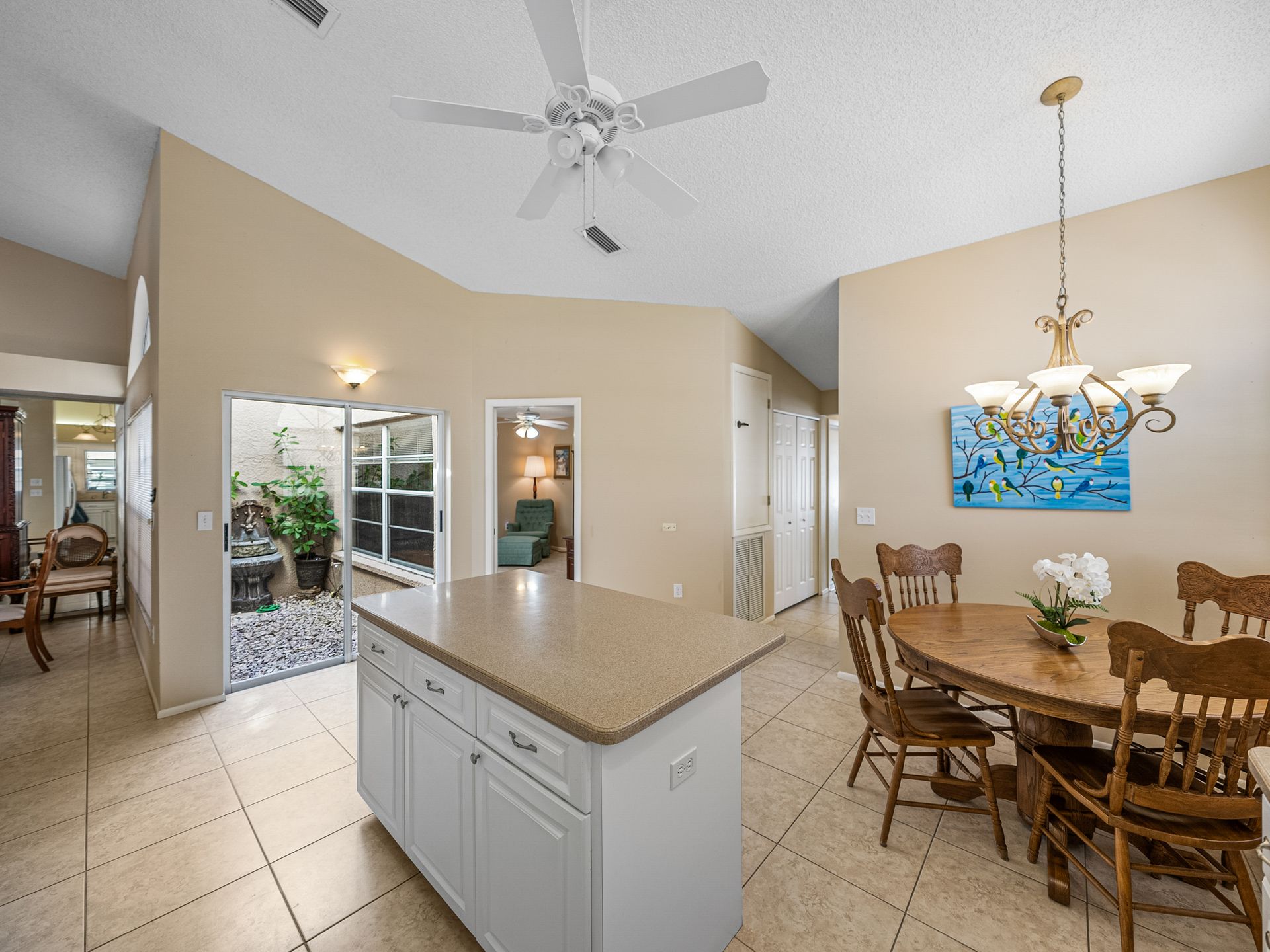 Welcome to your new piece of paradise in the gated community of Salem Square within the highly sought-after Ridgemoor neighborhood! This charming villa offers the perfect blend of location, value, and style, allowing you to enjoy a low-maintenance lifestyle without sacrificing on luxury. Step inside this 2 bed, 2 bath villa and discover an additional bonus room that can be used as a third bedroom, office, or den. Soaring vaulted ceilings create a sense of space and light, while the split and open floor plan offers versatility and convenience. The master suite is it’s own oasis with vaulted ceilings, private lanai access, a gracious en-suite offering both a walk-in shower & garden tub, and a massive walk-in closet with custom cabinetry. The kitchen is centrally located in the heart of the home, featuring a large island, pantry, and eat-in kitchen space, making it ideal for both everyday living and entertaining. Relax and unwind on the peaceful screened lanai year-round, taking in the lush landscaping and serene pond views. High & dry in a non-flood zone with zero storm damage and no insurance worries - this home just passed a 4-point inspection for your review and transferrable to buyer. In addition to your own private retreat, you’ll have access to a range of community amenities, including walking trails, tennis courts, a heated saltwater pool, and a playground. The very reasonable HOA fee covers bulk TV & internet, trash pick-up, lawn service, irrigation, and roof repair! This home all ages and perfect for everyone – growing families or the perfect vacation home to enjoy during those cold Northern months. The Florida lifestyle begins with a great place to live, and this villa has all the essentials for comfortable living. Don’t miss out on this incredible opportunity – now is the time to start living the life you’ve always dreamed of here in Salem Square!