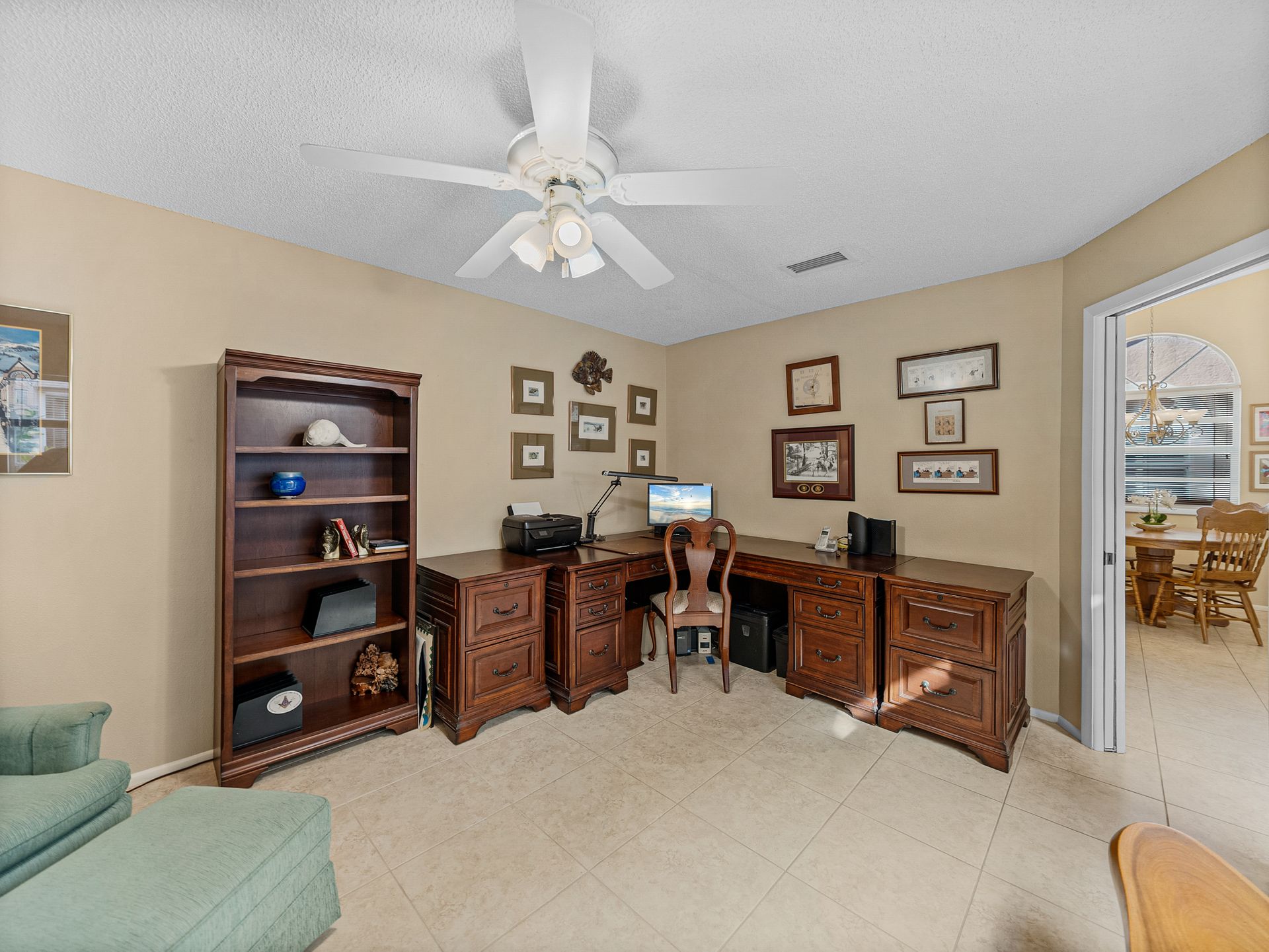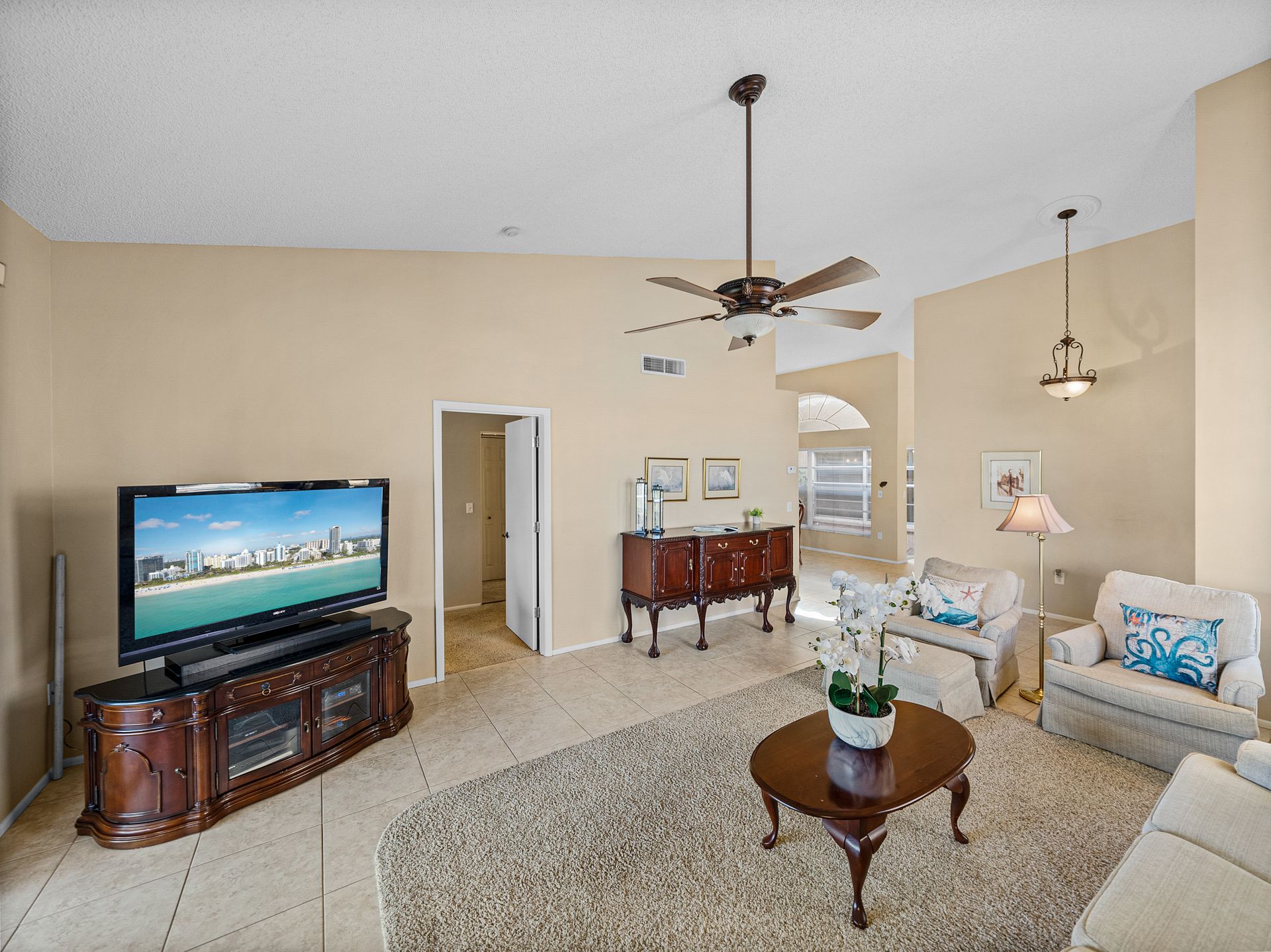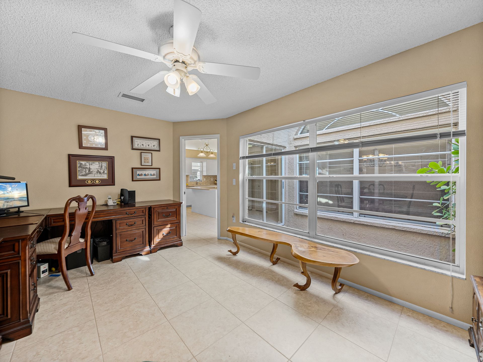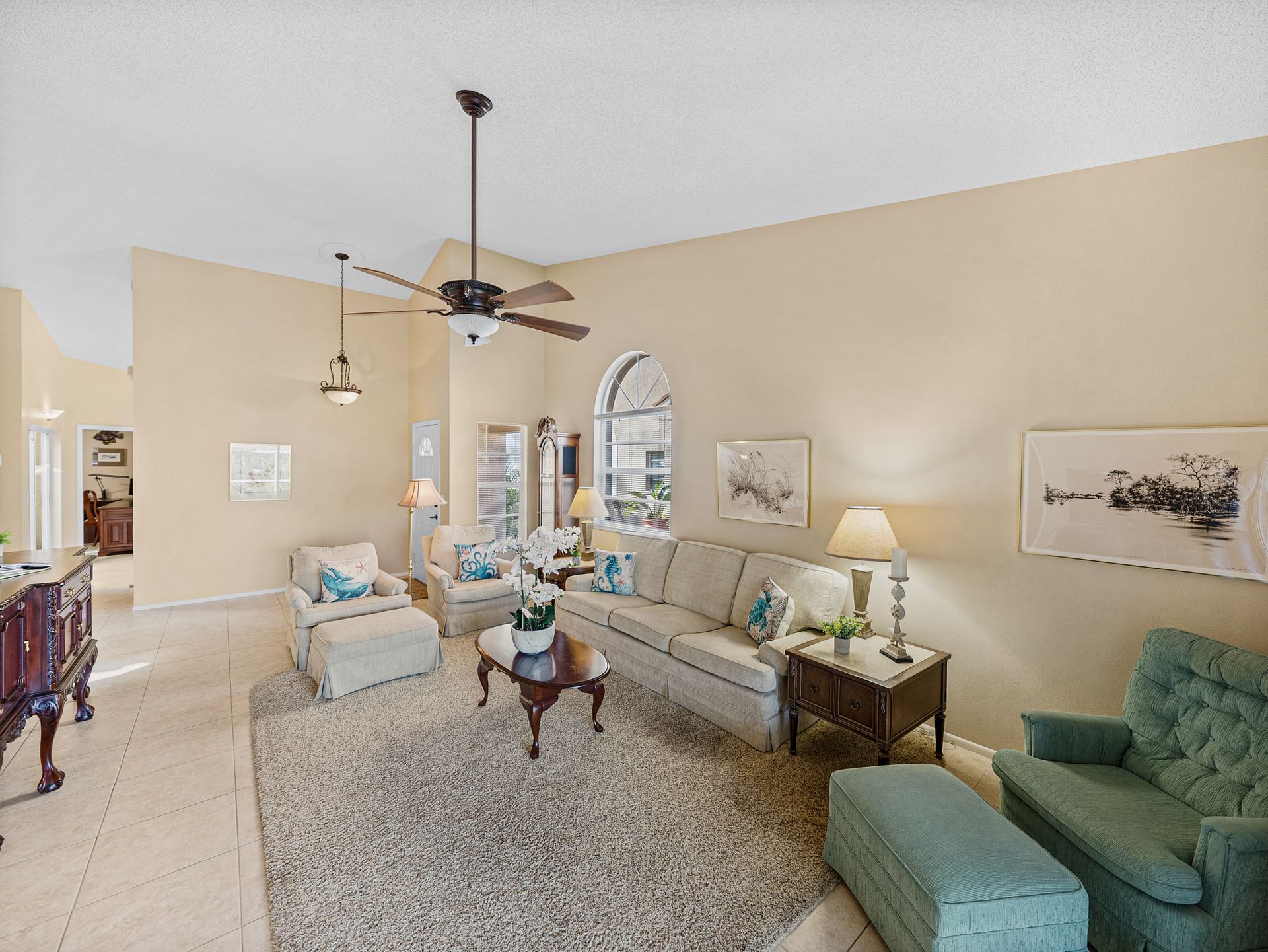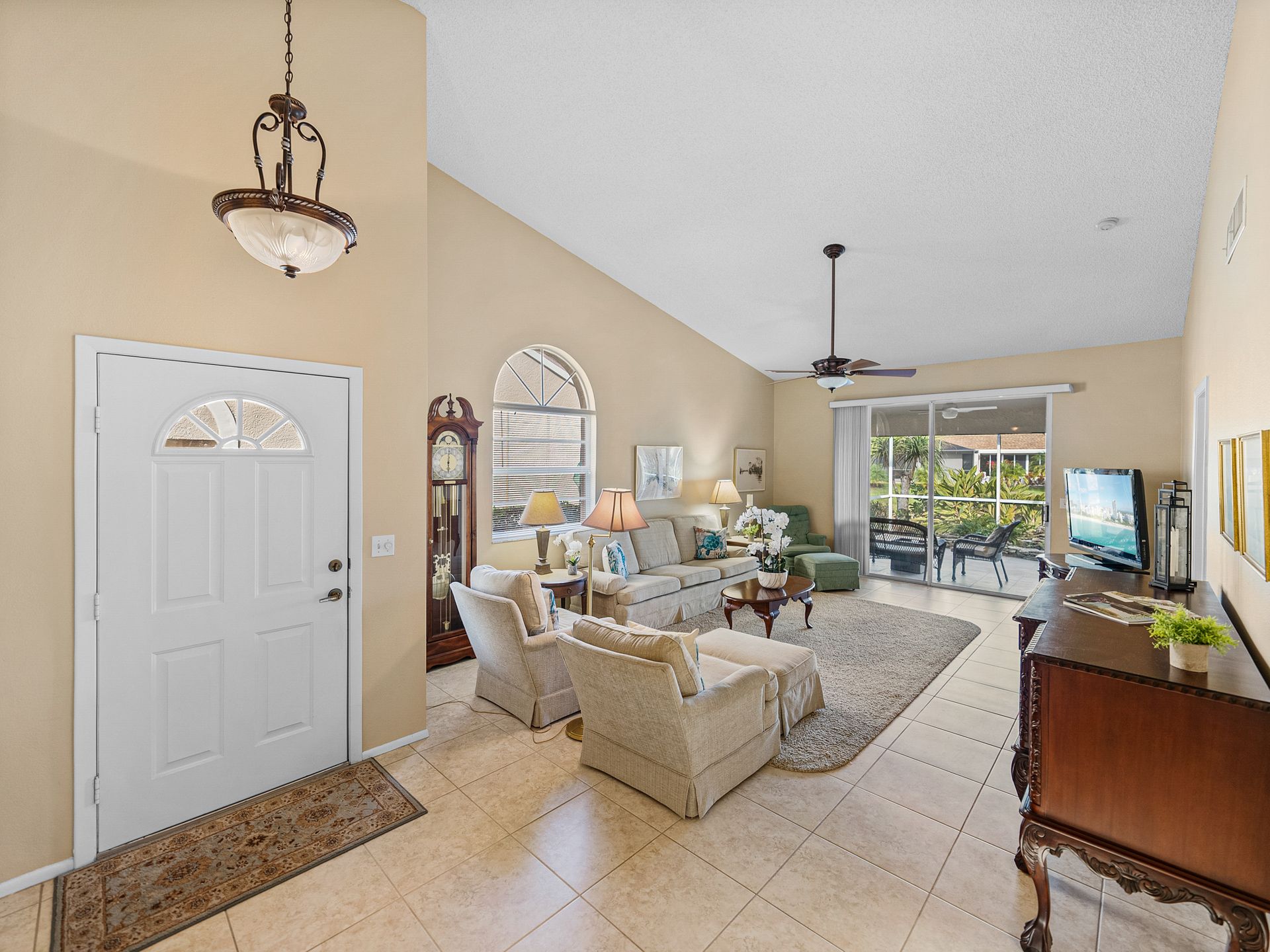 Welcome to your new piece of paradise in the gated community of Salem Square within the highly sought-after Ridgemoor neighborhood! This charming villa offers the perfect blend of location, value, and style, allowing you to enjoy a low-maintenance lifestyle without sacrificing on luxury. Step inside this 2 bed, 2 bath villa and discover an additional bonus room that can be used as a third bedroom, office, or den. Soaring vaulted ceilings create a sense of space and light, while the split and open floor plan offers versatility and convenience. The master suite is it’s own oasis with vaulted ceilings, private lanai access, a gracious en-suite offering both a walk-in shower & garden tub, and a massive walk-in closet with custom cabinetry. The kitchen is centrally located in the heart of the home, featuring a large island, pantry, and eat-in kitchen space, making it ideal for both everyday living and entertaining. Relax and unwind on the peaceful screened lanai year-round, taking in the lush landscaping and serene pond views. High & dry in a non-flood zone with zero storm damage and no insurance worries - this home just passed a 4-point inspection for your review and transferrable to buyer. In addition to your own private retreat, you’ll have access to a range of community amenities, including walking trails, tennis courts, a heated saltwater pool, and a playground. The very reasonable HOA fee covers bulk TV & internet, trash pick-up, lawn service, irrigation, and roof repair! This home all ages and perfect for everyone – growing families or the perfect vacation home to enjoy during those cold Northern months. The Florida lifestyle begins with a great place to live, and this villa has all the essentials for comfortable living. Don’t miss out on this incredible opportunity – now is the time to start living the life you’ve always dreamed of here in Salem Square!