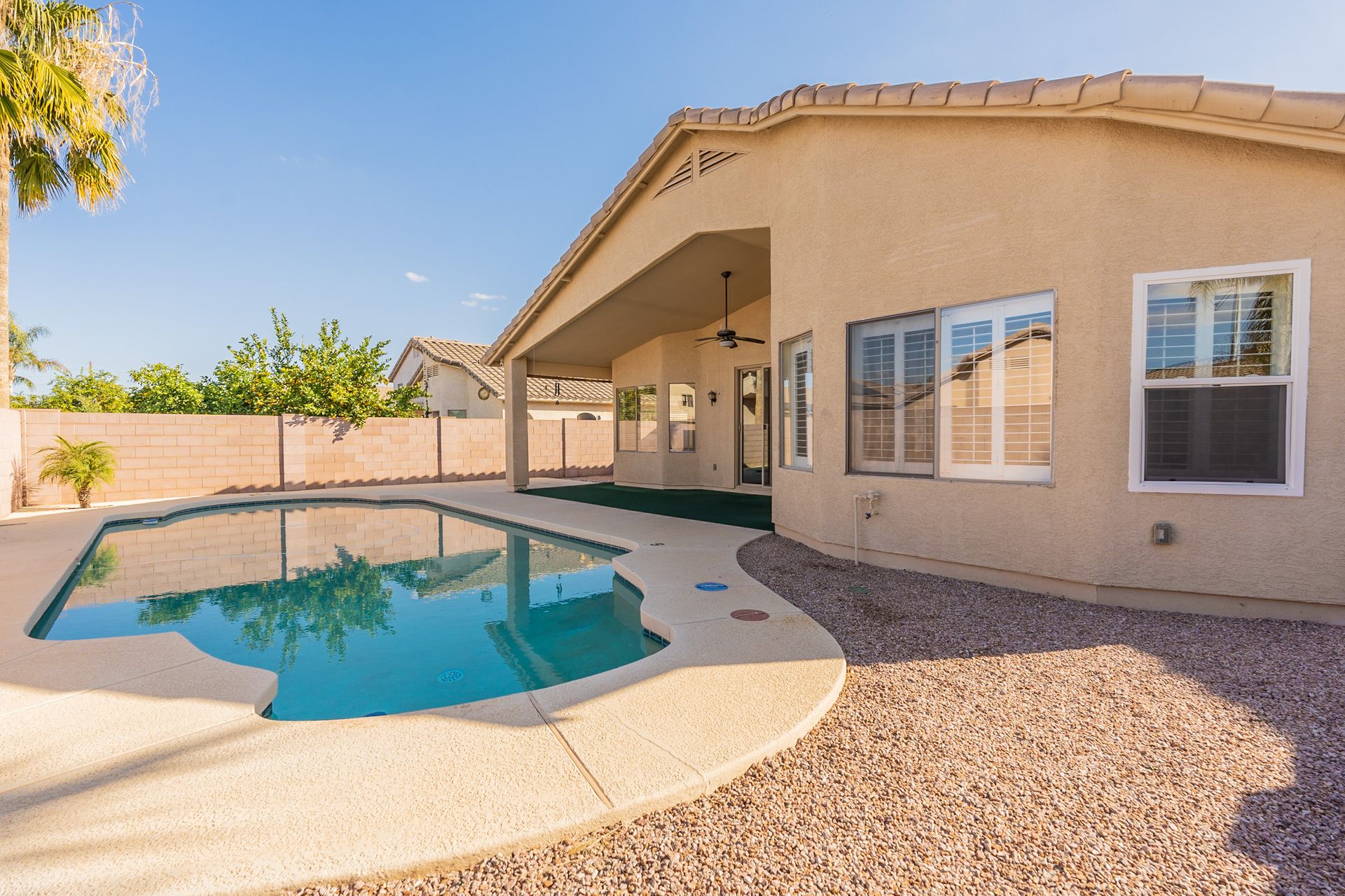 Location, location, location! Come see this lovely home with a private pool in a beautiful Gilbert neighborhood! Located in the Holliday Farms subdivision with numerous amenities and community activities. Within proximity of schools, paths, sports fields, and parks, this four bedroom, two bath home is most ideal for a family. Features include vaulted ceilings, granite countertops, stainless steel appliances, walk-in closets, separate family and living rooms, and low-maintenance landscaping. The pool is just icing on the cake! The owner has taken such great care of the home. You'll see it in the details. Qualify to buy this home using a rate buy down program and reduce your monthly payment. Ask me how. Make your appointment to see today, this home won't last long!