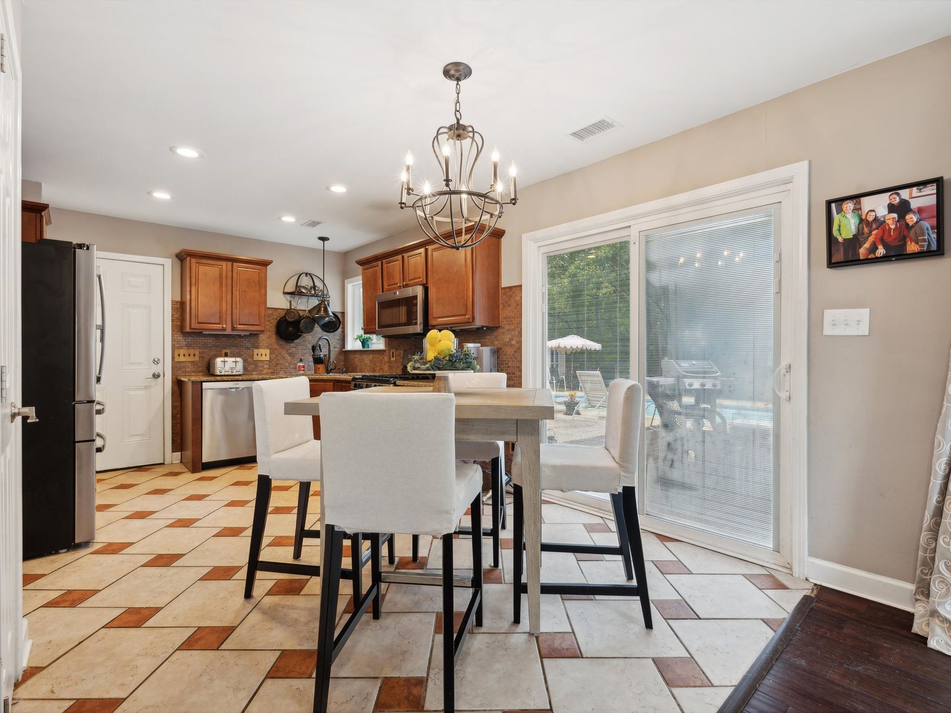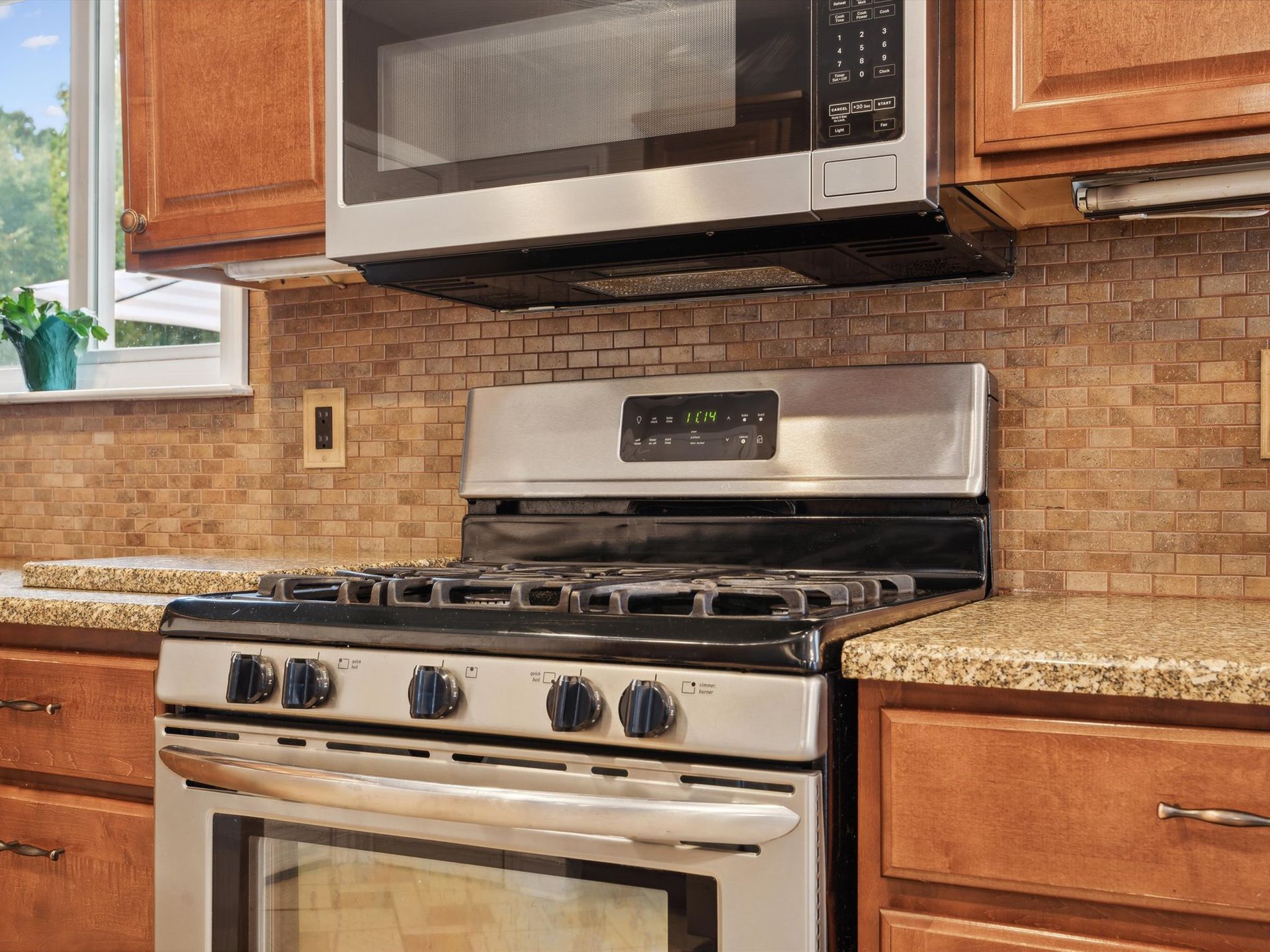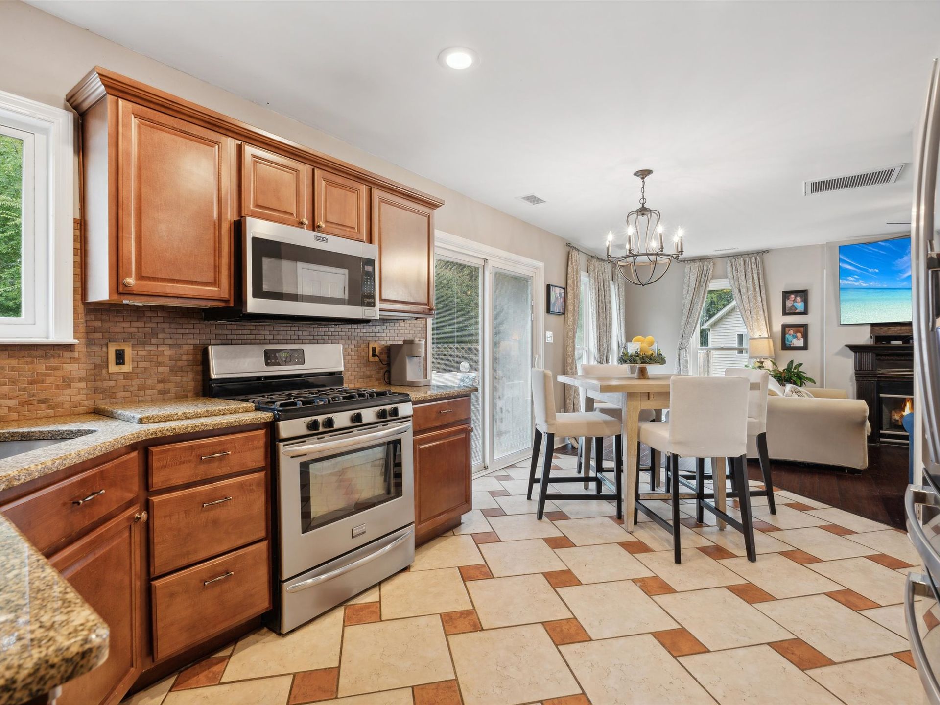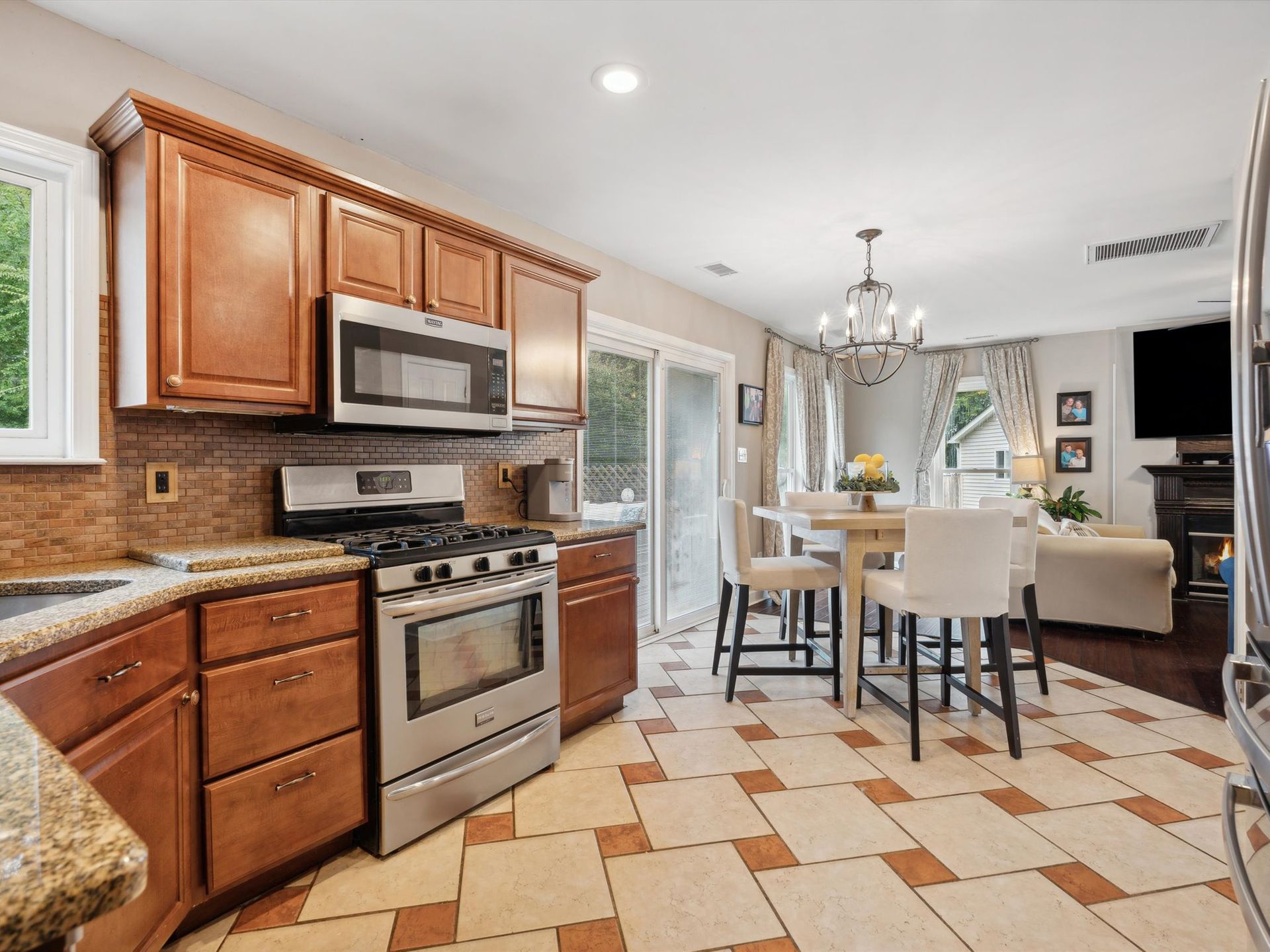 - Gourmet Kitchen: The heart of the home boasts a gourmet kitchen with a gas range, granite countertops, a Bosch dishwasher, and two convenient pantries. Access to the garage makes grocery shopping a breeze.