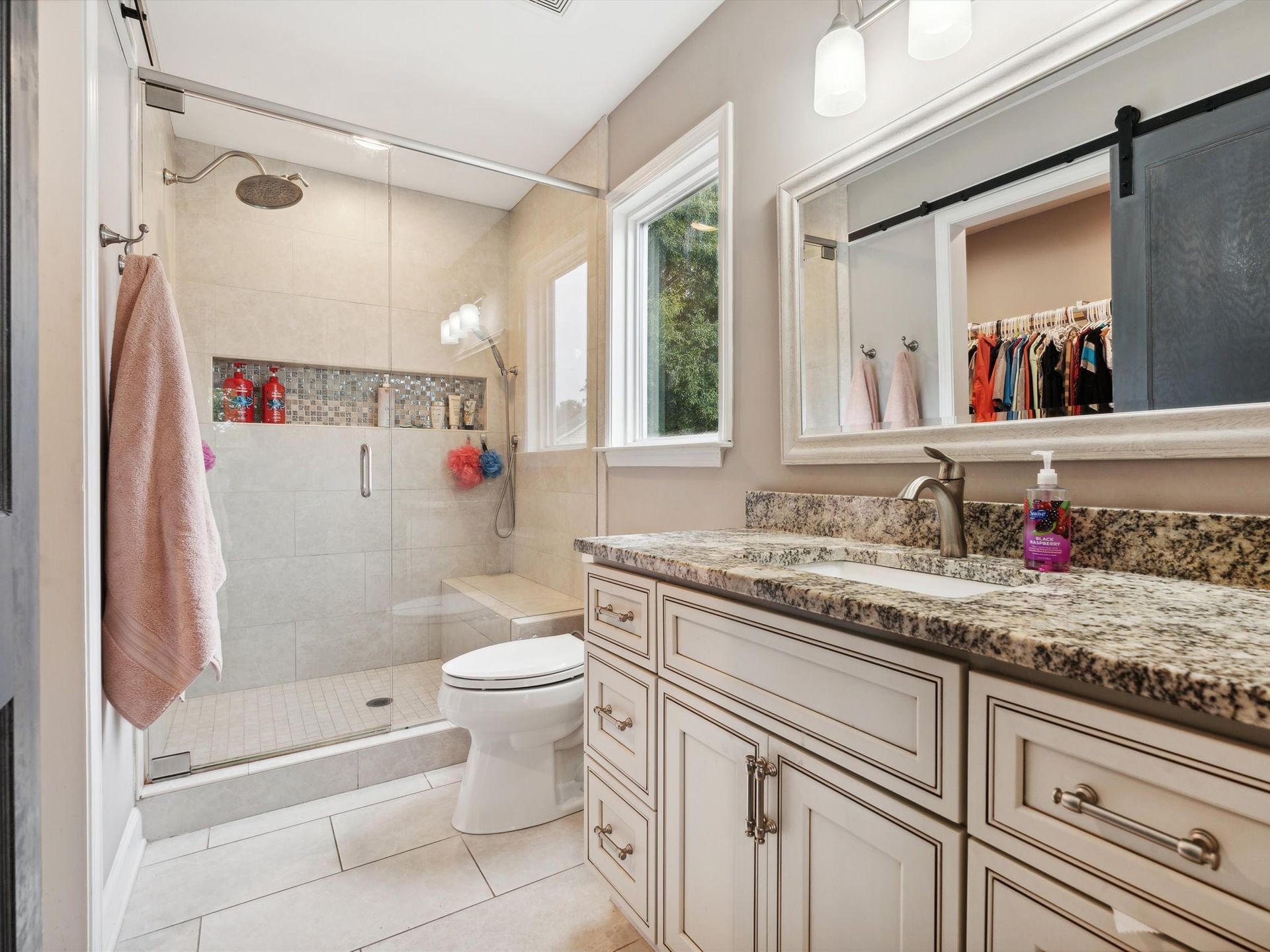 - Upstairs Retreat: Upstairs, discover a serene primary suite with a vaulted ceiling, offering a private sanctuary away from the world.