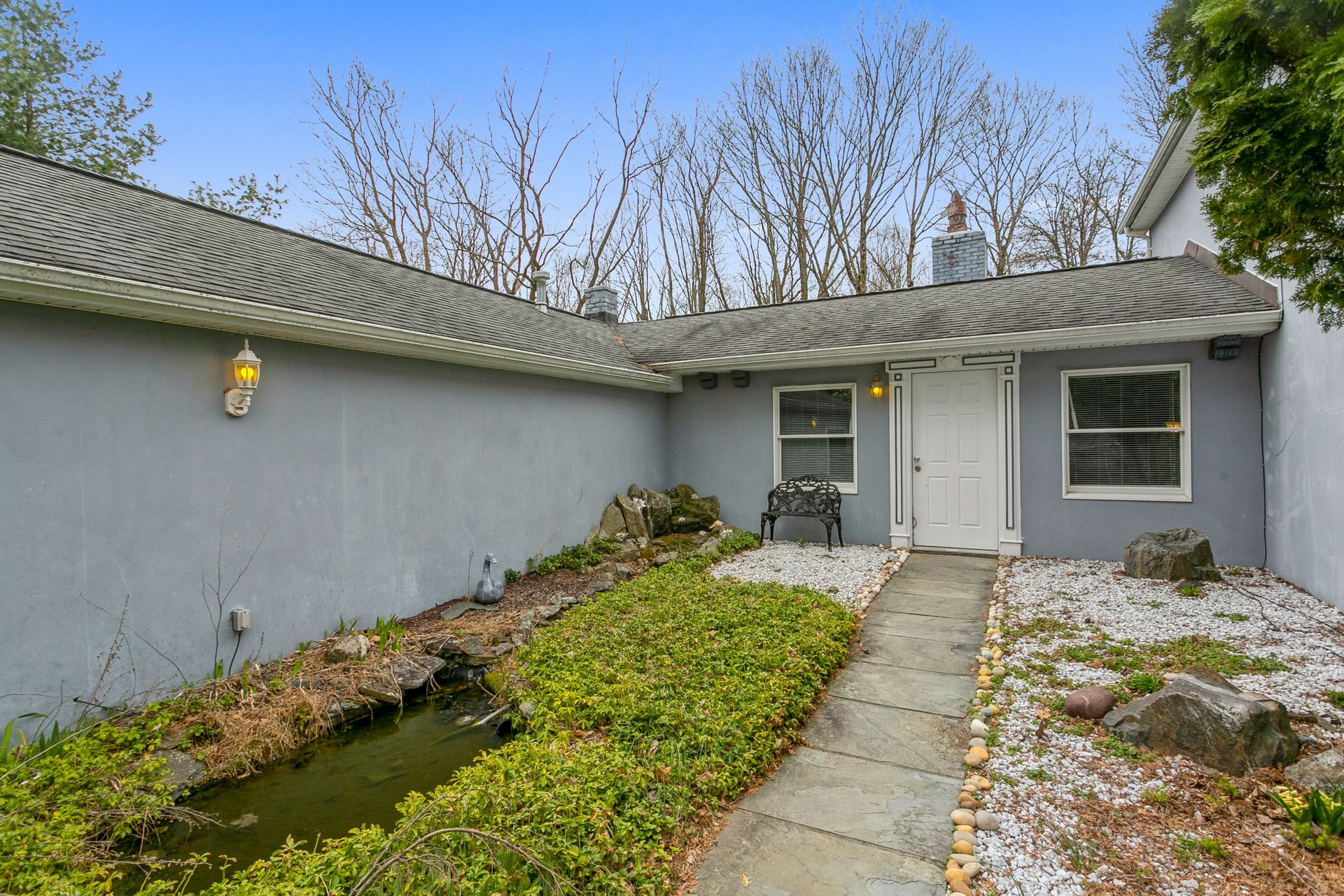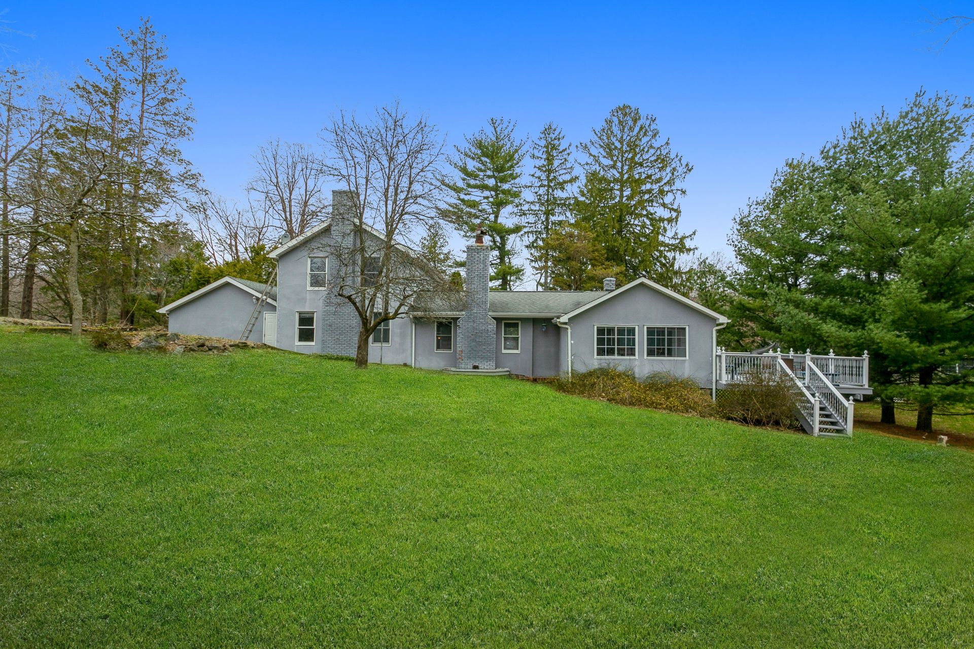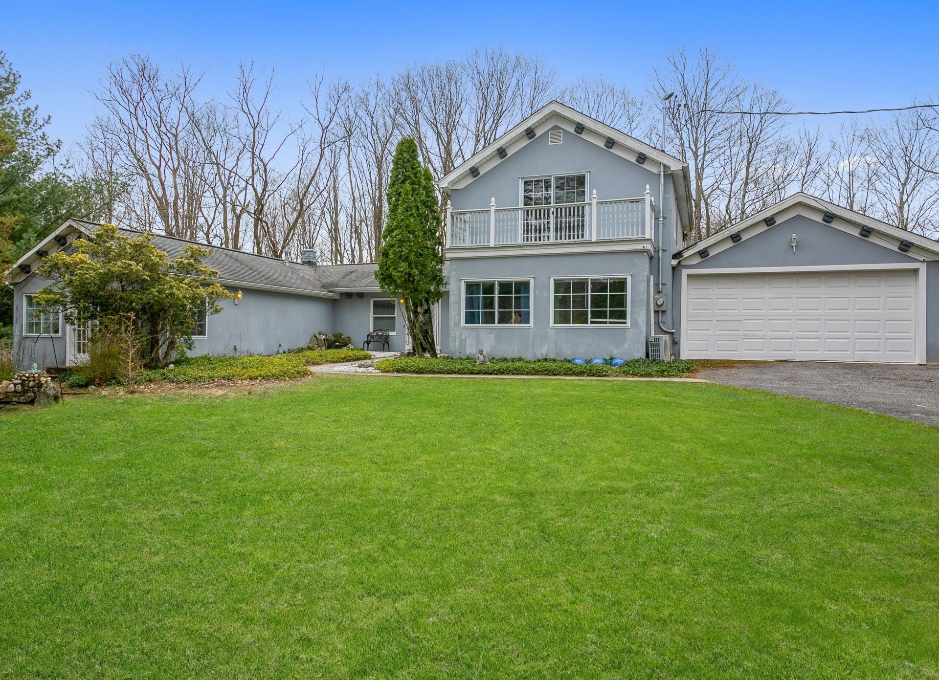 Nestled in nature sits this expanded artsy and crafty "splanch" with attached two-car garage. The newly remodeled kitchen with sliding glass doors to a private deck overlooks a peaceful wooded setting. The great room features a traditional wood-burning fireplace and a relaxing reading nook. An office, two bedrooms and hall bath complete the main living area. The second floor features the main bedroom with Juliette balcony overlooking the front yard, a fourth bedroom and hall bath. The private east wing features the family room, guest bedroom, bathroom and a cheerful office with private entrance.