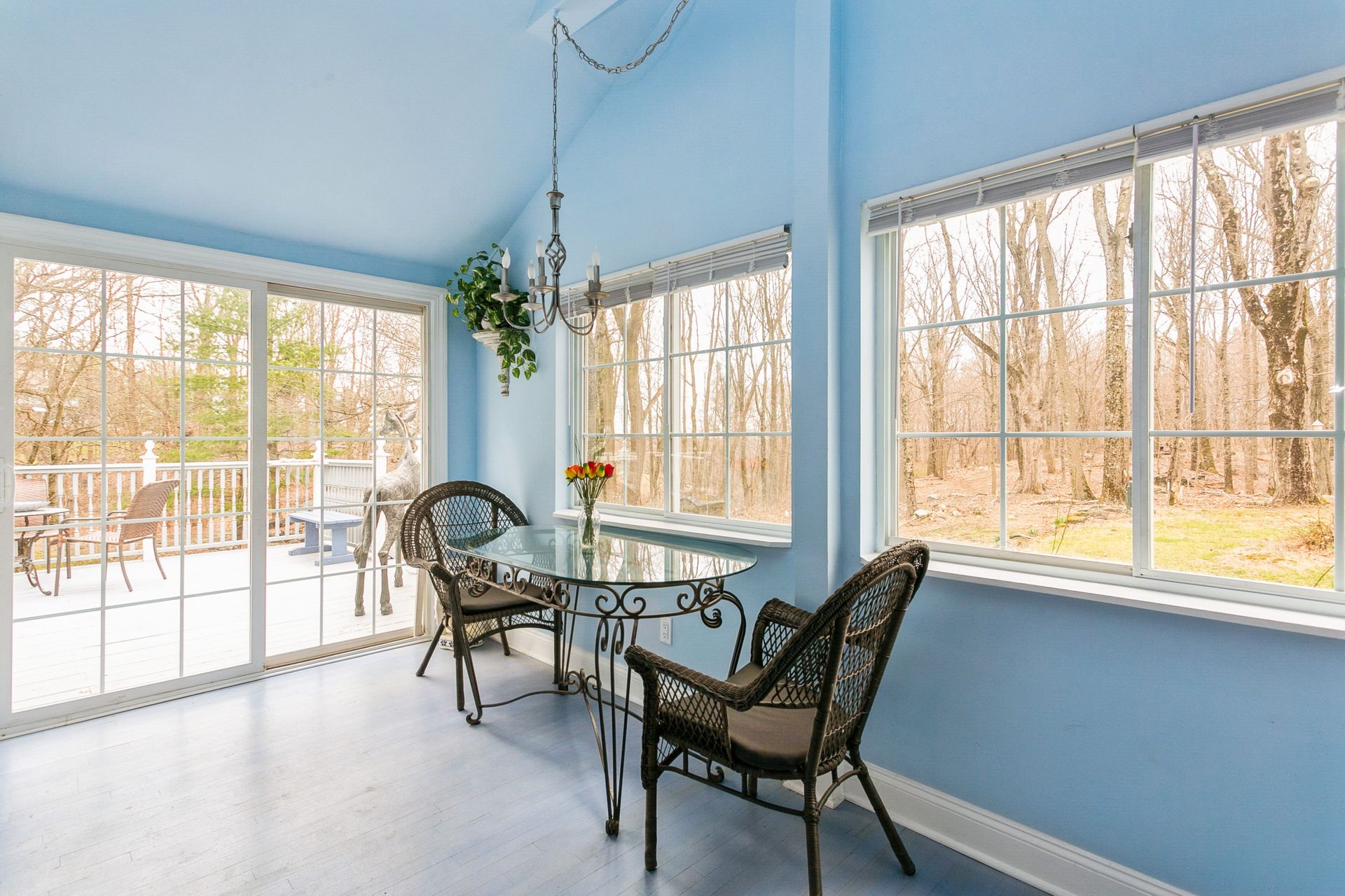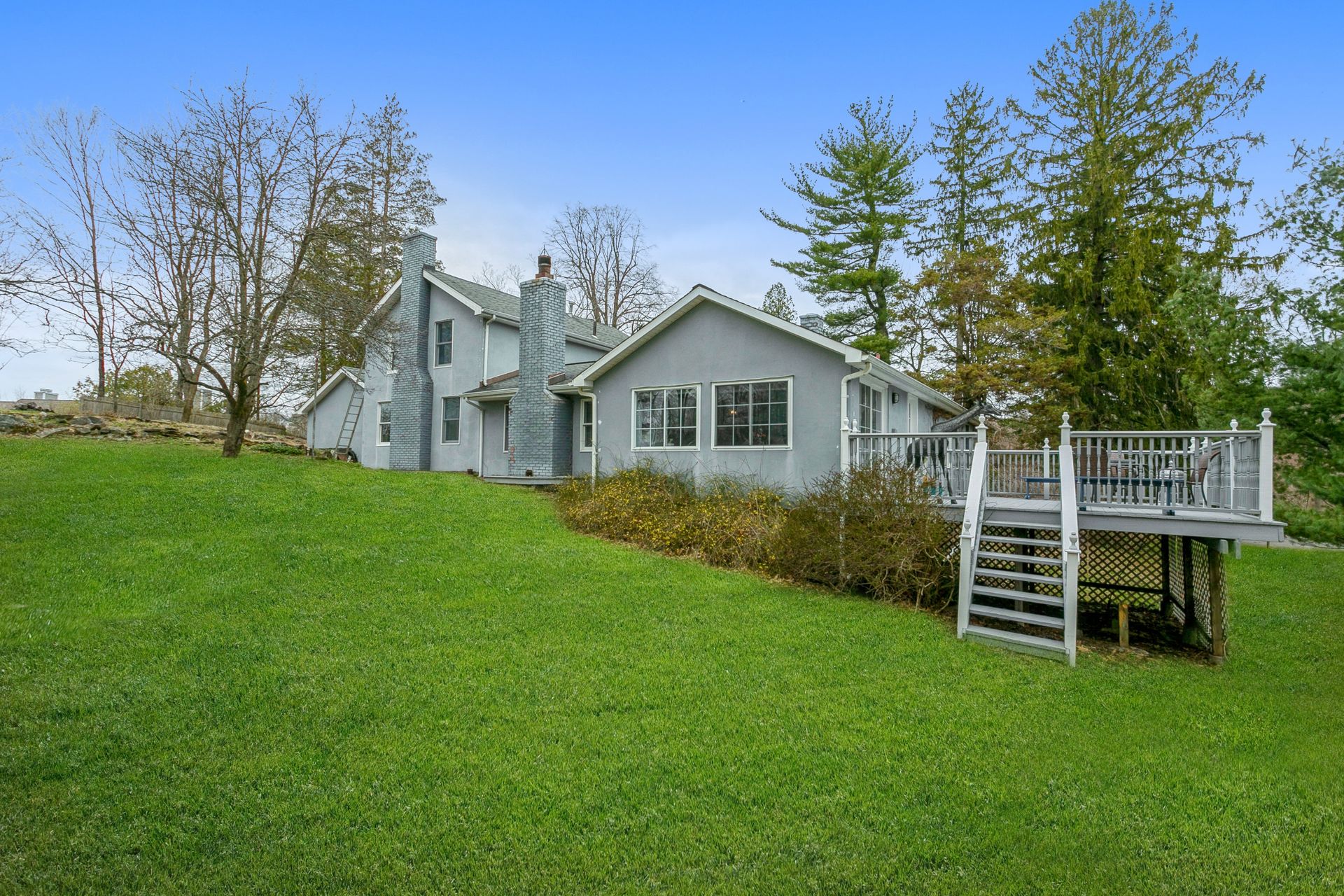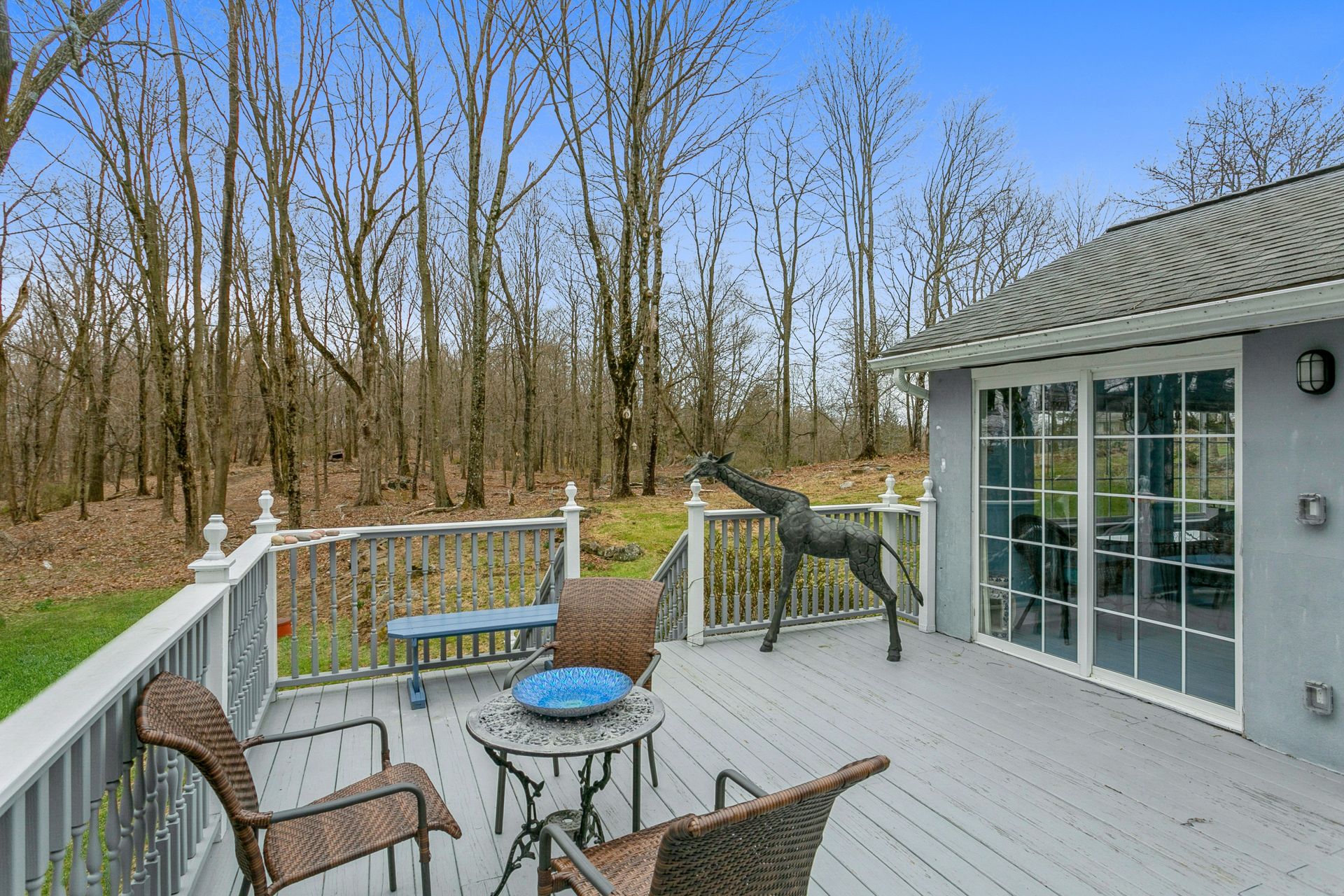 Nestled in nature sits this expanded artsy and crafty "splanch" with attached two-car garage. The newly remodeled kitchen with sliding glass doors to a private deck overlooks a peaceful wooded setting. The great room features a traditional wood-burning fireplace and a relaxing reading nook. An office, two bedrooms and hall bath complete the main living area. The second floor features the main bedroom with Juliette balcony overlooking the front yard, a fourth bedroom and hall bath. The private east wing features the family room, guest bedroom, bathroom and a cheerful office with private entrance.