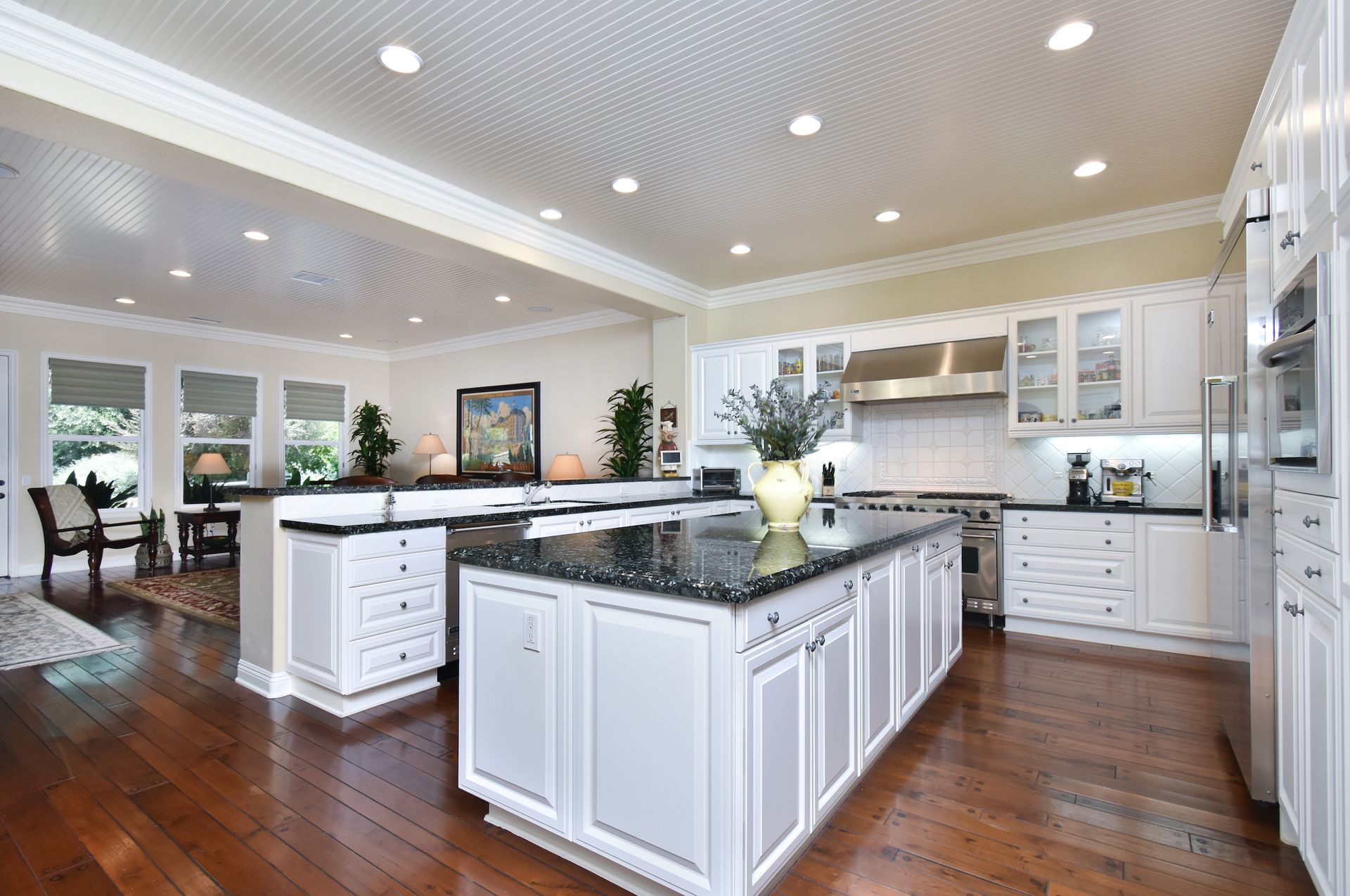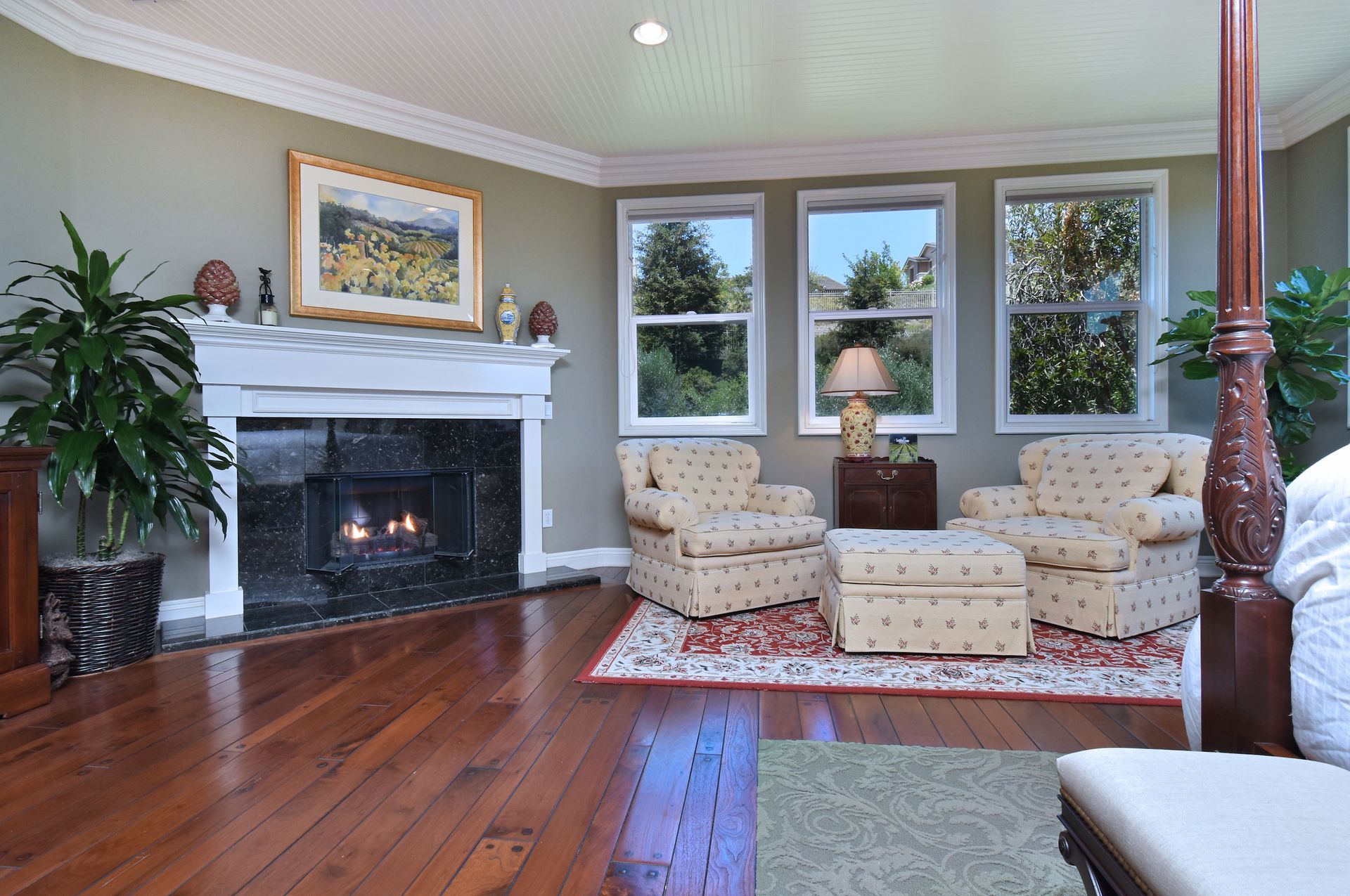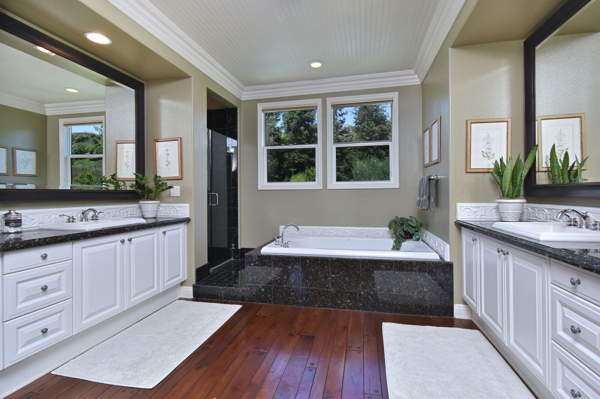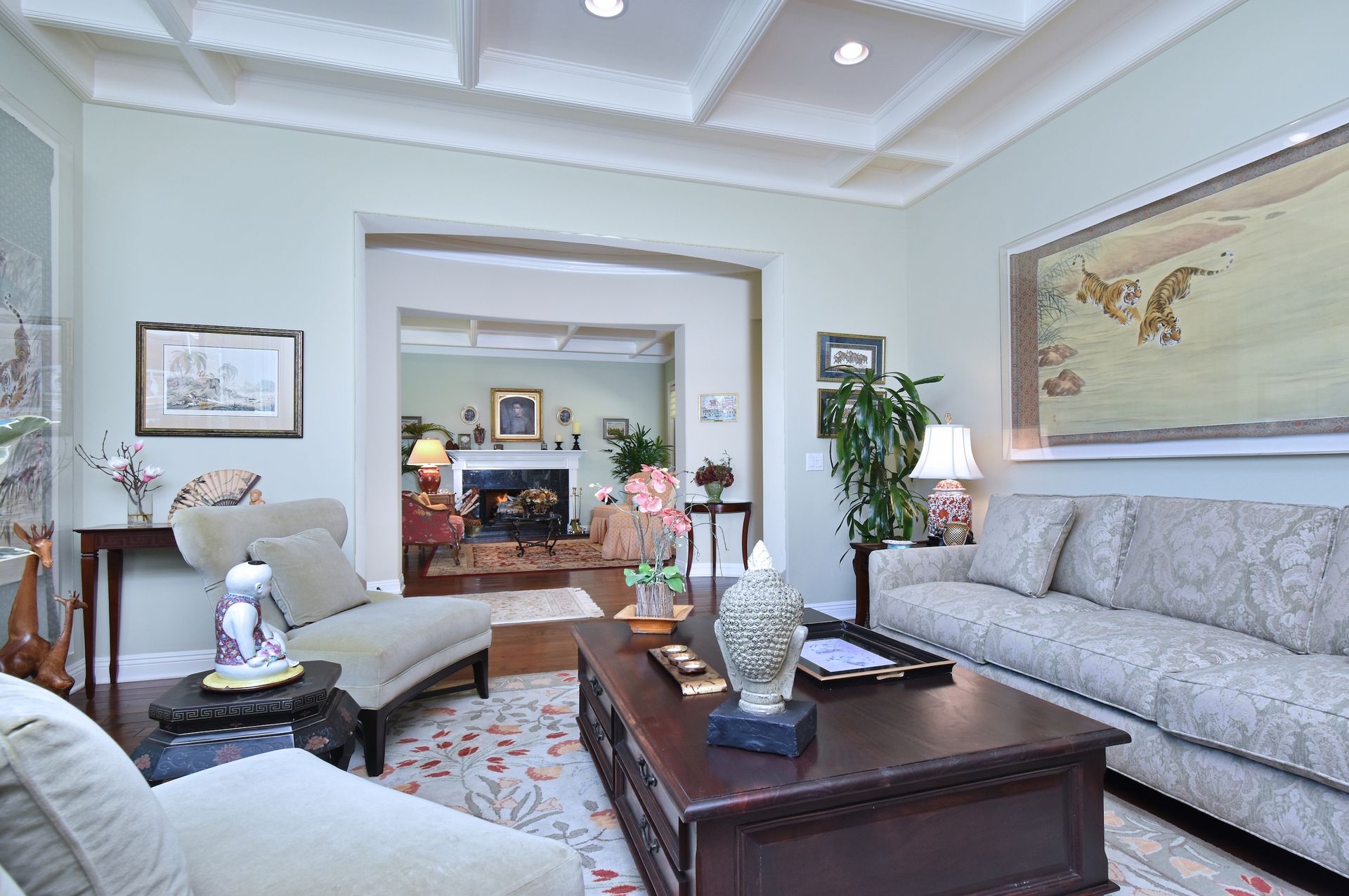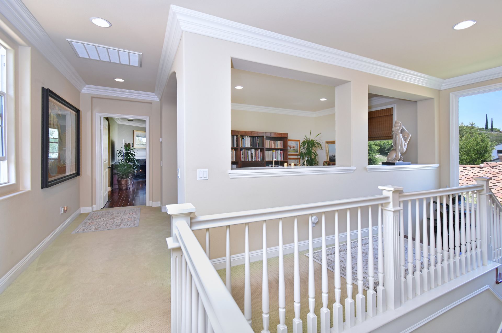Refined living and elegance in the Oaks of Calabasas. The exceptional design of this Vintage at The Oaks Plan-Four Residence boasts more than 4,700-square feet of open floorplan with a multitude of upgrades and custom finishes, from the fabulous French walnut peg and groove hardwood floors on the lower level, main staircase and in the master suite and bath, to the crown moldings, beadboard and vaulted ceilings and custom drapes and window coverings throughout. The lower level includes a formal dining room with French doors leading onto a stone patio that is ideal for entertaining, a sprawling family room with a built-in surround sound system, a living room, a library/office all with wood-burning fireplaces, a bedroom with full en suite bath and both a powder room and laundry room. An expansive gourmet kitchen offers granite counters, stainless steel Viking Professional appliances, custom pull-out cabinets, a butler’s pantry and a sunlit breakfast nook. The upstairs includes a spacious master suite with a granite fireplace and sitting area, a fabulous master bath with hot tub, granite counters and a shower and a huge closet with custom cabinets. The upstairs also includes three bedrooms with full en suite baths and a library/office. The forest-like backyard provides an abundance of privacy and seclusion amid its many fruit, olive, birch, pear, crape myrtle, sequoia and other trees and includes landscape lighting, a second stone patio, a custom pool with a waterfall, a built-in BBQ with ample counter space and refrigerator, a fire pit and a wisteria-covered trellis for shade and privacy. Additional features include an expansive four-car garage with custom built-in cabinets and storage racks, a porte-cochère and a fountain. All this within the beautifully maintained and guard-gated Oaks community, with an outstanding recreation center in the Las Virgenes School District.