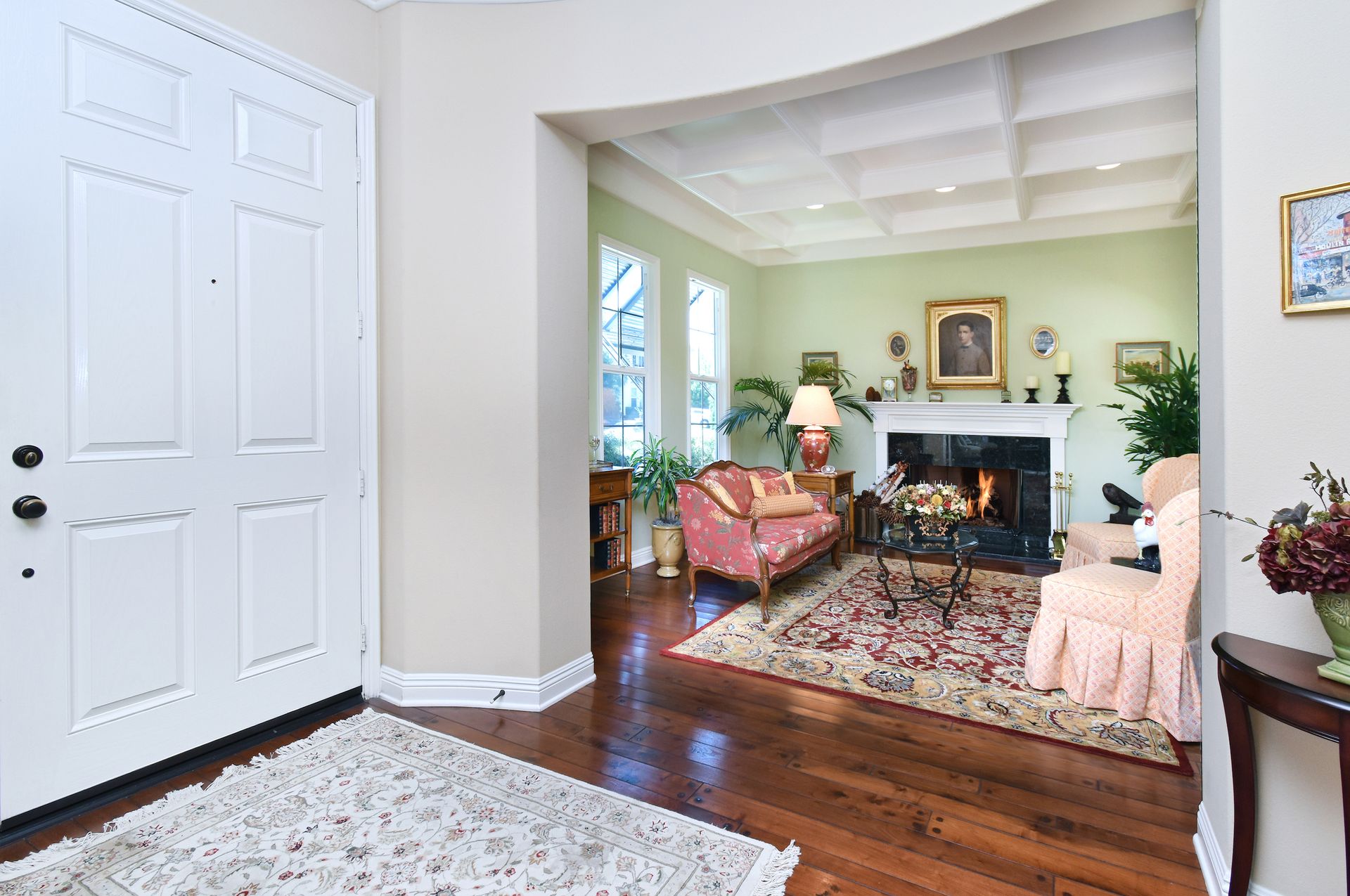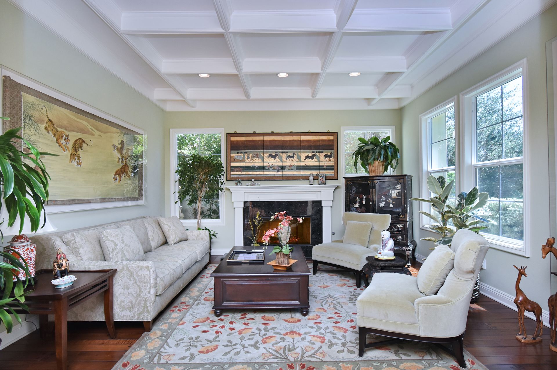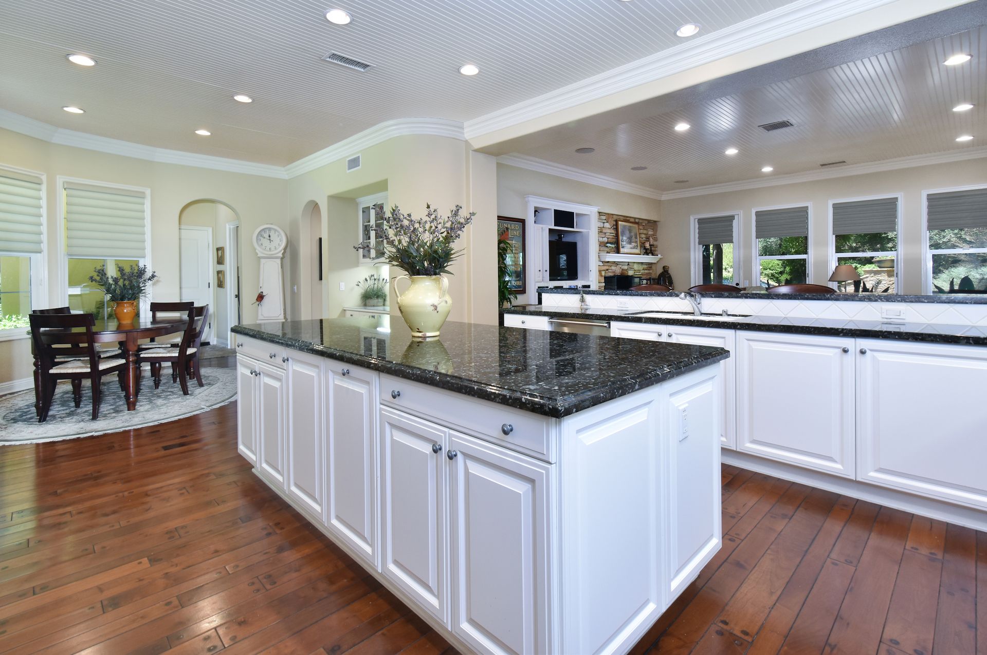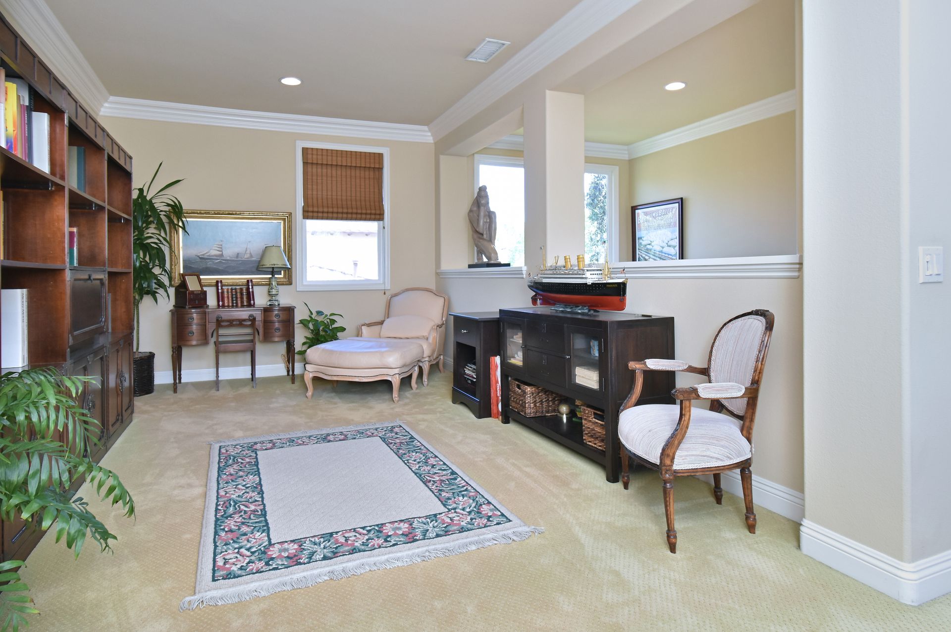 Refined living and elegance in the Oaks of Calabasas. The exceptional design of this Vintage at The Oaks Plan-Four Residence boasts more than 4,700-square feet of open floorplan with a multitude of upgrades and custom finishes, from the fabulous French walnut peg and groove hardwood floors on the lower level, main staircase and in the master suite and bath, to the crown moldings, beadboard and vaulted ceilings and custom drapes and window coverings throughout. The lower level includes a formal dining room with French doors leading onto a stone patio that is ideal for entertaining, a sprawling family room with a built-in surround sound system, a living room, a library/office all with wood-burning fireplaces, a bedroom with full en suite bath and both a powder room and laundry room. An expansive gourmet kitchen offers granite counters, stainless steel Viking Professional appliances, custom pull-out cabinets, a butler’s pantry and a sunlit breakfast nook. The upstairs includes a spacious master suite with a granite fireplace and sitting area, a fabulous master bath with hot tub, granite counters and a shower and a huge closet with custom cabinets. The upstairs also includes three bedrooms with full en suite baths and a library/office. The forest-like backyard provides an abundance of privacy and seclusion amid its many fruit, olive, birch, pear, crape myrtle, sequoia and other trees and includes landscape lighting, a second stone patio, a custom pool with a waterfall, a built-in BBQ with ample counter space and refrigerator, a fire pit and a wisteria-covered trellis for shade and privacy. Additional features include an expansive four-car garage with custom built-in cabinets and storage racks, a porte-cochère and a fountain. All this within the beautifully maintained and guard-gated Oaks community, with an outstanding recreation center in the Las Virgenes School District.