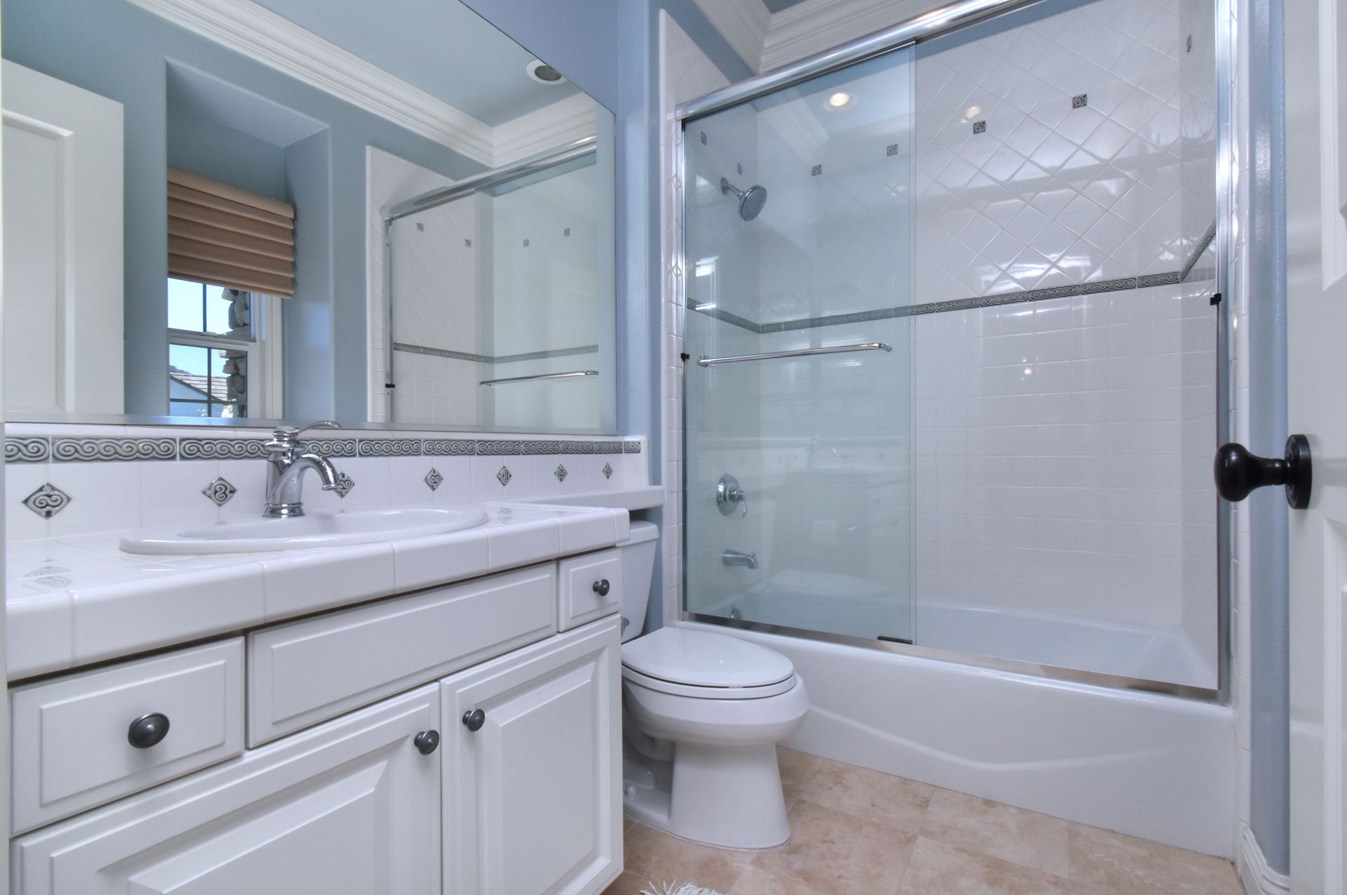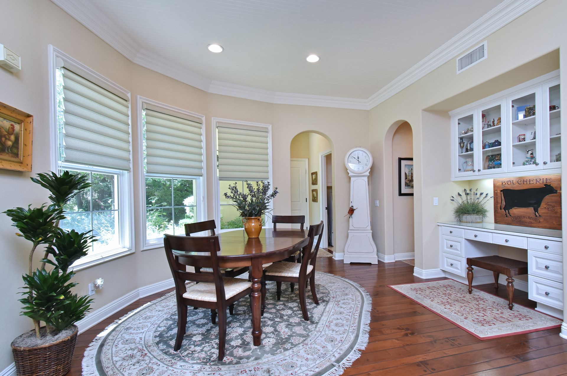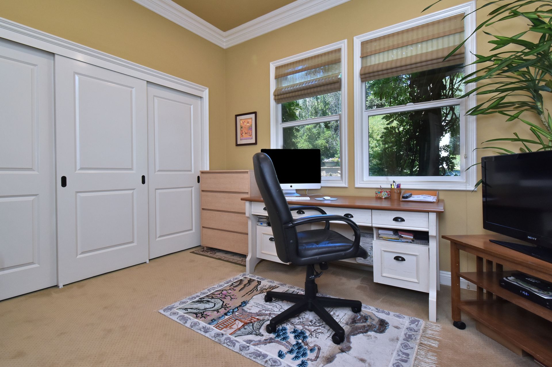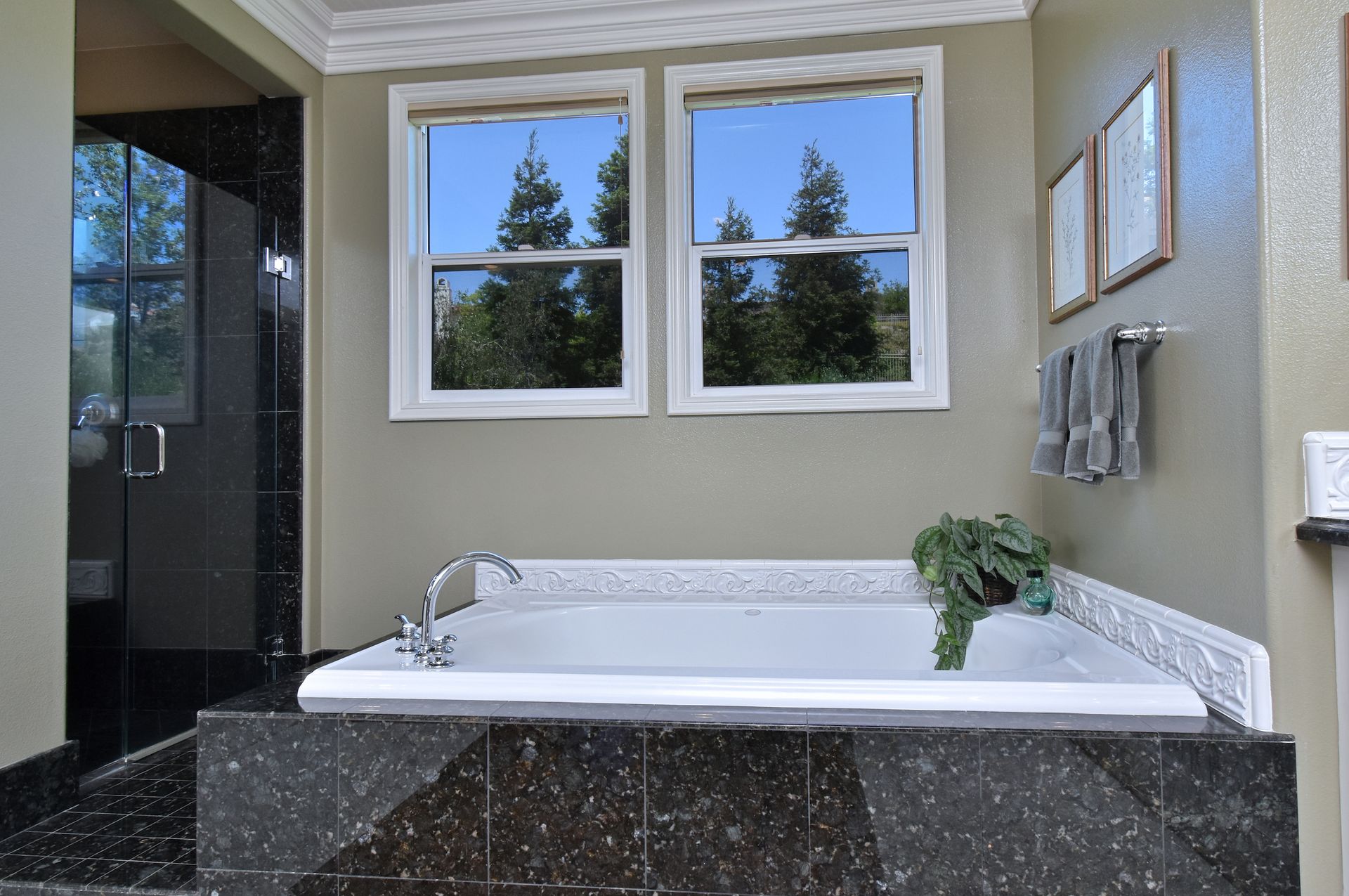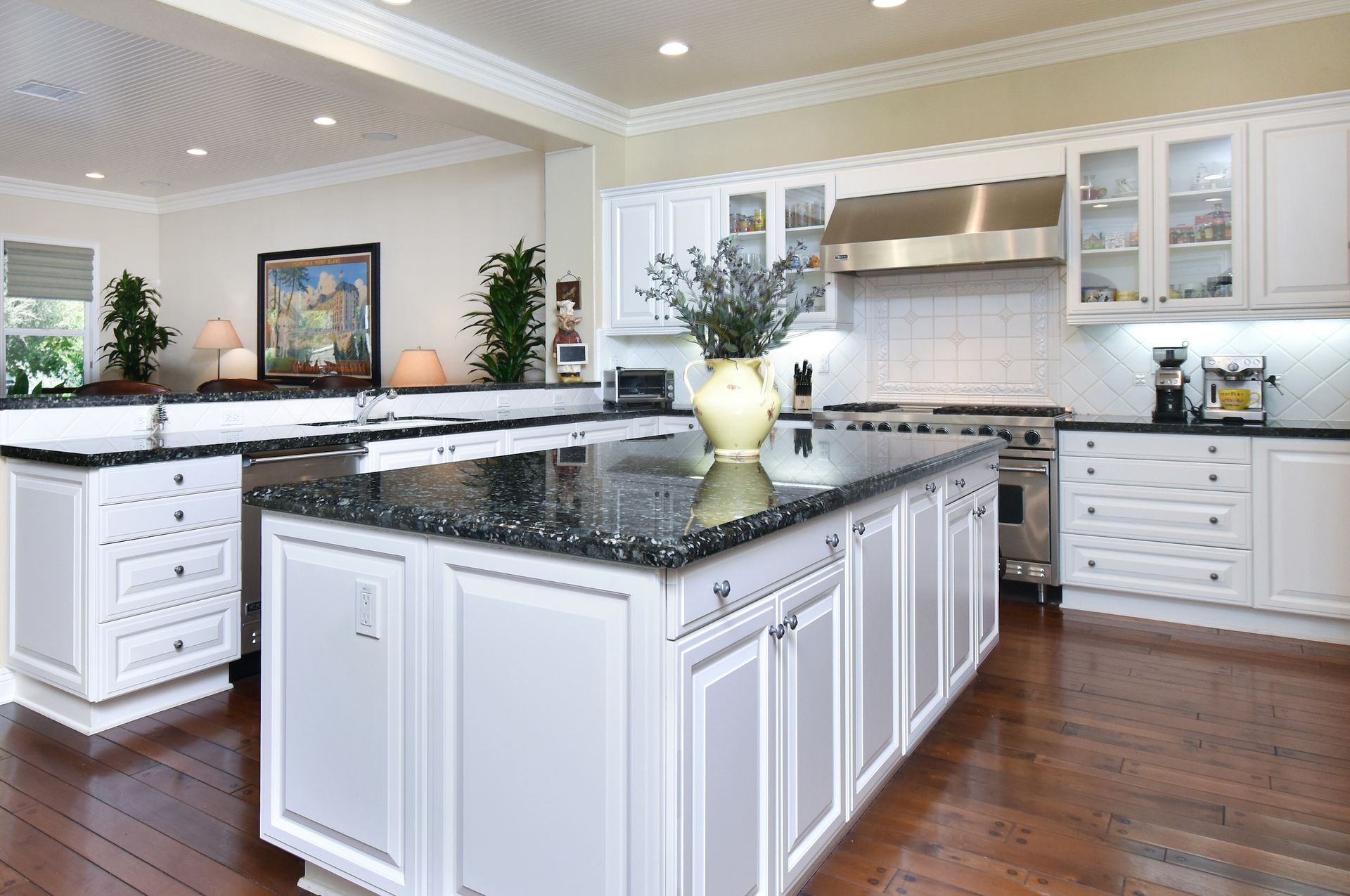 Refined living and elegance in the Oaks of Calabasas. The exceptional design of this Vintage at The Oaks Plan-Four Residence boasts more than 4,700-square feet of open floorplan with a multitude of upgrades and custom finishes, from the fabulous French walnut peg and groove hardwood floors on the lower level, main staircase and in the master suite and bath, to the crown moldings, beadboard and vaulted ceilings and custom drapes and window coverings throughout. The lower level includes a formal dining room with French doors leading onto a stone patio that is ideal for entertaining, a sprawling family room with a built-in surround sound system, a living room, a library/office all with wood-burning fireplaces, a bedroom with full en suite bath and both a powder room and laundry room. An expansive gourmet kitchen offers granite counters, stainless steel Viking Professional appliances, custom pull-out cabinets, a butler’s pantry and a sunlit breakfast nook. The upstairs includes a spacious master suite with a granite fireplace and sitting area, a fabulous master bath with hot tub, granite counters and a shower and a huge closet with custom cabinets. The upstairs also includes three bedrooms with full en suite baths and a library/office. The forest-like backyard provides an abundance of privacy and seclusion amid its many fruit, olive, birch, pear, crape myrtle, sequoia and other trees and includes landscape lighting, a second stone patio, a custom pool with a waterfall, a built-in BBQ with ample counter space and refrigerator, a fire pit and a wisteria-covered trellis for shade and privacy. Additional features include an expansive four-car garage with custom built-in cabinets and storage racks, a porte-cochère and a fountain. All this within the beautifully maintained and guard-gated Oaks community, with an outstanding recreation center in the Las Virgenes School District.