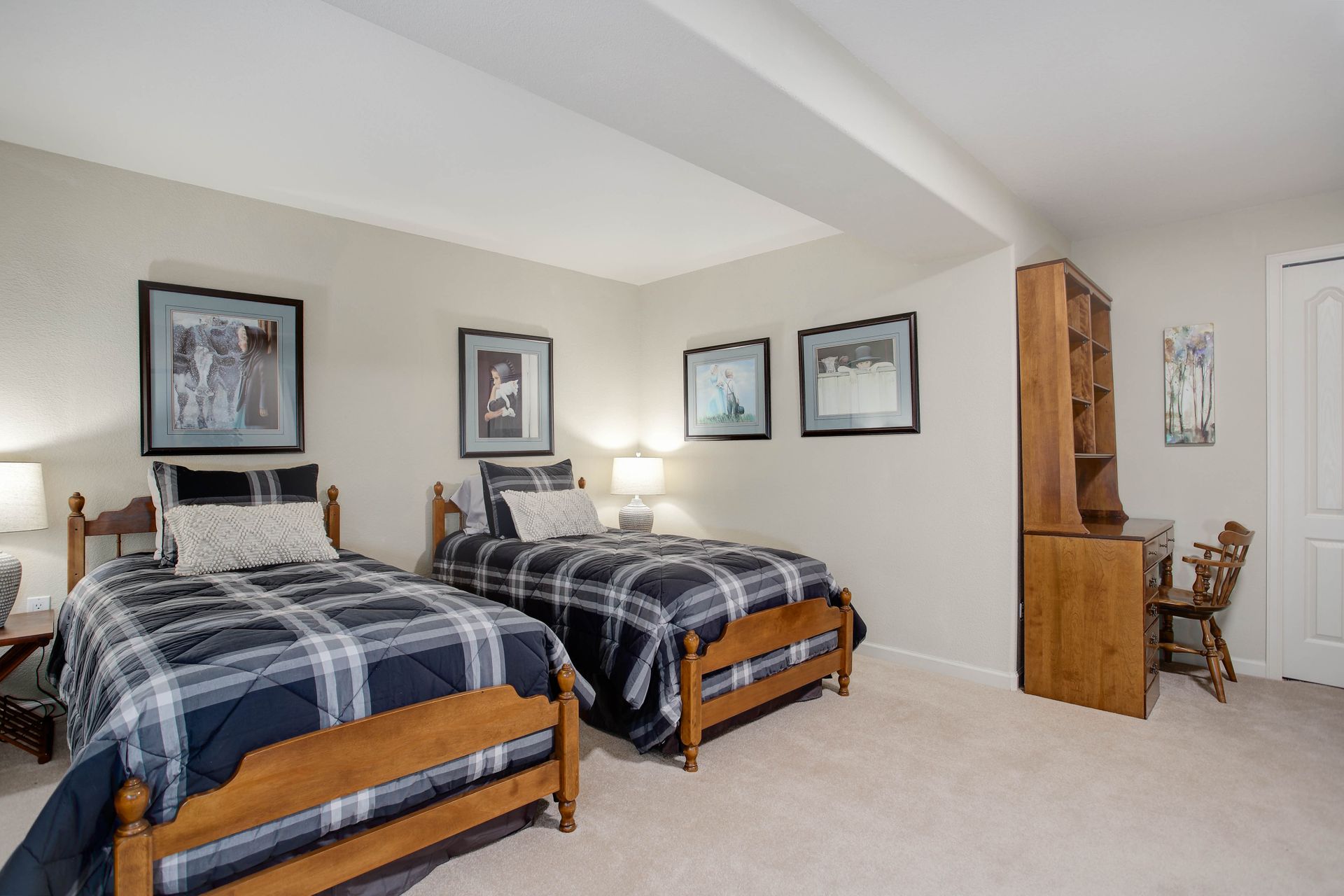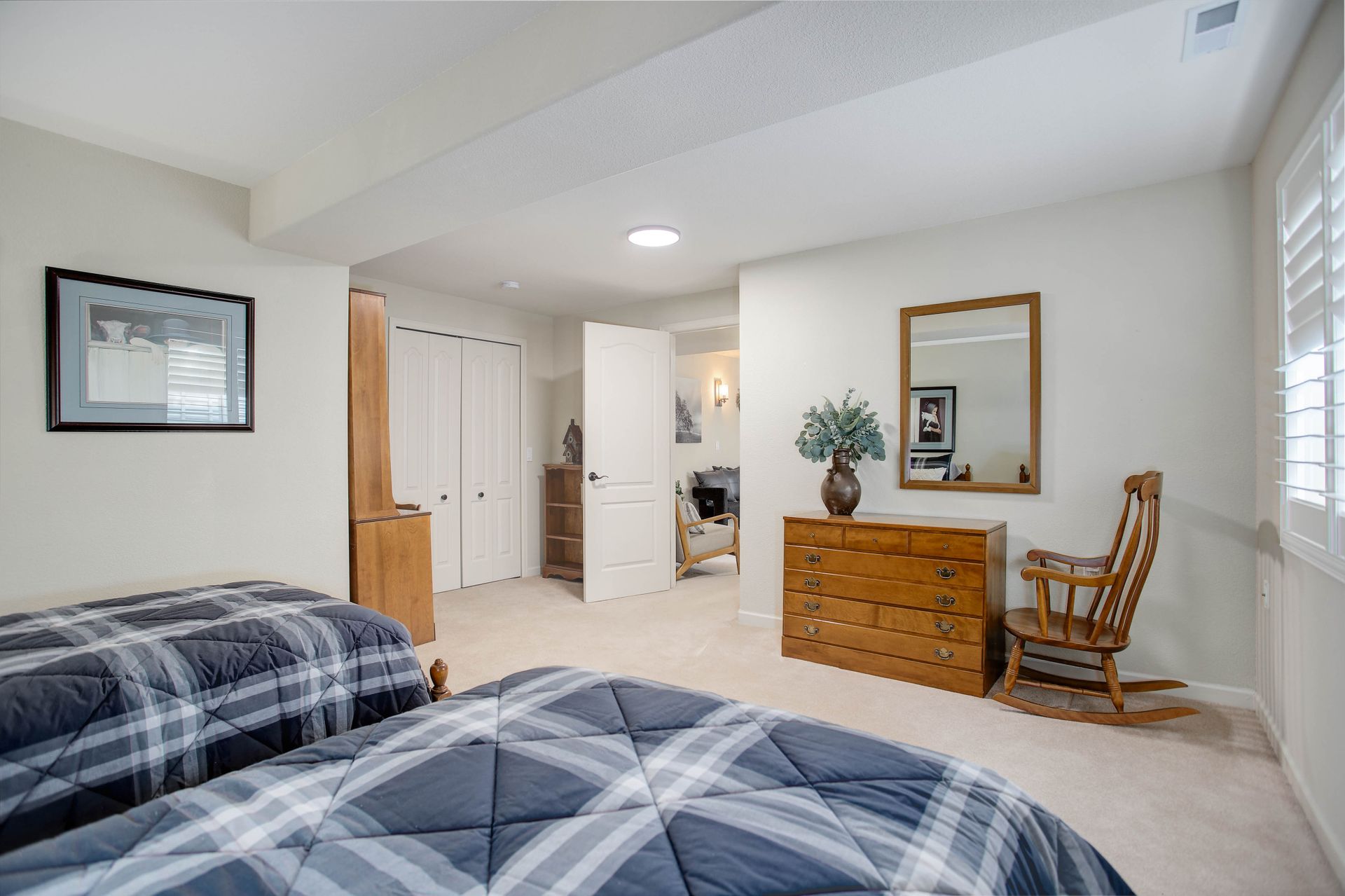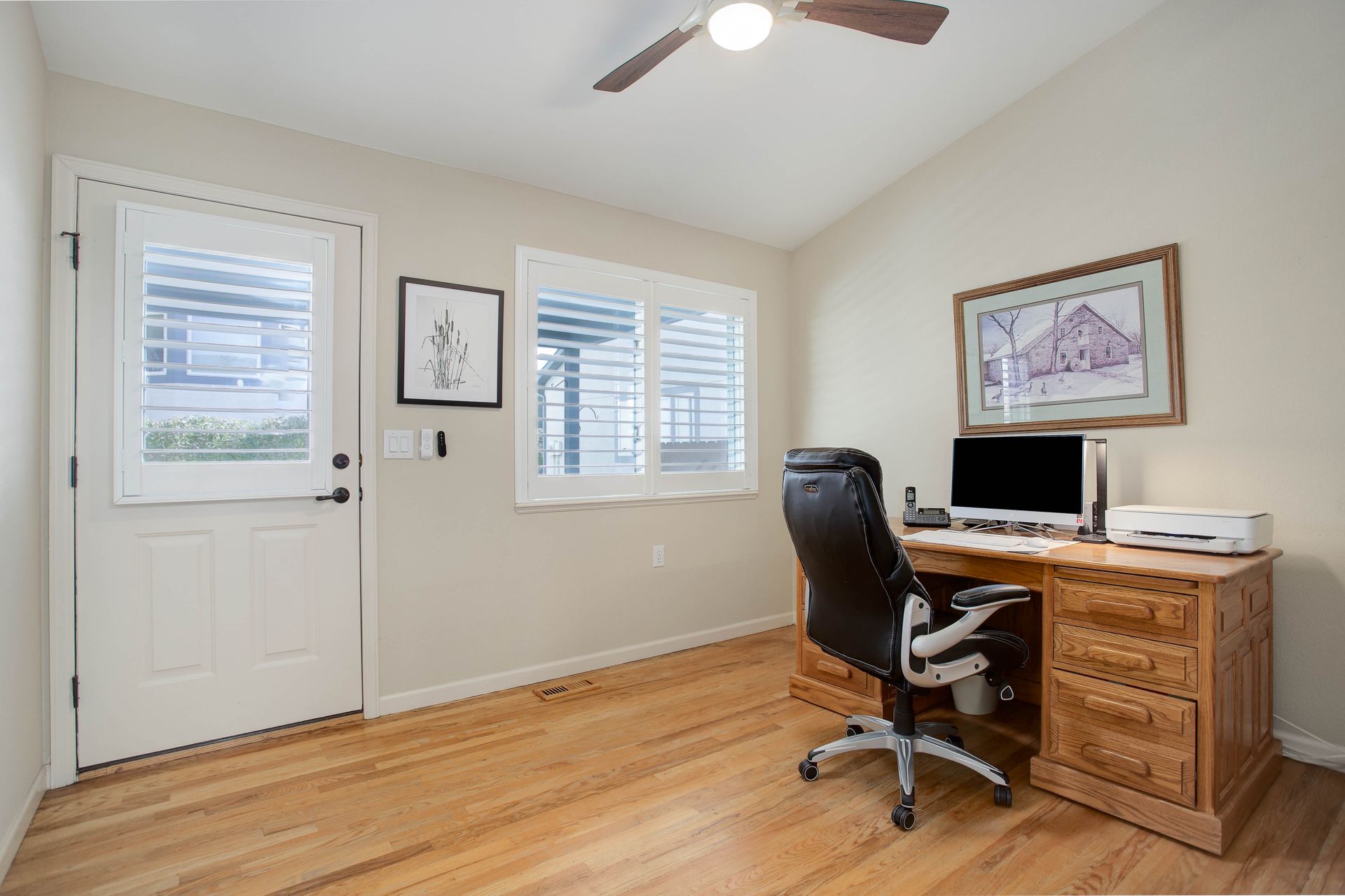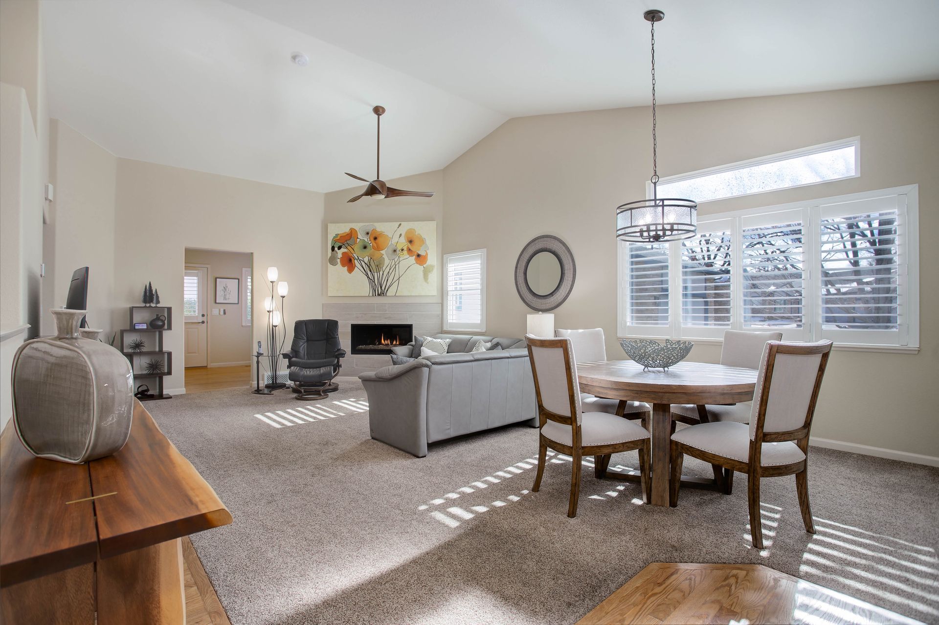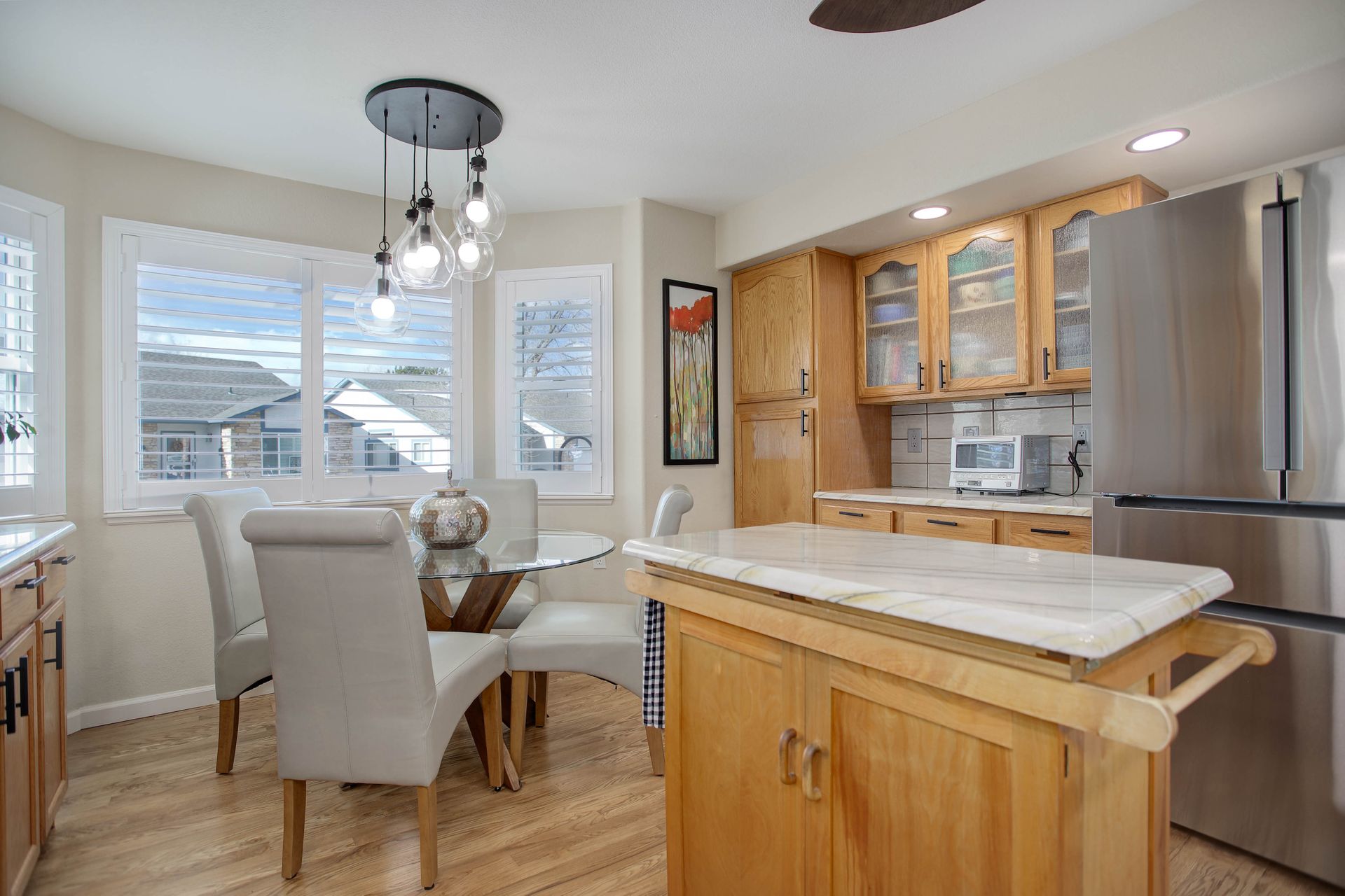 Beautifully updated, lovingly cared for townhome. This home has been excellently maintained, has plantation shutters, custom closet doors, designer lighting and plumbing fixtures throughout and features...spacious living/dining room with vaulted ceilings, and fire glass gas FP with pre-wired TV mounting area above...sunny southwest facing kitchen with ample quality oak cabinetry (some with reeded glass doors), pantry cabinet with roll-out shelving, quartzite countertops, 4"x12" subway backsplash, newer SS appliances including smooth top range and Bosch refrigerator, SS single bowl apron sink and pull-down faucet, island, custom corner wine storage shelf, wood floors and breakfast nook with bay window overlooking the front yard...tucked away office with vaulted ceiling, wood floors, storage closet and door out to the back patio...13'x15' primary bedroom with coffered ceilings, overlook to the backyard area and ensuite 5-pc bath with freestanding soaking tub, separate vanities with granite counters, newer shower surround and double walk-in closets...and 2nd bedroom across from the updated 3/4 hall bath with integrated-sink countertop, custom shower door, 12"x12" tile floors and connecting laundry room with storage cabinets. Downstairs, you'll enjoy the...bright, south-facing family room with wet bar...spacious 3rd bedroom with desk/reading area and oversized full wall closet...completely updated full hall bath...and 532sqft of unfinished storage/workshop! Outside, you'll enjoy the...mature landscaping of the well-maintained grounds...and morning sun and afternoon shade on the serene, partially-screened covered back patio. Easy access to Austin Bluffs and Academy...central AC...and stair chair lift included if you want it, too!