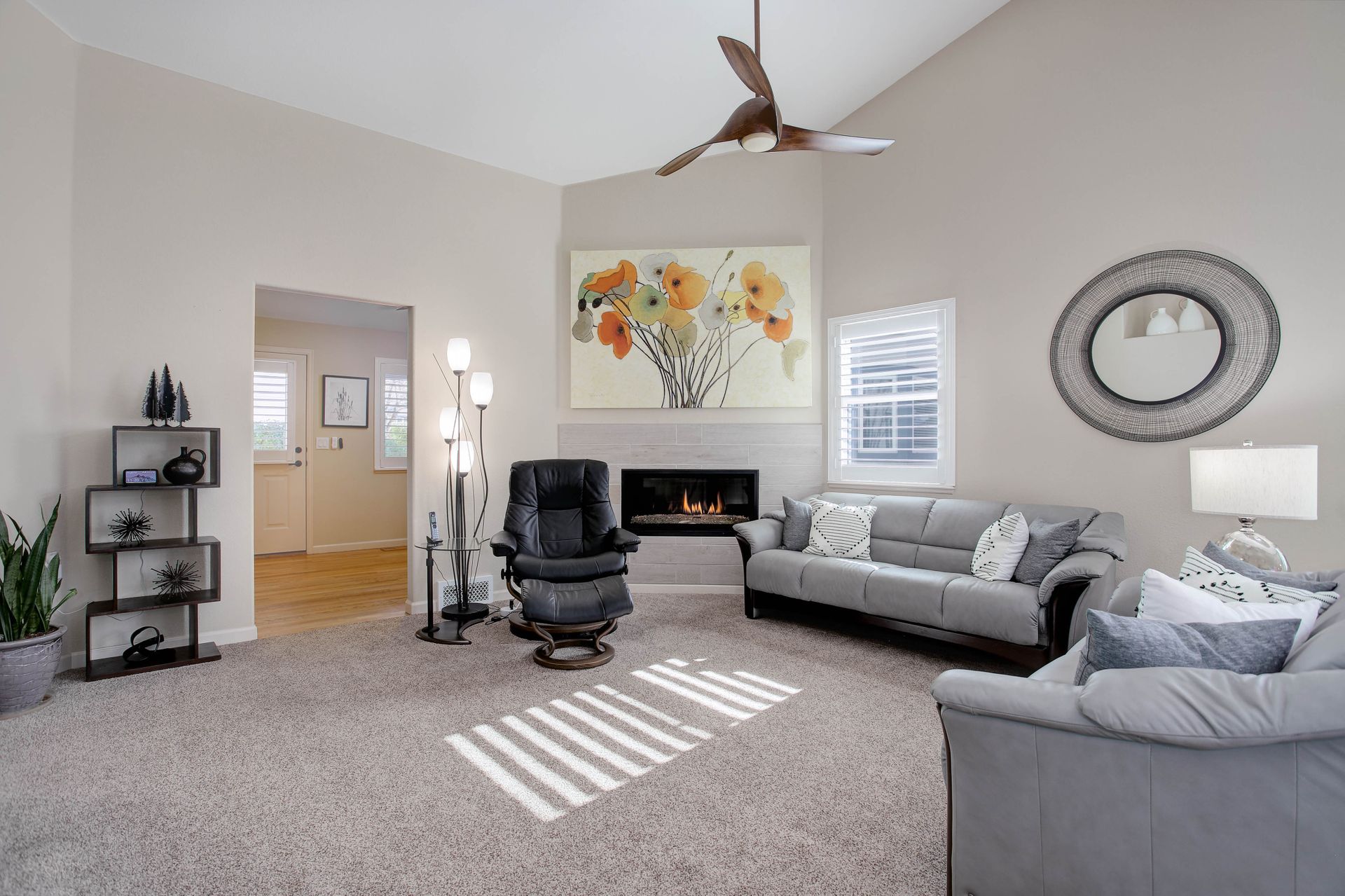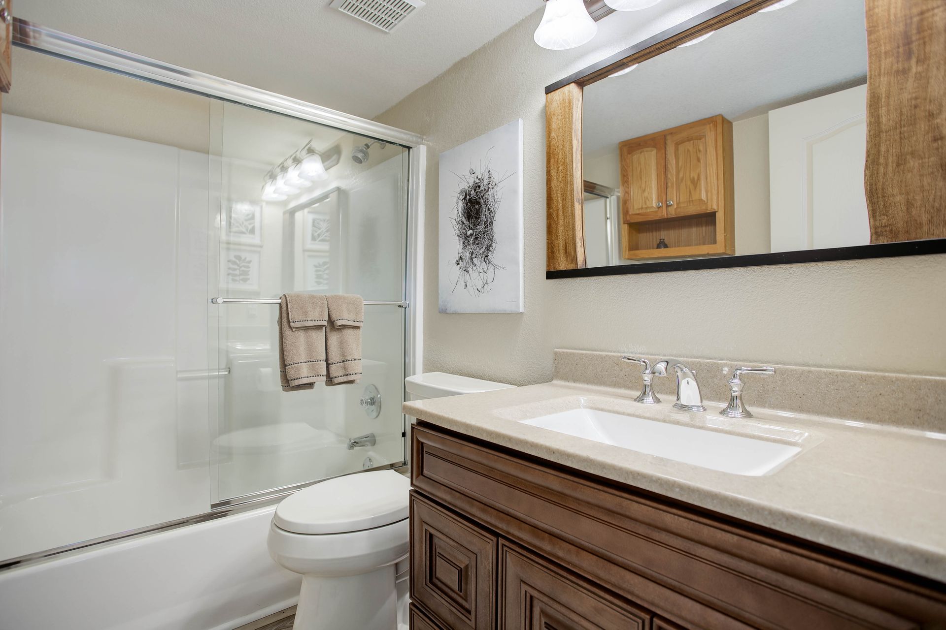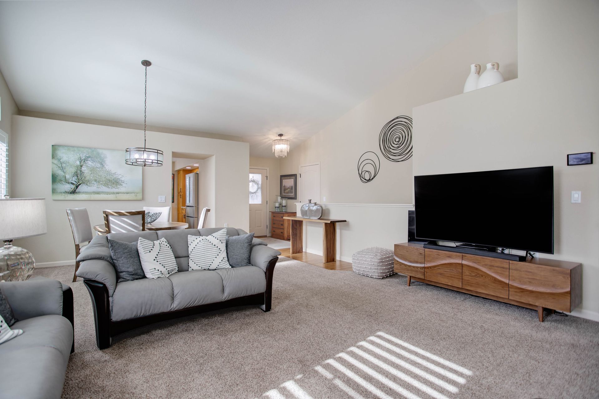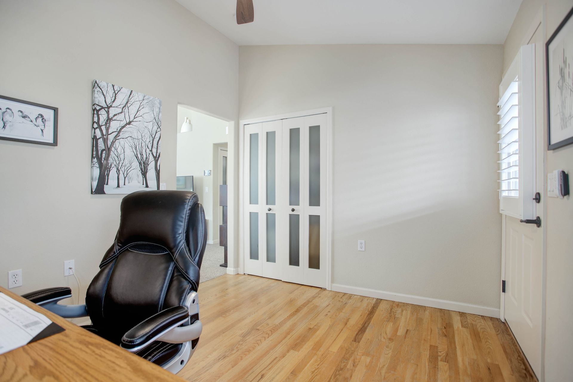 Beautifully updated, lovingly cared for townhome. This home has been excellently maintained, has plantation shutters, custom closet doors, designer lighting and plumbing fixtures throughout and features...spacious living/dining room with vaulted ceilings, and fire glass gas FP with pre-wired TV mounting area above...sunny southwest facing kitchen with ample quality oak cabinetry (some with reeded glass doors), pantry cabinet with roll-out shelving, quartzite countertops, 4"x12" subway backsplash, newer SS appliances including smooth top range and Bosch refrigerator, SS single bowl apron sink and pull-down faucet, island, custom corner wine storage shelf, wood floors and breakfast nook with bay window overlooking the front yard...tucked away office with vaulted ceiling, wood floors, storage closet and door out to the back patio...13'x15' primary bedroom with coffered ceilings, overlook to the backyard area and ensuite 5-pc bath with freestanding soaking tub, separate vanities with granite counters, newer shower surround and double walk-in closets...and 2nd bedroom across from the updated 3/4 hall bath with integrated-sink countertop, custom shower door, 12"x12" tile floors and connecting laundry room with storage cabinets. Downstairs, you'll enjoy the...bright, south-facing family room with wet bar...spacious 3rd bedroom with desk/reading area and oversized full wall closet...completely updated full hall bath...and 532sqft of unfinished storage/workshop! Outside, you'll enjoy the...mature landscaping of the well-maintained grounds...and morning sun and afternoon shade on the serene, partially-screened covered back patio. Easy access to Austin Bluffs and Academy...central AC...and stair chair lift included if you want it, too!