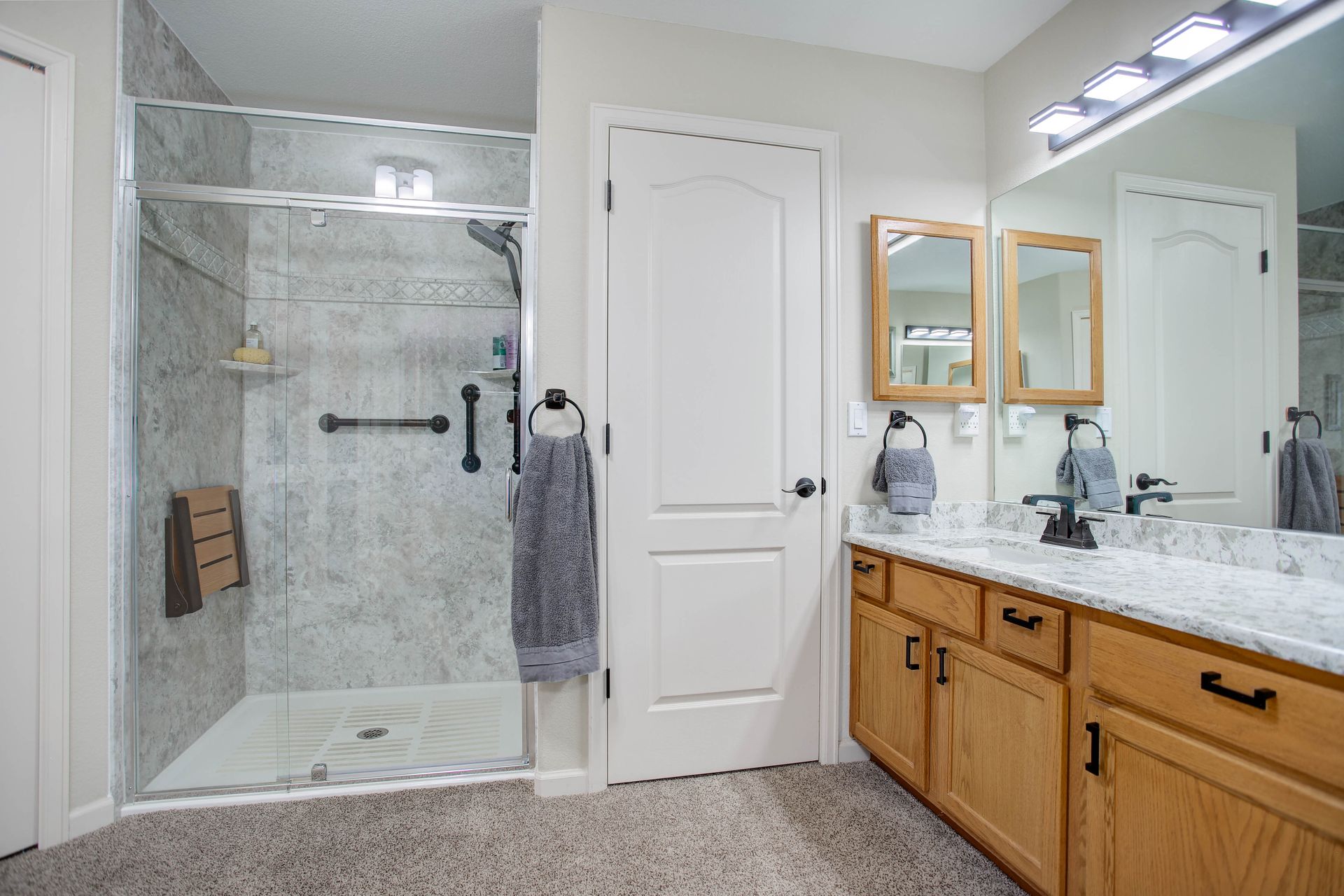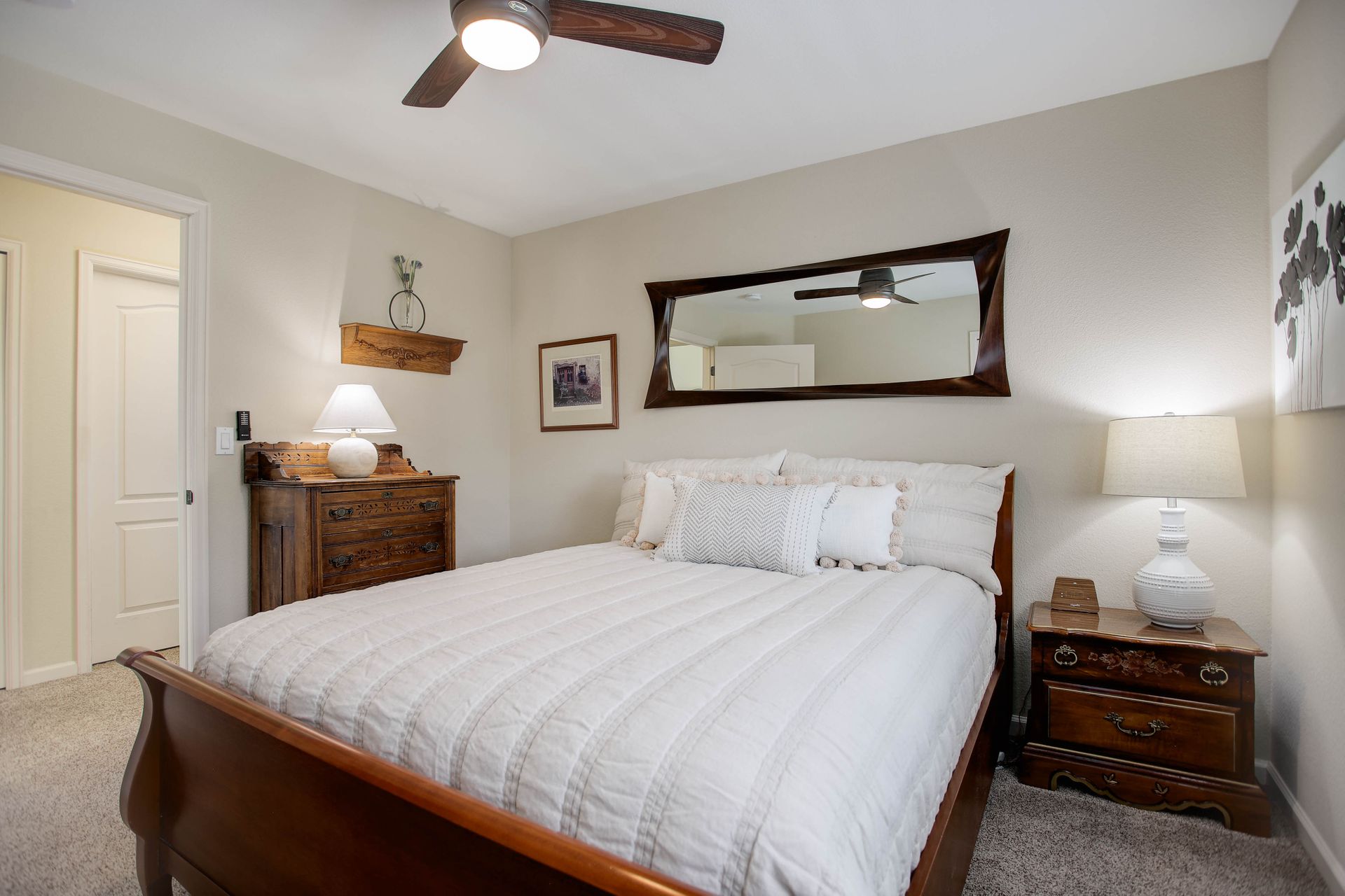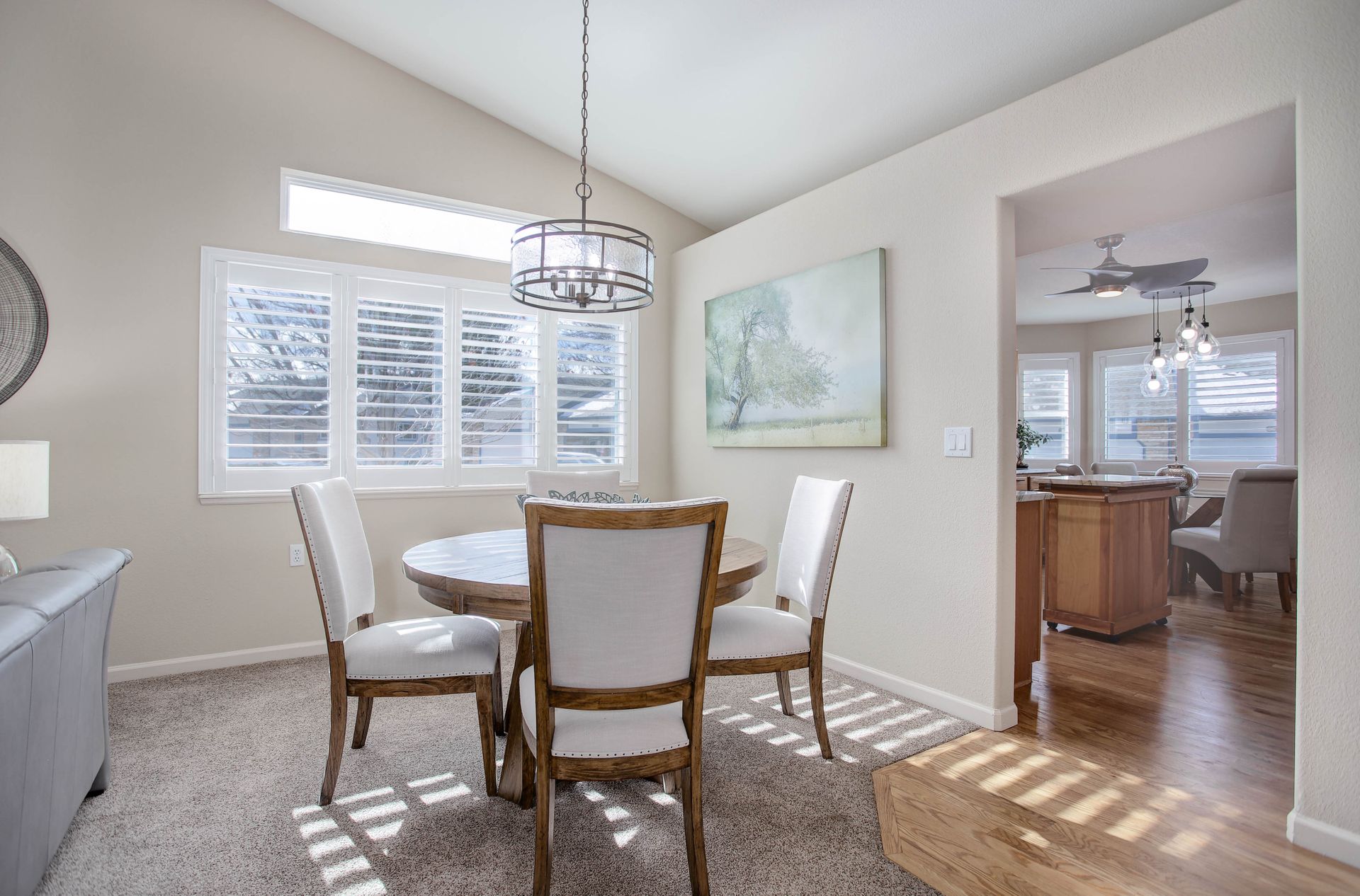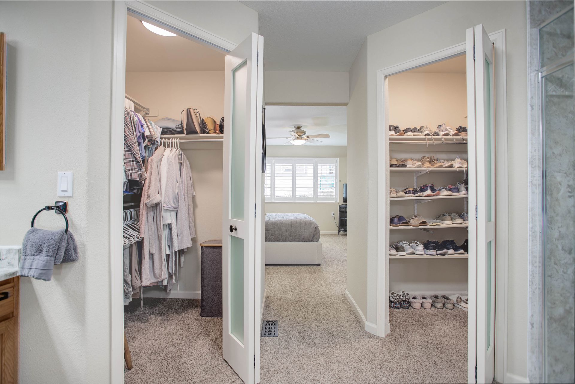 Beautifully updated, lovingly cared for townhome. This home has been excellently maintained, has plantation shutters, custom closet doors, designer lighting and plumbing fixtures throughout and features...spacious living/dining room with vaulted ceilings, and fire glass gas FP with pre-wired TV mounting area above...sunny southwest facing kitchen with ample quality oak cabinetry (some with reeded glass doors), pantry cabinet with roll-out shelving, quartzite countertops, 4"x12" subway backsplash, newer SS appliances including smooth top range and Bosch refrigerator, SS single bowl apron sink and pull-down faucet, island, custom corner wine storage shelf, wood floors and breakfast nook with bay window overlooking the front yard...tucked away office with vaulted ceiling, wood floors, storage closet and door out to the back patio...13'x15' primary bedroom with coffered ceilings, overlook to the backyard area and ensuite 5-pc bath with freestanding soaking tub, separate vanities with granite counters, newer shower surround and double walk-in closets...and 2nd bedroom across from the updated 3/4 hall bath with integrated-sink countertop, custom shower door, 12"x12" tile floors and connecting laundry room with storage cabinets. Downstairs, you'll enjoy the...bright, south-facing family room with wet bar...spacious 3rd bedroom with desk/reading area and oversized full wall closet...completely updated full hall bath...and 532sqft of unfinished storage/workshop! Outside, you'll enjoy the...mature landscaping of the well-maintained grounds...and morning sun and afternoon shade on the serene, partially-screened covered back patio. Easy access to Austin Bluffs and Academy...central AC...and stair chair lift included if you want it, too!
