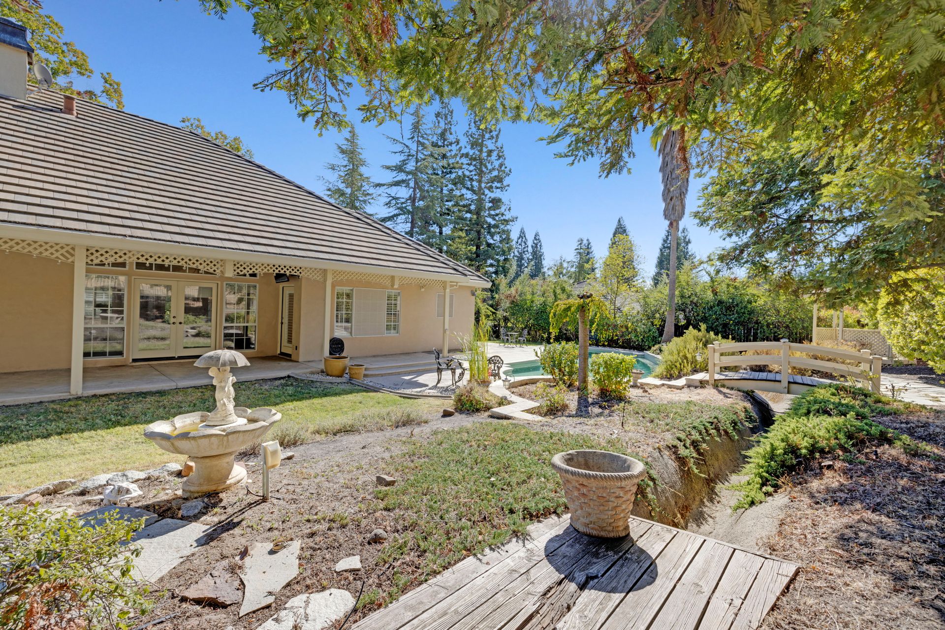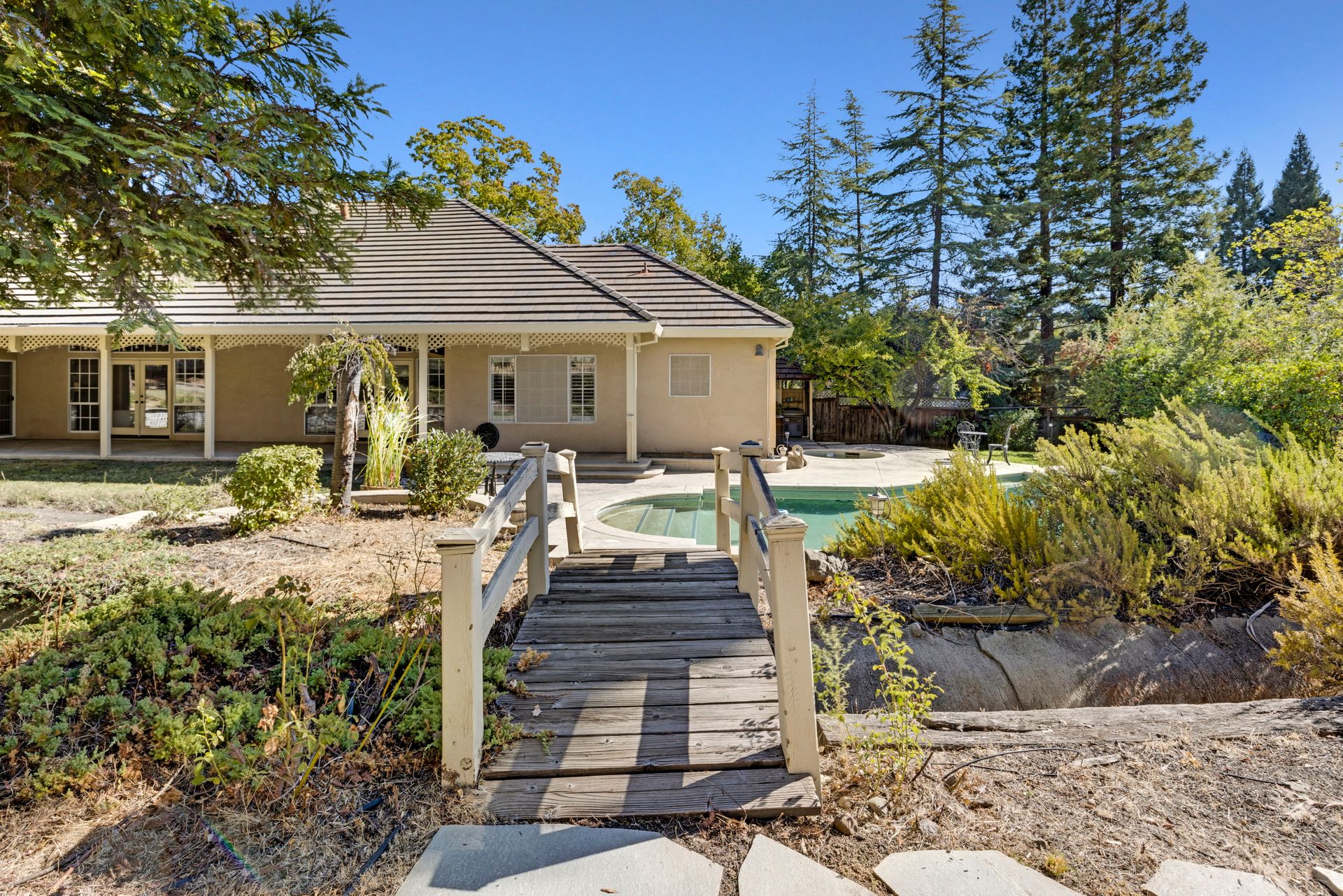 Single Story Gem in Coveted Clover Valley. Manicured large level yard. Spacious floor plan with formal living and dining areas. Travertine tile floors and carpeted bedrooms. Kitchen opens to family room with double sided fireplace. Large primary ensuite with outdoor access. Primary bathroom with soaking tub, separate shower and private commode area. Three additional bedrooms with two on the opposite side of home. Two more full bathrooms, one with double sinks and shower over tub, the other with a shower. Huge laundry room with sink and outdoor access. Three-car garage and RV possible. Handsome tile roof and smooth finish stucco enhance the stylish curb appeal. Pool and spa with gas heater. Property backs to open space. Enjoy the peace and serenity of Clover Valley with nearby convenience to town. Great schools, restaurants, and all the best amenities of the area. Perfectly situated between the state capital and Tahoe. Here is your chance to have it all.