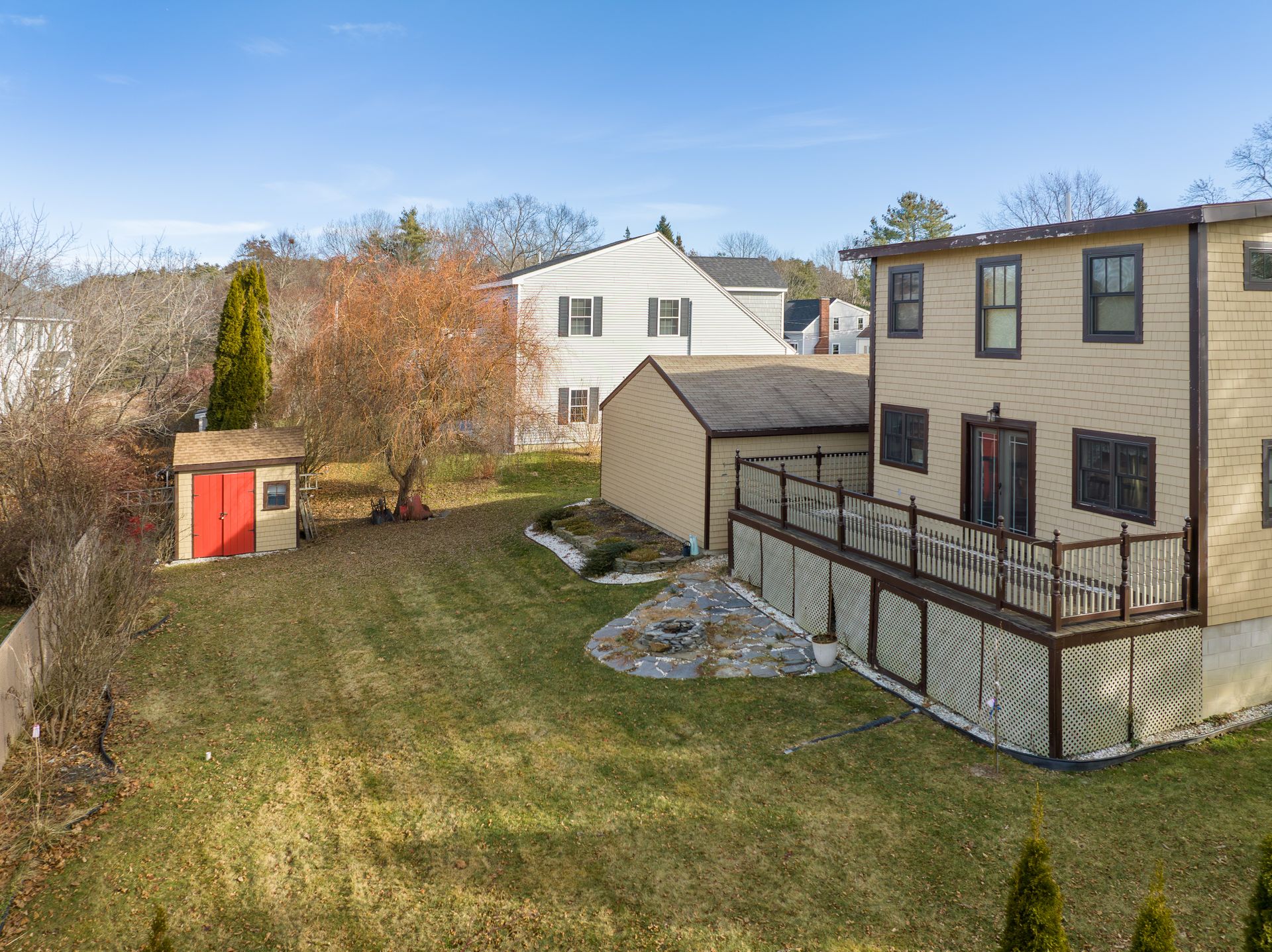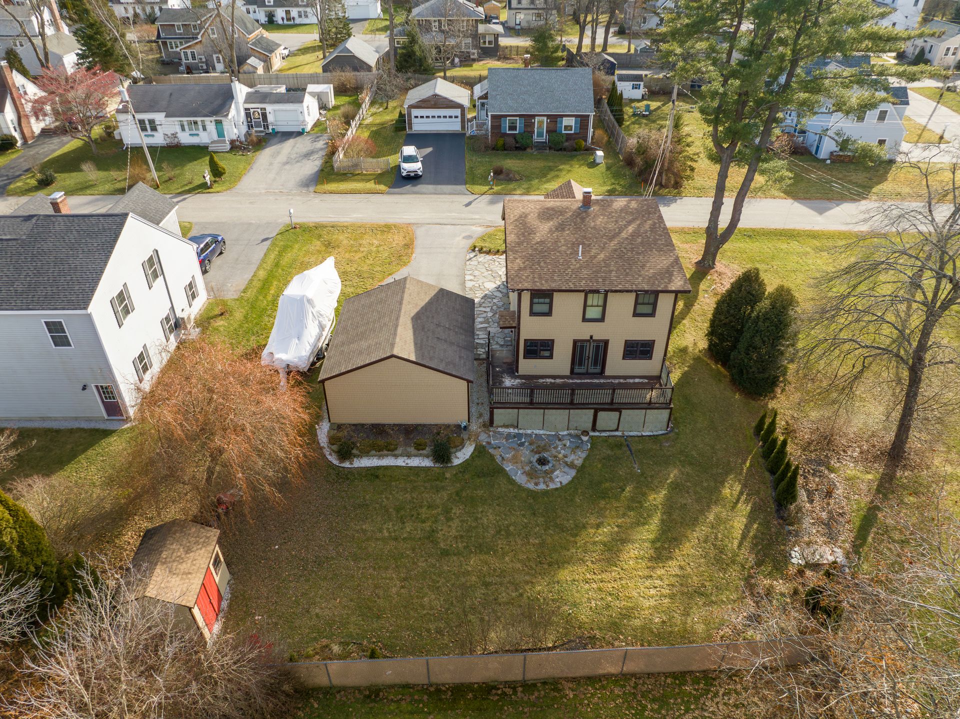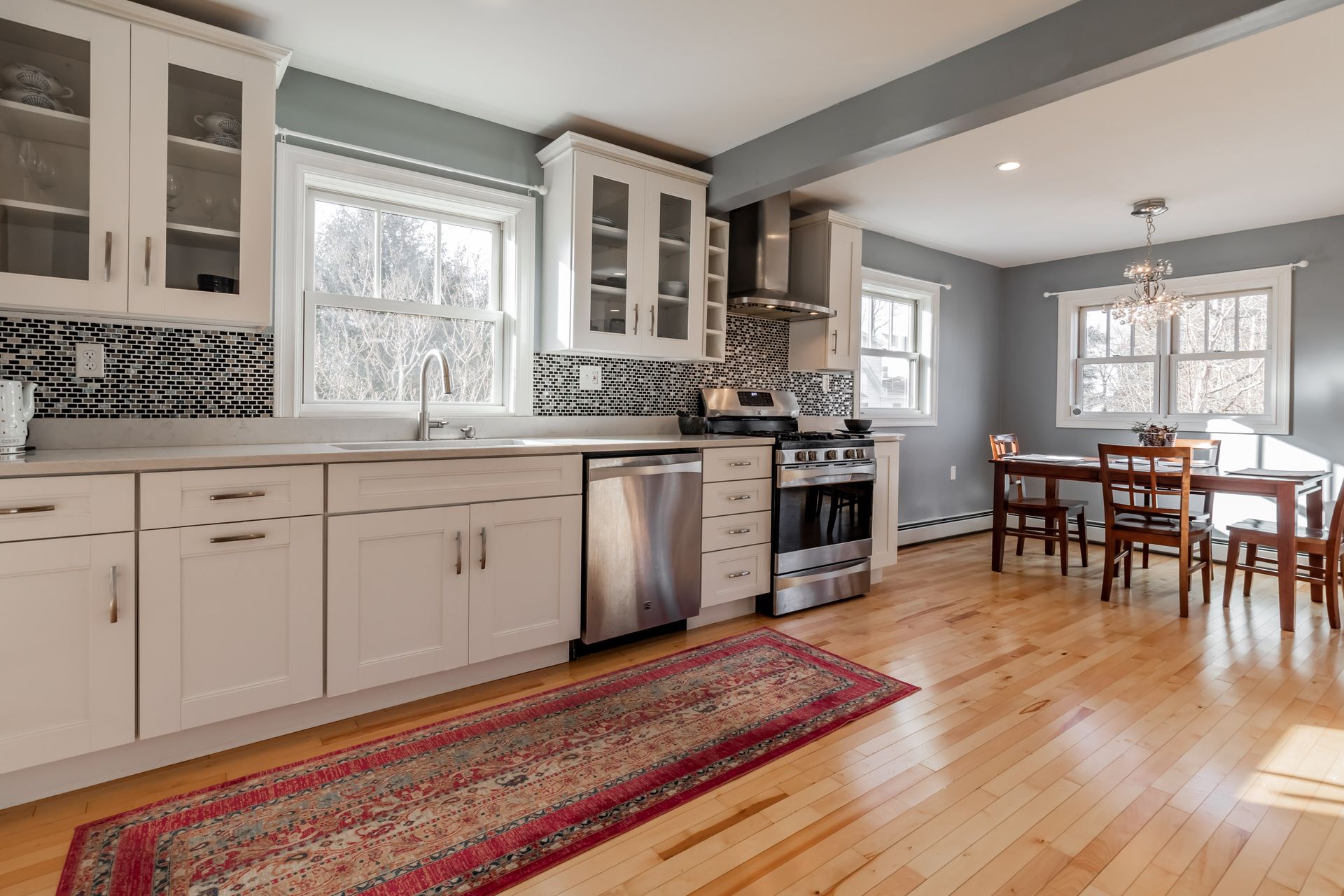 Updated kitchen and baths, new windows, wood shingle siding and roof. All Canadian birch floors downstairs and original Southern pine up. Beautifully landscaped yard with shed, two car garage and deck.