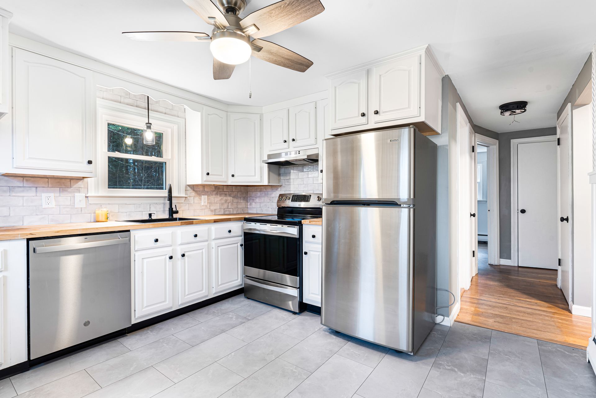 This three-bedroom, two-bathroom house is situated on a sizeable lot in a cul-de-sac location. The approximately 1,400 square foot residence has undergone renovations to the kitchen and bathroom. The layout of the first floor is versatile and offers a variety of uses including the option for a first-floor primary bedroom.