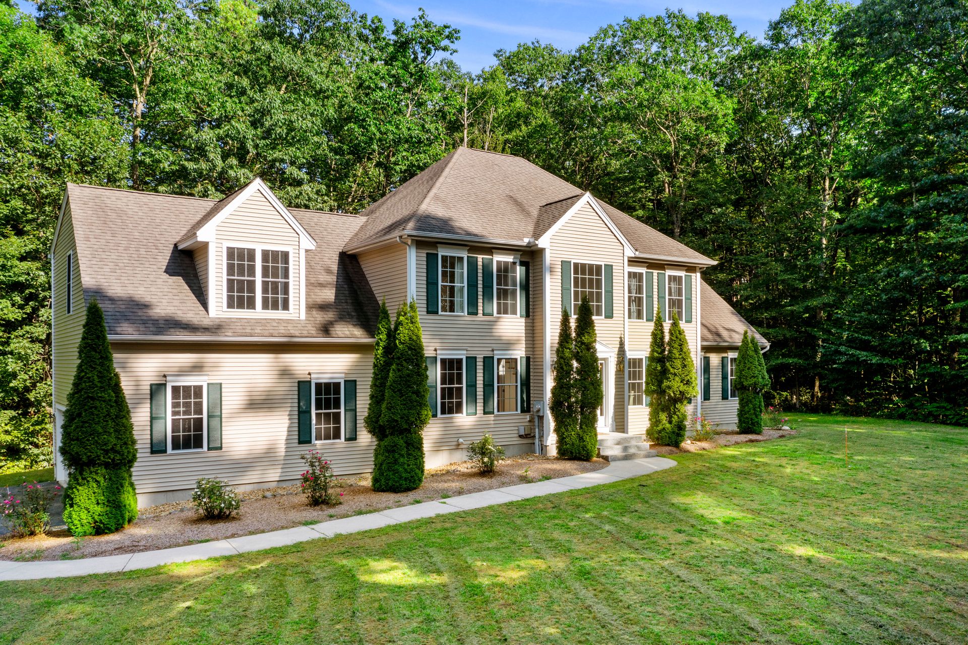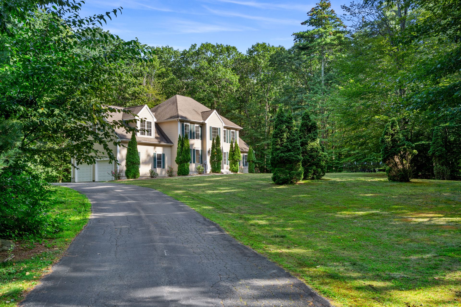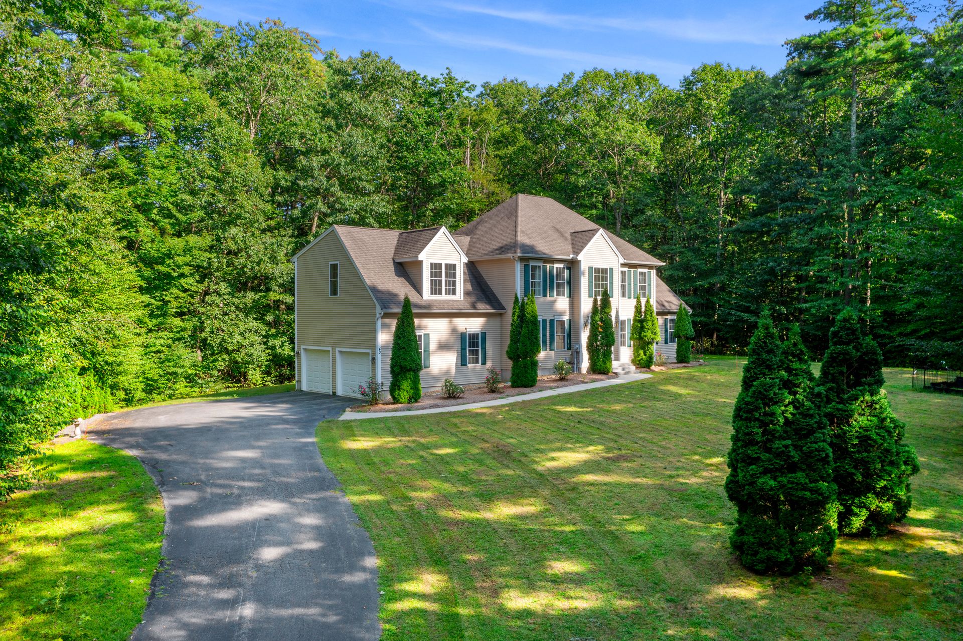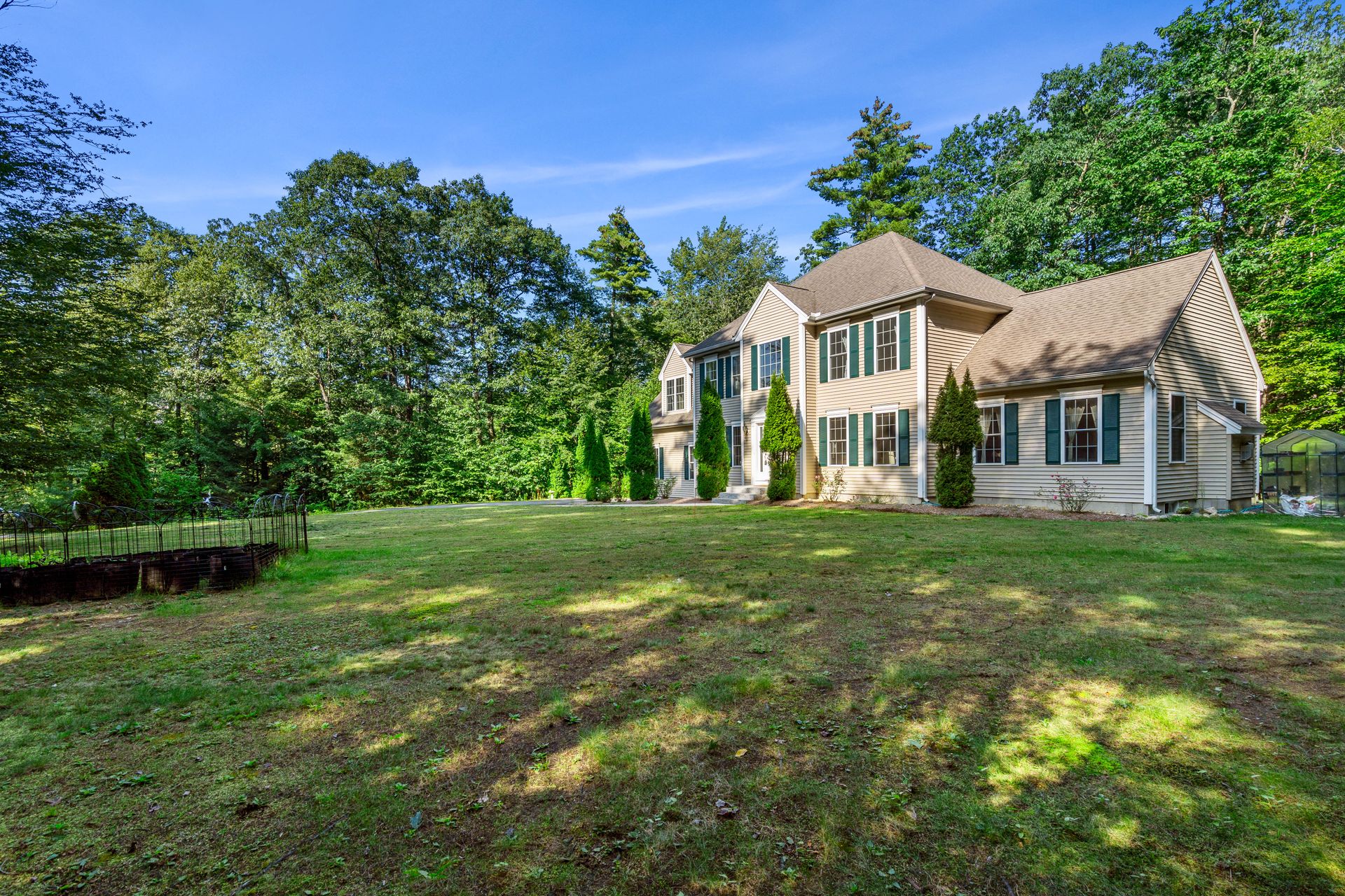 Welcome to this beautiful Colonial home situated on a spacious over five-acre lot in the picturesque town of Mont Vernon. Built in 2005, this stately home has been recently updated and is move-in ready! The main living areas feature hardwood floors and the vaulted living room and entire second floor have brand-new carpets, ensuring plush comfort underfoot. The kitchen is a chef's dream, with new high-end appliances from 2023, including a new gas range, hood, refrigerator, and dishwasher. The antique copper kitchen sink and gold fixtures add a touch of elegance, while the newly painted cabinets and quartz countertops provide a fresh and contemporary look. Upstairs, there are three large bedrooms and a truly spacious primary suite with double walk-in closets. The primary bathroom has also been tastefully renovated with a granite countertop, natural stone-tiled shower and updated fixtures. The finished basement offers a dynamite in-home movie theater with stadium seating as well as two additional finished bonus rooms for guests or relaxation. Even the powder room features new Italian tile, adding a touch of luxury to this space. The house boasts a whole-house Ethernet system for seamless connectivity and the office is equipped with new French doors for privacy. This property is not just a beautiful home but also offers the convenience of being close to Mont Vernon's and Amherst's historical centers and just minutes away from shopping in Milford.
