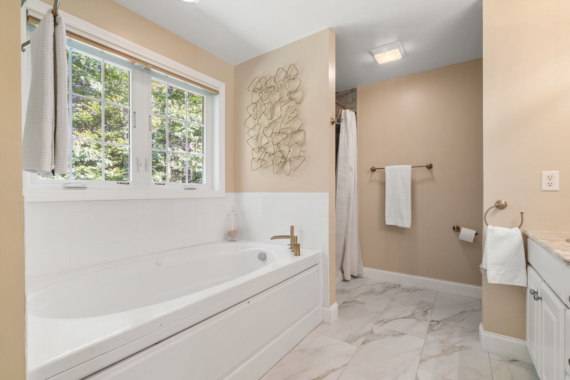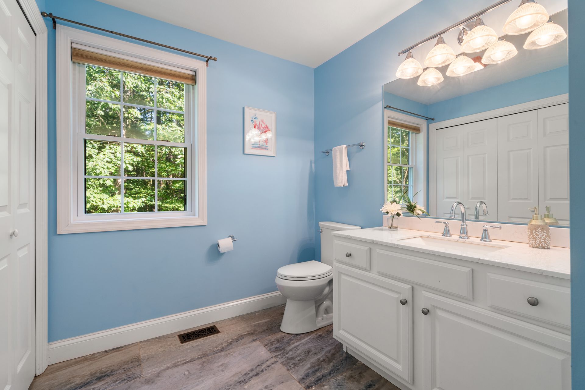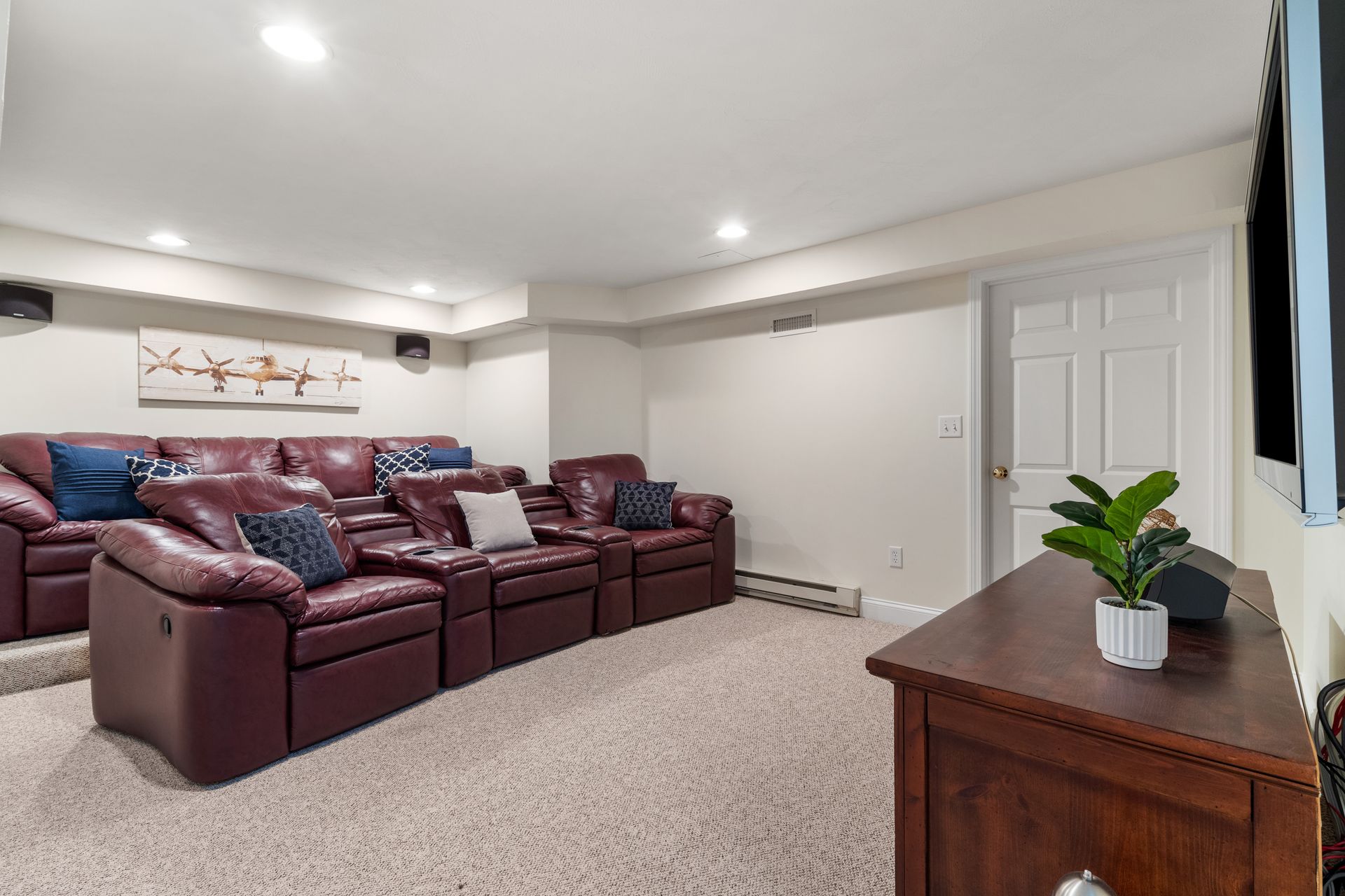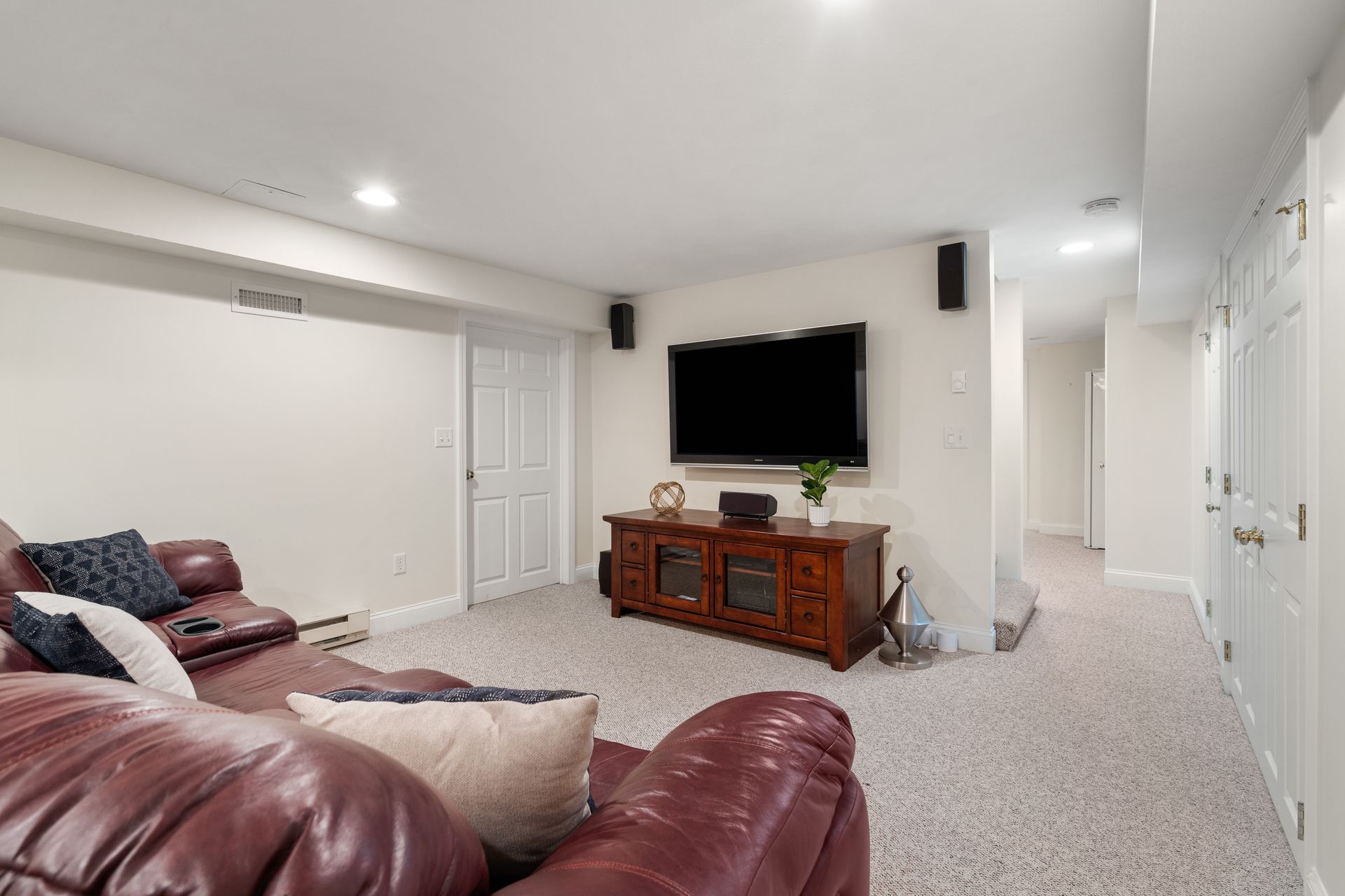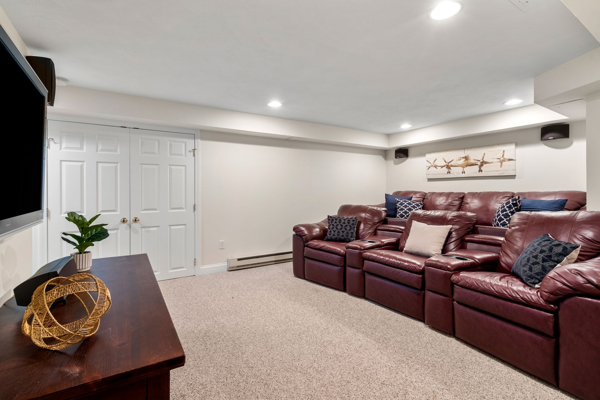 Welcome to this beautiful Colonial home situated on a spacious over five-acre lot in the picturesque town of Mont Vernon. Built in 2005, this stately home has been recently updated and is move-in ready! The main living areas feature hardwood floors and the vaulted living room and entire second floor have brand-new carpets, ensuring plush comfort underfoot. The kitchen is a chef's dream, with new high-end appliances from 2023, including a new gas range, hood, refrigerator, and dishwasher. The antique copper kitchen sink and gold fixtures add a touch of elegance, while the newly painted cabinets and quartz countertops provide a fresh and contemporary look. Upstairs, there are three large bedrooms and a truly spacious primary suite with double walk-in closets. The primary bathroom has also been tastefully renovated with a granite countertop, natural stone-tiled shower and updated fixtures. The finished basement offers a dynamite in-home movie theater with stadium seating as well as two additional finished bonus rooms for guests or relaxation. Even the powder room features new Italian tile, adding a touch of luxury to this space. The house boasts a whole-house Ethernet system for seamless connectivity and the office is equipped with new French doors for privacy. This property is not just a beautiful home but also offers the convenience of being close to Mont Vernon's and Amherst's historical centers and just minutes away from shopping in Milford.