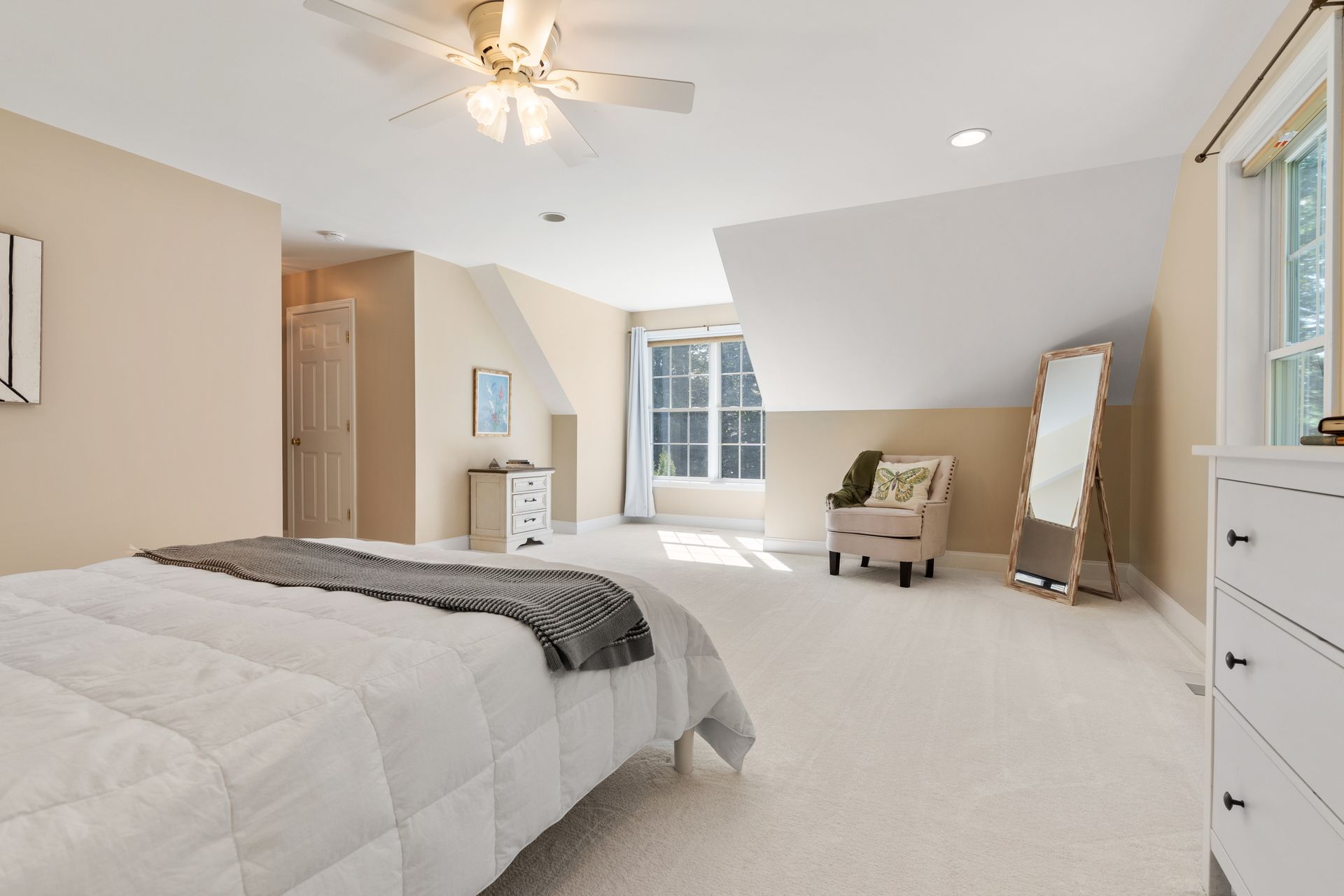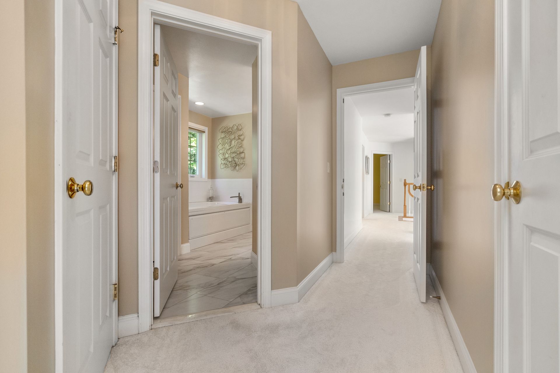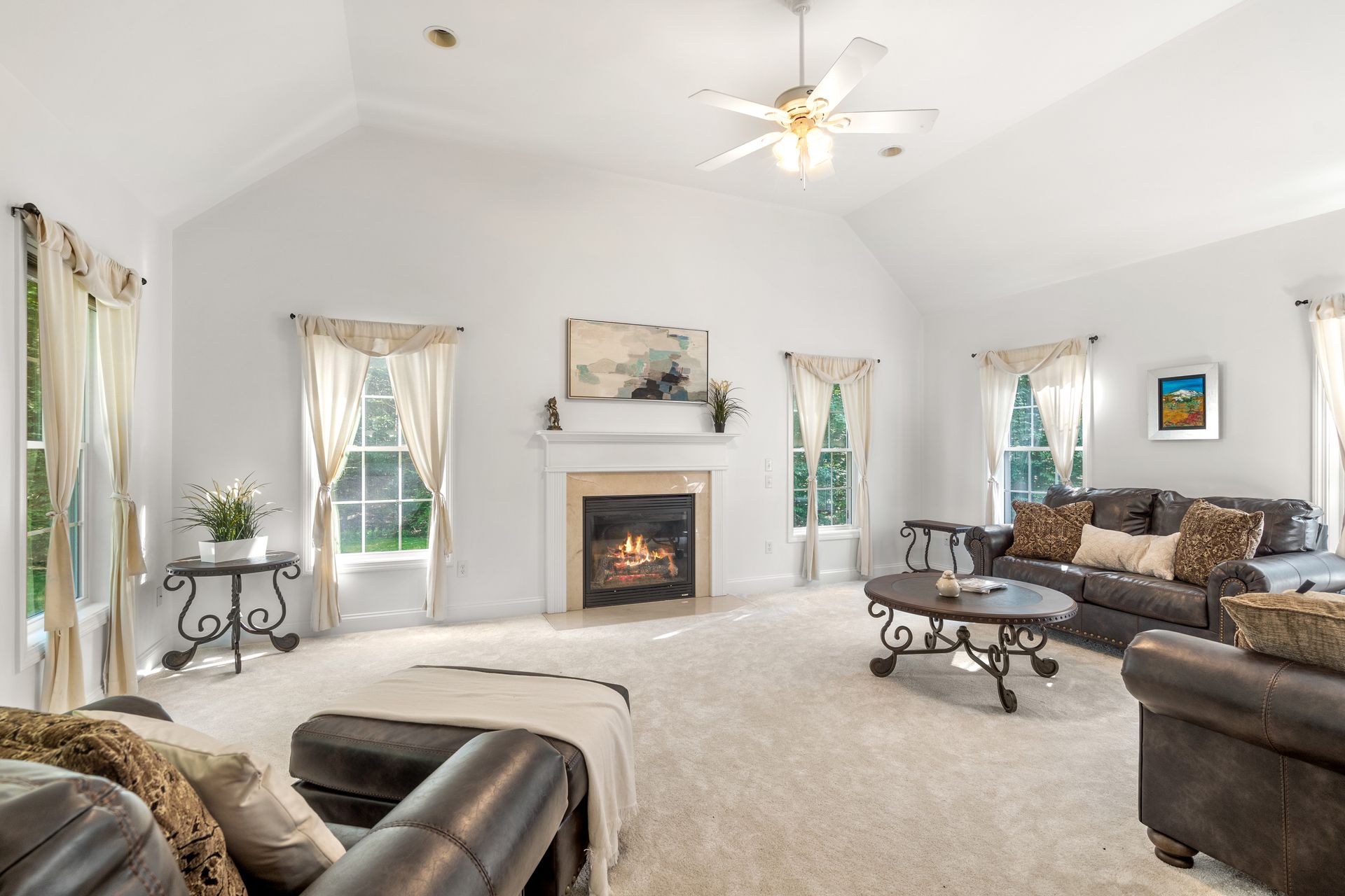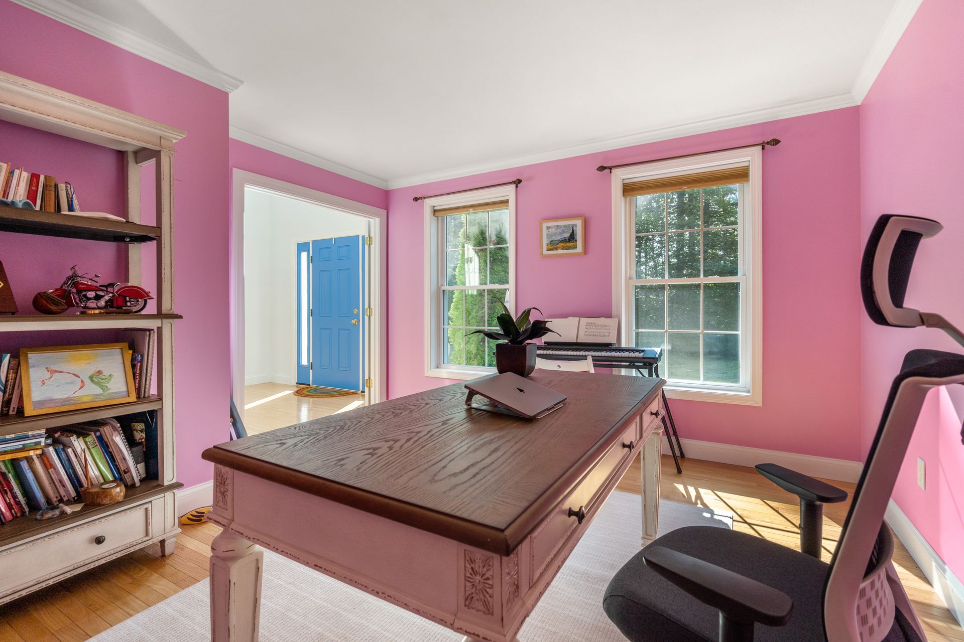 Welcome to this beautiful Colonial home situated on a spacious over five-acre lot in the picturesque town of Mont Vernon. Built in 2005, this stately home has been recently updated and is move-in ready! The main living areas feature hardwood floors and the vaulted living room and entire second floor have brand-new carpets, ensuring plush comfort underfoot. The kitchen is a chef's dream, with new high-end appliances from 2023, including a new gas range, hood, refrigerator, and dishwasher. The antique copper kitchen sink and gold fixtures add a touch of elegance, while the newly painted cabinets and quartz countertops provide a fresh and contemporary look. Upstairs, there are three large bedrooms and a truly spacious primary suite with double walk-in closets. The primary bathroom has also been tastefully renovated with a granite countertop, natural stone-tiled shower and updated fixtures. The finished basement offers a dynamite in-home movie theater with stadium seating as well as two additional finished bonus rooms for guests or relaxation. Even the powder room features new Italian tile, adding a touch of luxury to this space. The house boasts a whole-house Ethernet system for seamless connectivity and the office is equipped with new French doors for privacy. This property is not just a beautiful home but also offers the convenience of being close to Mont Vernon's and Amherst's historical centers and just minutes away from shopping in Milford.