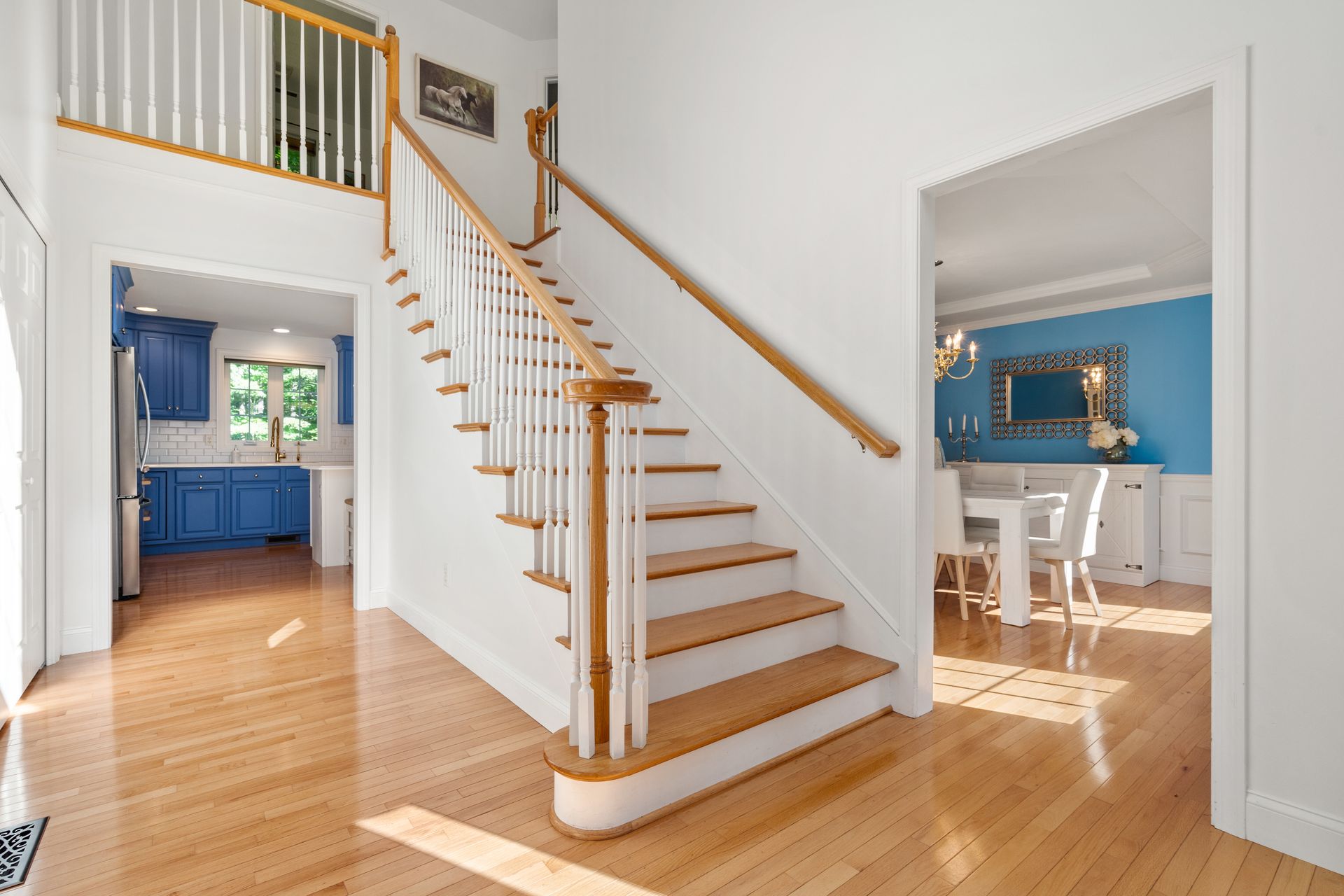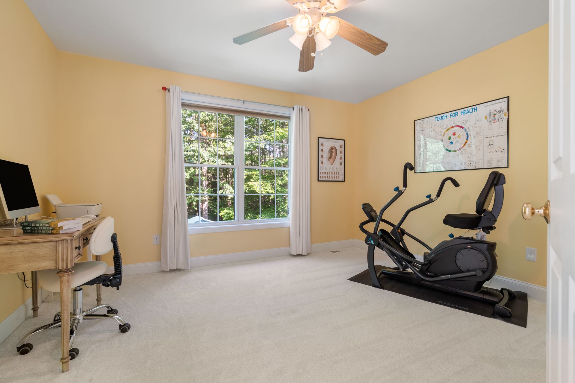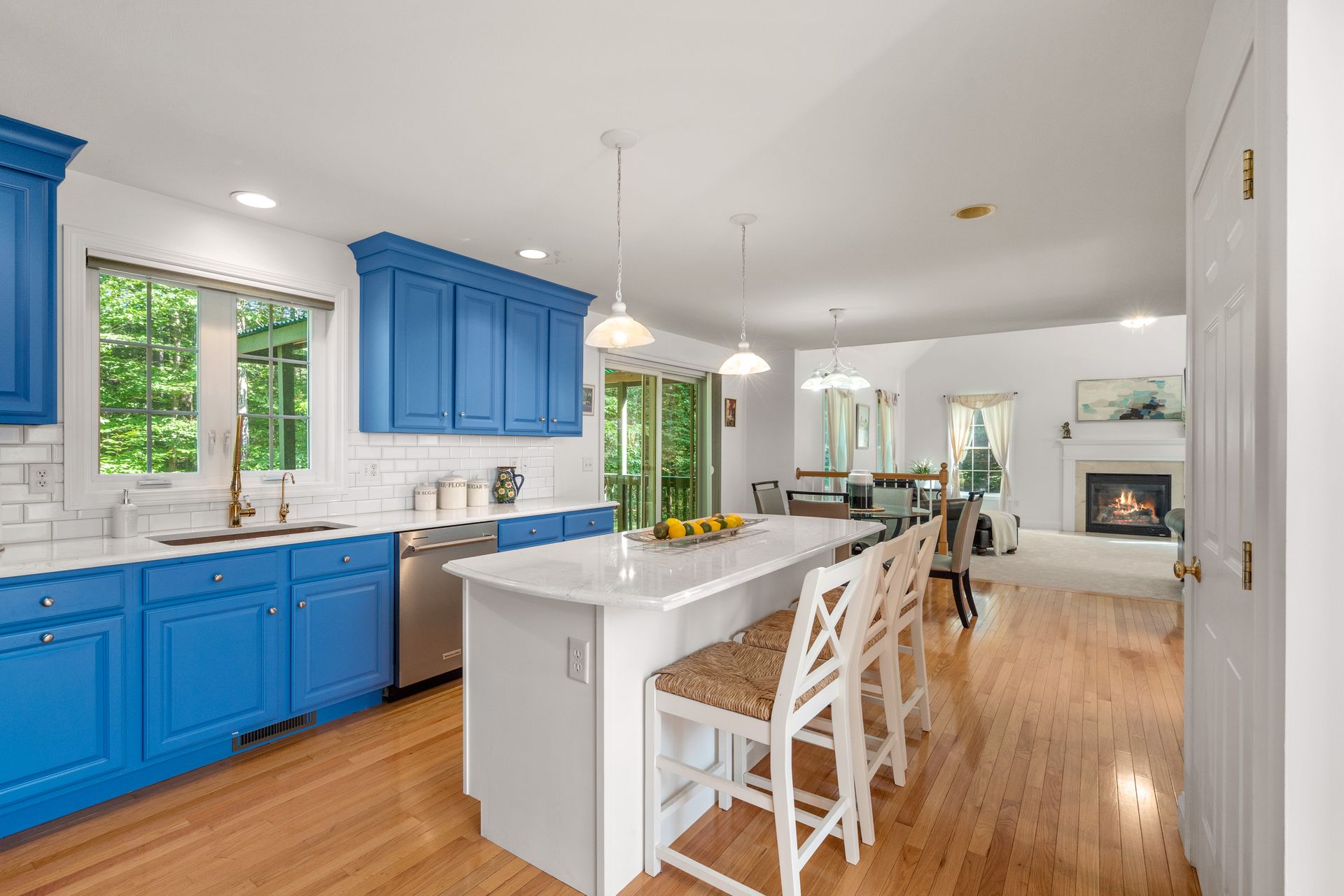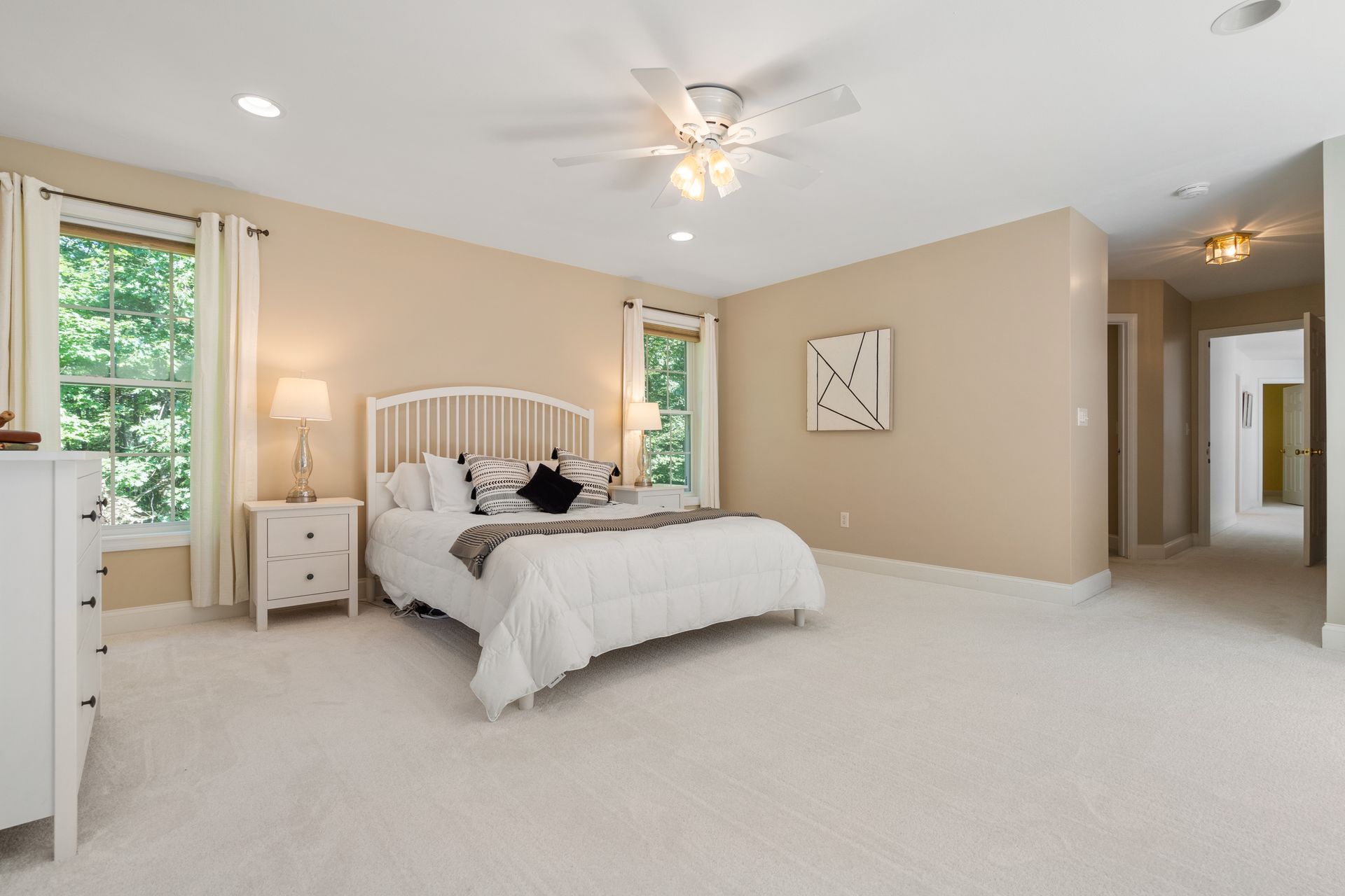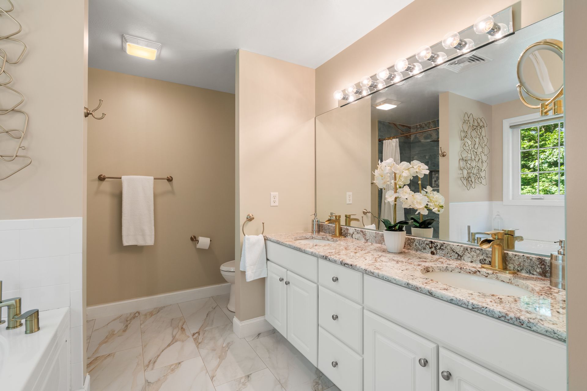 Welcome to this beautiful Colonial home situated on a spacious over five-acre lot in the picturesque town of Mont Vernon. Built in 2005, this stately home has been recently updated and is move-in ready! The main living areas feature hardwood floors and the vaulted living room and entire second floor have brand-new carpets, ensuring plush comfort underfoot. The kitchen is a chef's dream, with new high-end appliances from 2023, including a new gas range, hood, refrigerator, and dishwasher. The antique copper kitchen sink and gold fixtures add a touch of elegance, while the newly painted cabinets and quartz countertops provide a fresh and contemporary look. Upstairs, there are three large bedrooms and a truly spacious primary suite with double walk-in closets. The primary bathroom has also been tastefully renovated with a granite countertop, natural stone-tiled shower and updated fixtures. The finished basement offers a dynamite in-home movie theater with stadium seating as well as two additional finished bonus rooms for guests or relaxation. Even the powder room features new Italian tile, adding a touch of luxury to this space. The house boasts a whole-house Ethernet system for seamless connectivity and the office is equipped with new French doors for privacy. This property is not just a beautiful home but also offers the convenience of being close to Mont Vernon's and Amherst's historical centers and just minutes away from shopping in Milford.