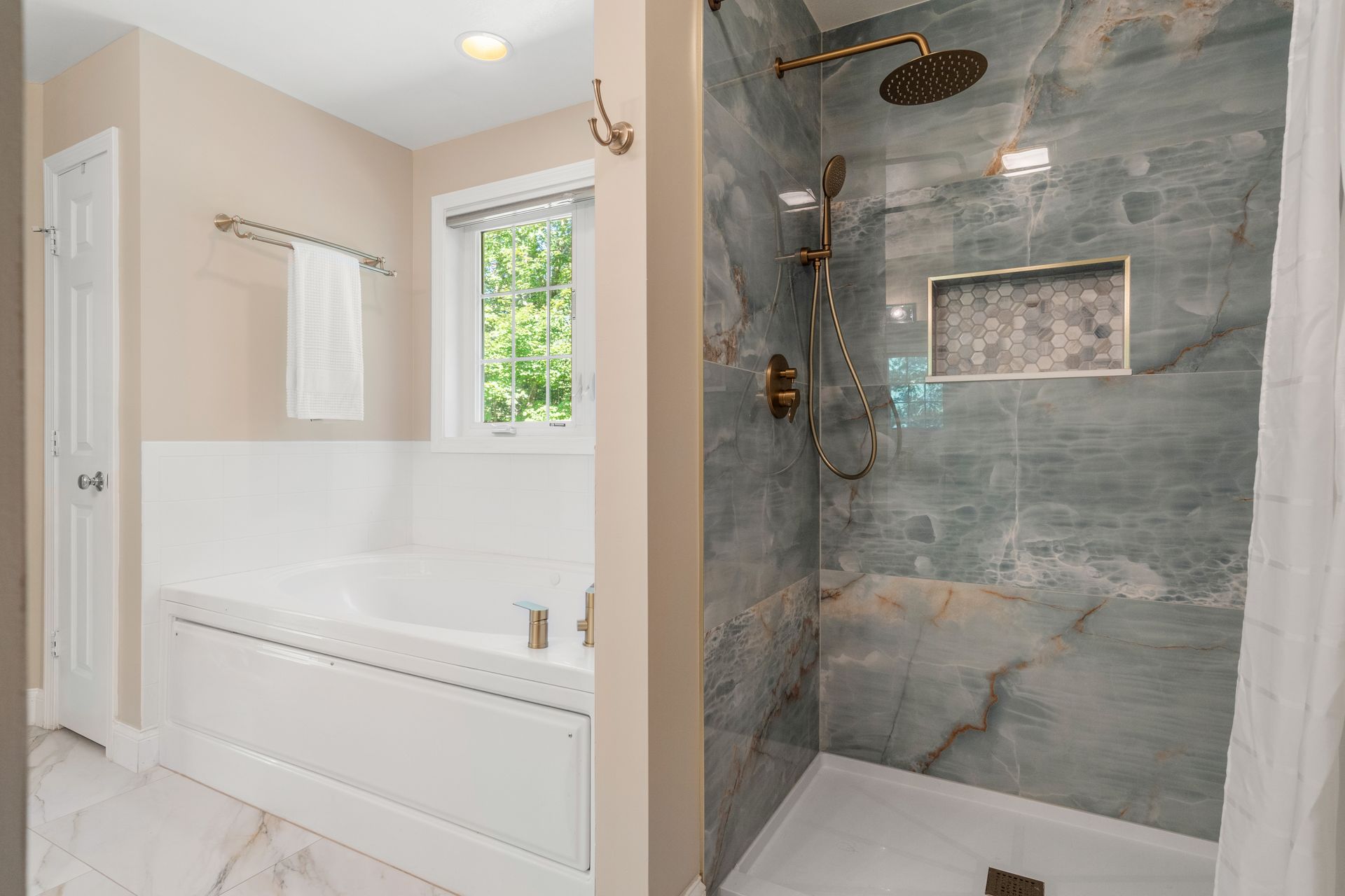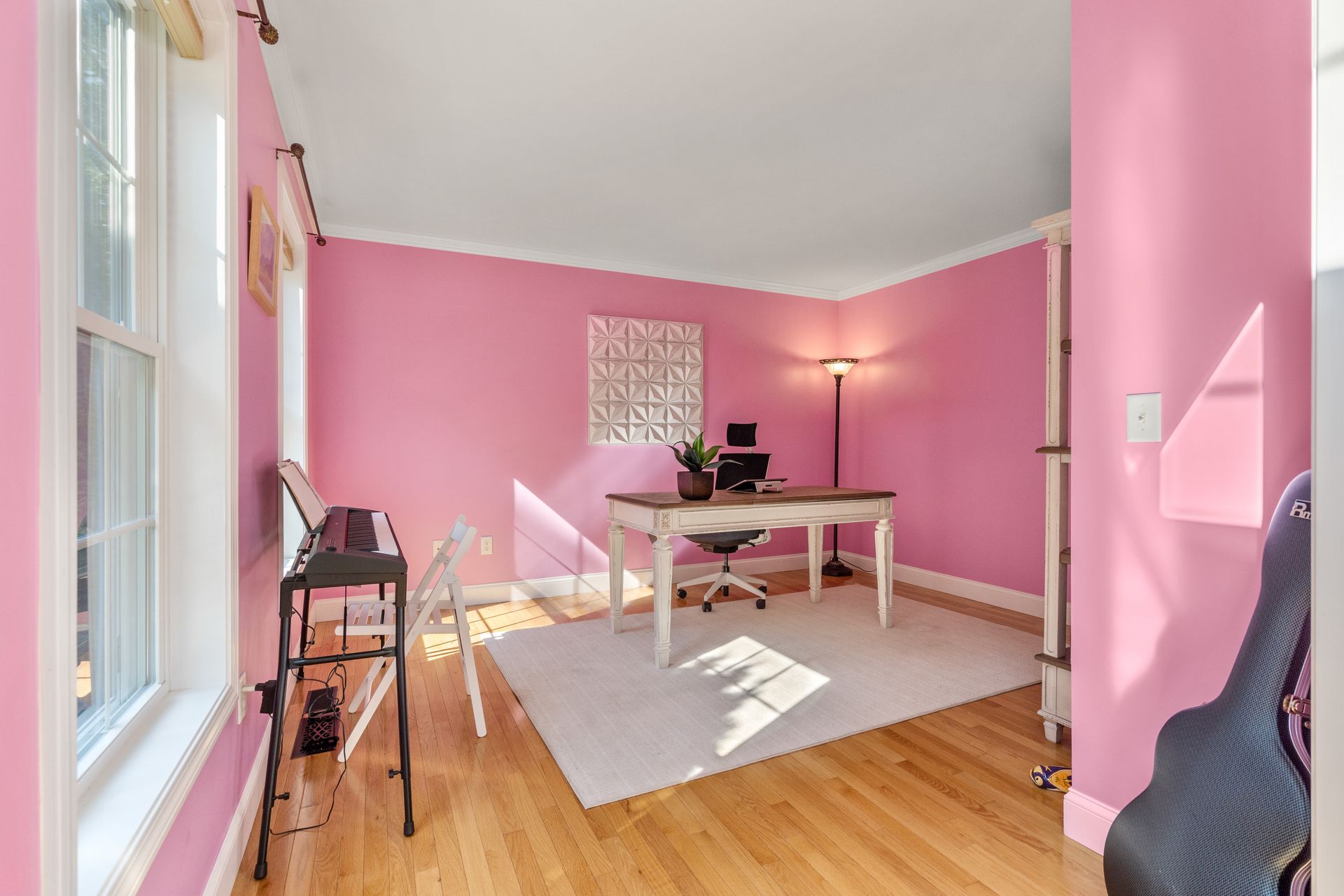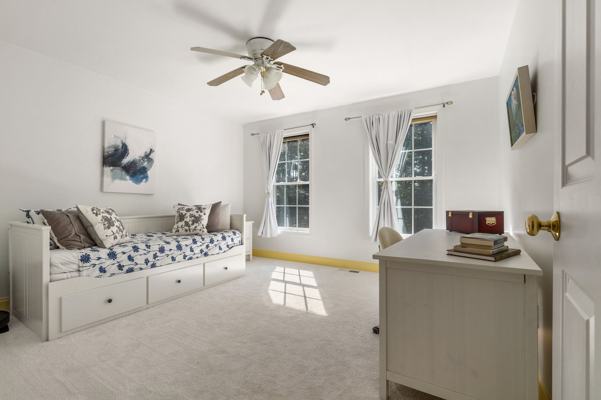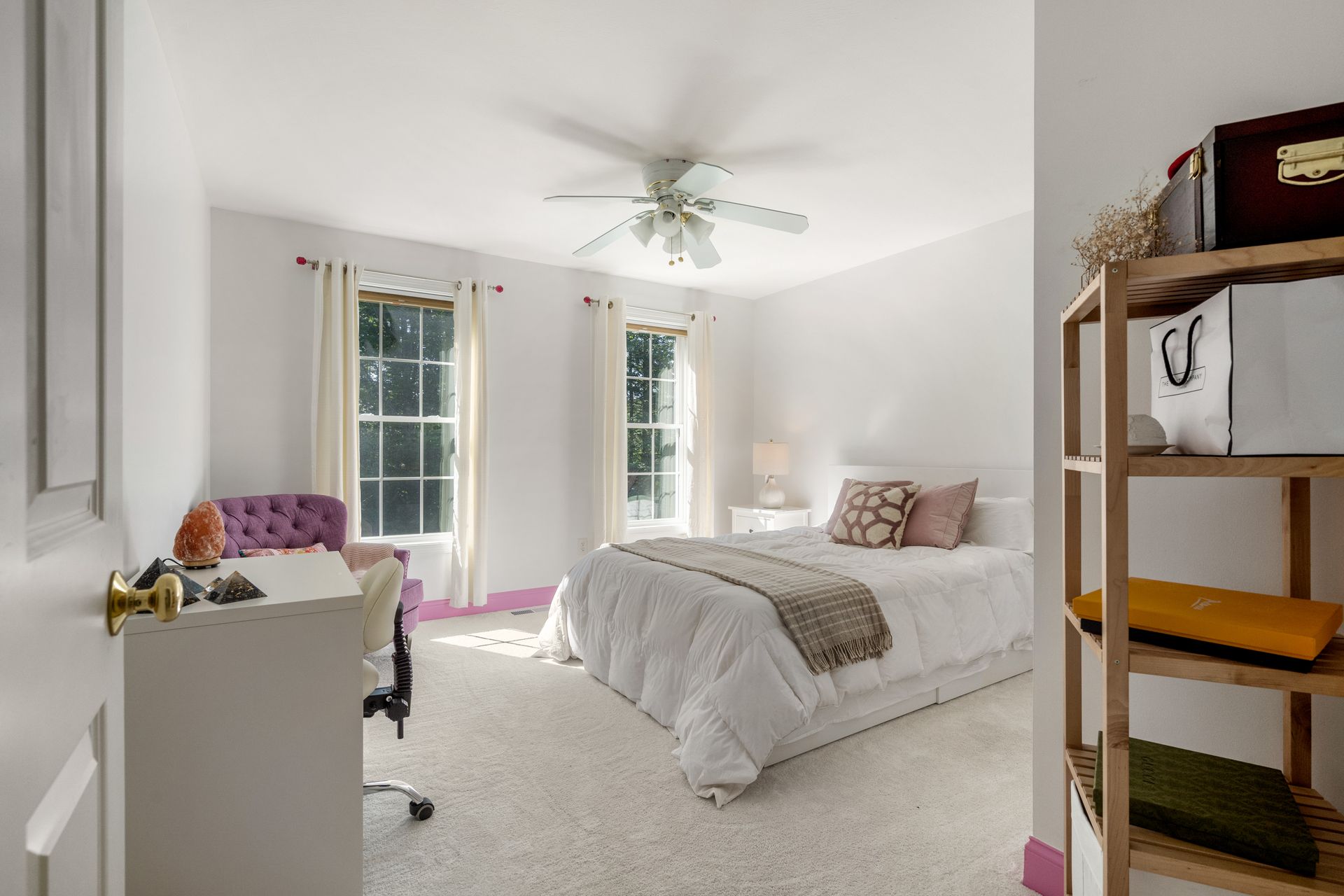Welcome to this beautiful Colonial home situated on a spacious over five-acre lot in the picturesque town of Mont Vernon. Built in 2005, this stately home has been recently updated and is move-in ready! The main living areas feature hardwood floors and the vaulted living room and entire second floor have brand-new carpets, ensuring plush comfort underfoot. The kitchen is a chef's dream, with new high-end appliances from 2023, including a new gas range, hood, refrigerator, and dishwasher. The antique copper kitchen sink and gold fixtures add a touch of elegance, while the newly painted cabinets and quartz countertops provide a fresh and contemporary look. Upstairs, there are three large bedrooms and a truly spacious primary suite with double walk-in closets. The primary bathroom has also been tastefully renovated with a granite countertop, natural stone-tiled shower and updated fixtures. The finished basement offers a dynamite in-home movie theater with stadium seating as well as two additional finished bonus rooms for guests or relaxation. Even the powder room features new Italian tile, adding a touch of luxury to this space. The house boasts a whole-house Ethernet system for seamless connectivity and the office is equipped with new French doors for privacy. This property is not just a beautiful home but also offers the convenience of being close to Mont Vernon's and Amherst's historical centers and just minutes away from shopping in Milford.