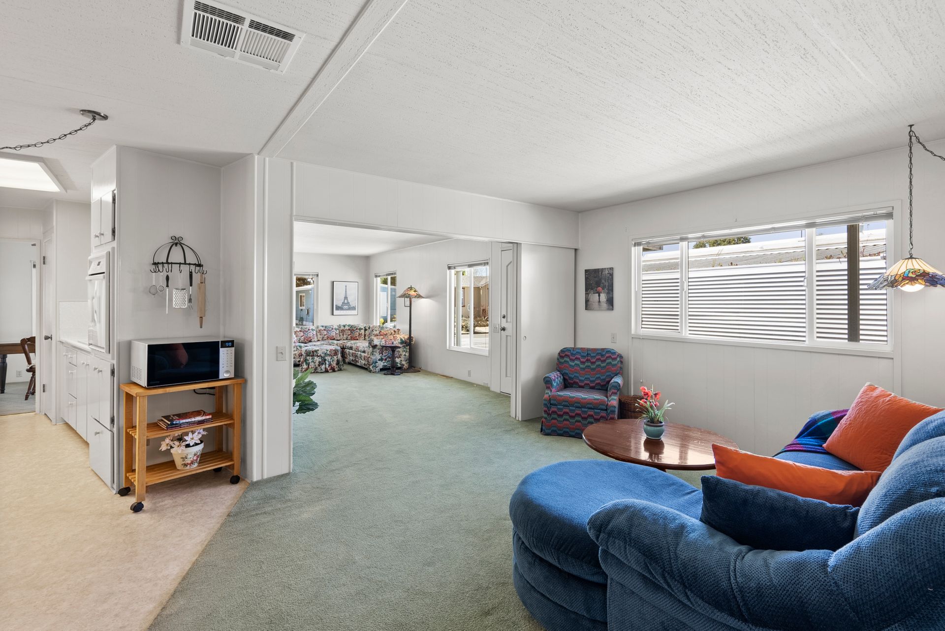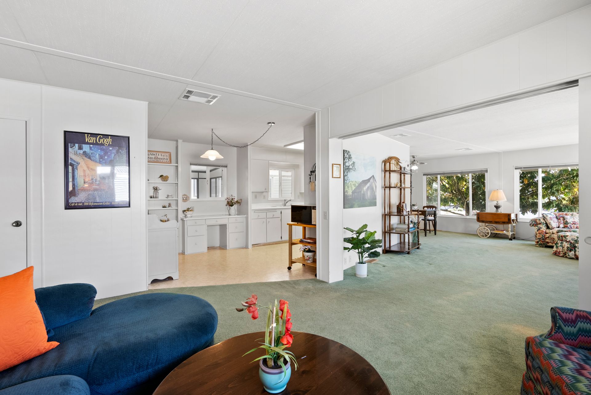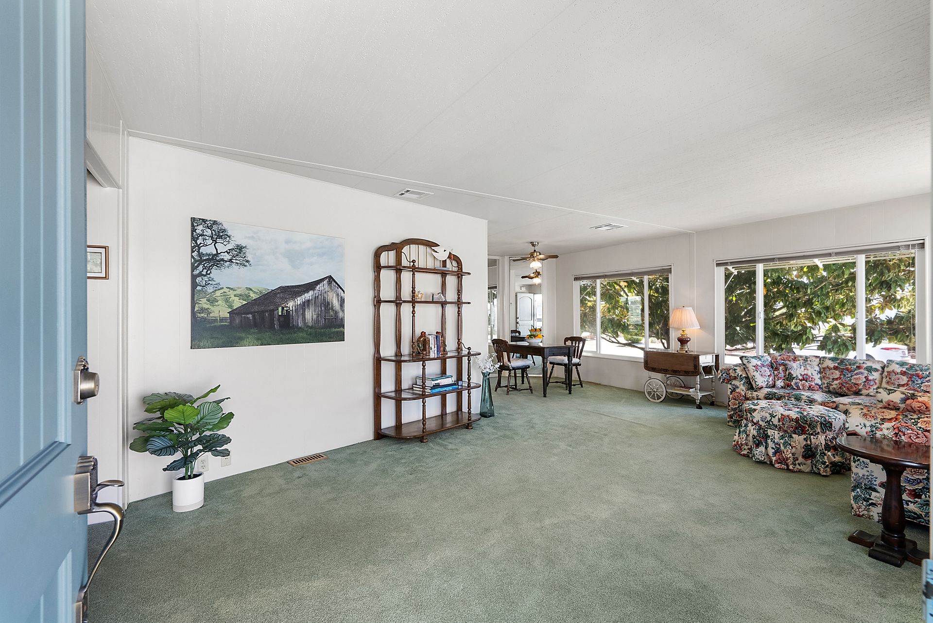 This two bedroom, two bathroom home features central heat and air, fresh exterior paint, covered parking, dual-pane windows and a bonus sunroom that is not included in the square footage of the home. Enter the home and feel a sense of spaciousness with a large area for living and dining, plus another sitting area that is open to the kitchen. Situated in the coveted Valle Vista Mobile Home Subdivision, a park for seniors in which the owner of a mobile home owns the lot, the HOA fees are only $94 monthly to support common areas which include a pool, walking paths and a clubhouse. Valle Vista has an on-site parking area for recreational vehicle storage (at an additional annual charge, buyer to verify cost and availability) for residents.