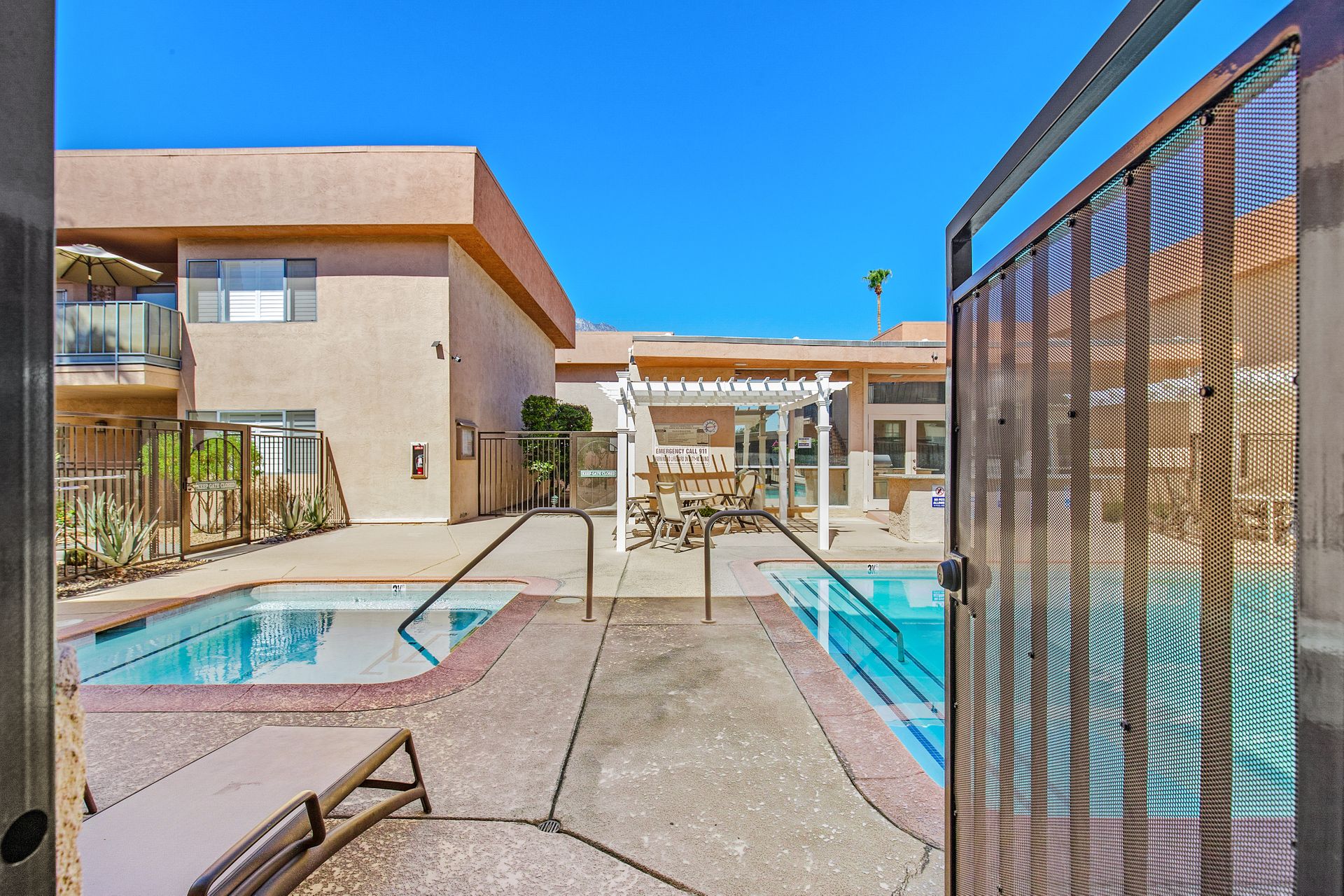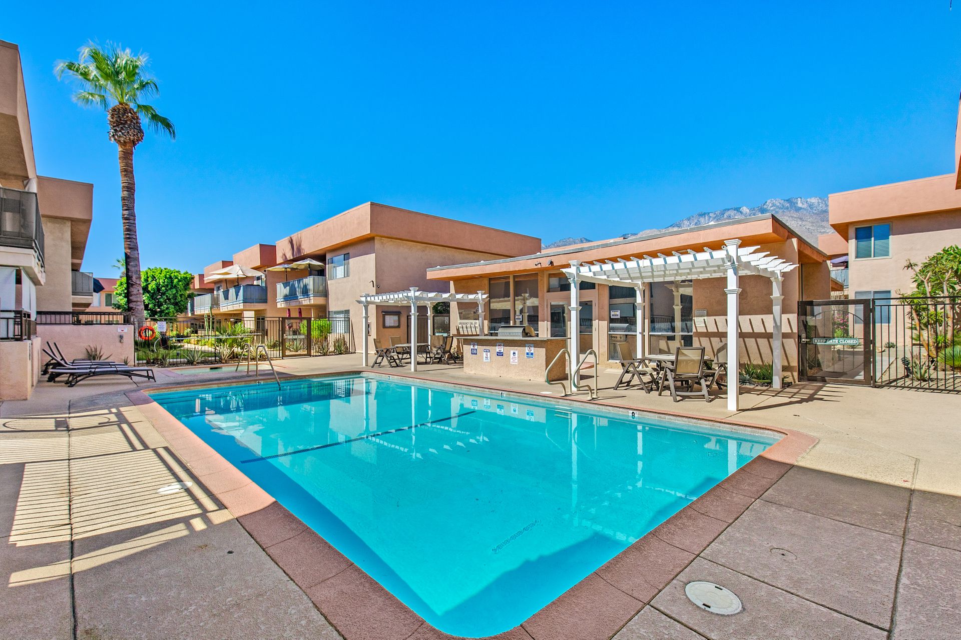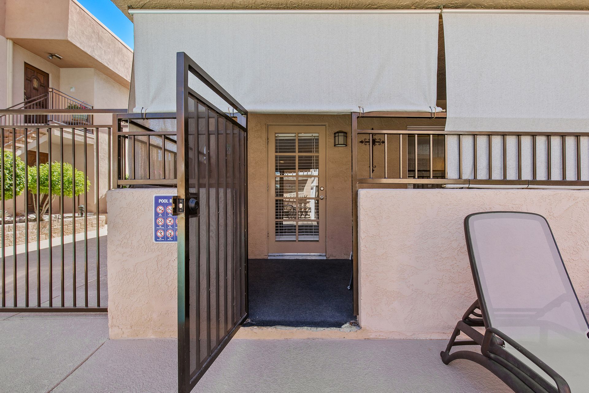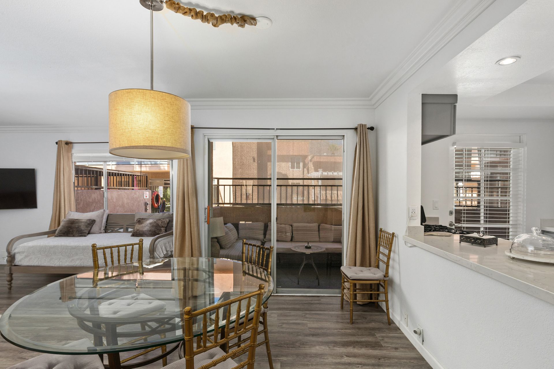 Welcome to Americana Gardens Delight, the property features direct access to the community pool from the private patio, this is the only unit with direct access in the complex, providing a convenient and refreshing outdoor oasis. This charming downstairs end unit has two-bedroom, two-bathroom home offers approximately 1,150 square feet of living space. The low homeowners association (HOA) fees cover essential services such as roof maintenance, building upkeep, gas, water, and trash removal, making this home a low-maintenance option. The kitchen is designed for the discerning chef, boasting quartz countertops, a gas stove, and stainless steel appliances. The open floor plan seamlessly integrates the kitchen with a dining area and a spacious living room views of the patio and pool for a relaxing atmosphere. Residents can enjoy the convenience of in-unit side-by-side washer and dryer hookups. This makes for a wonderful owners unit and or part, full time renters, 30 day minimum rental per HOA. Americana Gardens is centrally located, this is a must see!