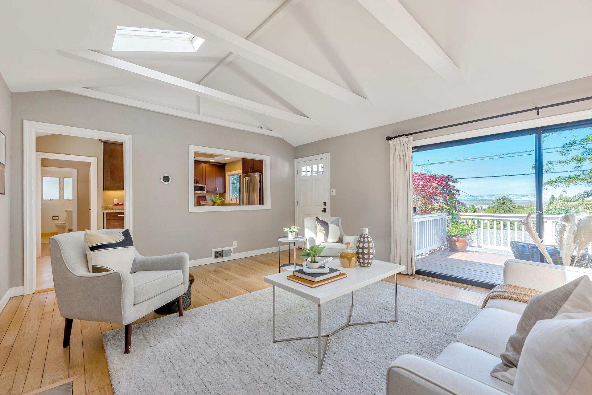 Welcome to this adorable 2 bedroom and 1 bath home nestled in the beautiful hills of San Carlos. The home features a nicely sized living room with high ceilings, hardwood floors, a wood burning fireplace, and a sliding glass door that takes you out to the front deck, with views of the eastern hills and bay - a great spot to relax.