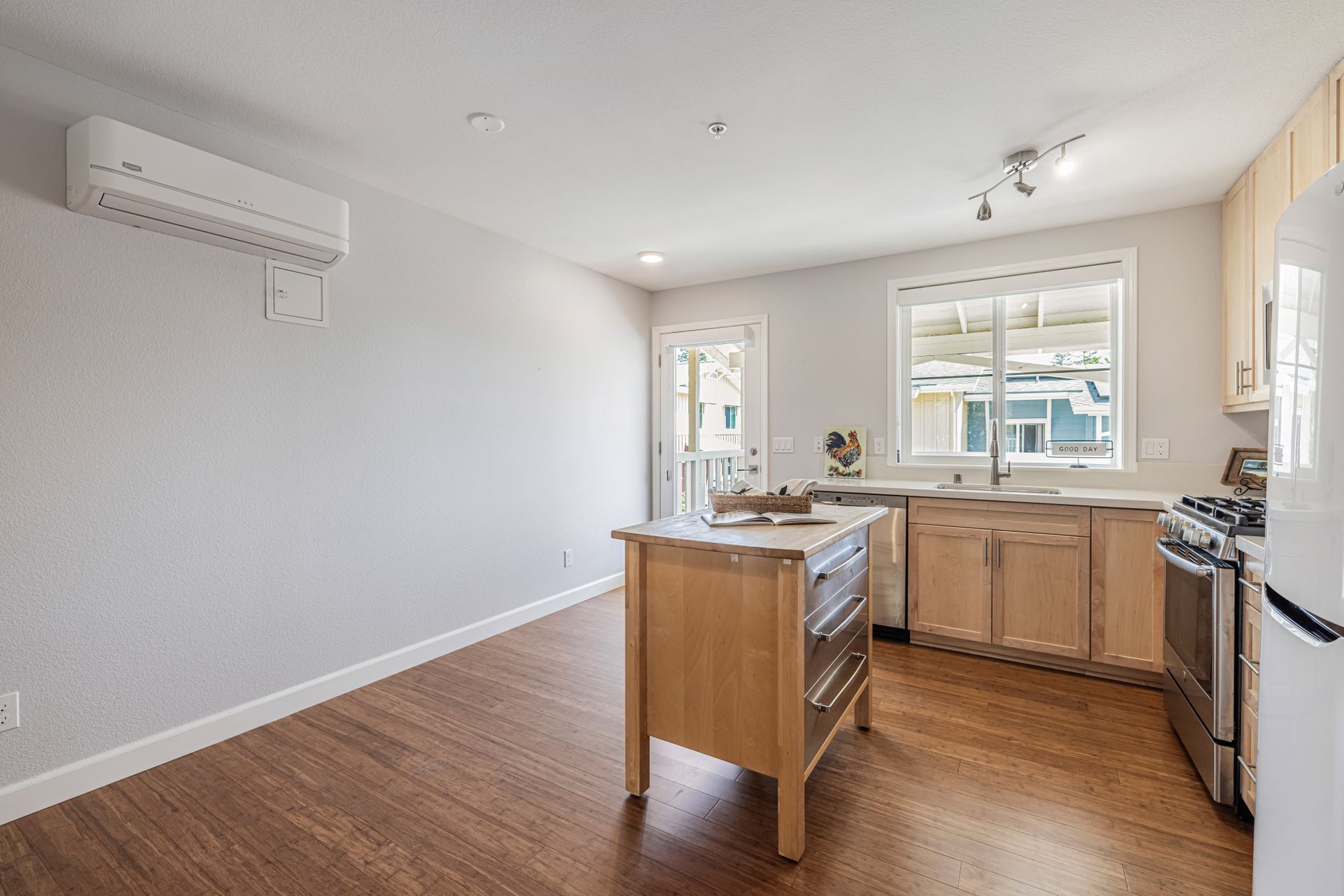 CURIOUS ABOUT COHOUSING? This modern eco-friendly home provides the best of both worlds. Living amidst a multi-generational community that fosters supportive relationships with your neighbors, meal sharing, celebrations and more is combined with the personal space of your private home. This charming, well designed two bed, one bath upstairs flat has large windows that bathe rooms in natural light, making them feel airy and spacious. The living room features a view of oak trees and nature. Open concept kitchen with quartz countertops, stainless steel appliances and soft-close maple cabinets add to the sleek modern design. The kitchen door leads to the deck overlooking the community, an ideal place for a cup of tea and visit with friends. Generous bedrooms with extended closets provide ample storage. The urban design coupled with the eco friendly construction and inclusive community make this more than just a great home, it's a lifestyle! Are you passionate about living lightly on the Earth? Embrace a lifestyle that aligns with your values of sustainability, community and personal space. Fair Oaks Eco-housing community is more than just a place to live, it's a commitment to eco-friendly living and fostering meaningful connections. Living sustainably doesn't mean sacrificing comfort or privacy. Enjoy the camaraderie of shared meals and activities in our common house complete with a sitting room, commercial kitchen, dining area, arts and crafts, playroom, little library, workshop, pool and spa. Then retreat to your own sanctuary whenever you need some alone time. Call for a tour of the community. Enjoy being close to Waldorf School, Bannister Park, American River Pkwy, farmers markets and restaurants.