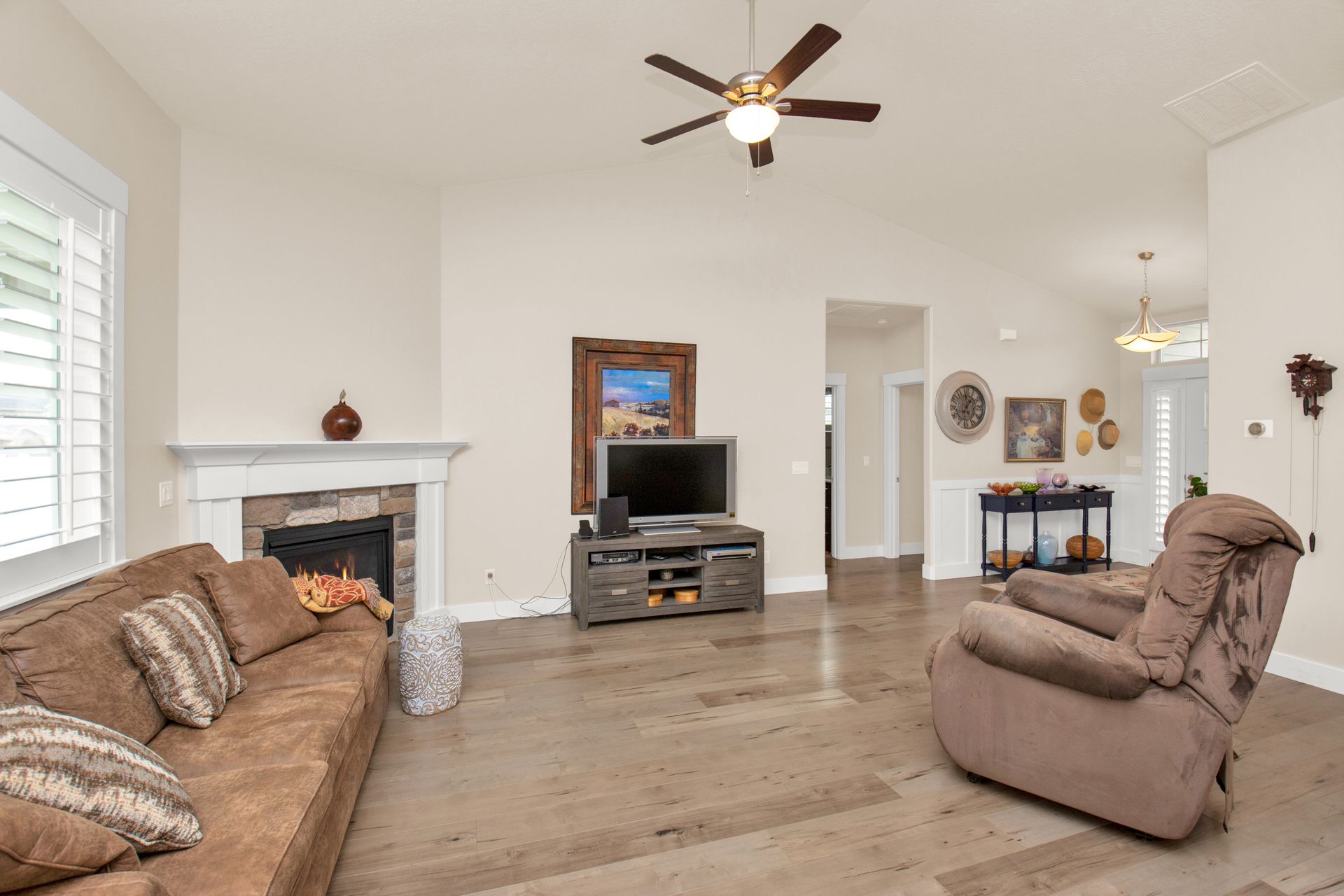 This is a gorgeous patio home in a coveted cul-de-sac in a quaint neighborhood. This patio home is only four years old with three bedrooms and two bathrooms. Beautiful engineered hardwood floors greet you as you walk through the front door and are carried throughout most of the home. The open concept great room is perfect for entertaining or just relaxing. The vaulted ceilings make the room feel especially open. The gas fireplace creates a pleasant ambiance and makes the room cozy. Beautiful white cabinets and quartz countertops are stunning in the kitchen and bathrooms. The stainless steel appliances are an added bonus. You options options for eating at the counter or in the dining area. The kitchens boasts a large pantry with lots of storage. The owner's suite has a spacious walk-in closet, plus a garden tub and double vanity. The beautiful landscaped yard is fully fenced and includes a covered patio, a wonderful shed with power. And speaking of power, this home has solar panels that keep your energy costs low. This home is ready for you to make your new memories both inside and out.