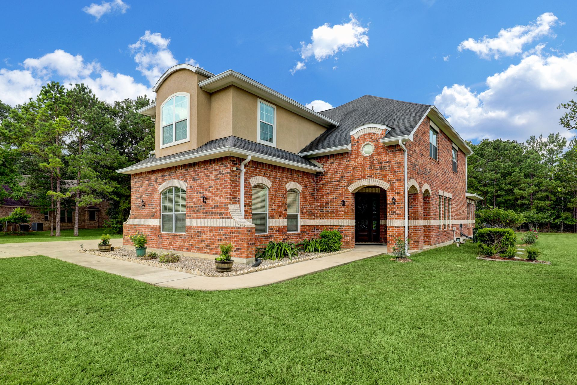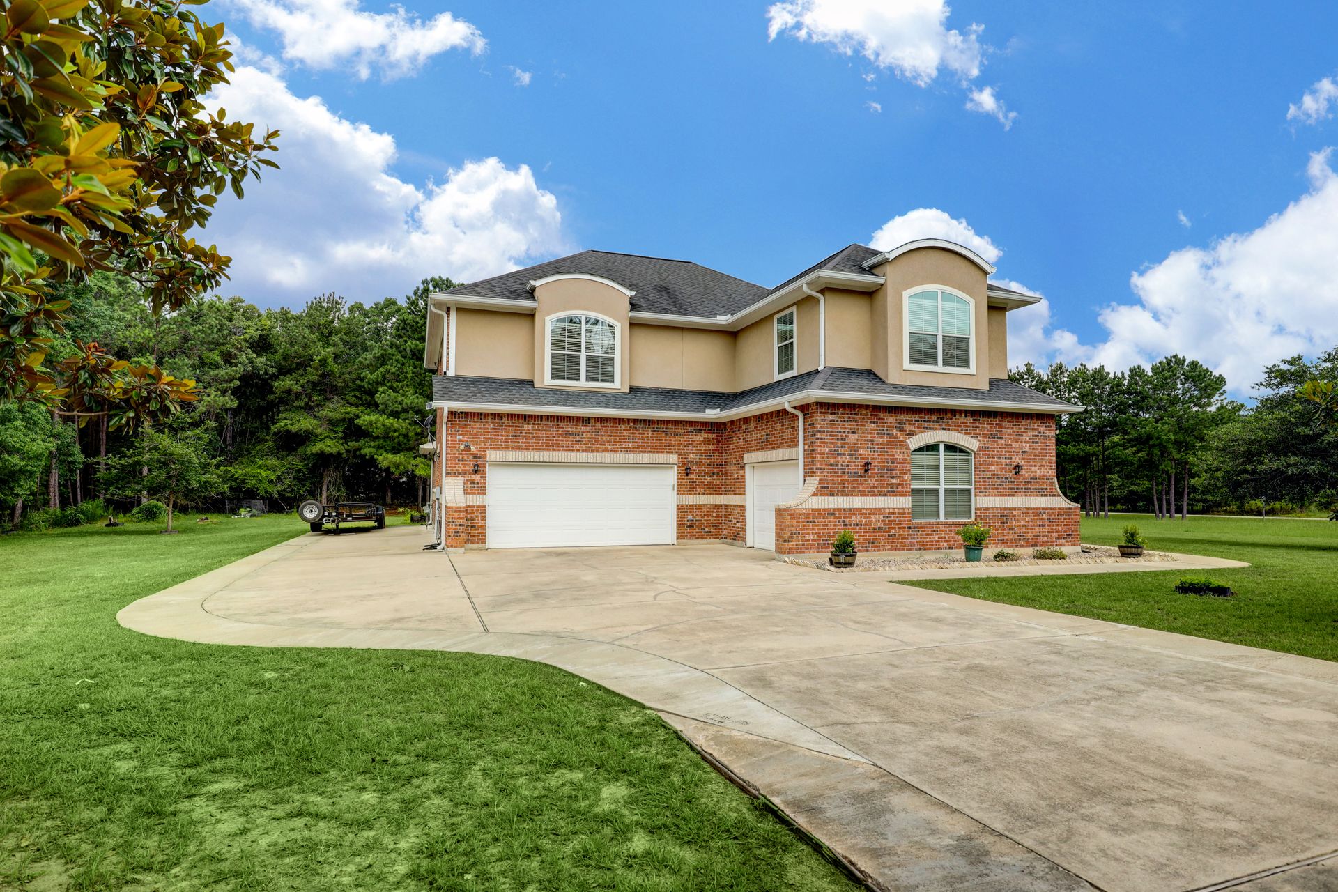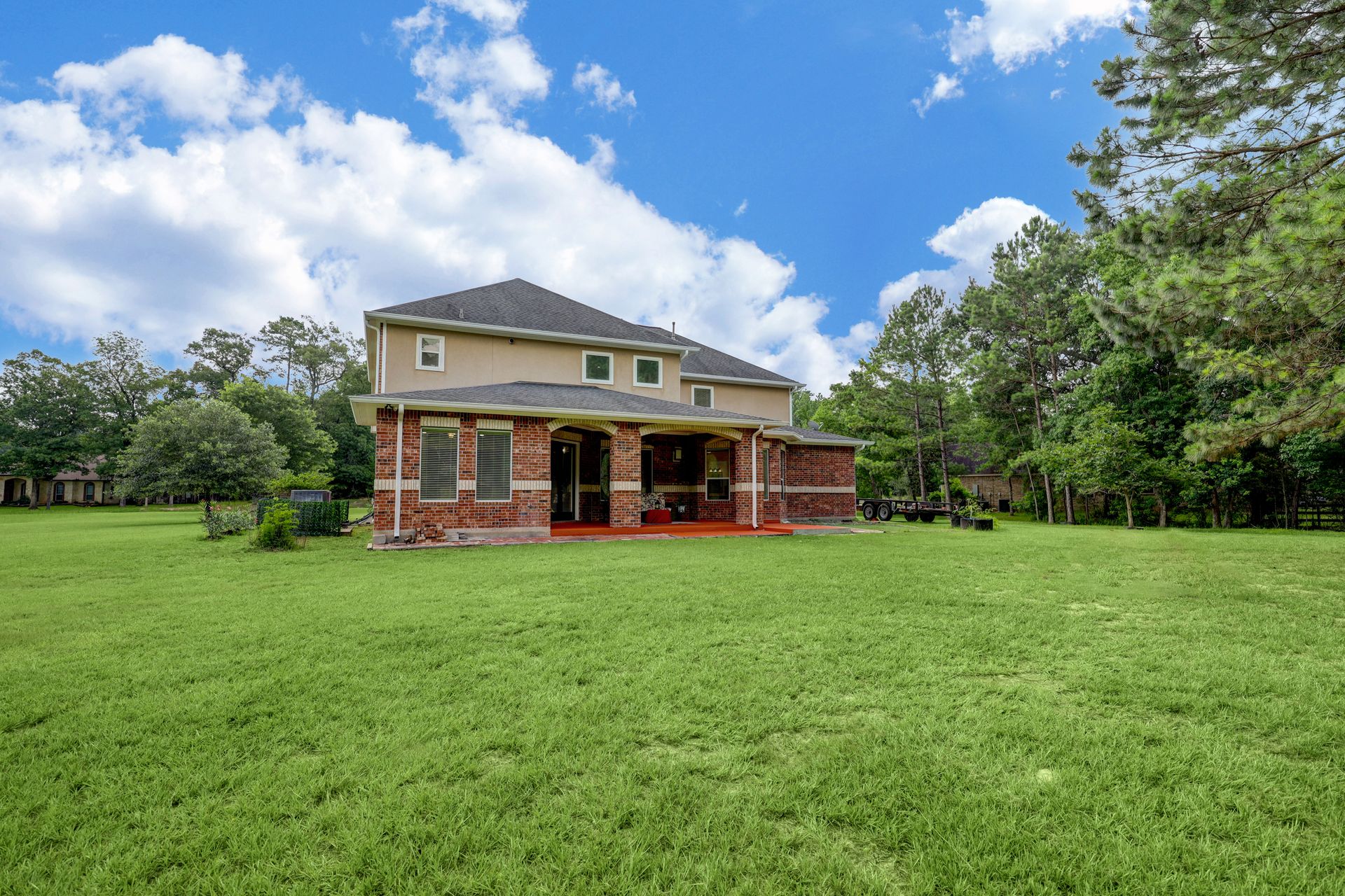 Welcome home to this gorgeous two story, five bedrooms, plus BONUS ROOM, four and one half baths, that sits on over an acre lot! The is an open floor plan with plenty of natural light, gleaming wood floors, soaring ceiling, spacious family room, formal dining room, breakfast area and bar, and a den/study. This home also features a gourmet kitchen with Monogram stainless steel appliances with a warming drawer, five burner cook top, granite counter tops and an island kitchen. You will love this oversize primary bedroom suite with bay windows and an ensuite bath with jetted tub and the spacious walk-in closet. The curve stairway will lead you to open game room and a Juliet balcony overlooking the family room. Enjoy the evening on the back patio and watch the deer roam freely. If you love the country feel but yet still close enough to the city then this is the place for you to call HOME! Just minutes to Lake Conroe, The Woodland and all the eateries on the lakes. See FEATURES LIST FOR RECENT UPDATES.
