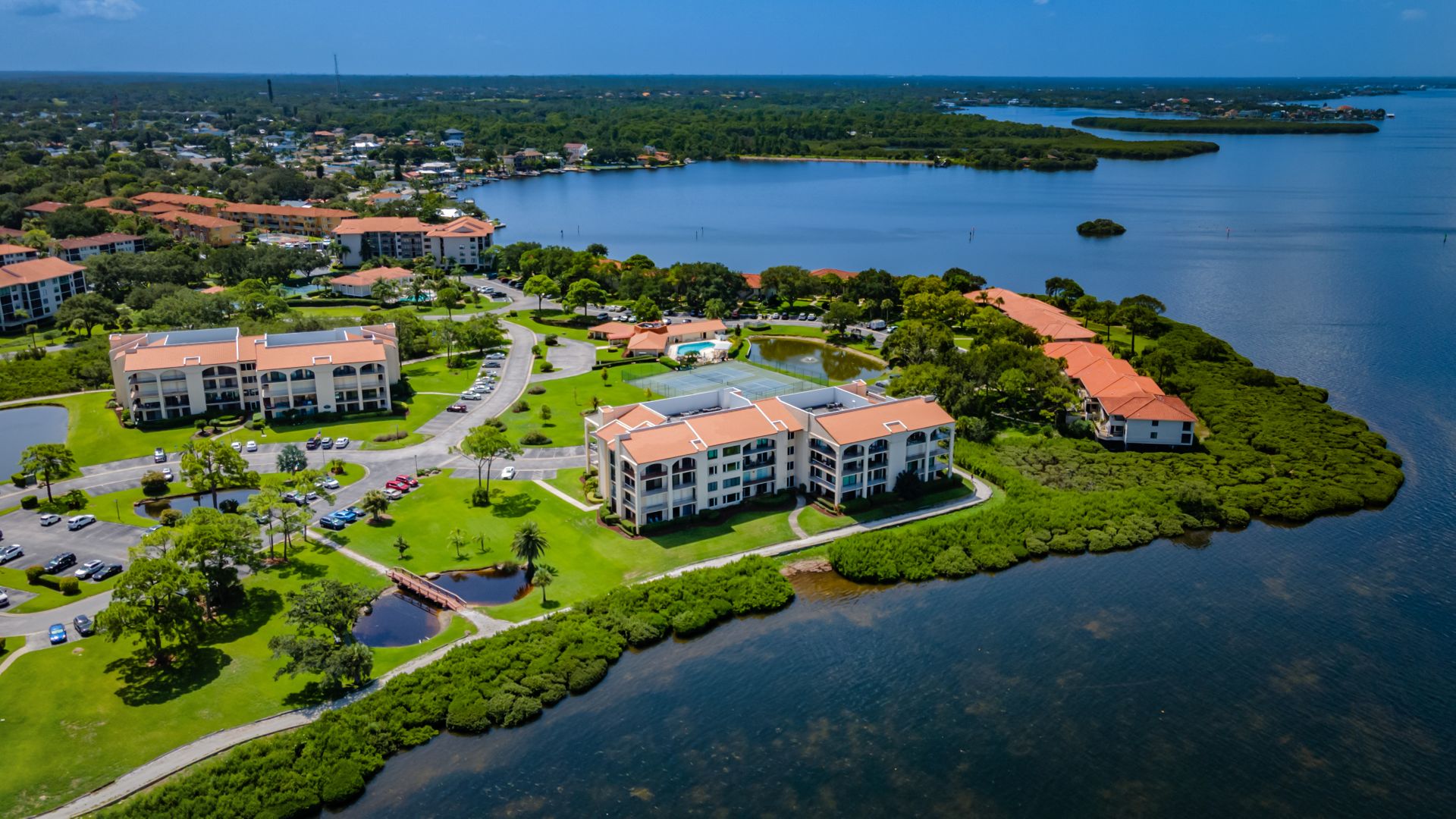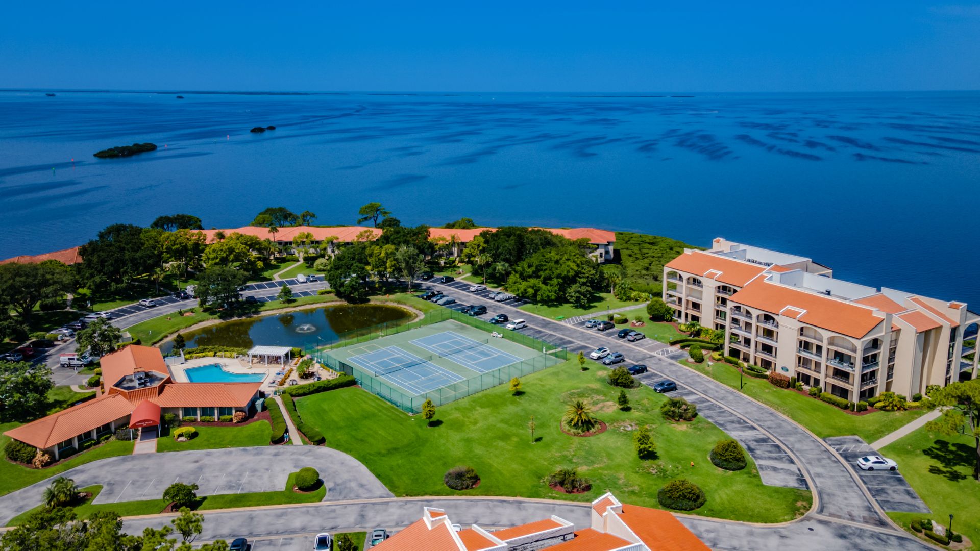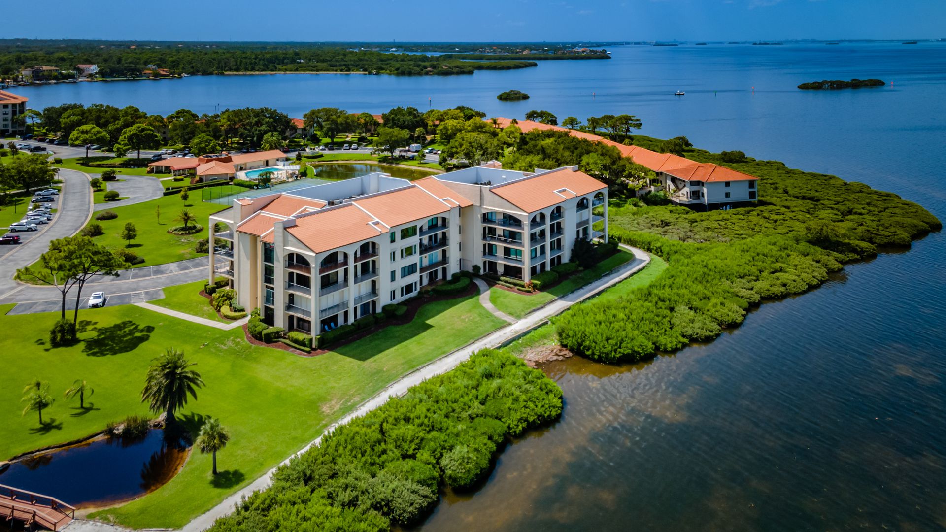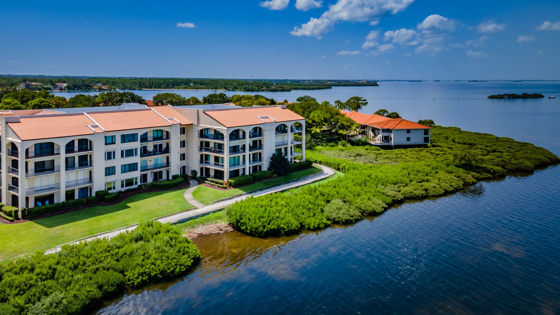 Rare ground-floor 2 bedroom, 2 bath unit with an open floor plan and full gulf views. This is a gated community with resort-style amenities. Enjoy views of Anclote Key, Honeymoon and Three Rooker Islands just off the coast from the living room, dining room, both bedrooms and patio. Privacy hedges in front of the patio create the ideal setting for entertaining and enjoying sunsets. Beyond the patio is the community's crushed-shell nature trail along the gulf, butterfly garden and mangrove tidal areas. The community amenities include tennis, pickleball, kayaking, clubhouse, fitness center and sauna. Condo fees extend beyond the typical community to include cable tv, internet, water, trash and complimentary laundry machines. Located minutes from historic and charming Tarpon Springs with local shops, dining and entertainment. Less than two miles from the Pinellas Trail and Innisbrook Resort, home to the PGA TOUR's Valspar Championship. 45 minutes from area airports. This unit was converted from a 3 bedroom to open up the living area. Has updated windows and sliders along with hurricane shutters. The A/C air handler and condenser were replaced in 2020. Enjoy Florida coastal living with beautiful views in a resort-style community.