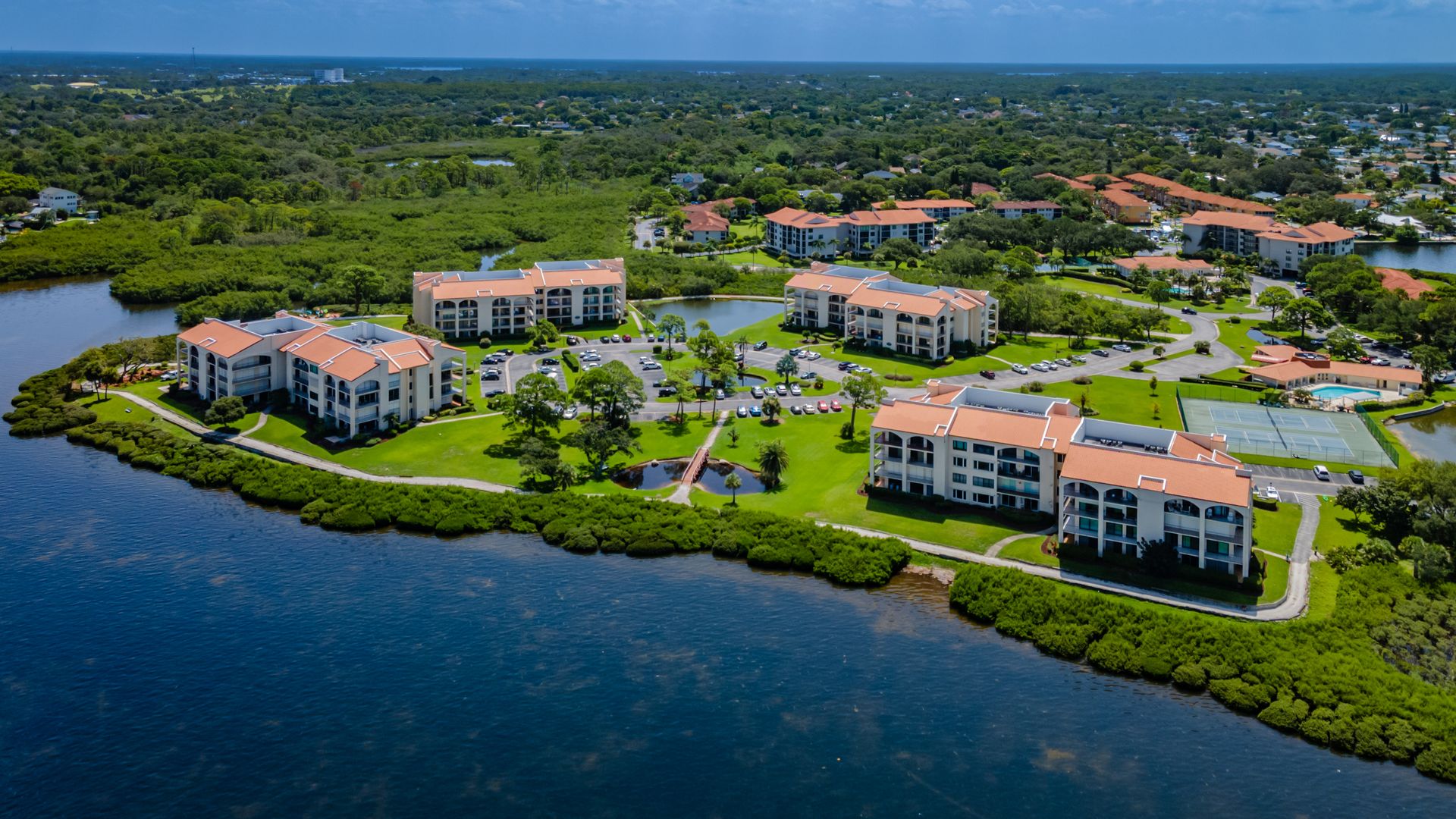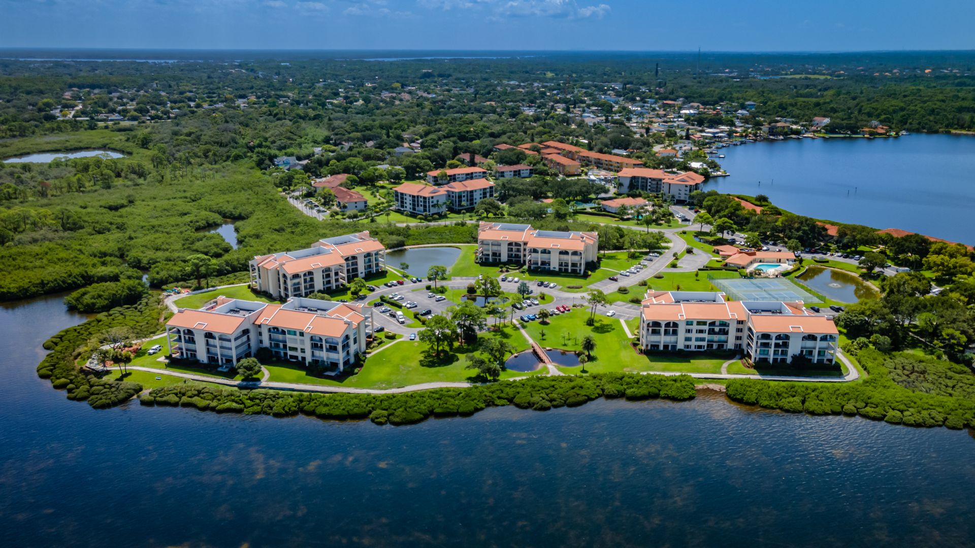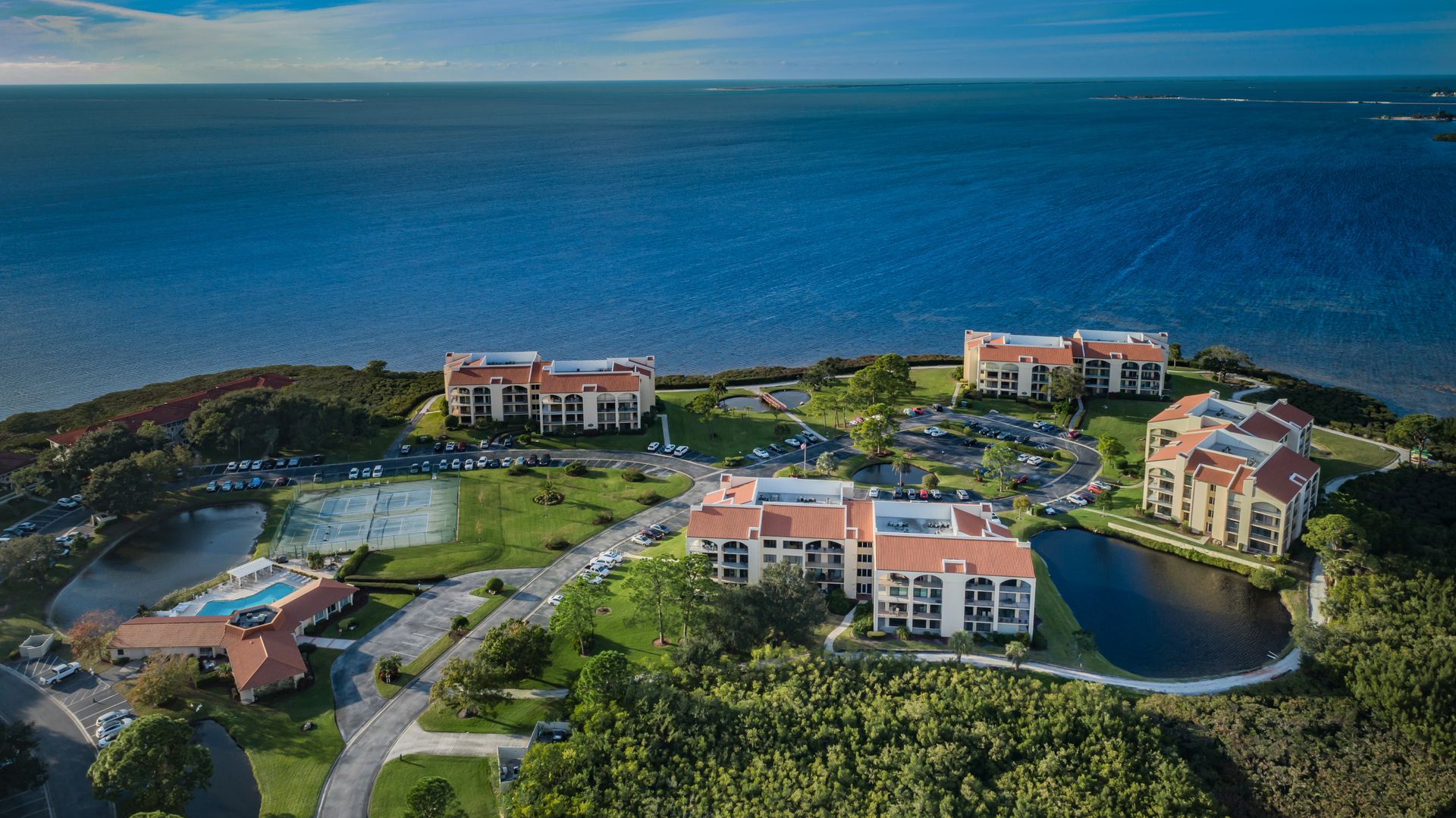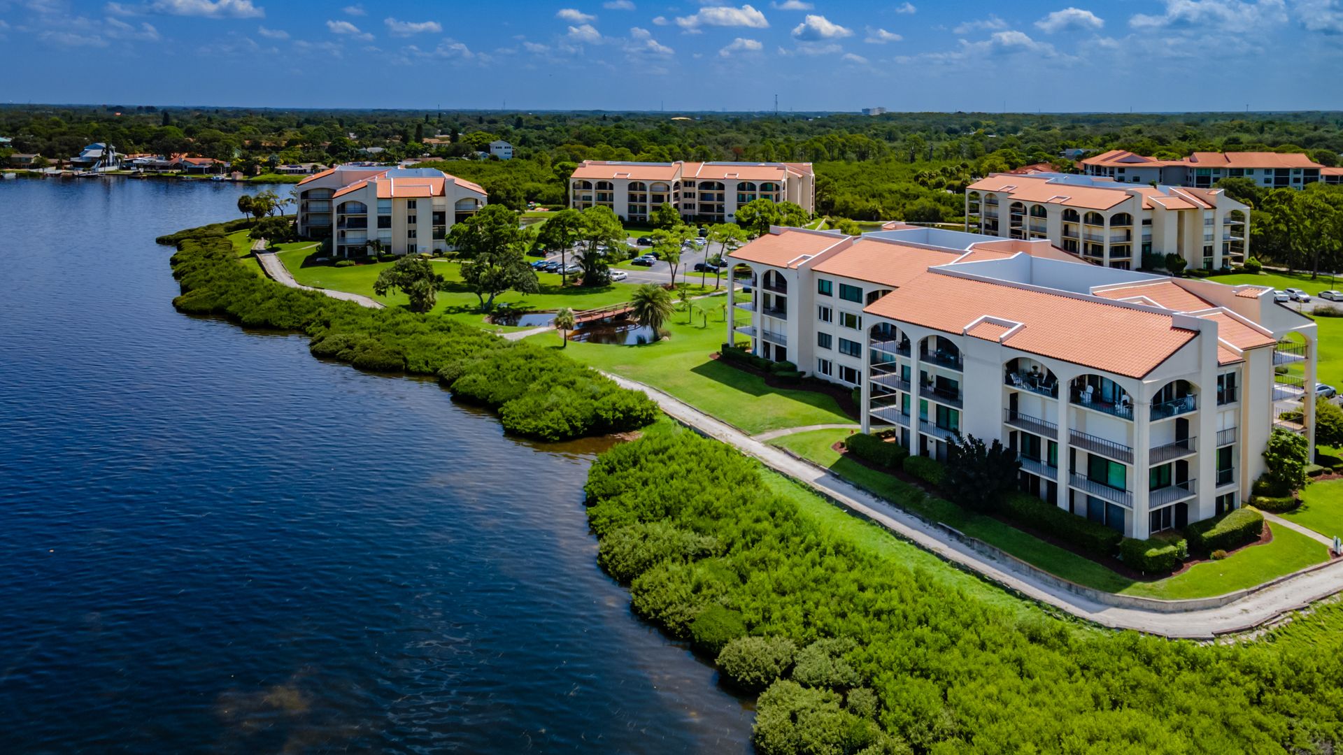Rare ground-floor 2 bedroom, 2 bath unit with an open floor plan and full gulf views. This is a gated community with resort-style amenities. Enjoy views of Anclote Key, Honeymoon and Three Rooker Islands just off the coast from the living room, dining room, both bedrooms and patio. Privacy hedges in front of the patio create the ideal setting for entertaining and enjoying sunsets. Beyond the patio is the community's crushed-shell nature trail along the gulf, butterfly garden and mangrove tidal areas. The community amenities include tennis, pickleball, kayaking, clubhouse, fitness center and sauna. Condo fees extend beyond the typical community to include cable tv, internet, water, trash and complimentary laundry machines. Located minutes from historic and charming Tarpon Springs with local shops, dining and entertainment. Less than two miles from the Pinellas Trail and Innisbrook Resort, home to the PGA TOUR's Valspar Championship. 45 minutes from area airports. This unit was converted from a 3 bedroom to open up the living area. Has updated windows and sliders along with hurricane shutters. The A/C air handler and condenser were replaced in 2020. Enjoy Florida coastal living with beautiful views in a resort-style community.