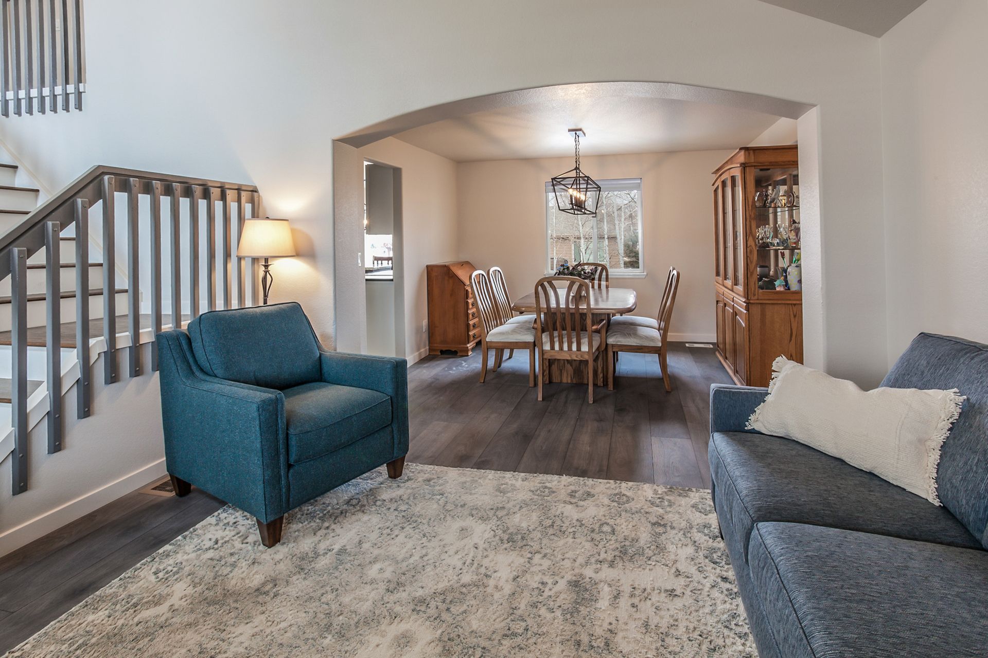 Welcome to 408 Hudson Court, a beautifully updated home with modern finishes throughout. This home is move-in ready, just bring your furniture. Located off the main road at the end of a cul-de-sac you’ll find neighborhood trails and open space just out the front door. The three-car garage and large driveway provide ample parking space for vehicles or toys. You can tell this home is special as you approach the inviting front porch where a new front door, house numbers and exterior lighting greet you. Heading inside, the fresh lighting continues along with plank flooring and paint in modern tones. A formal dining room allows for entertaining while the eat-in kitchen provides a cozier space. The kitchen has been fully updated with gleaming, stainless-steel appliances by Samsung, tile floors, high-end quartz countertops and new cabinets. The kitchen opens into the family room that features a gas fireplace and also provides access to the deck, a perfect place to enjoy a summer evening. The tiered backyard offers both separation from the neighbors as well as a flat area for activities. Mature trees and shrubs provide extra privacy. The upper level contains four bedrooms, including a private, spacious primary suite and two fully updated bathrooms with beautiful tile and fixtures. Need more space than that? The basement has another living space suitable for TV and workout areas as well as another bed/hobby room. In addition to the trails, Registry Ridge also features multiple parks, a swimming pool and Coyote Ridge Elementary School. The south Fort Collins location is convenient to shopping and dining and has easy access to I-25. Come see everything this home has to offer before it’s gone.